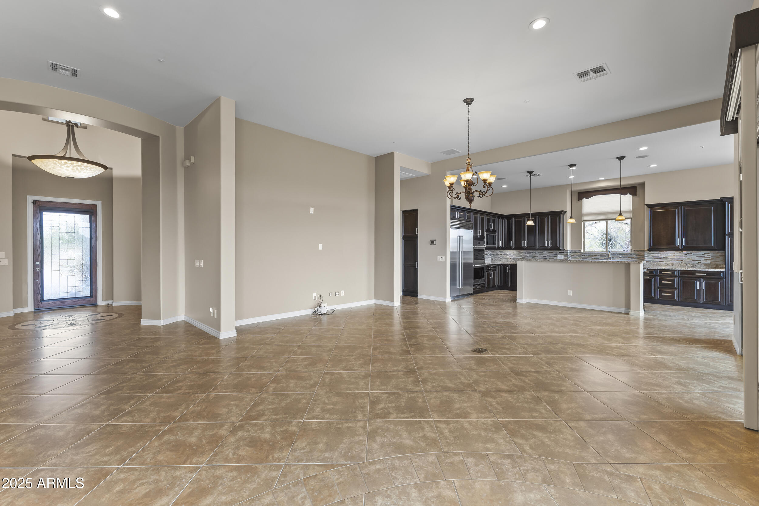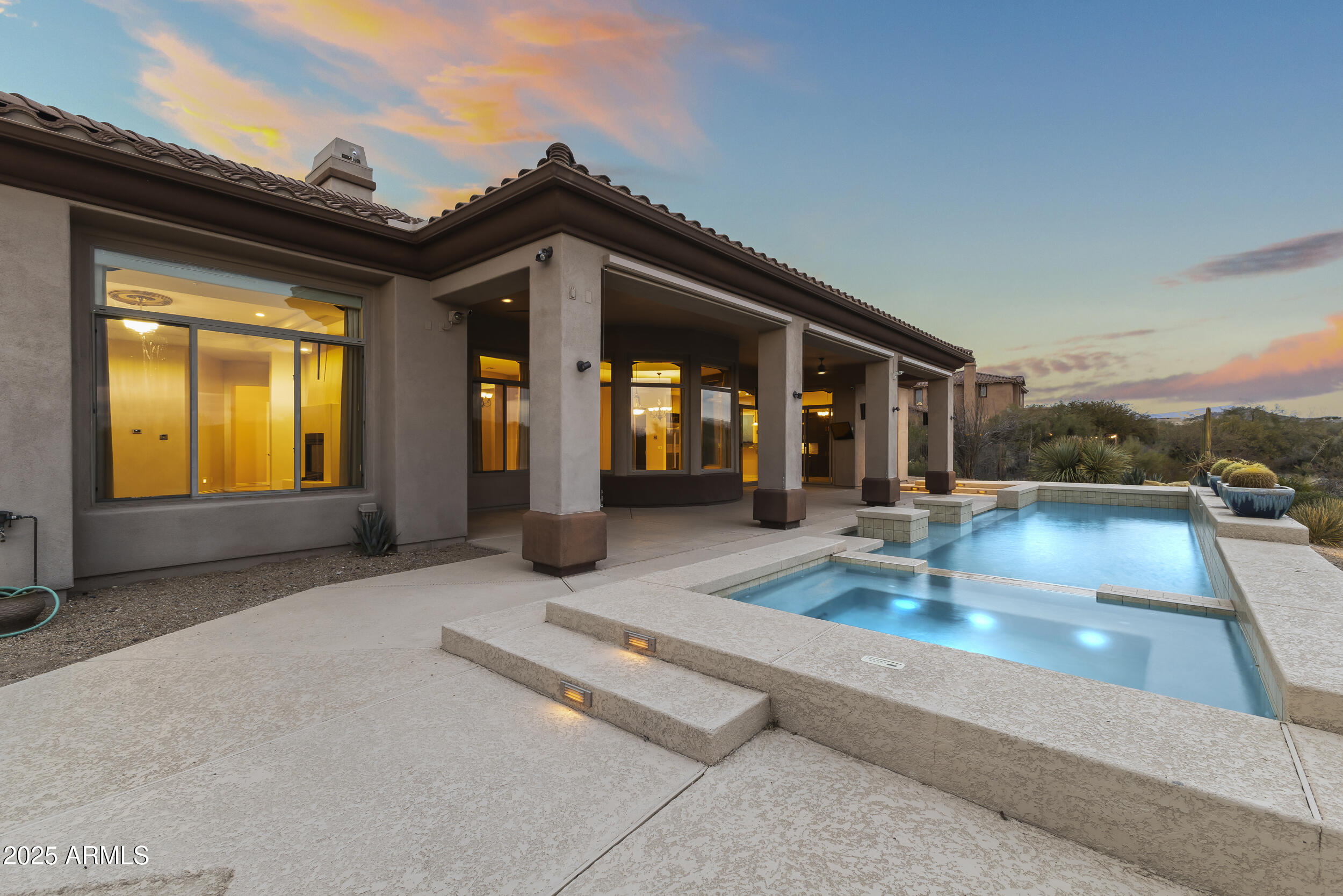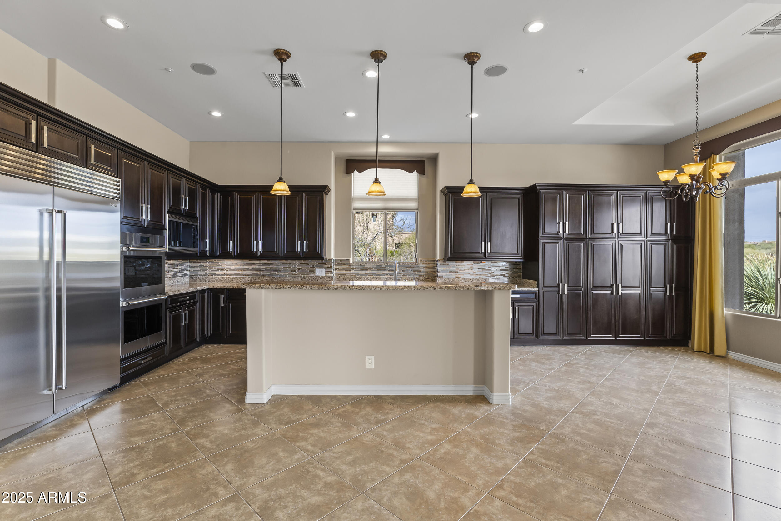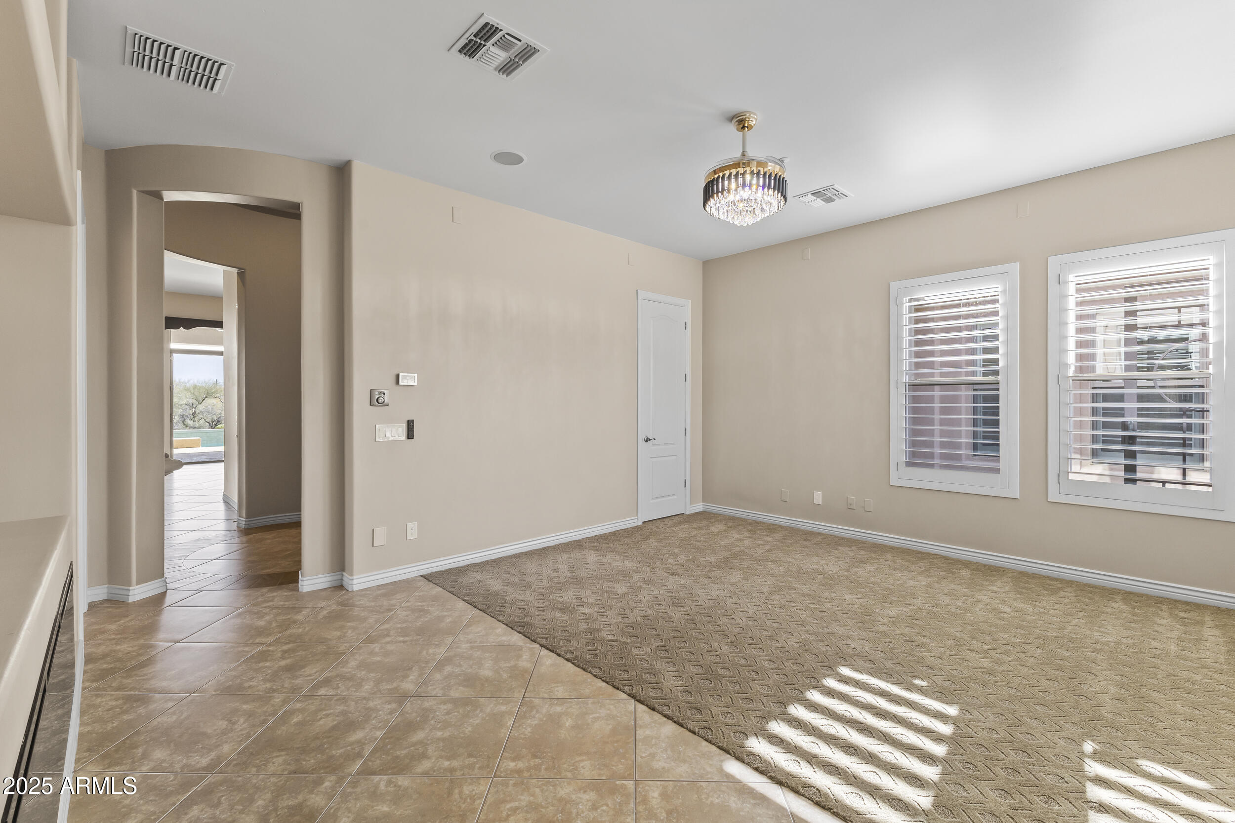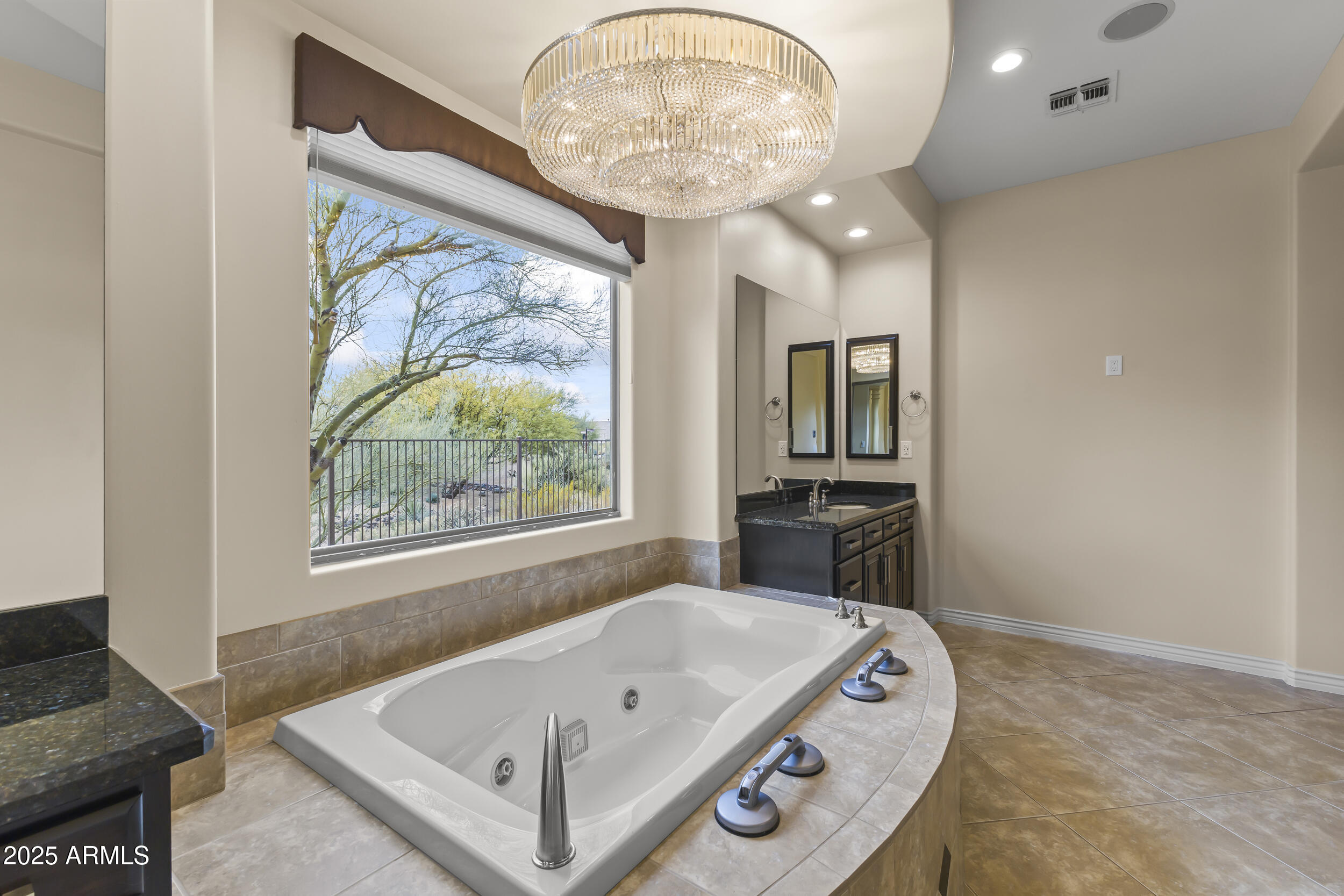 Discover luxury living with priceless views in this exquisite single-level home set on a sprawling 1.8-acre lot in Treviso East, a Toll Brothers community. Thoughtfully designed with attention to detail and showcasing numerous upgrades, this residence is filled with natural light, featuring expansive windows that perfectly frame breathtaking views. The gourmet kitchen is the showpiece, featuring a Dual Wolf range, Sub-Zero refrigerator, pull-out cabinetry, a large island, walk-in pantry, formal dining room, and a cozy breakfast nook. Kitchen opens up to the spacious living area that faces the views and features towering ceilings, entrance to the patio, fireplace as well as wet bar! The split floor plan offers an oversized primary suite with a sitting area, fireplace, and two luxurious custom closets with thousands spent on creating a truly organized masterpiece. A sizable office with extensive cabinetry and French doors that could be turned into a fourth bedroom enhances functionality, while each additional bedroom includes an en-suite bath. Additional upgrades include custom chandeliers, expansive closet built-ins, new pool equipment, new pool upgrades, and fresh interior paint, enhancing the overall appeal of this remarkable property. Perfect for guests, the attached casita features a private entrance, walk-in closet, and full bath. Step outside to an entertainer's dream, complete with a newly renovated heated lap pool, heated spa, expansive covered patio, outdoor fireplace, and unparalleled panoramic views. For car enthusiasts, the garage is equipped with a mini-split system to keep exotic cars cool and protected from the heat. Additional organized closet space can be found in the office/bedroom and garage, ensuring storage is effortless and well-structured. Other features include exterior cameras, a full-house alarm system, and new blinds and drapes. Treviso offers not just a home but an exclusive lifestyle. The community is family-oriented and currently expanding its recreational facilities with the addition of bocce and pickleball courts. Residents also enjoy access to tennis courts, a ramada, and a playground, making it the ideal setting for both relaxation and activity.