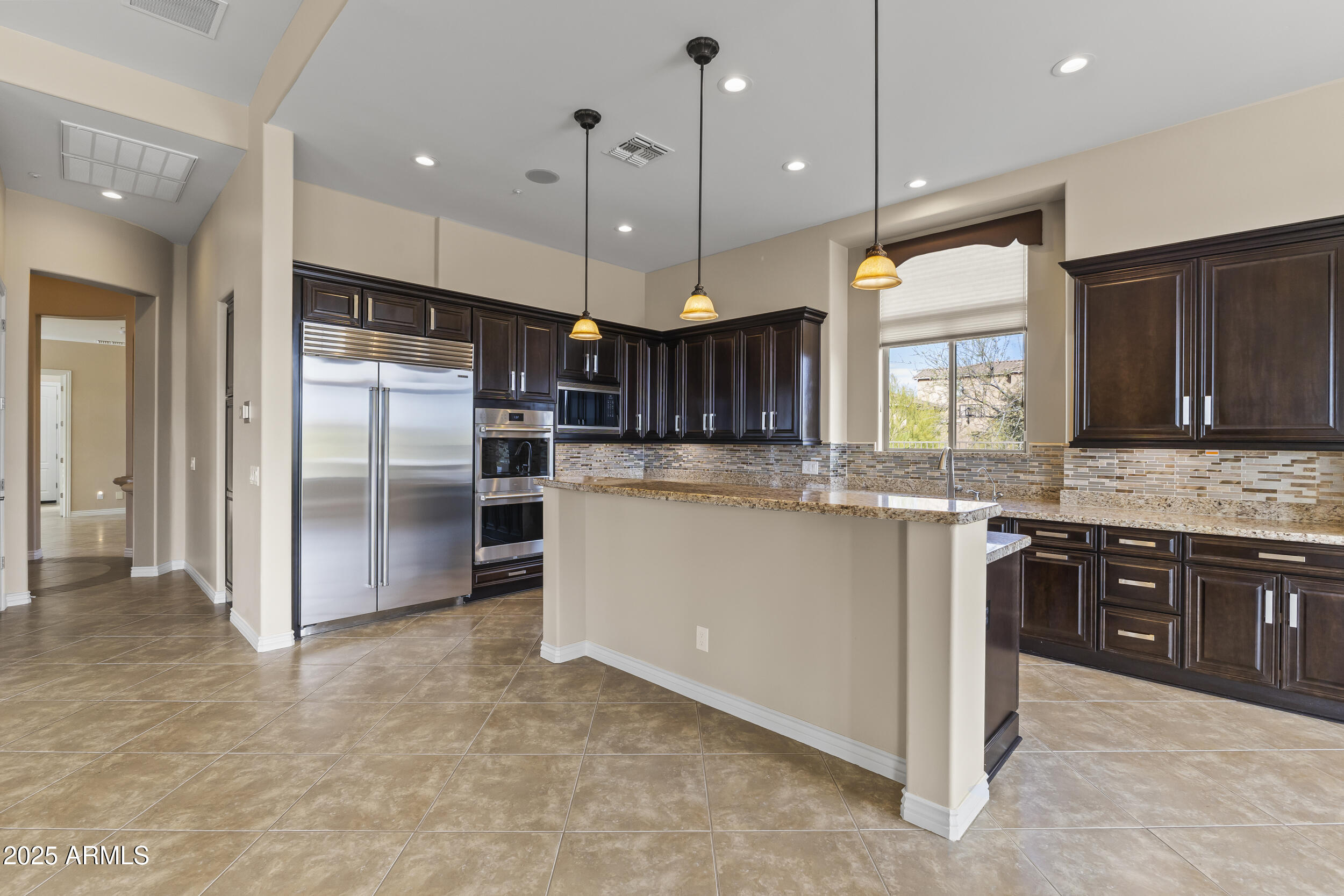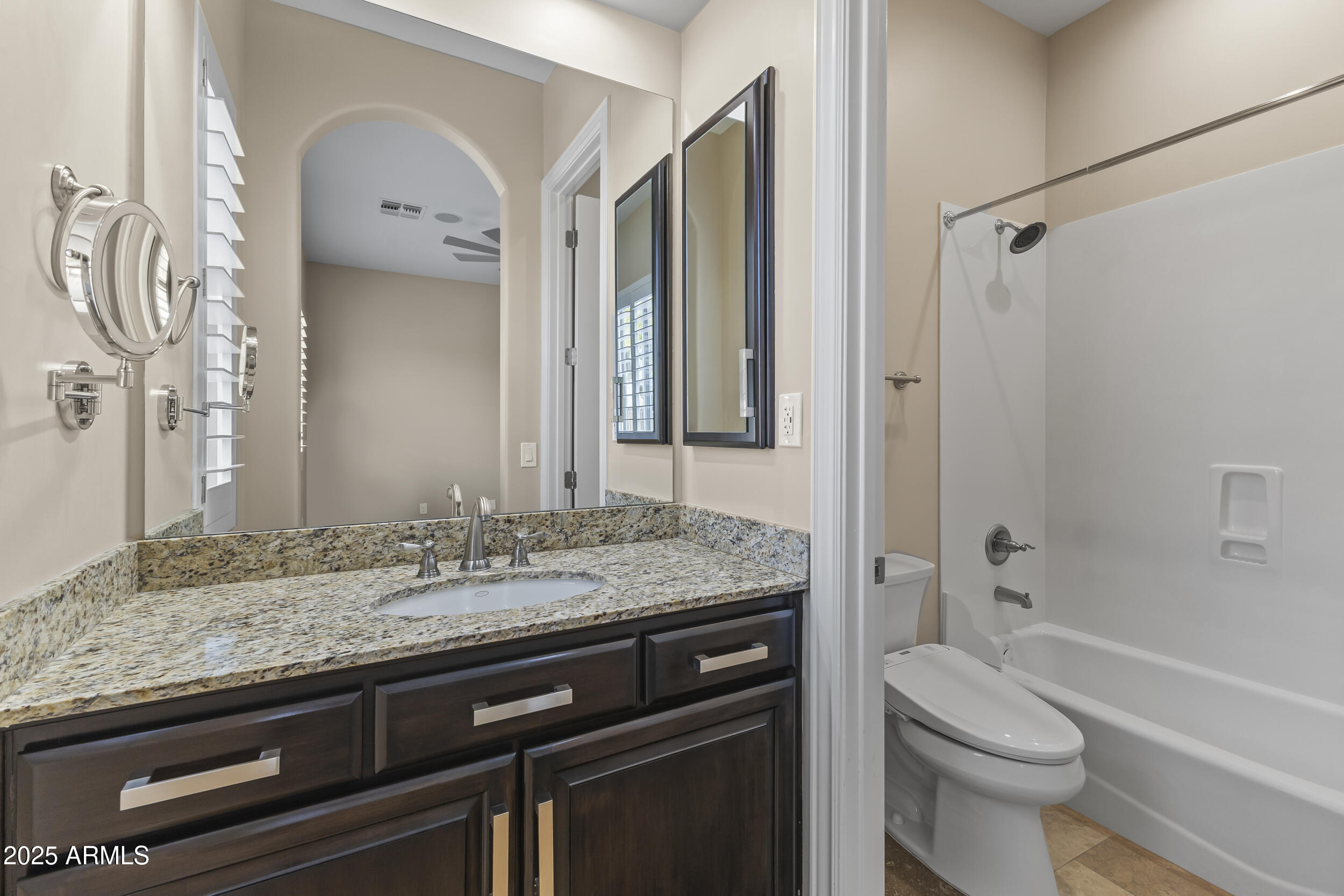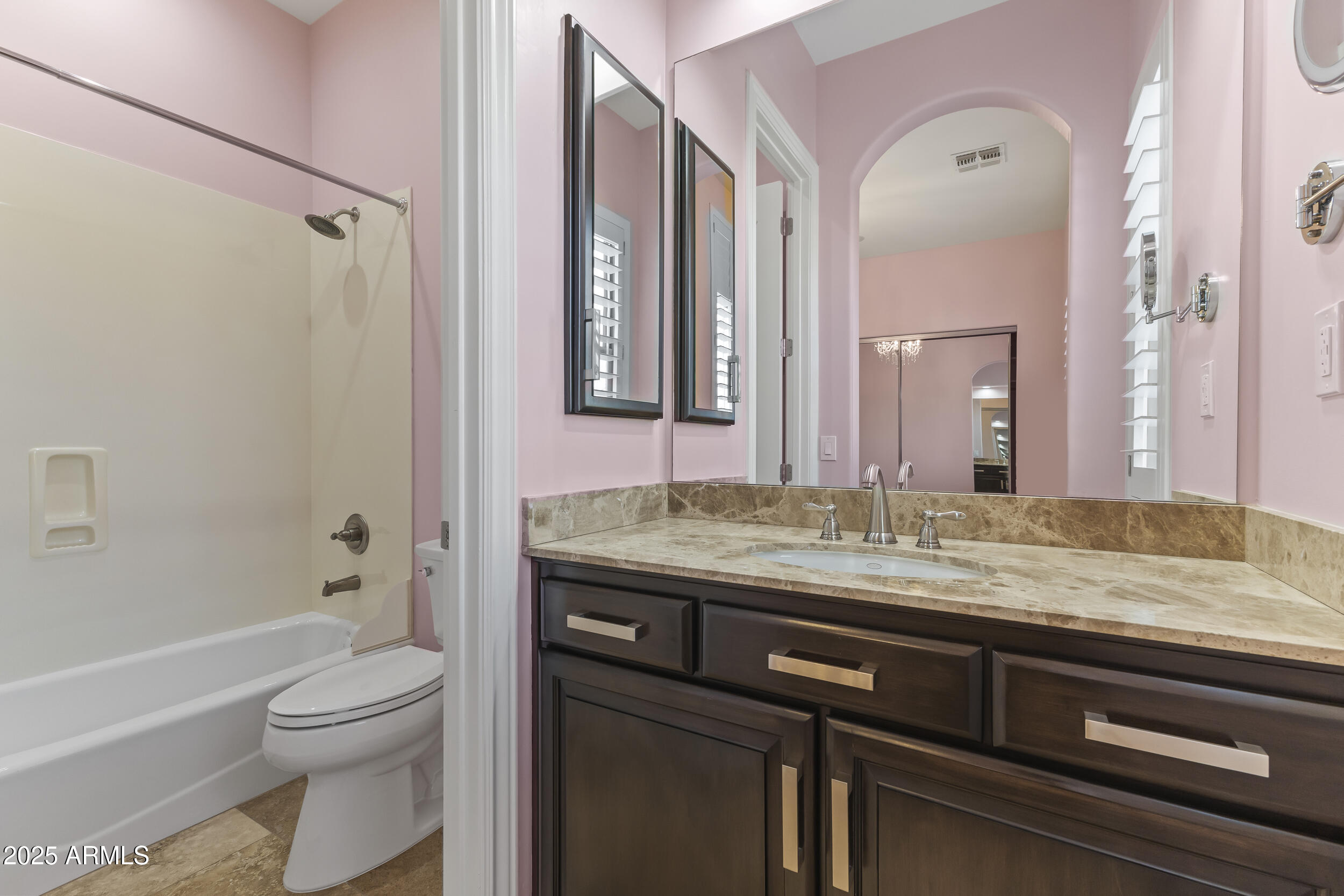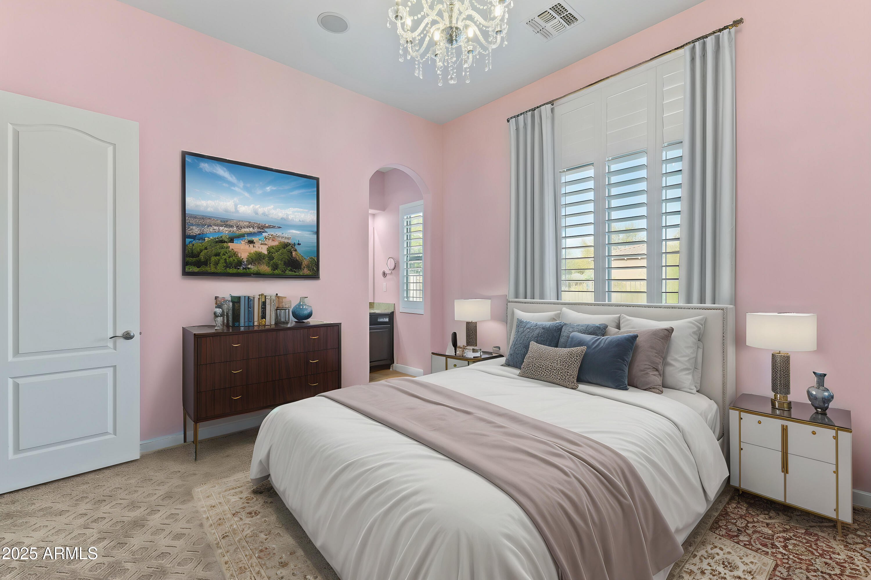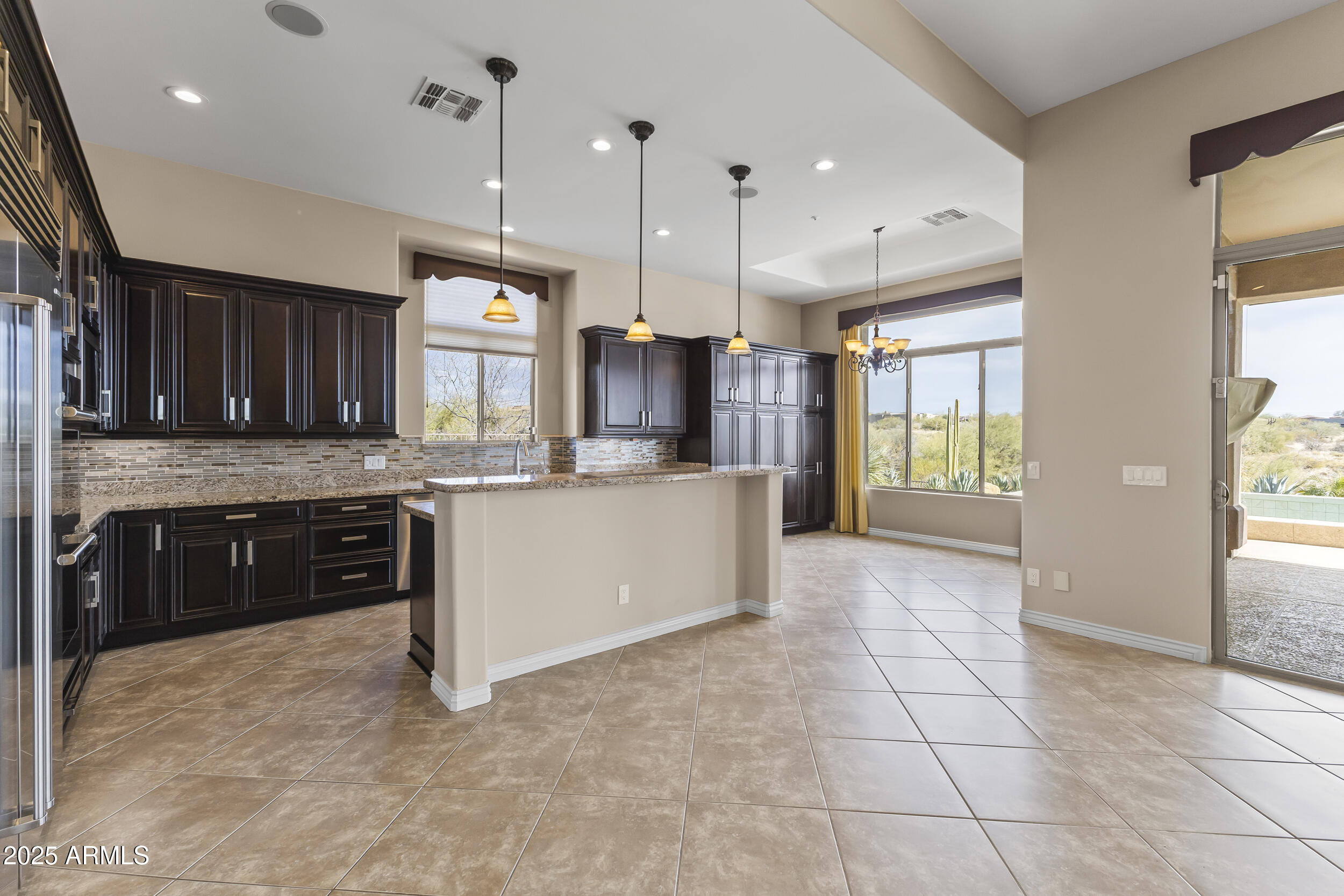 Discover luxury living with priceless views in this exquisite single-level home set on a sprawling 1.8-acre lot in Treviso East, a Toll Brothers community. Thoughtfully designed with attention to detail and showcasing numerous upgrades, this residence is filled with natural light, featuring expansive windows that perfectly frame breathtaking views. The gourmet kitchen is the showpiece, featuring a Dual Wolf range, Sub-Zero refrigerator, pull-out cabinetry, a large island, walk-in pantry, formal dining room, and a cozy breakfast nook. Kitchen opens up to the spacious living area that faces the views and features towering ceilings, entrance to the patio, fireplace as well as wet bar! The split floor plan offers an oversized primary suite with a sitting area, fireplace, and two luxurious custom closets with thousands spent on creating a truly organized masterpiece. A sizable office with extensive cabinetry and French doors that could be turned into a fourth bedroom enhances functionality, while each additional bedroom includes an en-suite bath. Additional upgrades include custom chandeliers, expansive closet built-ins, new pool equipment, new pool upgrades, and fresh interior paint, enhancing the overall appeal of this remarkable property. Perfect for guests, the attached casita features a private entrance, walk-in closet, and full bath. Step outside to an entertainer's dream, complete with a newly renovated heated lap pool, heated spa, expansive covered patio, outdoor fireplace, and unparalleled panoramic views. For car enthusiasts, the garage is equipped with a mini-split system to keep exotic cars cool and protected from the heat. Additional organized closet space can be found in the office/bedroom and garage, ensuring storage is effortless and well-structured. Other features include exterior cameras, a full-house alarm system, and new blinds and drapes. Treviso offers not just a home but an exclusive lifestyle. The community is family-oriented and currently expanding its recreational facilities with the addition of bocce and pickleball courts. Residents also enjoy access to tennis courts, a ramada, and a playground, making it the ideal setting for both relaxation and activity.