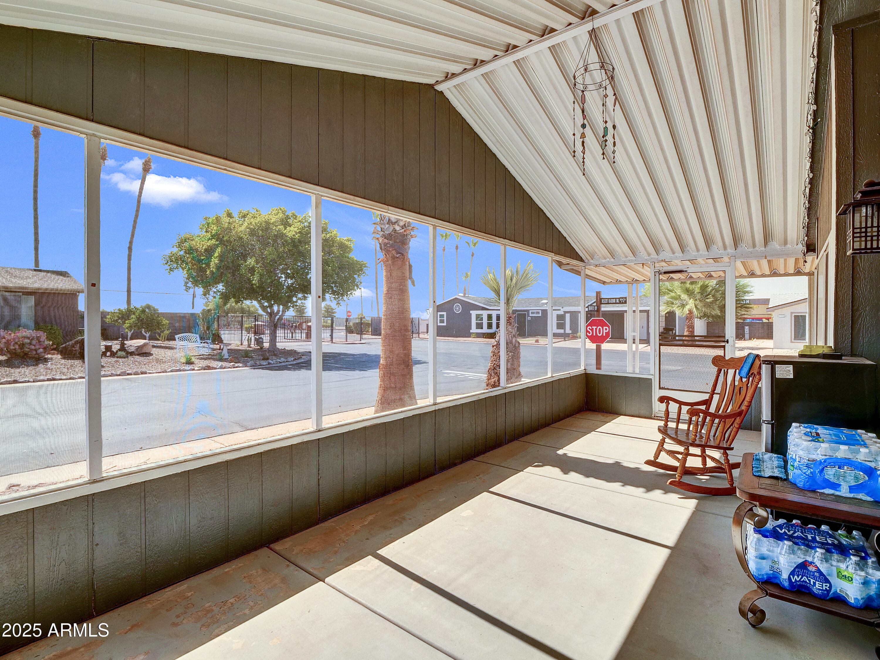 Discover comfort, charm, and community in this beautifully maintained 2-bedroom, 2-bath manufactured home located in the sought-after 55+ gated Desert Harbor community of Apache Junction. Perfectly positioned on a premium corner lot with mature palm trees and low-maintenance desert landscaping, this home offers a peaceful blend of indoor comfort and outdoor living.Enjoy mornings or sunsets from the spacious screened-in Arizona room, designed for relaxing without the desert heat. A full-length covered carport and additional patio area provide plenty of space for entertaining, hobbies, or simply enjoying the tranquil setting.