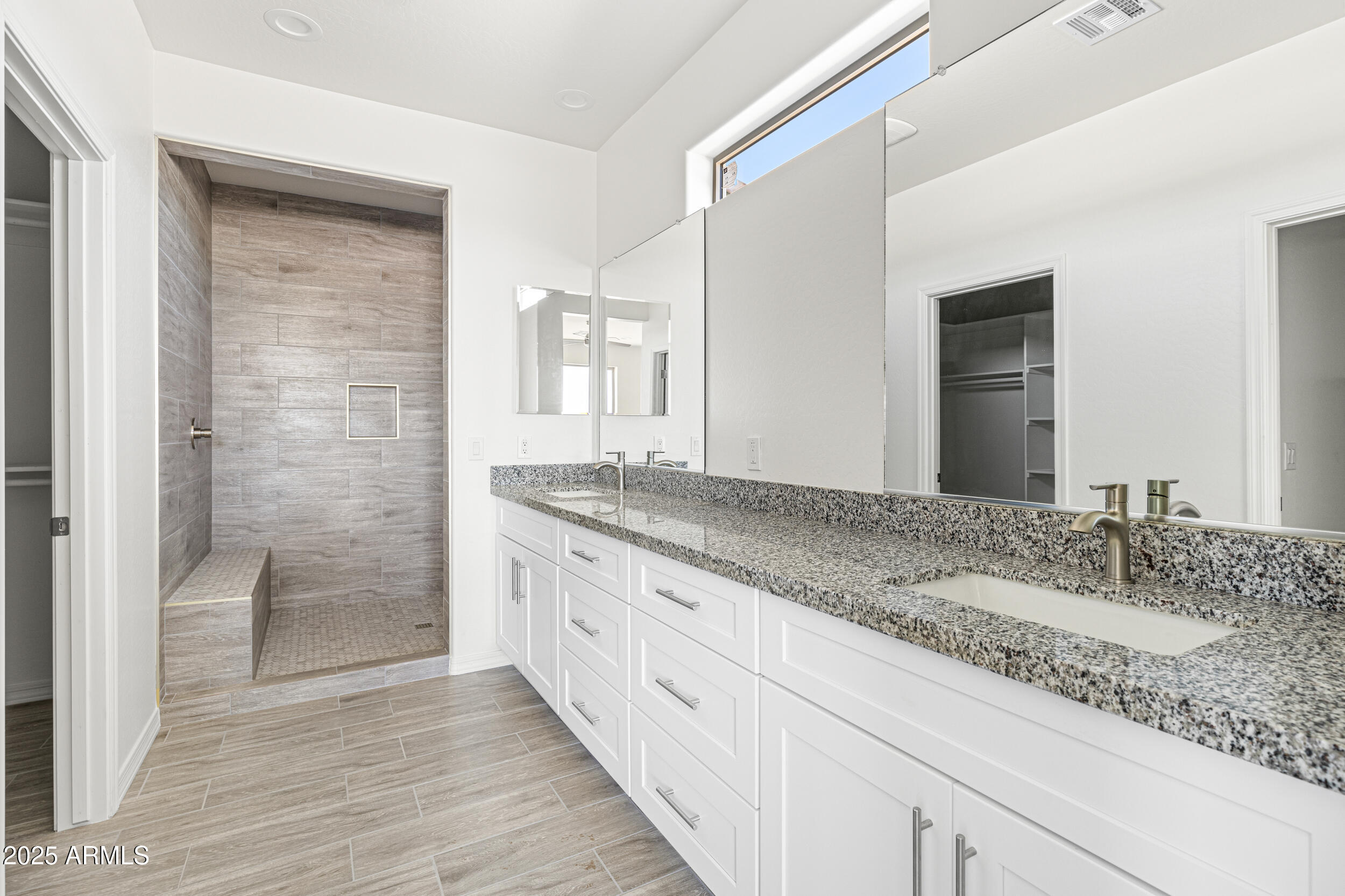 The main bedroom is a peaceful retreat with a big walk-in closet and a bathroom that has double sinks, a fully tiled walk in