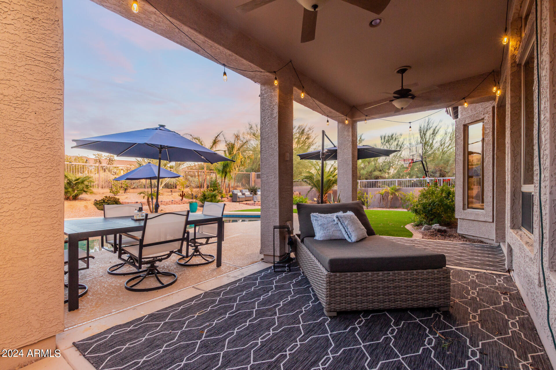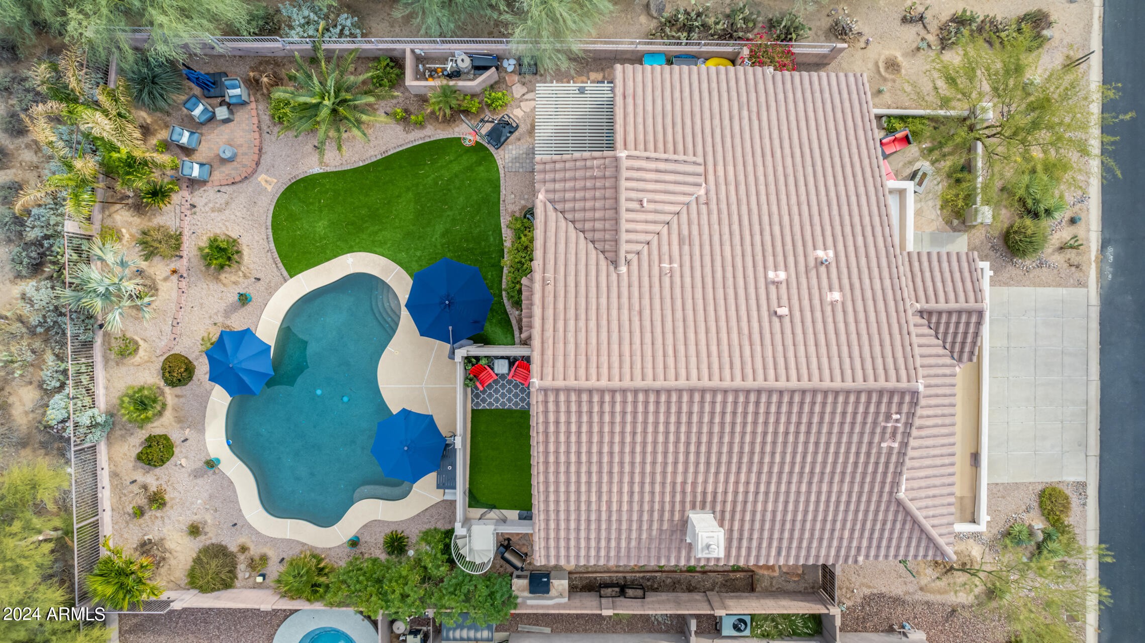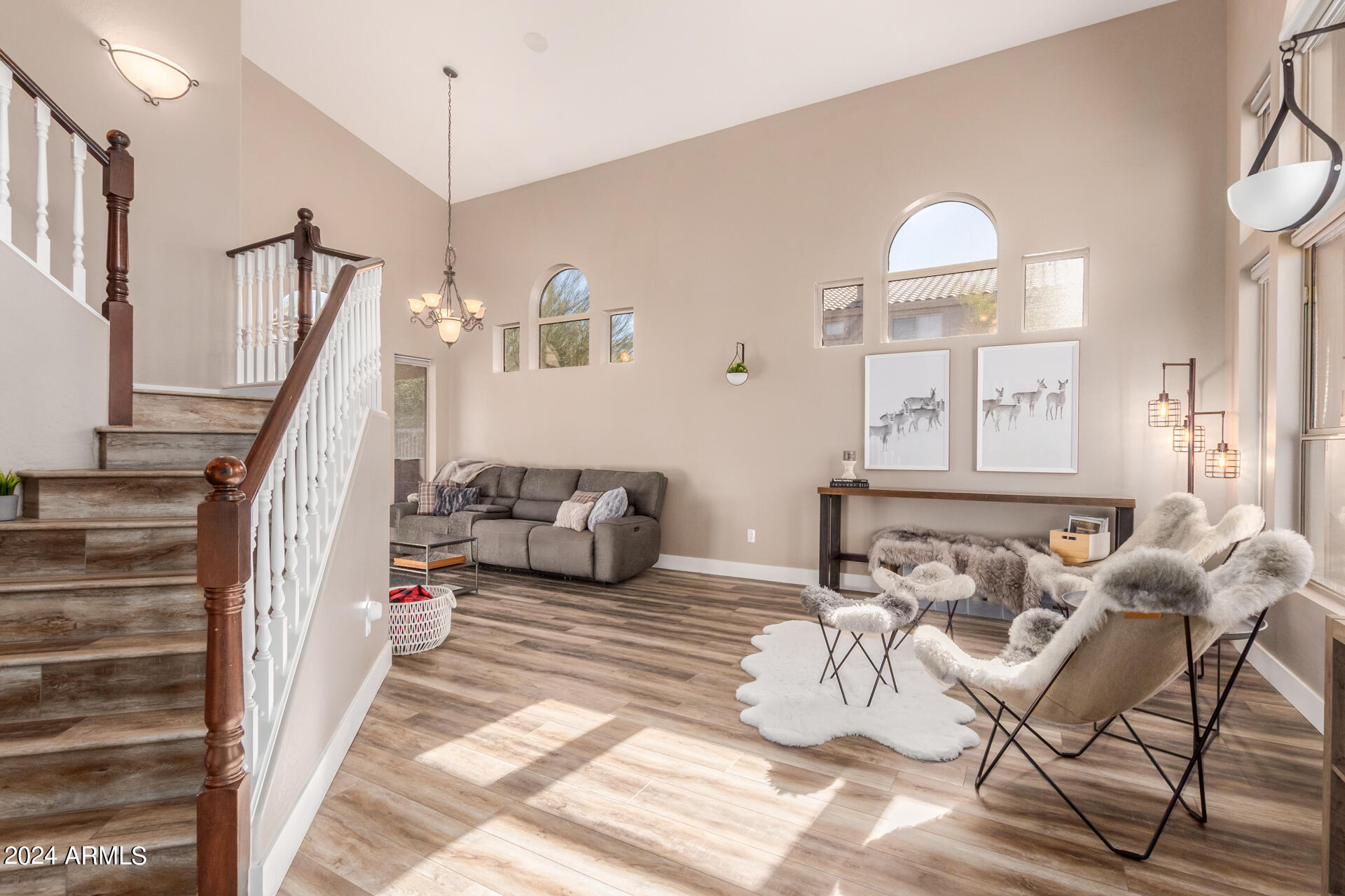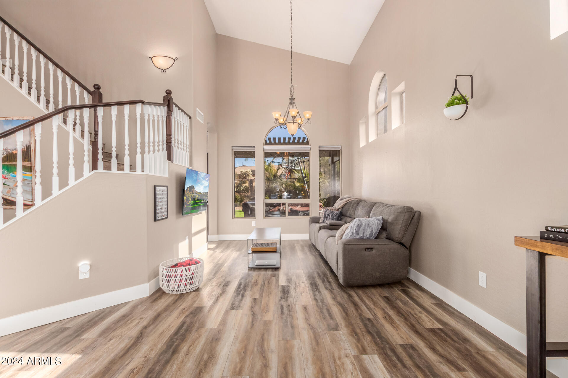 Stunning 4 bed + den, 3 bath, 3 car garage Blandford home in Las Sendas, in a gated community, situated on the 17th tee of the golf course is a dream come true! This move-in ready home has been lovingly upgraded with over $130,000 invested within the last two years, both inside the home and on the property grounds. Upgrades include 2 new HVAC units, new flooring, fresh interior paint, new appliances, new pool equipment, landscaping and so much more--ask your agent for the detailed upgrades list! Prepare to be impressed by an exquisite interior offering gleaming wood-look floor, high ceilings, soothing color palette, charming arched doorways, & dazzling light fixtures. Downstairs you'll find a bedroom AND full bath, and multiple entertainment spaces! (See more...) The impressive kitchen is the heart of the home, with plenty of counter space, granite counters, a center island complete w/ breakfast bar, a convenient built-in desk, multiple pantries, SS appliances, and fantastic views to your resort like backyard. The remarkable main retreat showcases soft carpet throughout, an adjoining office/bonus area (which could be converted to a fifth bedroom with a closet by it's future owner), private outdoor access with a spacious balcony and impressive views, a delightful two-way fireplace, & an immaculate ensuite with dual vanities. Two additional spacious bedrooms, one with a walk-in closet, and a full bath upstairs complete the indoor space. The spectacular backyard includes a sparkling pebble finish swimming pool, all new landscaping in front & back (under warranty) & a lovely deck displaying mountain views, complete the picture of this oasis! Homes and neighborhoods like this one are hard to come by. Minutes away from Saguaro Lake, Salt River and Tonto National Forest. Las Sendas features two community pools, spas, splash pad, multiple parks, tennis, pickleball, and bocce ball courts, walking/biking paths & groups/clubs for everyone!