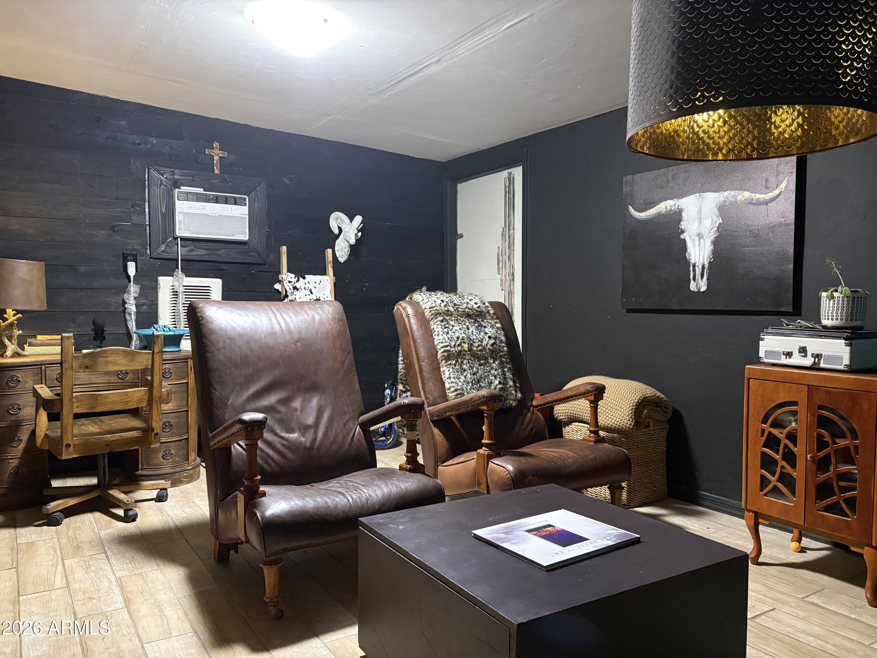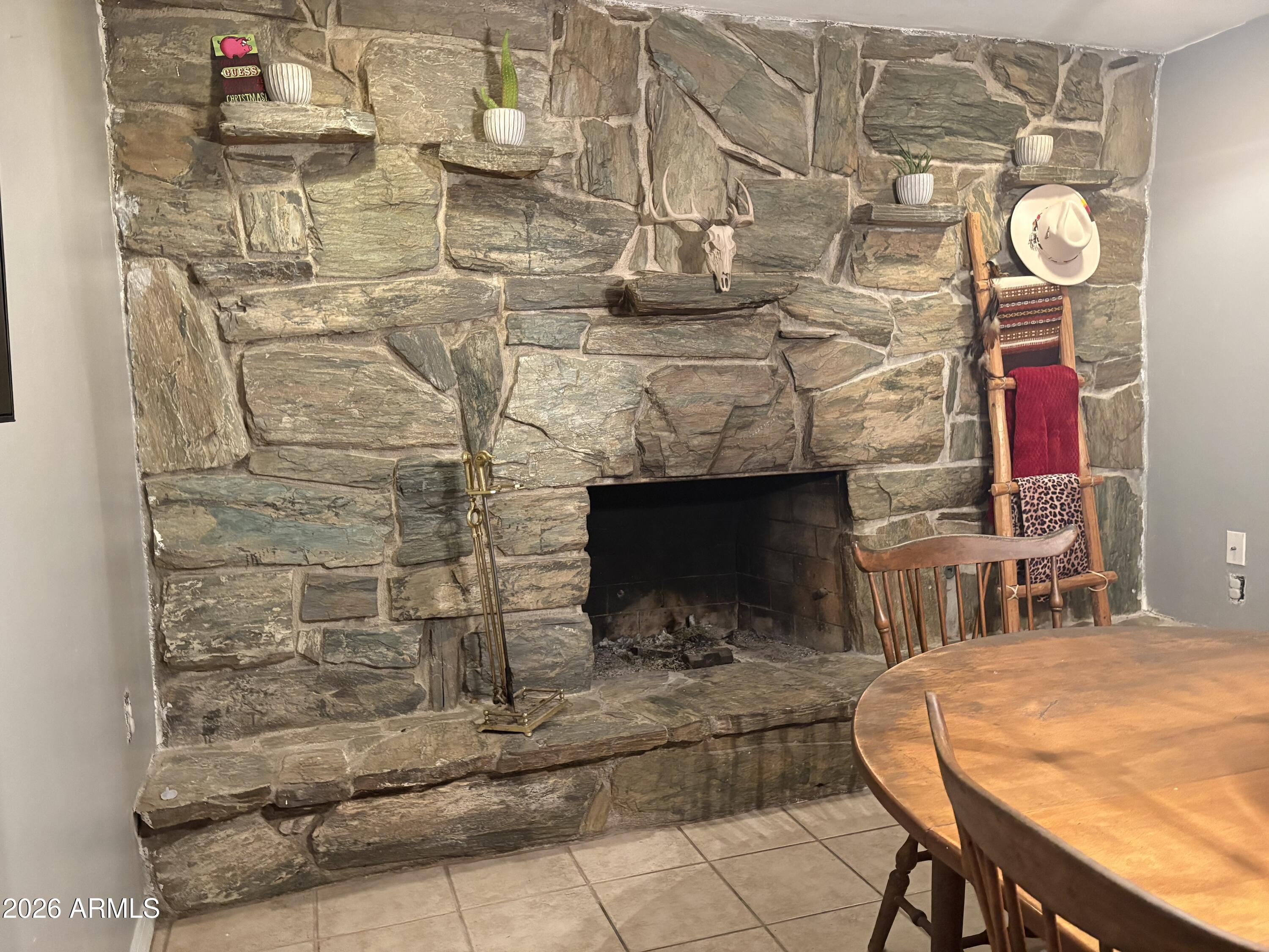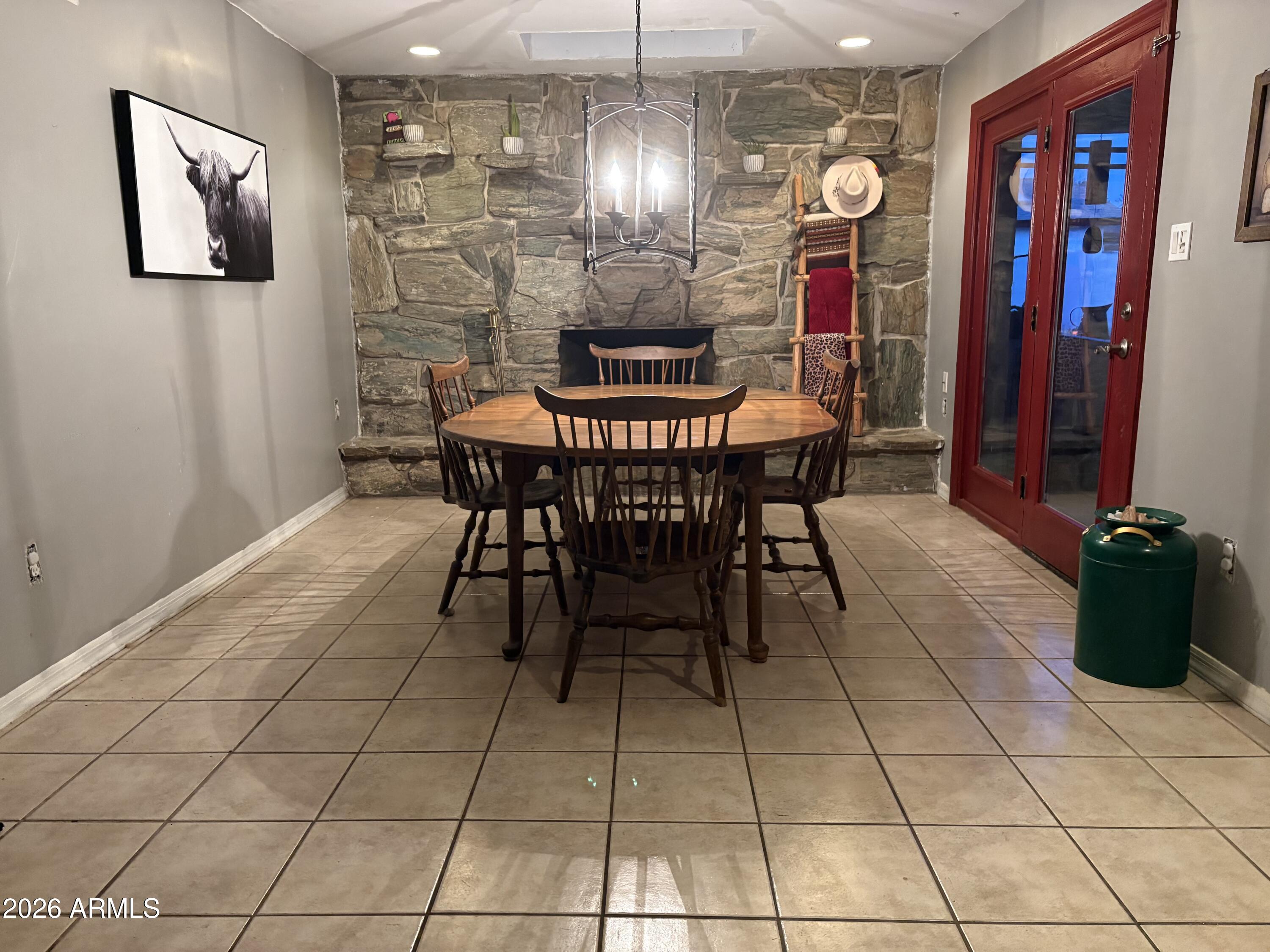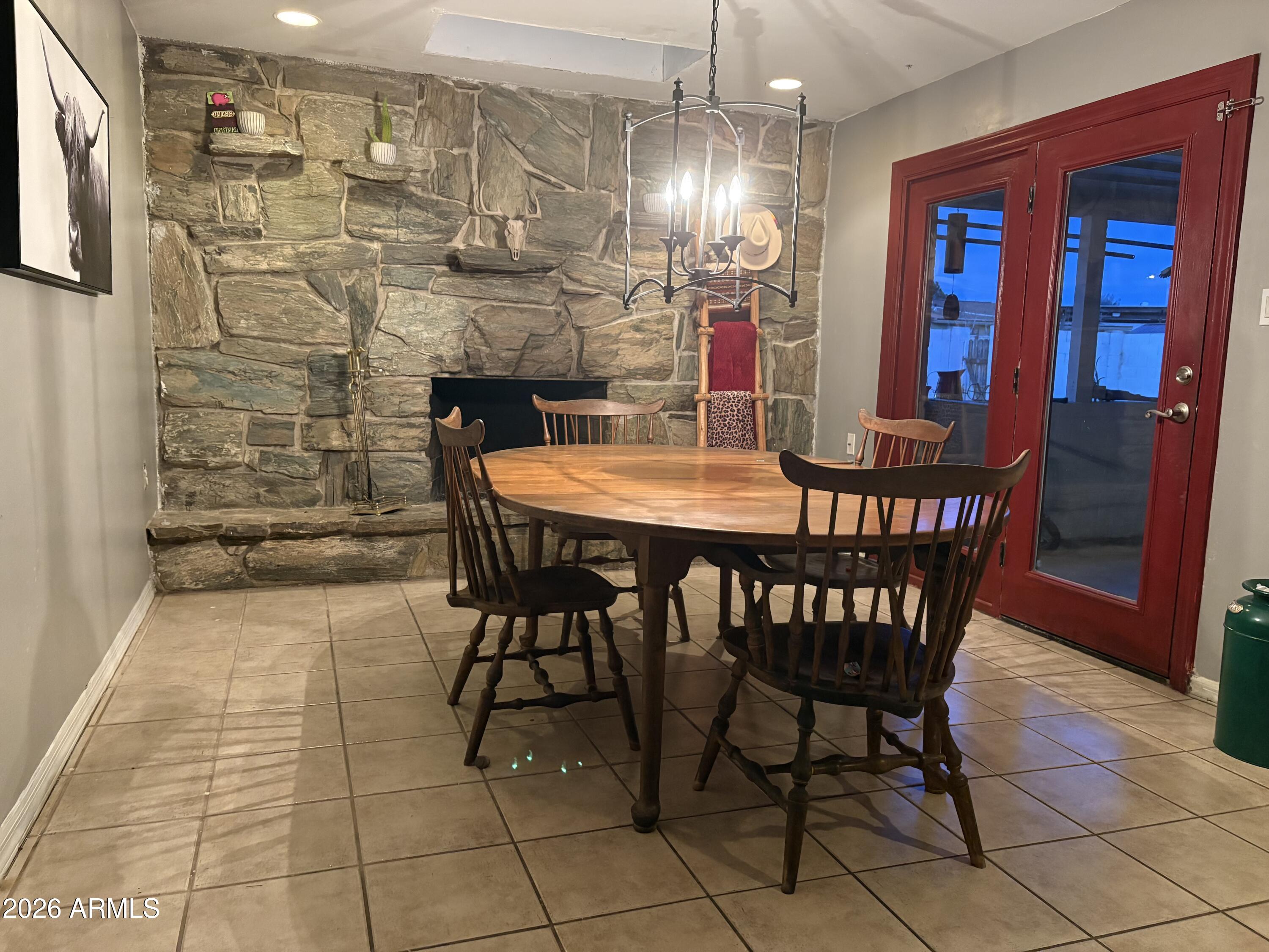 Single-level, block-construction 3 bedroom, 2 bath pool home with no HOA on a corner lot. Functional layout offers spacious bedrooms, multiple living areas, and a large bonus room suitable for a home office, game room, or flex space. Interior features include tile flooring in main living areas, a wood-burning fireplace, and French doors opening to an extended covered patio. Backyard includes a private diving pool, built-in BBQ, block fencing, and low-maintenance desert landscaping. North/south exposure and rear alley access. Conveniently located near shopping, dining, schools, and freeway access. Buyer to verify all facts, figures, and measurements.
