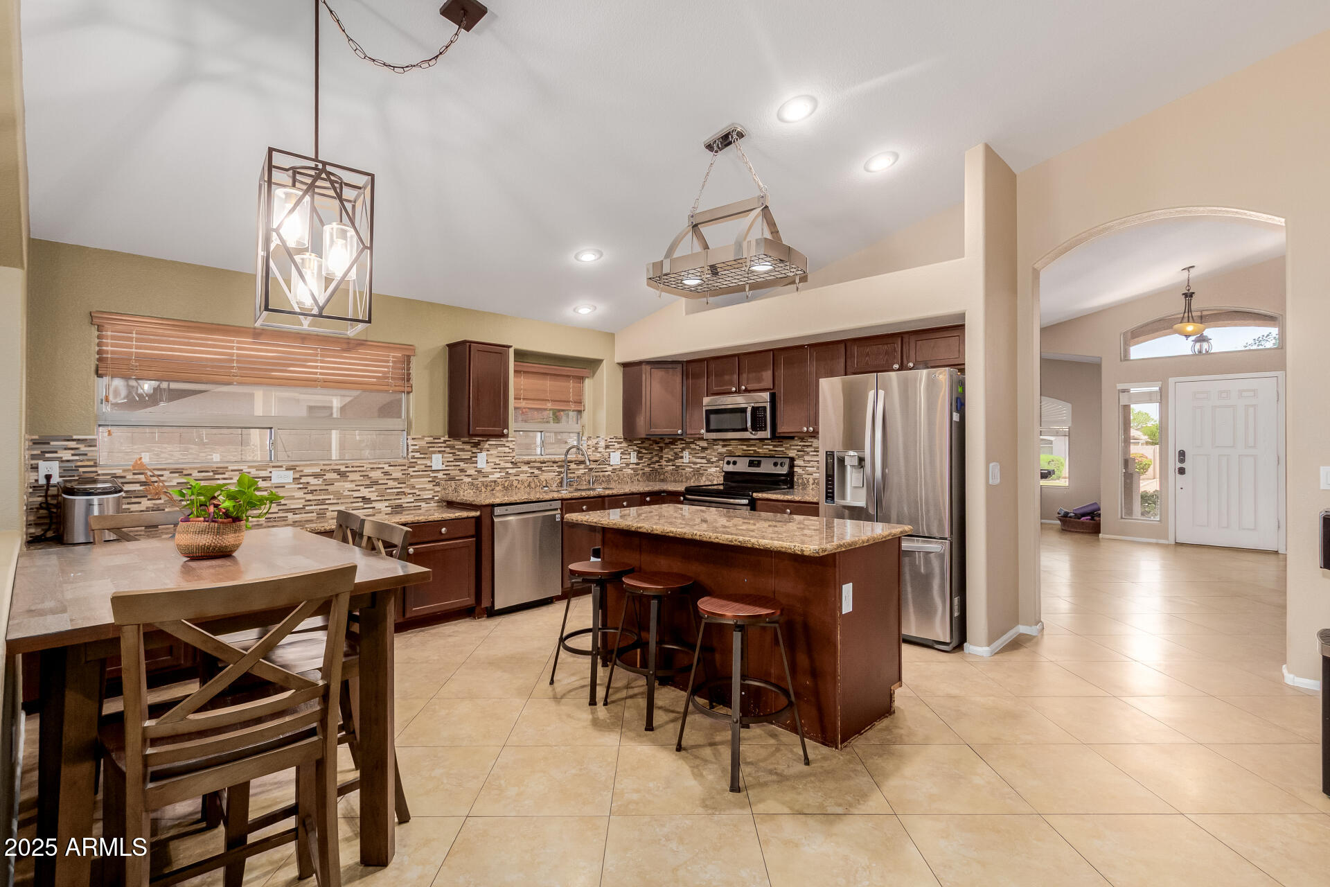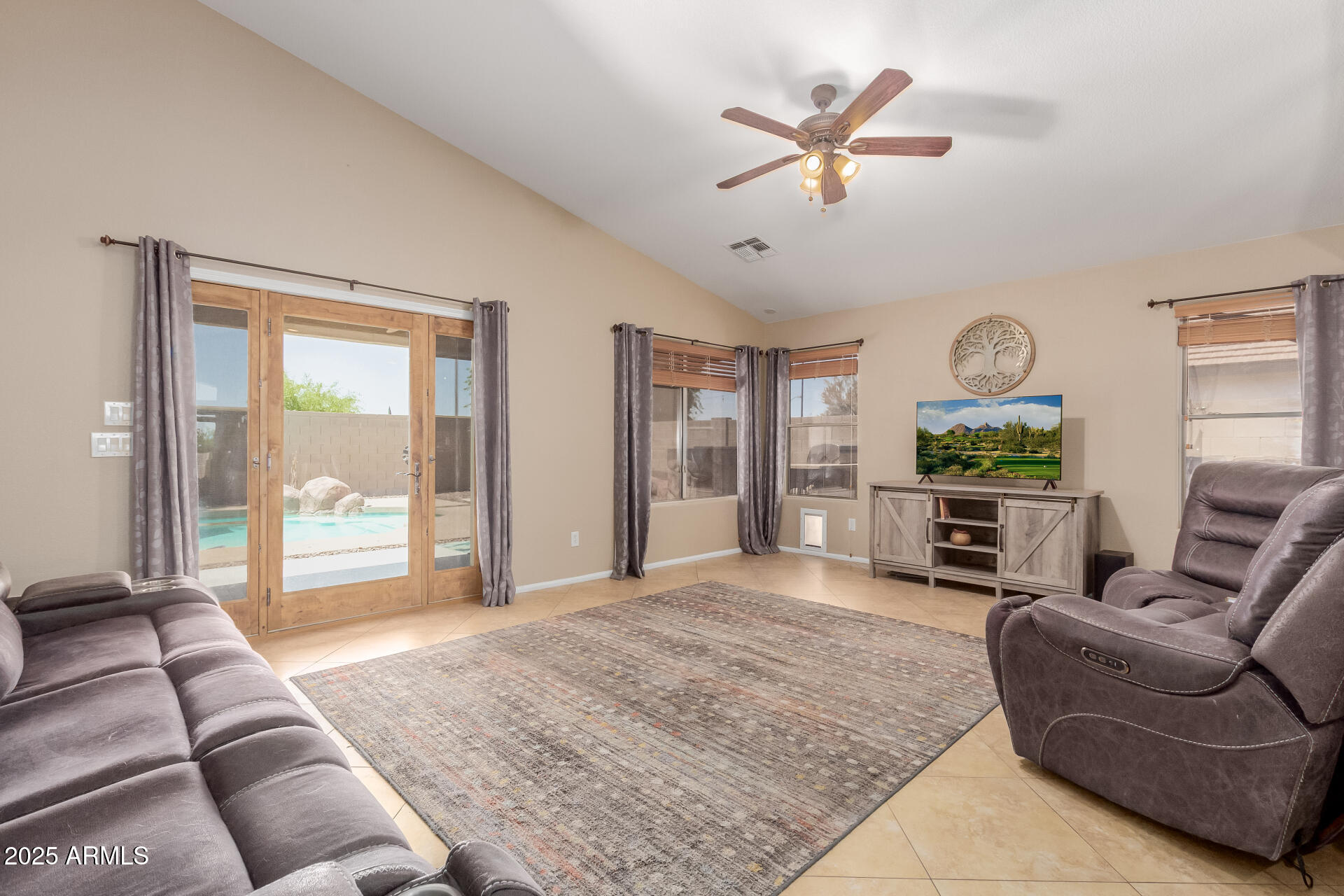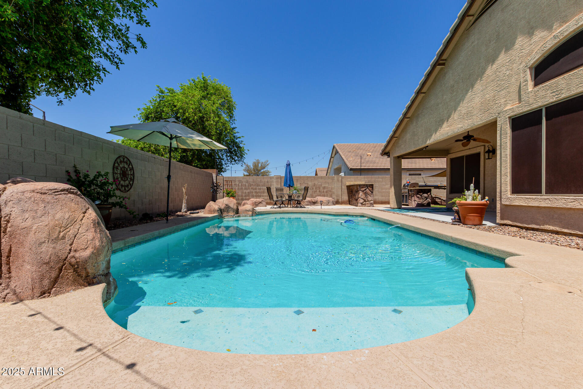 Own a desirable 4-bed, 2-bath home nestled in the desirable Community of Coronado Ranch. Displaying a 2-car garage, an RV gate, & mature trees for shade. Bright & charming interior showcasing vaulted ceilings, tile flooring, large windows, & a welcoming living/dining room. The family room opens to the backyard & the kitchen is fully equipped with SS appliances, wood cabinetry, tile backsplash, granite counters, a walk-in pantry, & a center island w/breakfast bar. The primary bedroom includes backyard access & a private bathroom w/dual sinks, & a walk-in closet. The backyard is perfect for entertaining, featuring a covered patio, sparkling pool, built-in BBQ, fire pit, & artificial turf. Near parks, shops, groceries, and more! This value won't disappoint!