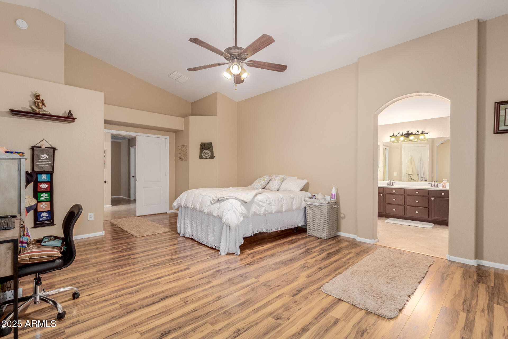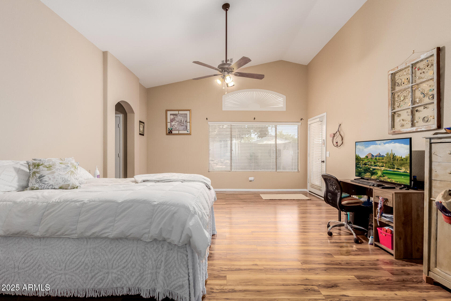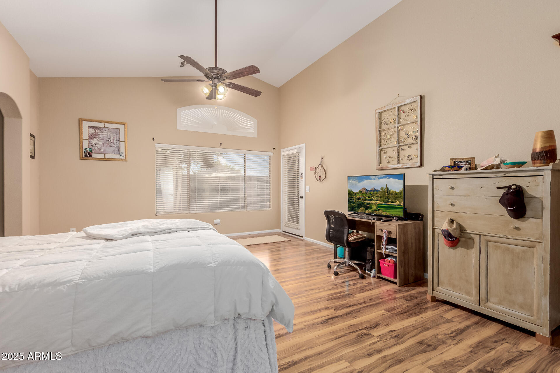 Own a desirable 4-bed, 2-bath home nestled in the desirable Community of Coronado Ranch. Displaying a 2-car garage, an RV gate, & mature trees for shade. Bright & charming interior showcasing vaulted ceilings, tile flooring, large windows, & a welcoming living/dining room. The family room opens to the backyard & the kitchen is fully equipped with SS appliances, wood cabinetry, tile backsplash, granite counters, a walk-in pantry, & a center island w/breakfast bar. The primary bedroom includes backyard access & a private bathroom w/dual sinks, & a walk-in closet. The backyard is perfect for entertaining, featuring a covered patio, sparkling pool, built-in BBQ, fire pit, & artificial turf. Near parks, shops, groceries, and more! This value won't disappoint!