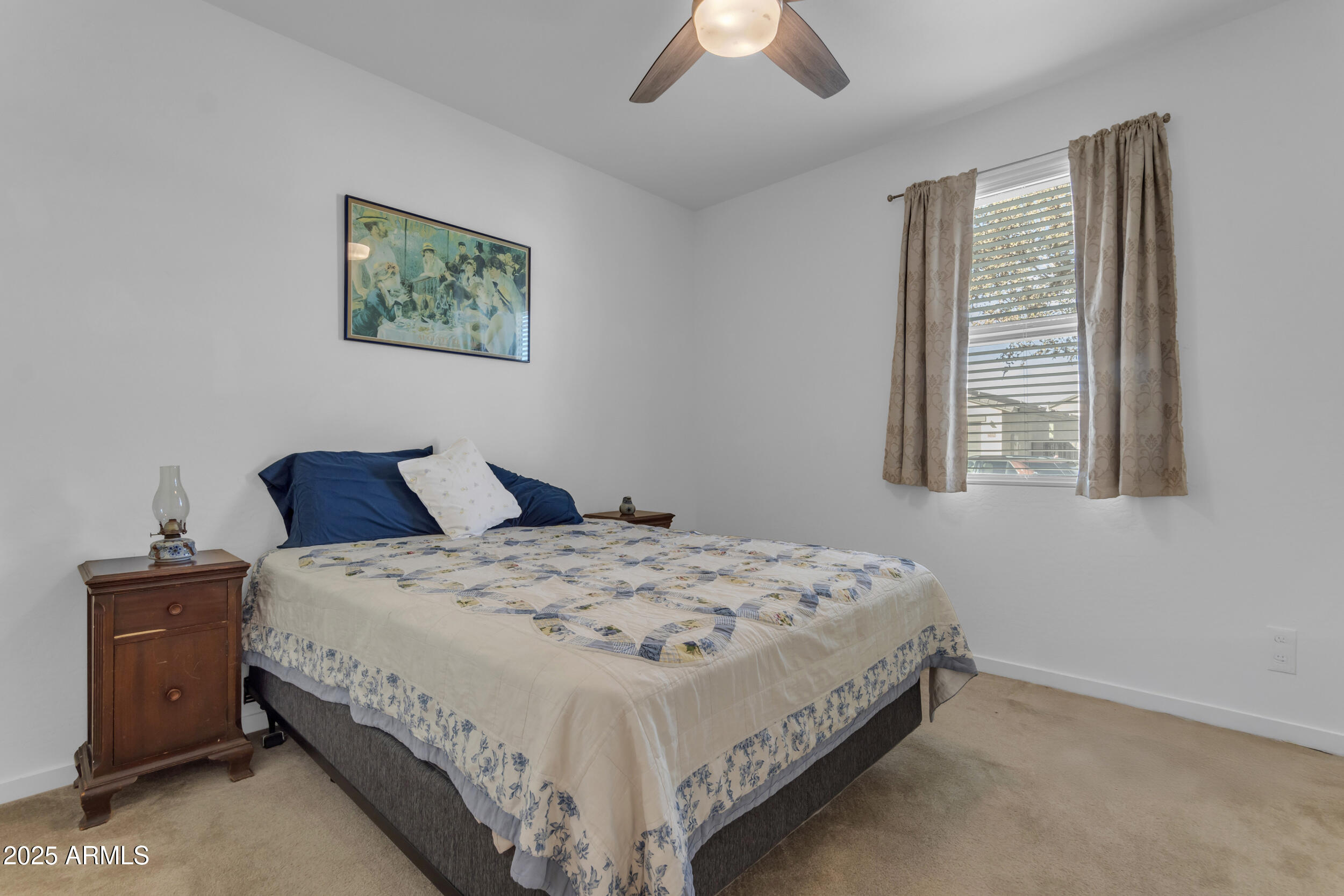 The back yard is Arizona living at its finest. The highly desirable custom extended covered patio creates an ideal space for relaxing or entertaining year round. Custom cover is Alumawood by Royal Covers of Arizona. It also features roll down sunshades for added comfort while entertaining or just relaxing and enjoying the afternoon. Combined with multiple fruit trees and a low maintenance yard, this outdoor area is both functional and inviting.