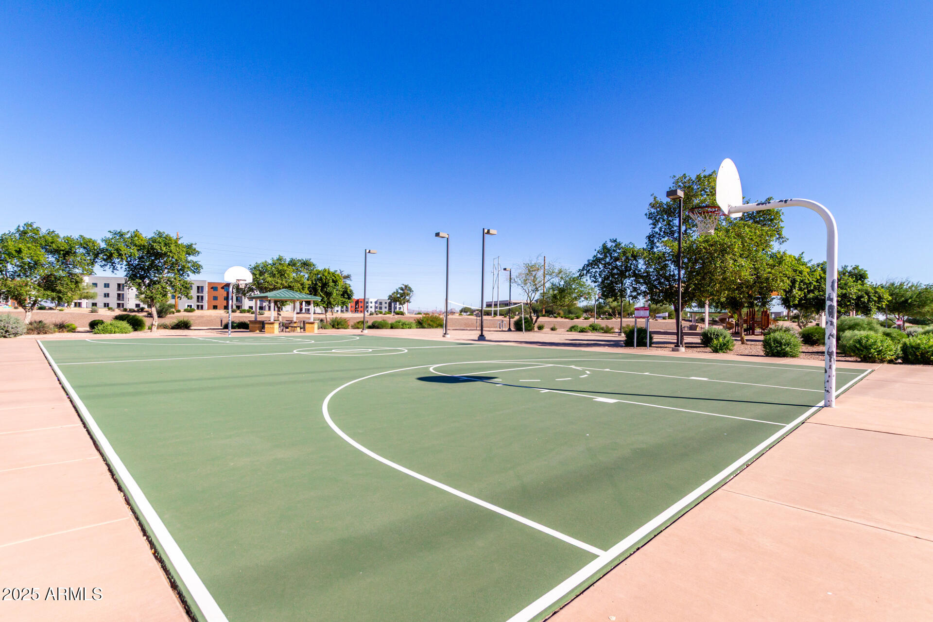 Seize the chance to own this charming 2-bedroom home in Smith Farms! You're welcomed by a versatile den, ideal for an office, a quiet study, or a cozy lounge. The serene living room features a soothing palette, blinds, and durable tile flooring for easy maintenance. Cook delicious meals in the eat-in kitchen, equipped with granite counters, recessed lighting, wood cabinetry, essential built-in appliances, and a handy pantry. The primary bedroom includes a private bathroom and a walk-in closet for an organized wardrobe. Unwind at the end of a long day in the backyard, which offers a covered patio and ample space for crafting your dream outdoor oasis. The Community boasts a basketball court, a playground, a refreshing pool, and well-maintained common areas. Don't miss out on this gem!
