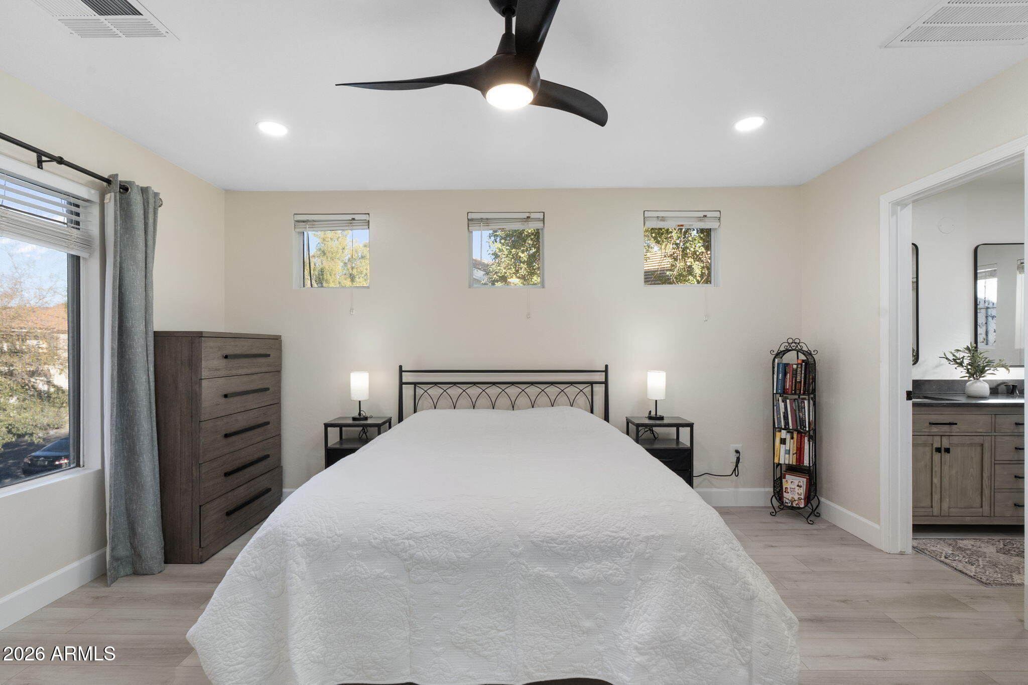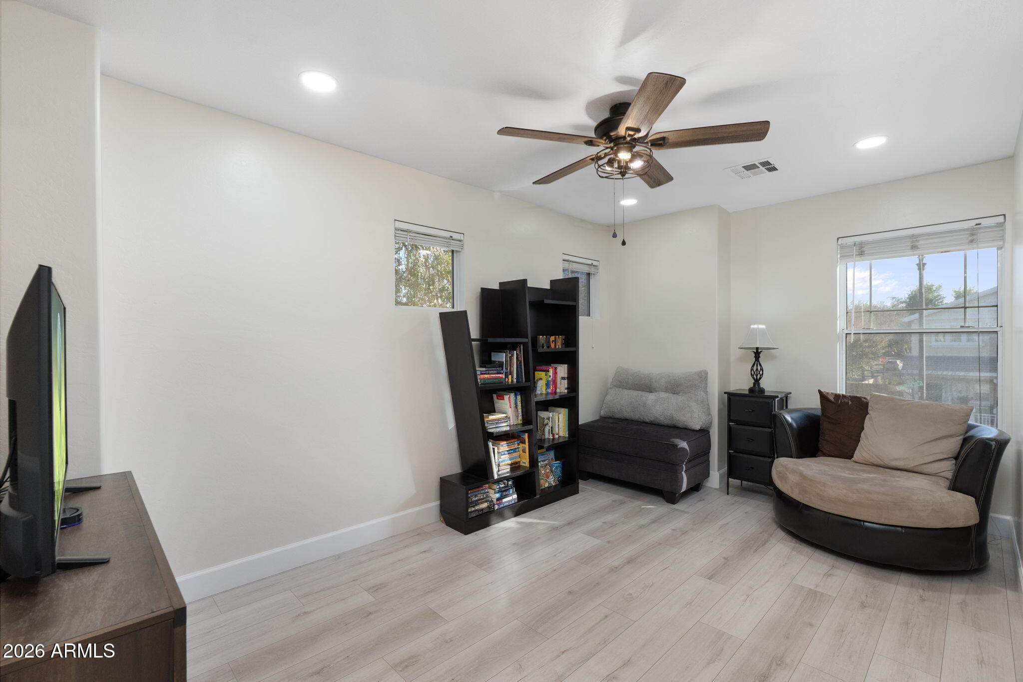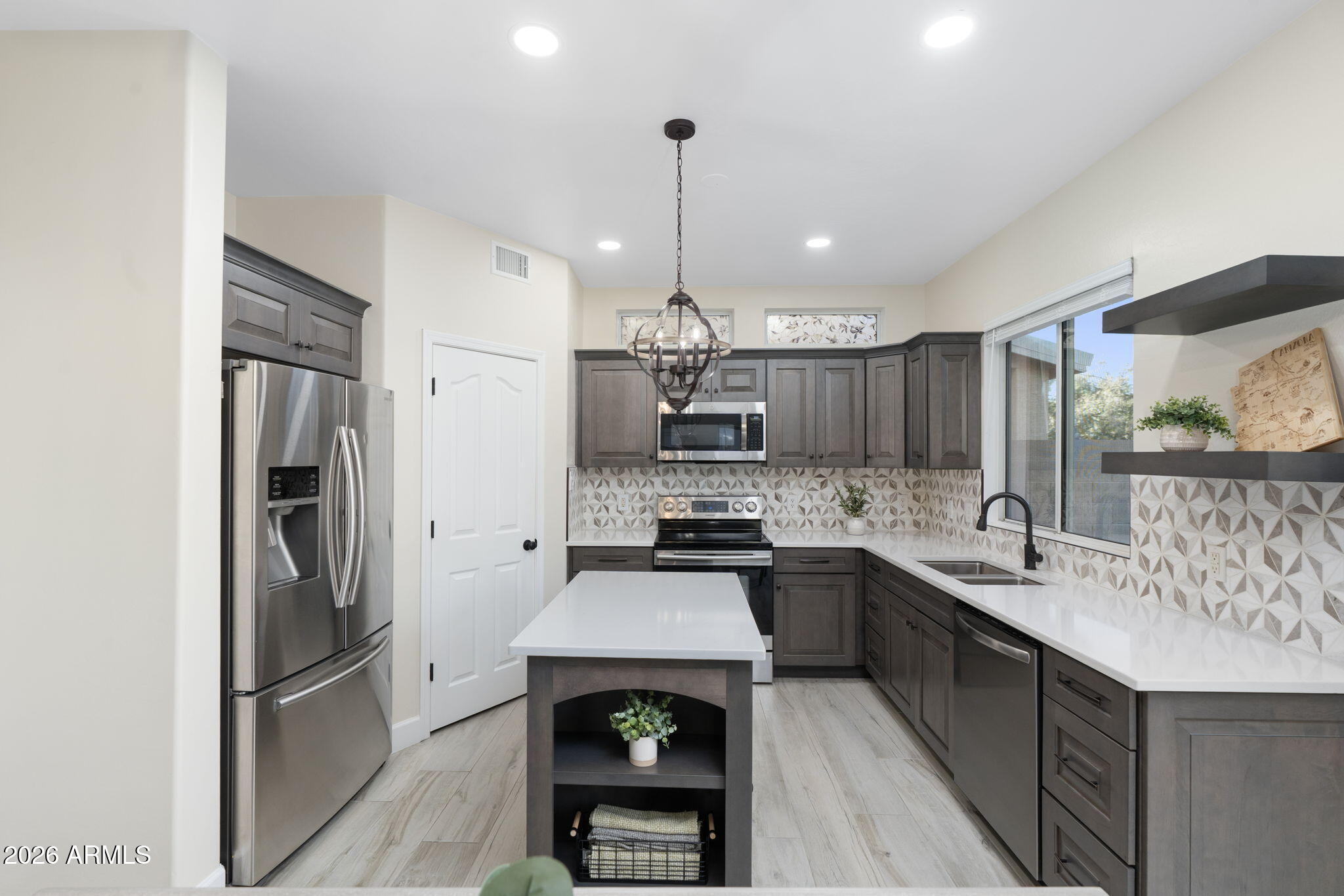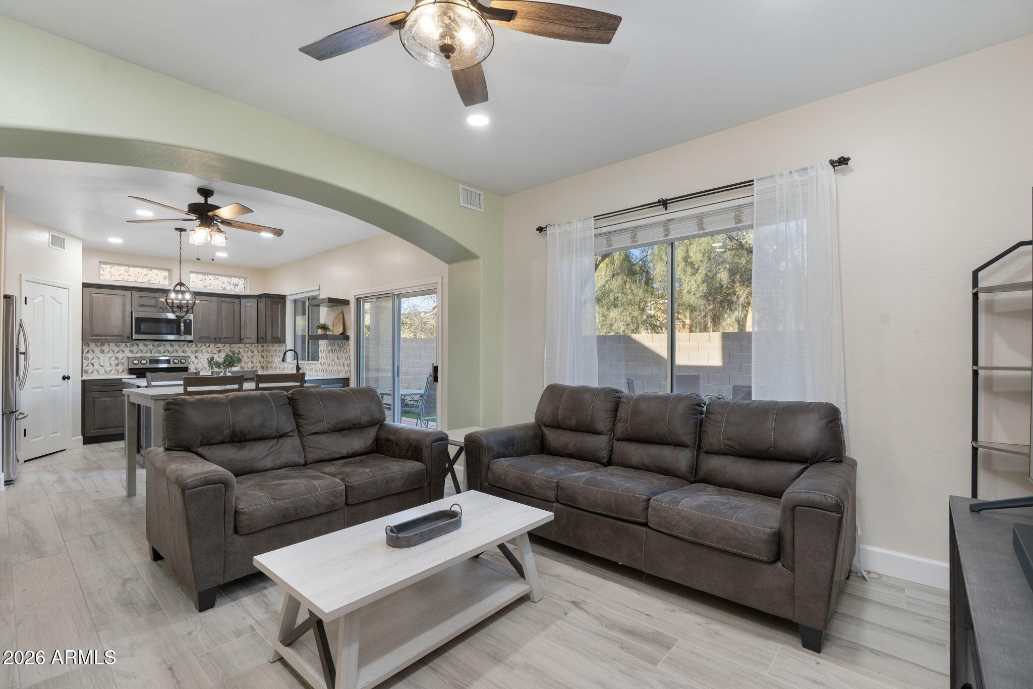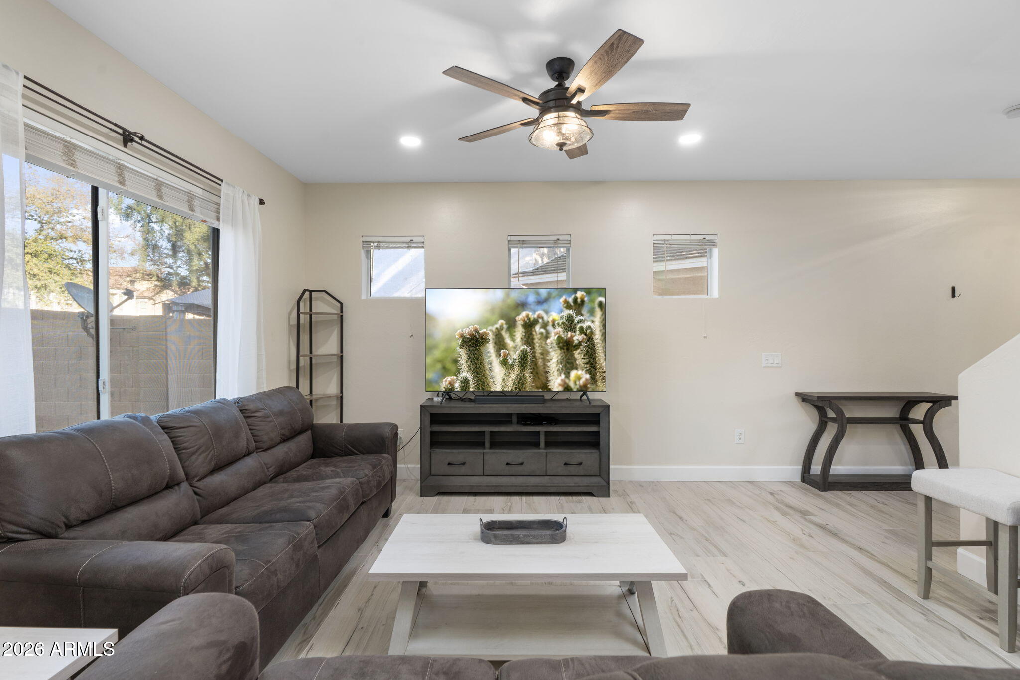 Welcome to this beautifully updated Gilbert home where modern design, thoughtful upgrades, and effortless Arizona living come together seamlessly. From the moment you enter, you're greeted by a bright, open concept floor plan designed to maximize space, flow, and natural light. NEW WOOD-LOOK TILE FLOORING (2023) on the main level and LUXURY VINYL PLANK (2023) upstairs create a cohesive and sophisticated aesthetic throughout the home, complemented by RECESSED LIGHTING (2023), MODERN LIGHT FIXTURES (2023), and FRESH INTERIOR PAINT (2023) that keeps the space feeling crisp and elevated.