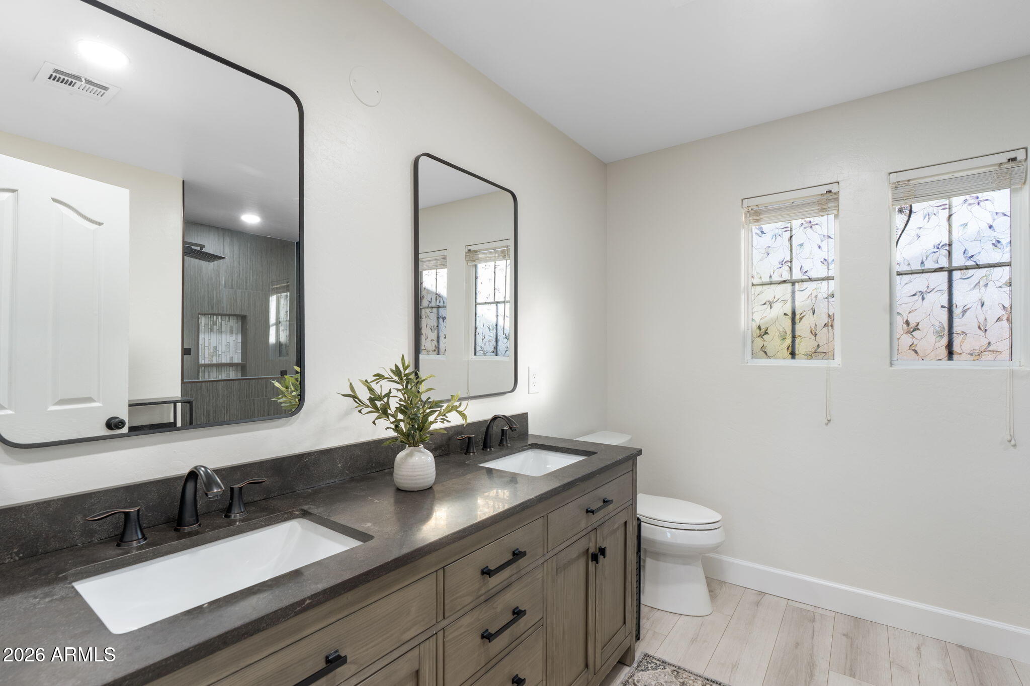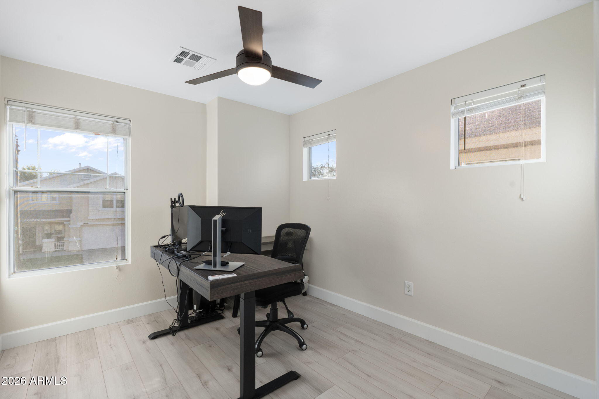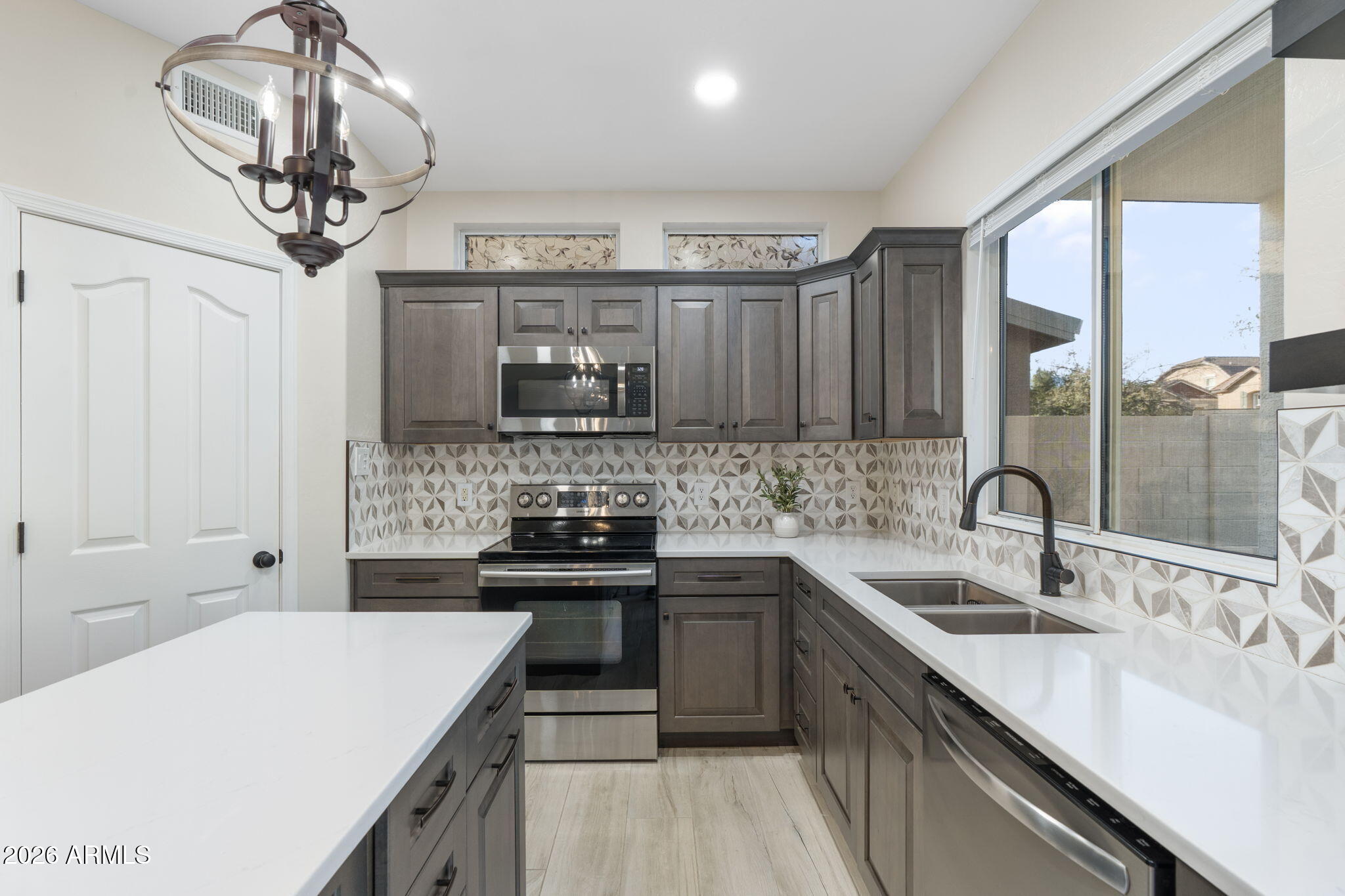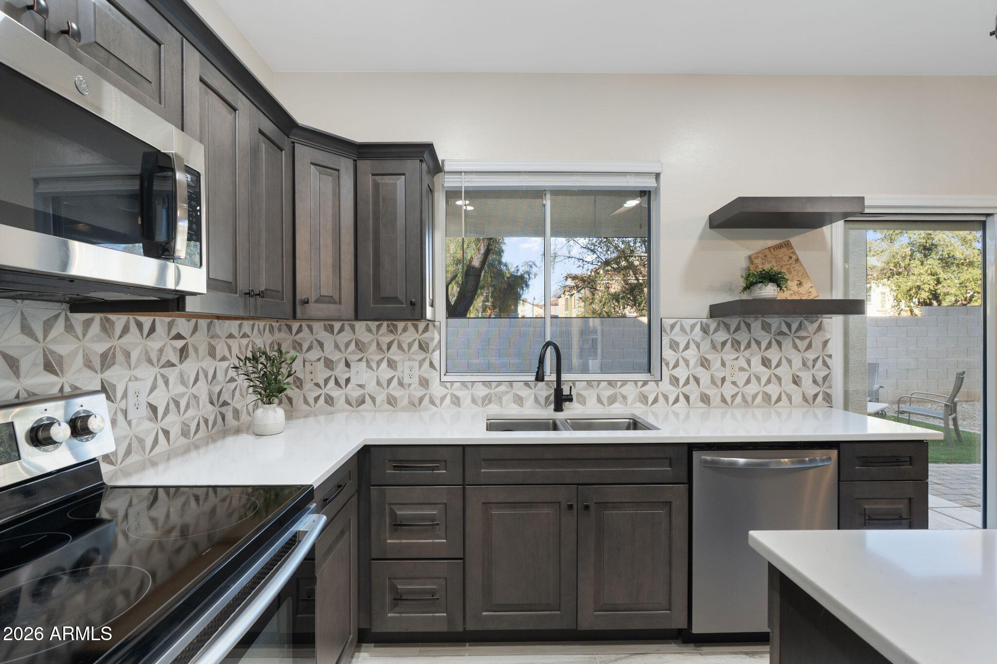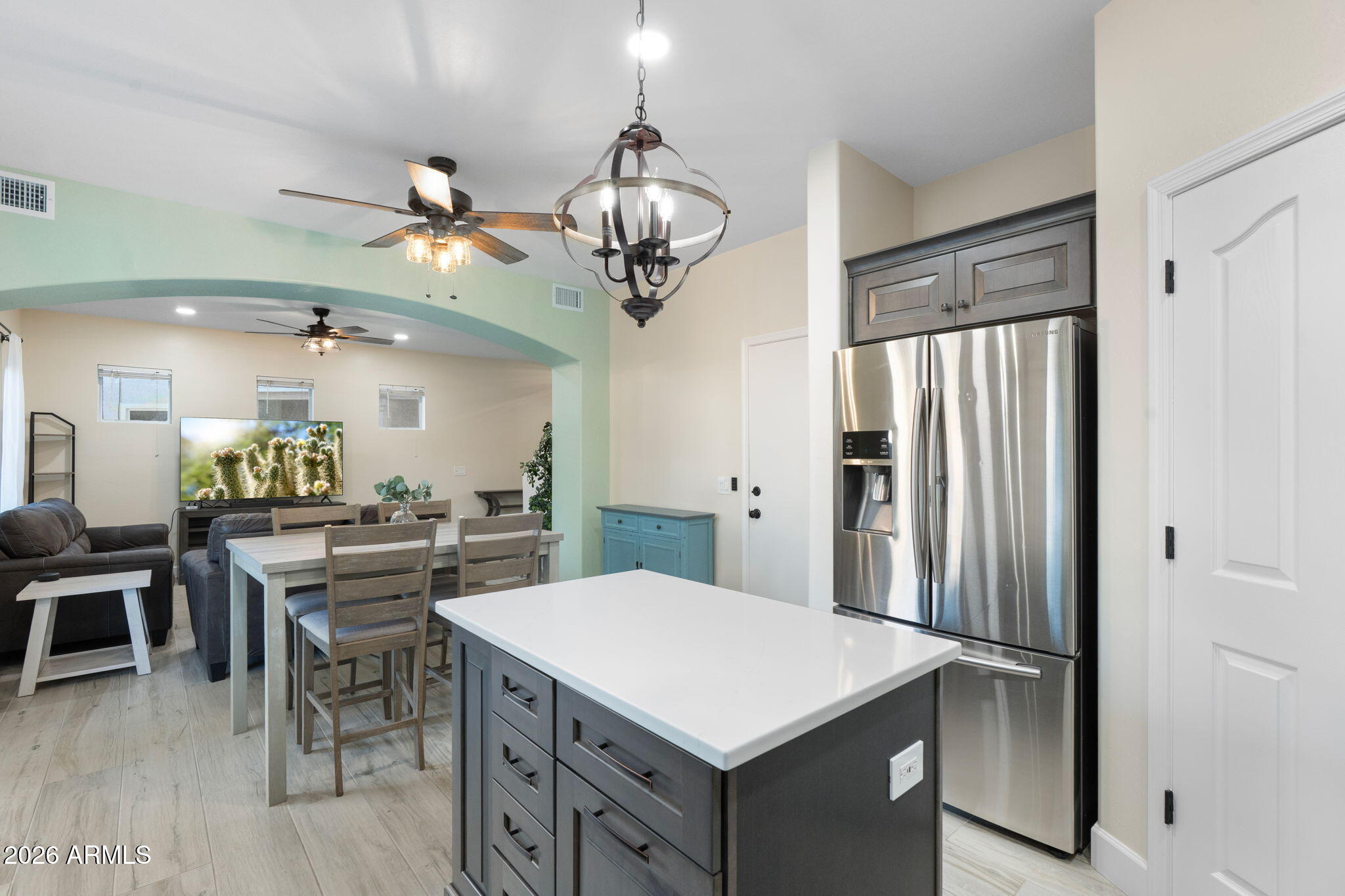 Welcome to this beautifully updated Gilbert home where modern design, thoughtful upgrades, and effortless Arizona living come together seamlessly. From the moment you enter, you're greeted by a bright, open concept floor plan designed to maximize space, flow, and natural light. NEW WOOD-LOOK TILE FLOORING (2023) on the main level and LUXURY VINYL PLANK (2023) upstairs create a cohesive and sophisticated aesthetic throughout the home, complemented by RECESSED LIGHTING (2023), MODERN LIGHT FIXTURES (2023), and FRESH INTERIOR PAINT (2023) that keeps the space feeling crisp and elevated.