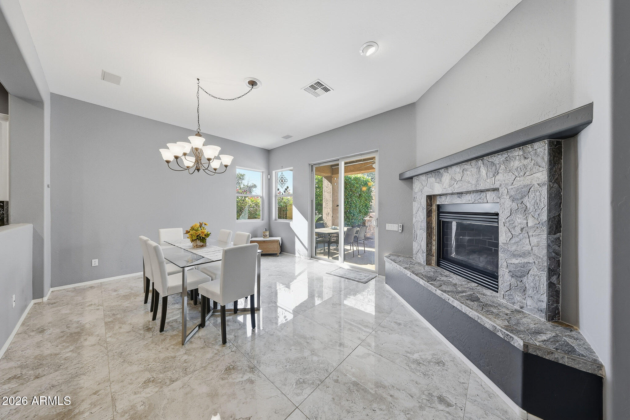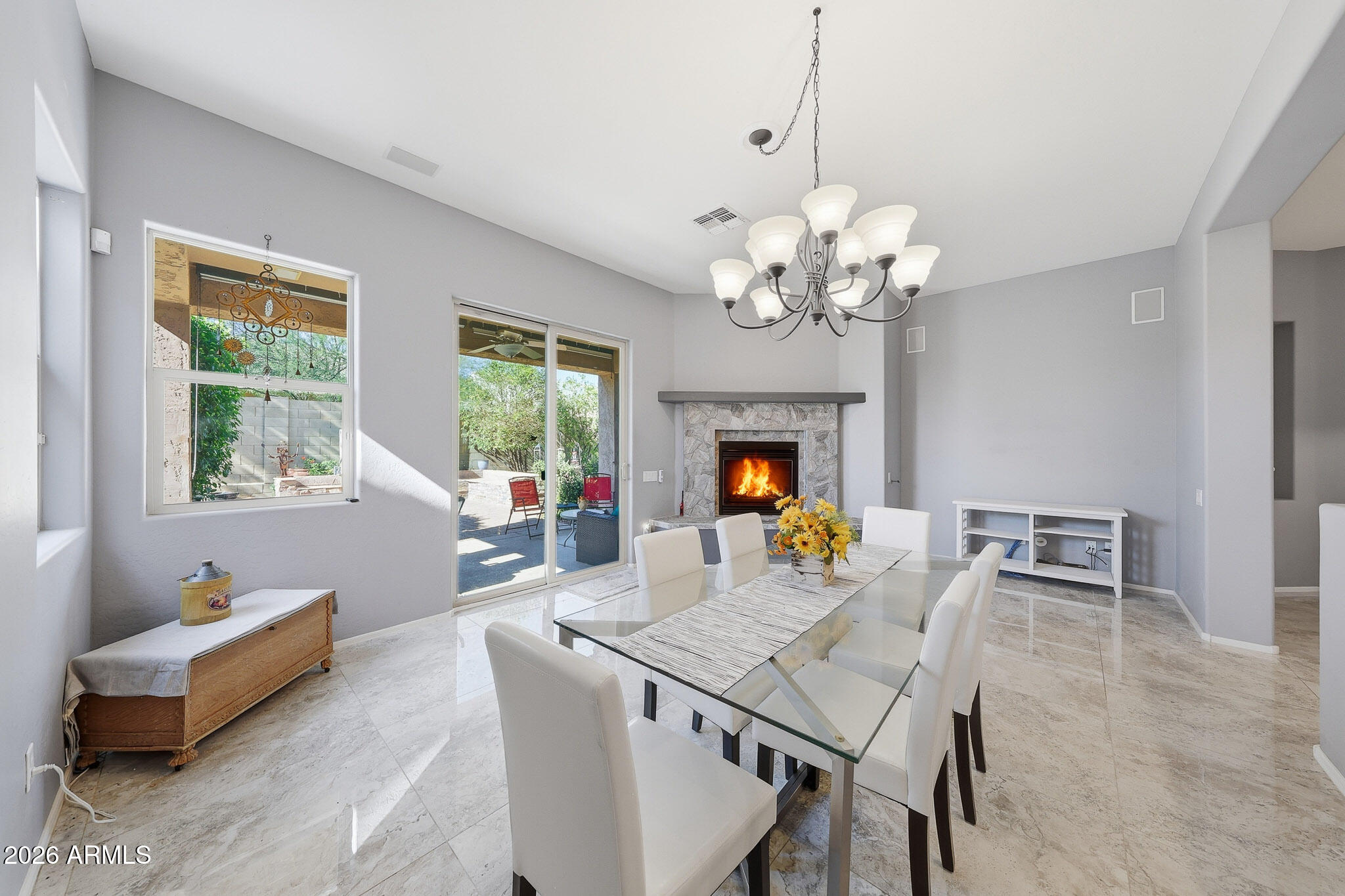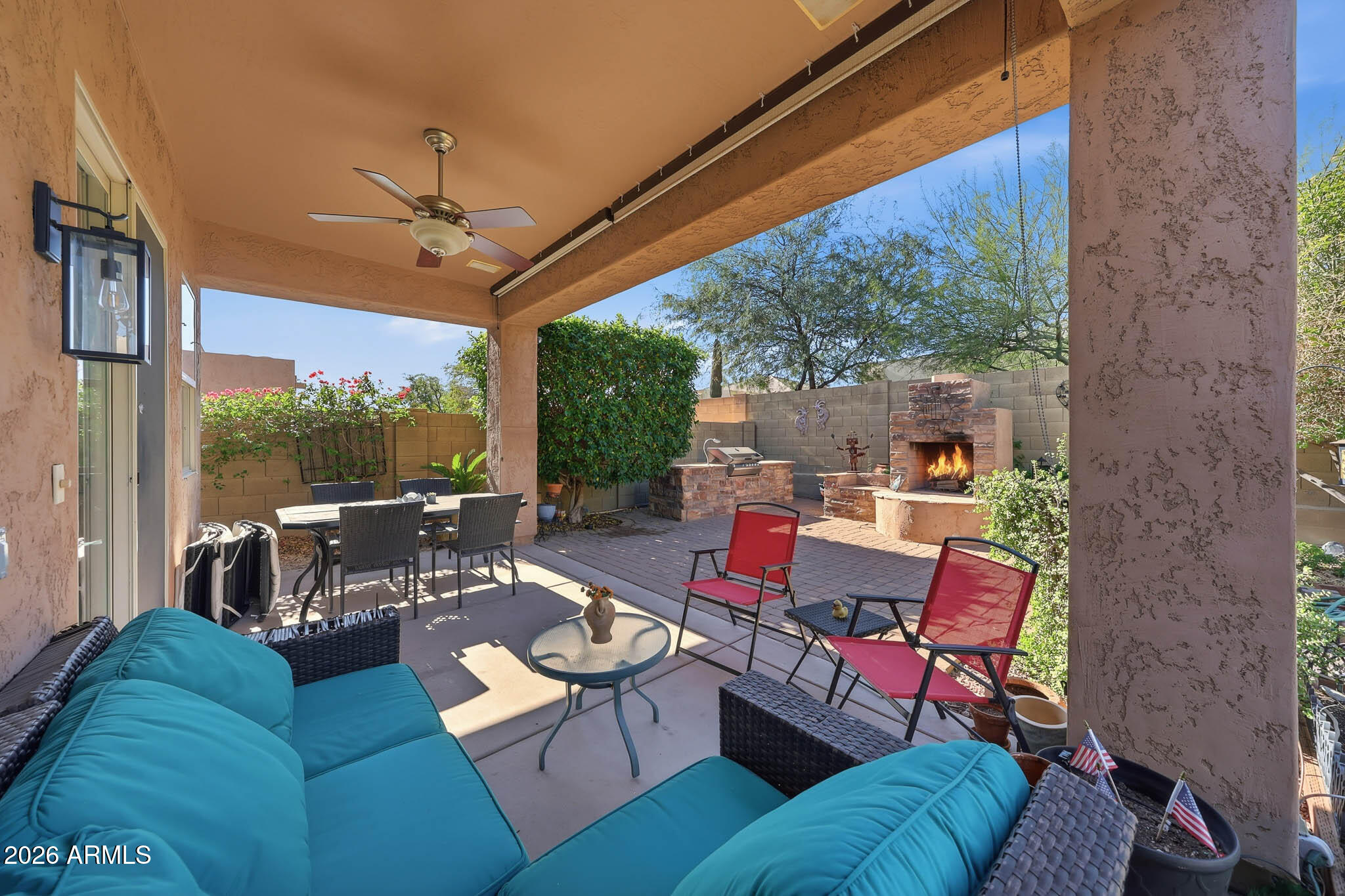 Step outside to your own private backyard retreat featuring a refreshing spool and a charming patio area designed for Arizona living. Enjoy cool desert nights by the outdoor fireplace and plenty of space to unwind or host guests. Located in the award-winning Anthem master-planned community, residents enjoy access to parks, trails, top-rated schools, shopping, dining, and endless amenities. This home offers the perfect blend of comfort, style, and lifestyle.