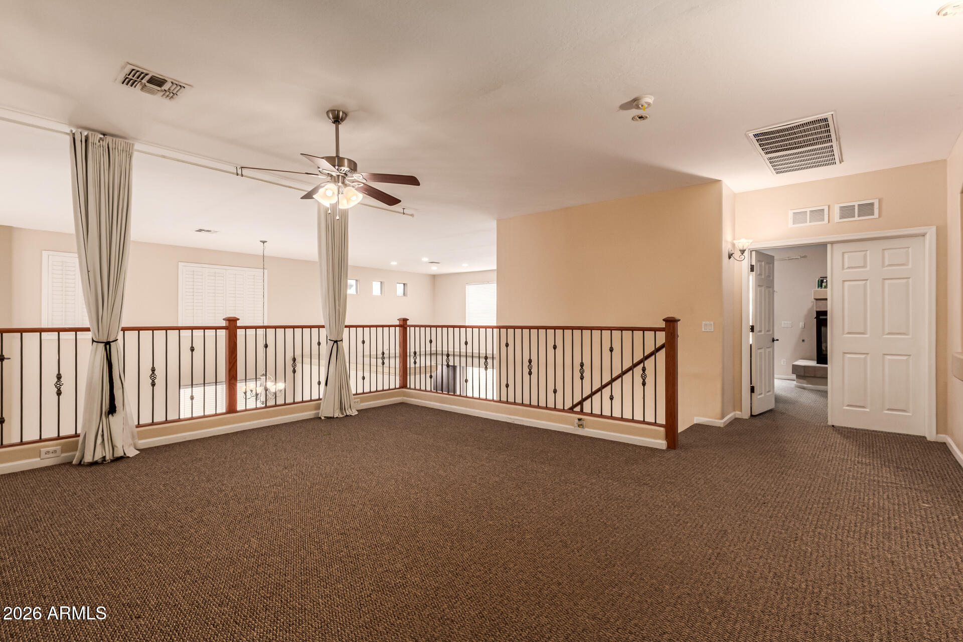 Your gorgeous DREAM home with POOL is here in Rancho El Dorado! Sits on a golf course lot, this beauty offers 4 beds + den, 3 baths, & a 4-car garage. Its charm starts with an excellent curb appeal with a manicured front yard and a welcoming front porch framed by stately columns. The fabulous interior showcases tons of natural light, dramatic high ceilings, plantation shutters, a neutral palette, and tasteful floors - tile/carpet/laminate. You'll love the elevated dining area overlooking the step-down living room with a fireplace, a design that adds depth and architectural appeal! The separate family room is paired with a 2-tier wet bar & a built-in media wall. The impressive kitchen boasts built-in appliances w/double wall ovens, recessed lighting, and an island w/breakfast bar. Also including a pantry and a plethora of cabinetry to ensure ample storage. For added functionality, this gem comes with a double-door den downstairs and a cozy loft upstairs. One bedroom & one bathroom complete the main level, perfect for the guests. Upstairs, you'll find the spacious primary bedroom! Featuring a double-door entry, a multi-sided fireplace, and a sitting area with sliding doors to the attached balcony to enjoy tranquil golf course vistas. The ensuite has dual vanities, a separate tub/shower, & a walk-in closet. Laundry room with a sink & cabinetry. But the real highlight is the backyard oasis! Designed for ultimate relaxation and entertainment with a covered patio, wood-burning fireplace, view fence, outdoor cooking area, and a sparkling pool for year-round fun. What's not to like? This gem is sure to impress!