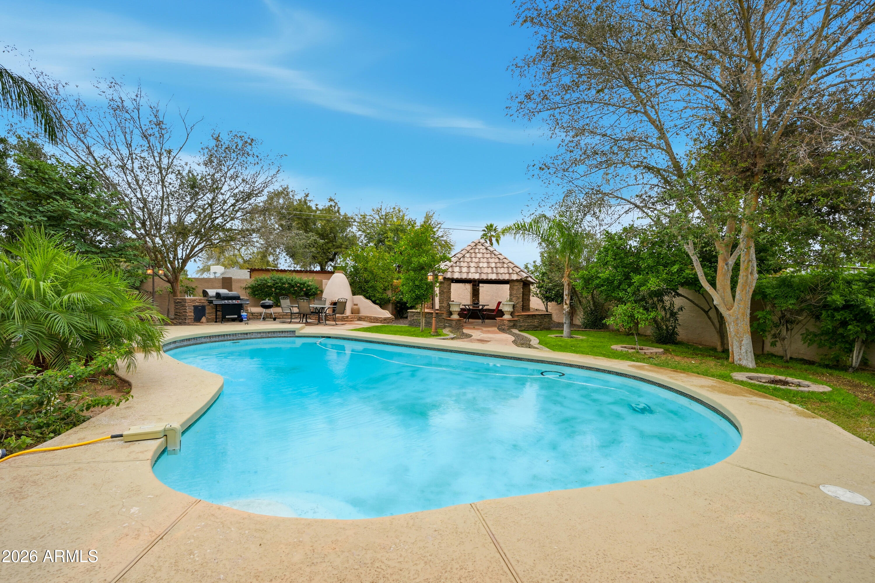 Welcome to your exquisite resort-style retreat in Mesa! Nestled on nearly 1/3 acre, this incredible property offers the perfect blend of comfort, entertainment, and investment potential. The resort-style backyard is a true oasis, featuring a heated pool, adobe-style fireplace, built-in grill, and firepit, perfect for relaxing or entertaining.