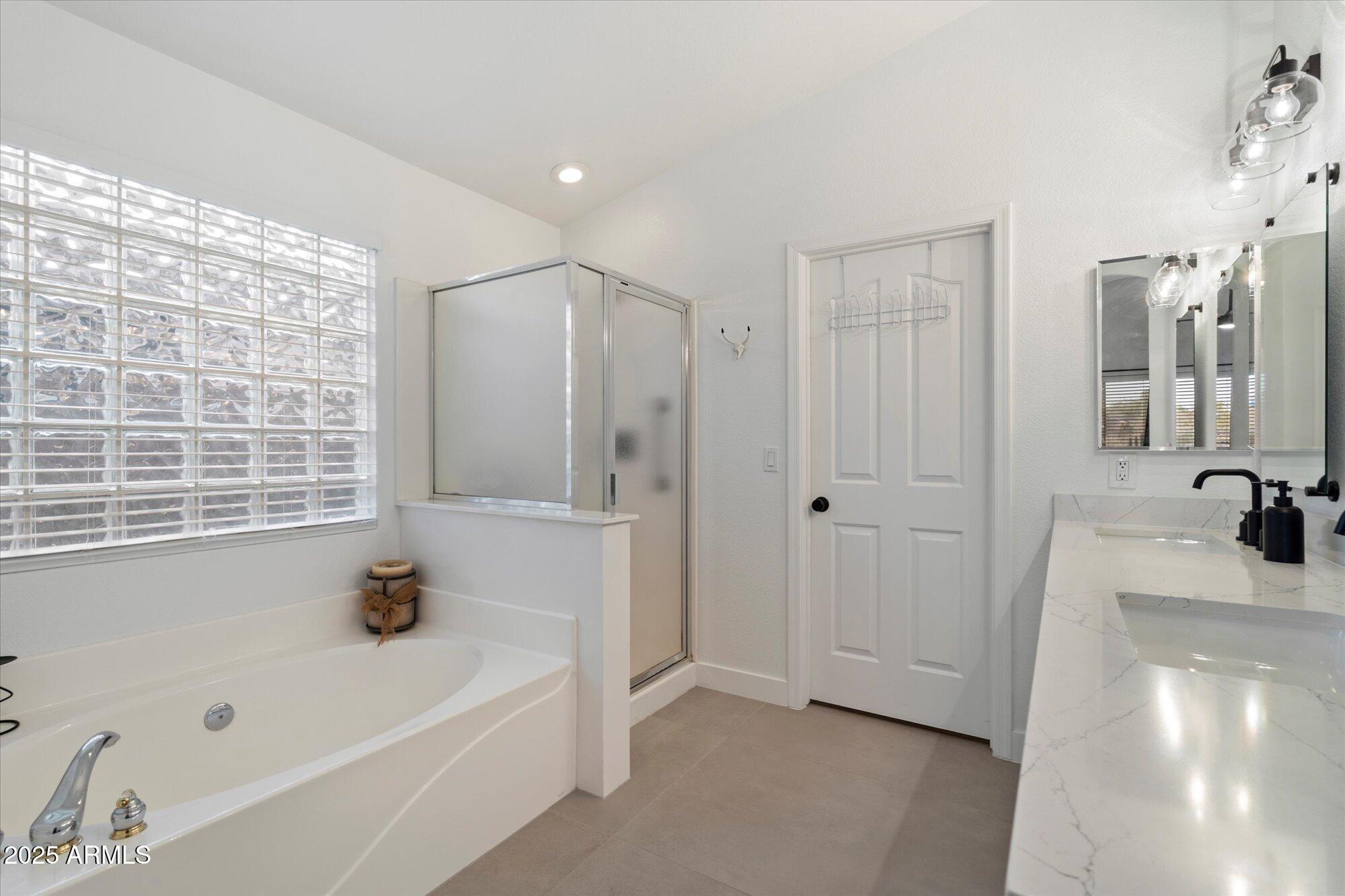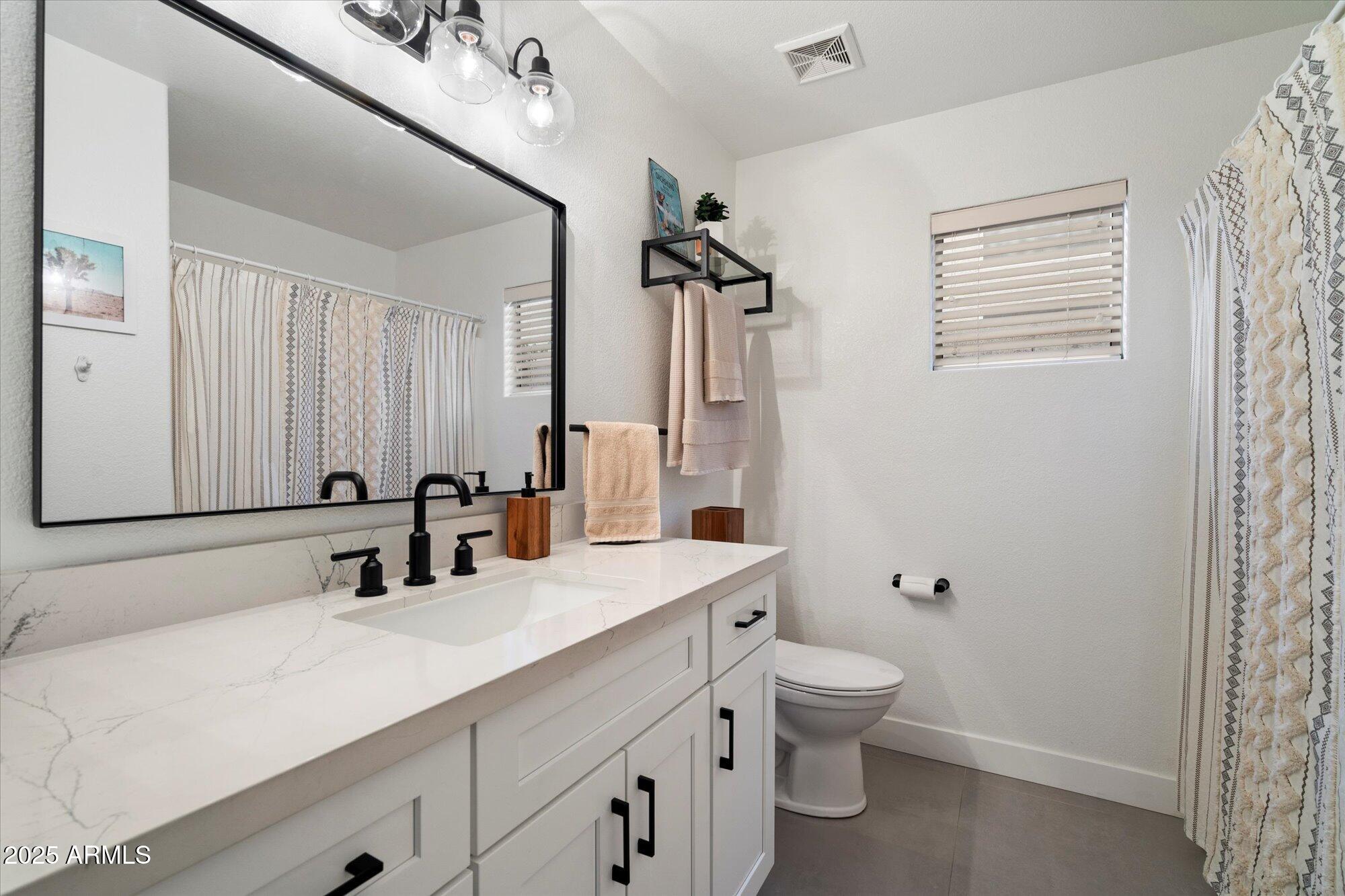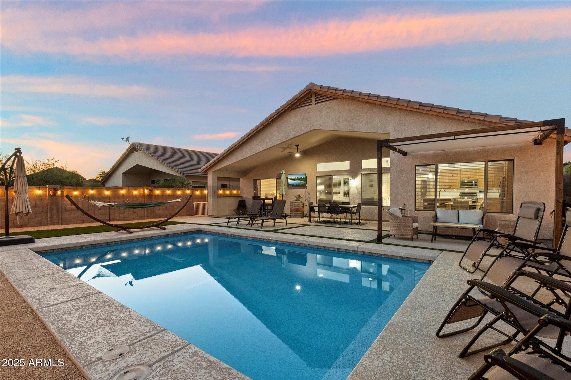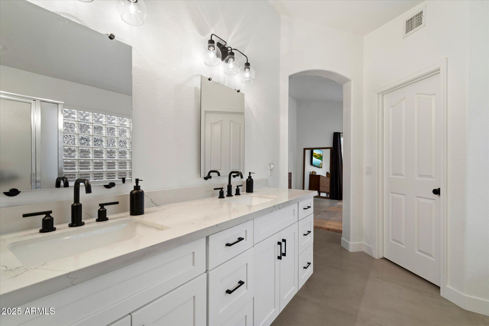 WOW! Centered on a premium view lot in gated Dove Valley Ranch, this single-level home pairs fresh updates with an open, easy flow. FULLY REMODELED! Soaring ceilings and archways brighten a great room that connects to an island kitchen with quartz counters, subway tile, pendant lighting, a gas range and honey-toned knotty cabinetry. The split plan places the backyard-facing primary retreat w/spa bathroom with dual sinks, soaking tub, separate shower, private water closet and walk-in closet. Indoor laundry with built-ins. Pool parties await out back, a covered patio with ceiling fan, retractable shade and string lights overlooks a NEW heated sparkling pool, turf accents w/a view fence frames desert and mountain sunsets. NO CARPET AND NO STAIRS! Your turnkey MODEL HOME Beauty awaits! ....additional lighting, plus a storage shed. Big-ticket peace of mind: new roof, updated HVAC with transferable warranty, and an extended 2 1/2-car garage with climate-controlled workshop, new opener, workbench and shelving. Turnkey living in a favorite Cave Creek neighborhood.