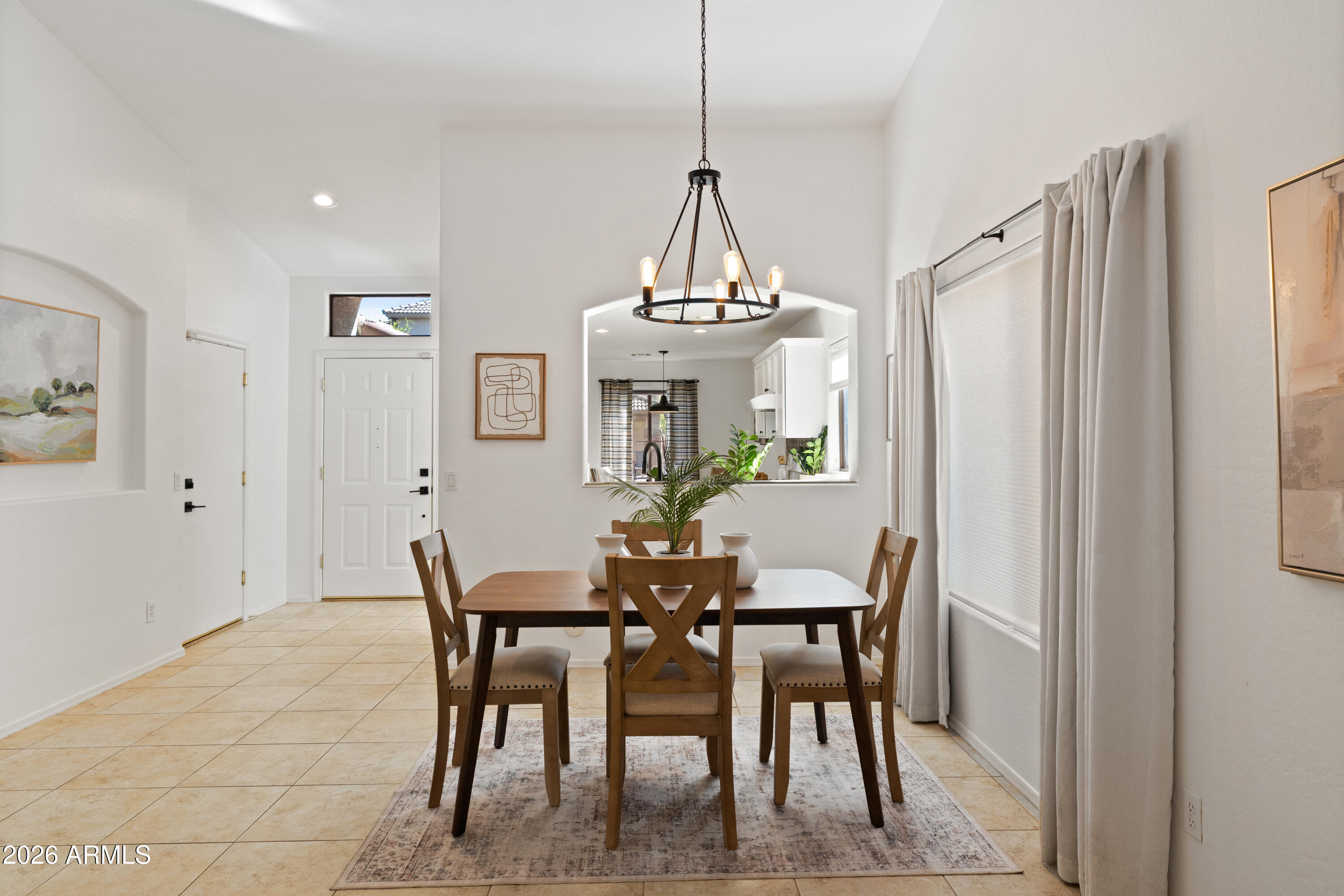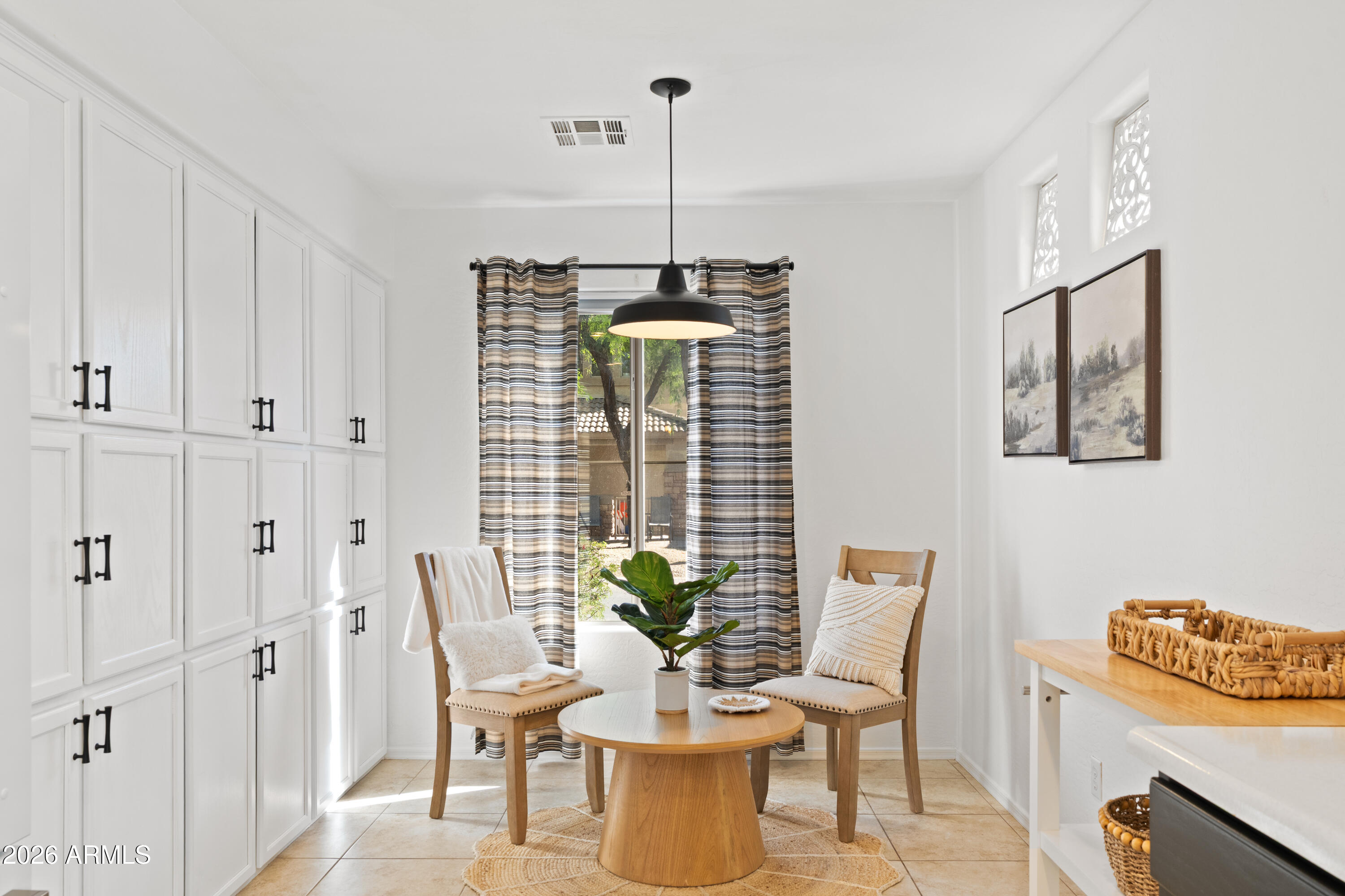 Located in a gated community within Dove Valley Ranch, this 3 bedroom, 2 bath home offers mountain views, a functional single-level layout, and a quiet backyard setting. Interior features include high ceilings, light-filled living spaces, and a refreshed kitchen with updated appliances, resurfaced counters, backsplash, and painted cabinetry with new hardware. Major system improvements completed between 2022-2023 include new HVAC and water heater, along with updated lighting, fixtures, plumbing components, and interior and exterior paint. Enjoy access to a public golf course, scenic walking trails, and convenient proximity to Cave Creek dining, shopping, and North Phoenix and Scottsdale amenities. This single-level home offers a move-in ready, low-maintenance lifestyle.