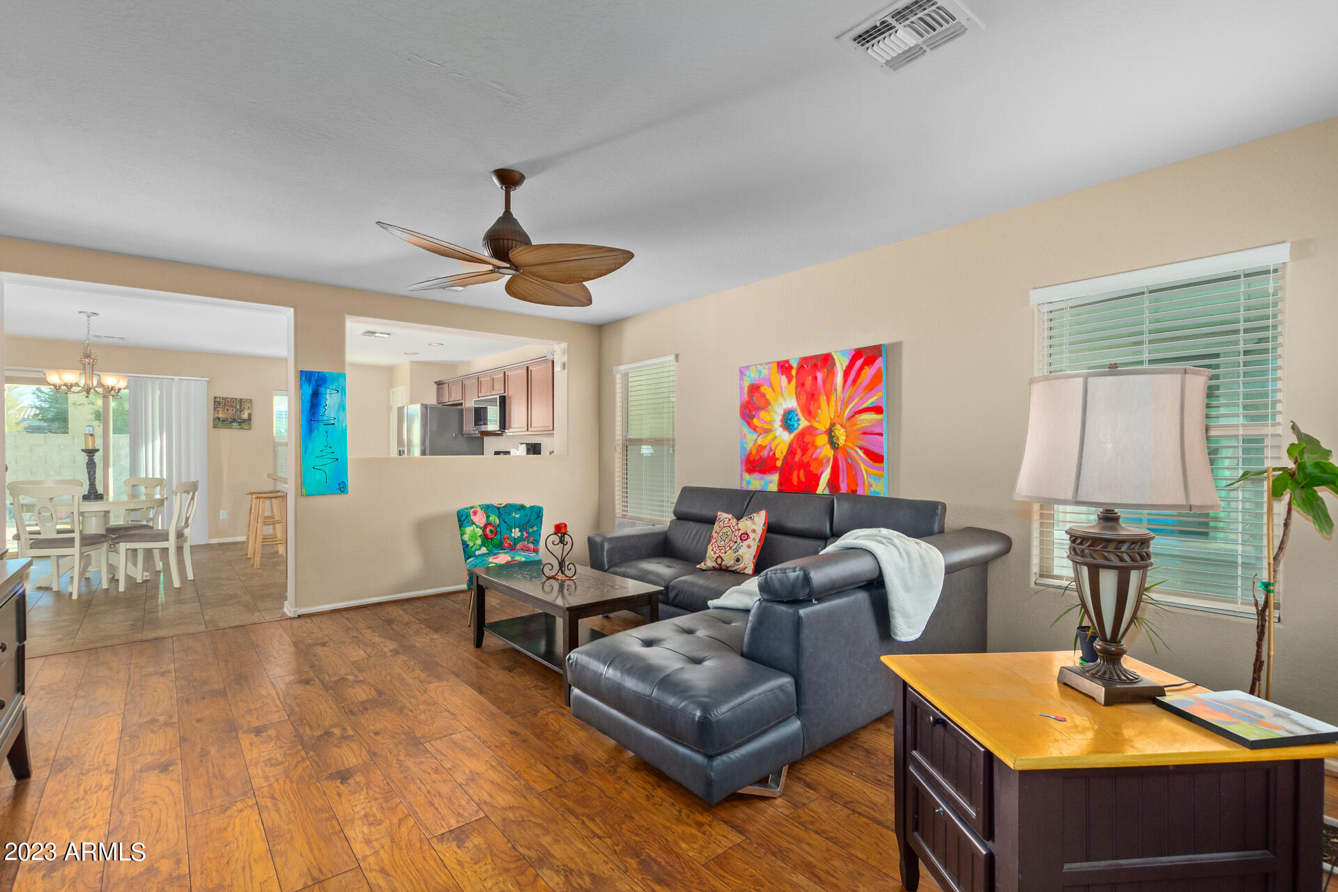 Best Price In The Area! near sporting facilities and the entertainment district. Come inside to see a spacious living room with wood flooring, neutral palette, high ceilings, and abundant natural light. The eat-in kitchen offers a pass-through window, built-in appliances, a pantry, a center island w/breakfast bar for quick meals, and a combination of recessed and pendant lighting. Upstairs, discover the ample primary bedroom featuring a full bathroom and a walk-in closet. Private backyard has a covered patio and grass area ideal for BBQ gatherings. Don't let this incredible property slip by!