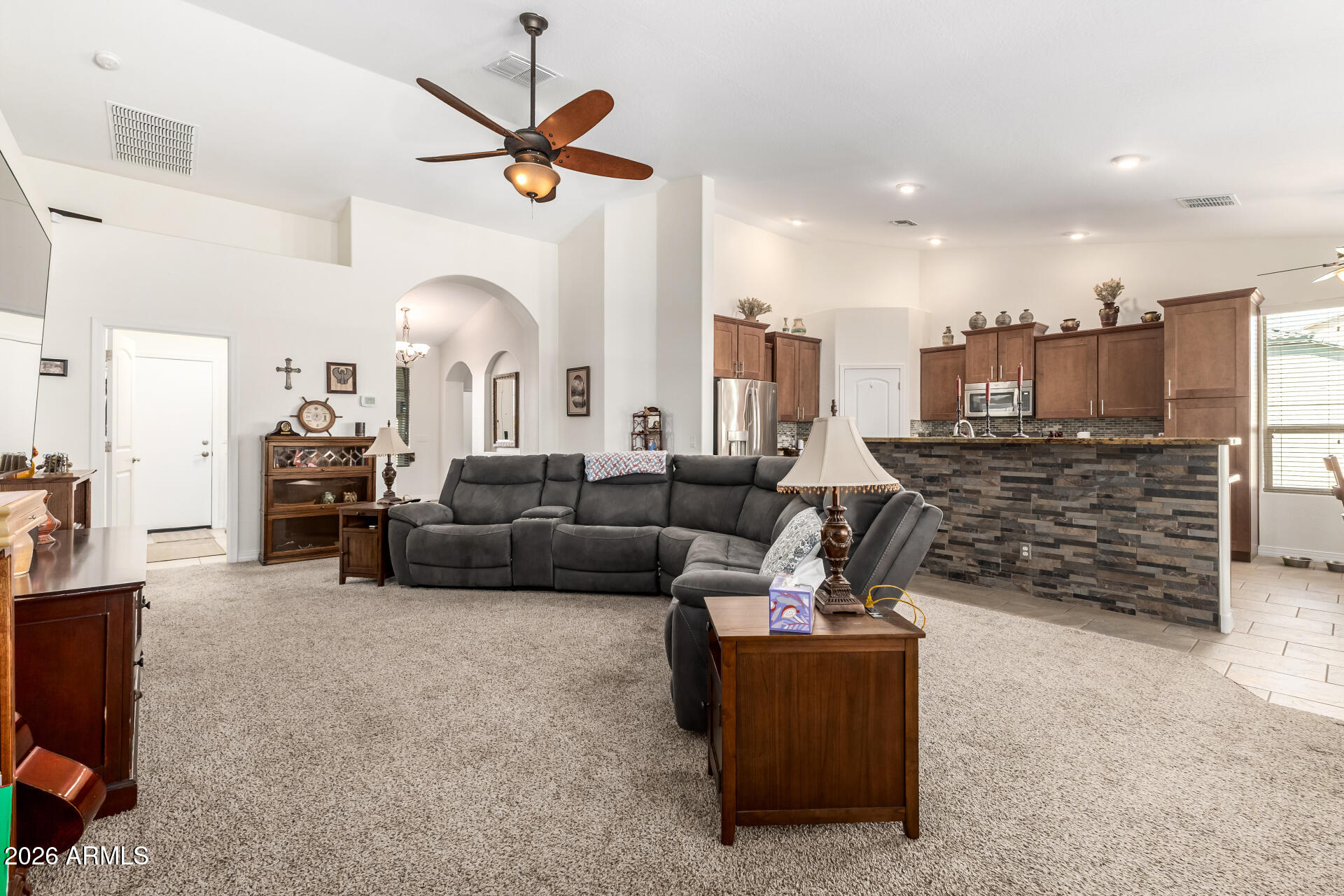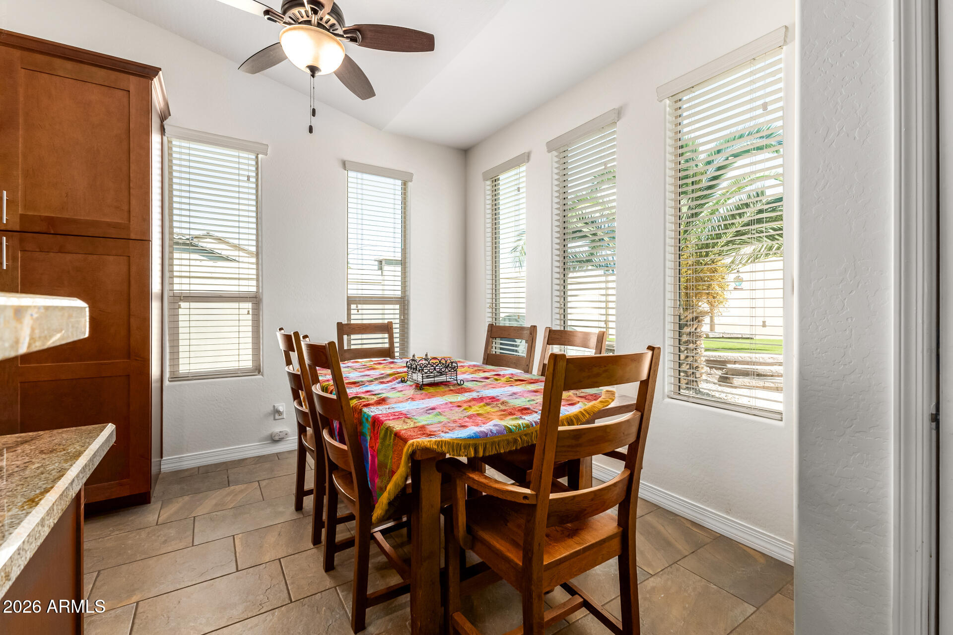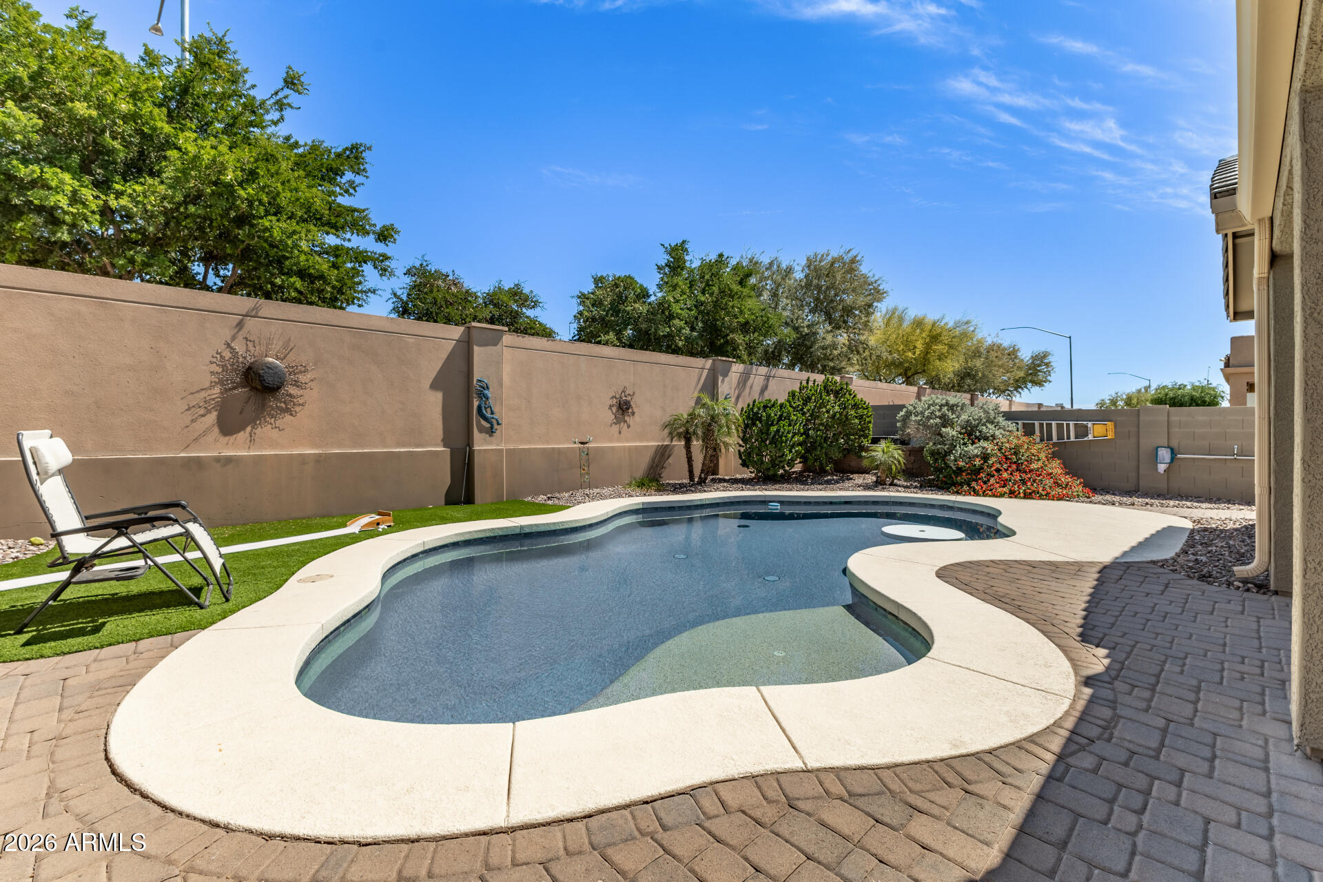 Experience elevated desert living in this beautifully maintained, move-in ready single-story home, ideally positioned on a premium corner lot in the sought-after Keighley Place community. Designed with both comfort and entertaining in mind, this 4-bedroom residence showcases an open-concept layout enhanced by soaring vaulted ceilings & an abundance of natural light. At the heart of the home, the chef-inspired kitchen features sleek granite countertops, a striking glass mosaic backsplash, gas range, & a convenient beverage fridge; perfect for hosting gatherings or enjoying everyday moments in style. The seamless flow into the spacious family room creates an inviting atmosphere ideal for both relaxing & entertaining. Step outside to your own private oasis--an exceptional backyard complete with a heated pool, expansive custom paver patio, lush mature landscaping, and low-maintenance artificial turf. Whether you're hosting guests or unwinding under the Arizona sky, this outdoor space delivers year-round enjoyment. The primary suite offers a serene retreat, highlighted by a spa-like oversized walk-in shower and a thoughtfully designed custom closet. Additional highlights include an RV gate for added convenience and all appliances included--making this home truly turnkey. Located in the heart of Mesa, close to shopping, dining, parks, and top-rated schools, this exceptional property blends lifestyle, location, and livability. Don't miss the opportunity to own a home that checks every box!