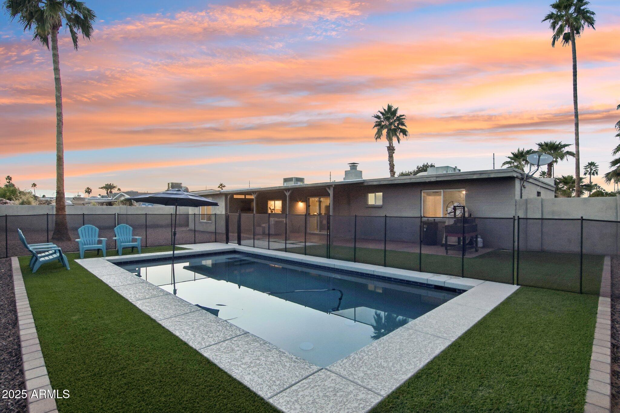 Inside, natural light fills open spaces with porcelain floors, quartz countertops, shaker cabinets, SS appliances, and stunning Carrara marble fireplace. The versatile 4th bedroom has a private entrance from side yard and new RV Gate ideal for a MIL suite, office, guest quarters, or VRBO. Backyard features newer pool w/ Baja step, turf, space to enrich your outdoor living or build up to 500 sqft ADU! Opportunity awaits!