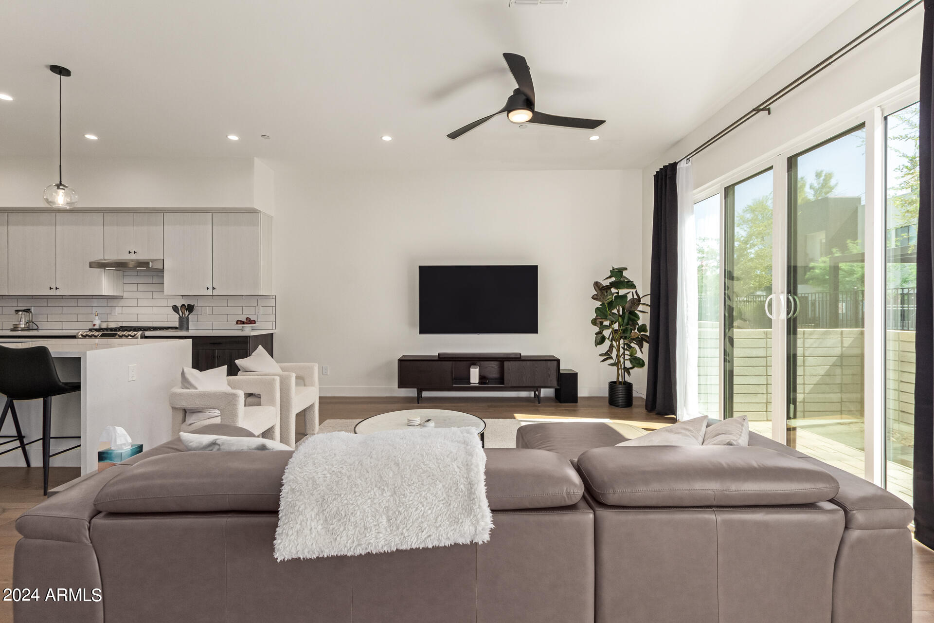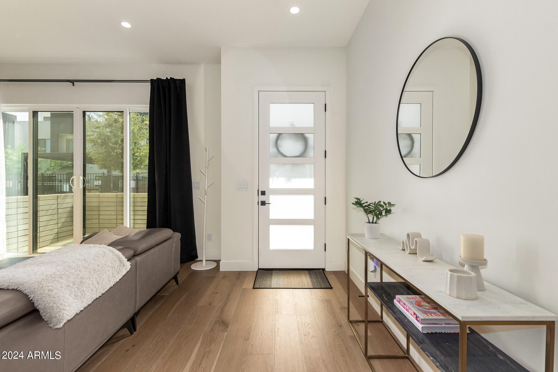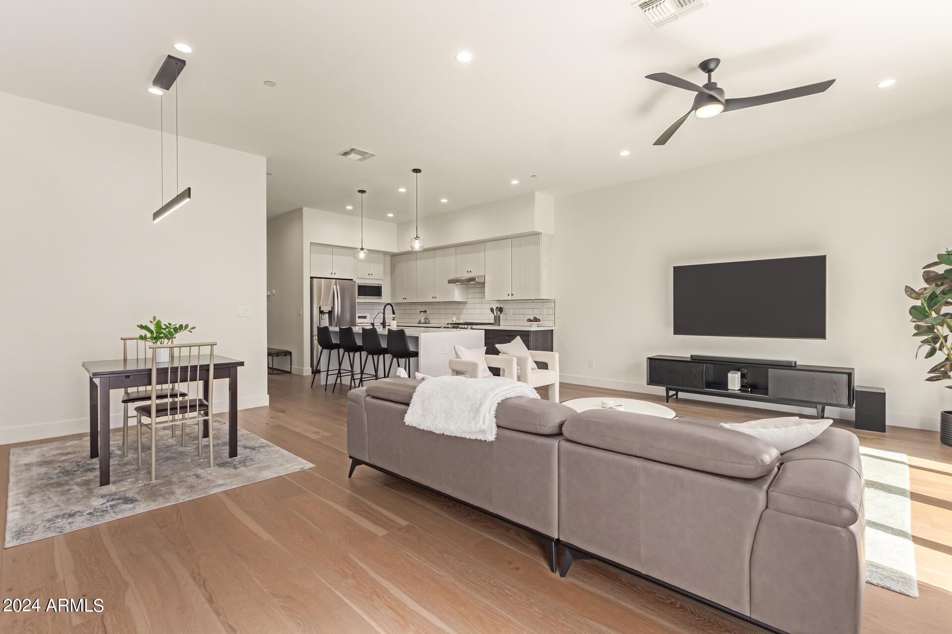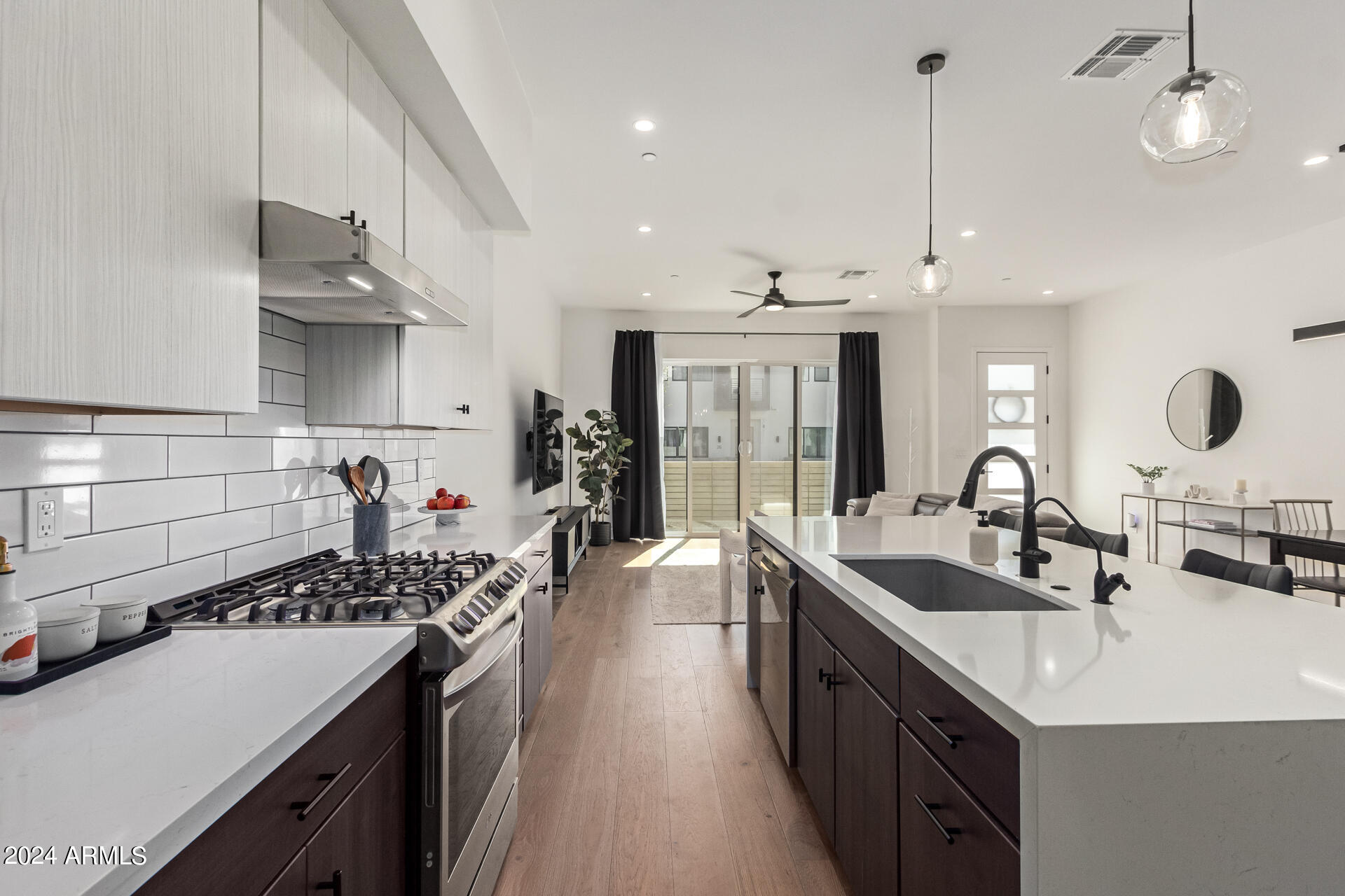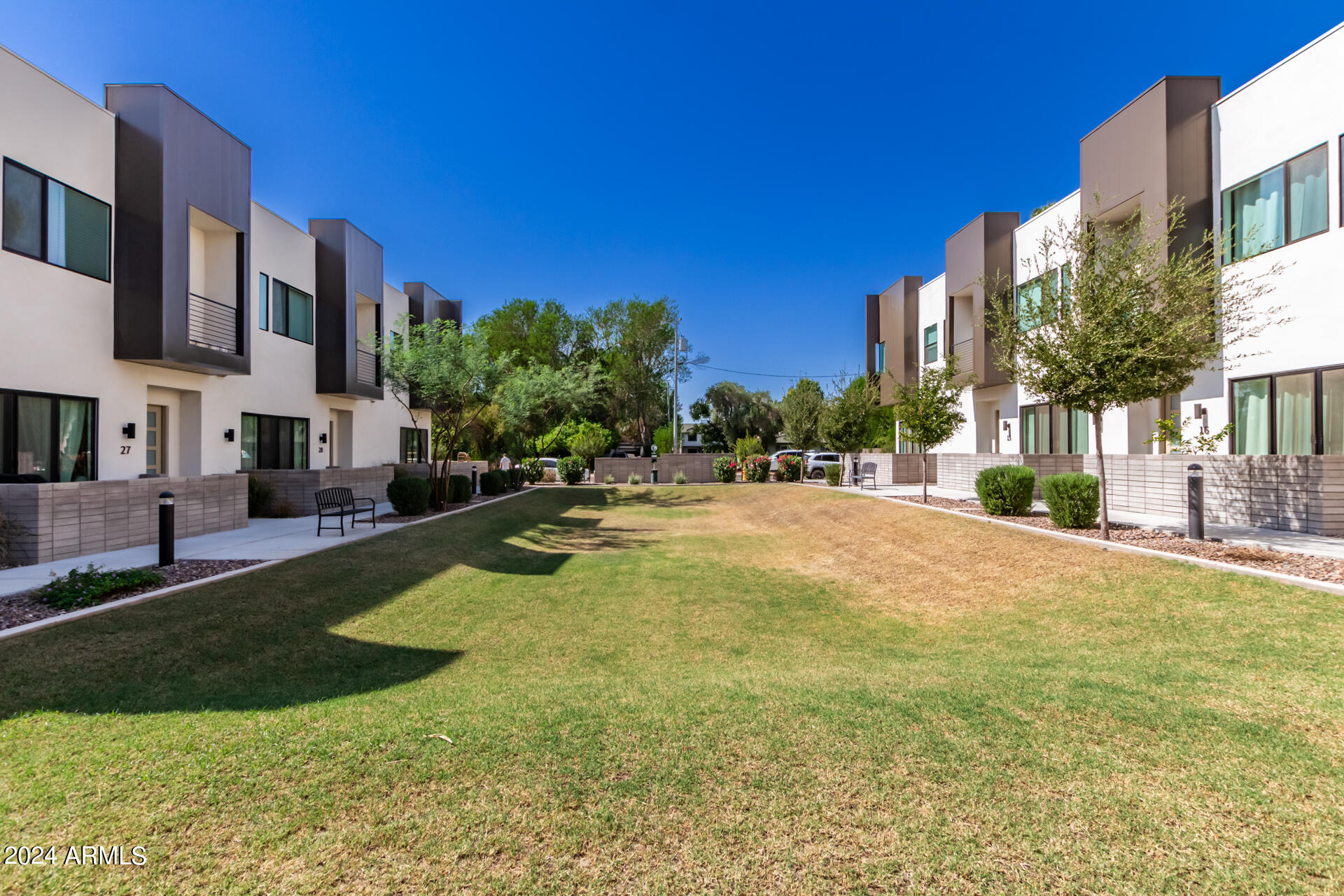 A contemporary and beautiful townhouse tucked away in a great location now available! This interior unit has 2,202 sqft and a versatile floor plan offering 3 bedrooms, 2.5 bathrooms, and an upstairs bonus room. It features premium engineered wood floors, 10 ft ceilings, and a private ground floor patio with multi-slide door. It also features a roof deck with privacy wing walls and sweeping views, a 2-car garage, a primary bedroom deck with dual closets, and a spa-inspired bathroom with designer curated quartz countertops. The chef-inspired kitchen includes a waterfall kitchen island, a walk-in pantry, stainless steel appliances and a gas range. The Nirvana at Colter community with thoughtfully designed layouts is located within Camelback East Village, a vibrant area with immediate access to numerous restaurants and shopping areas. It also has quick access to AZ-51 freeway, Downtown Phoenix and Sky Harbor Airport.