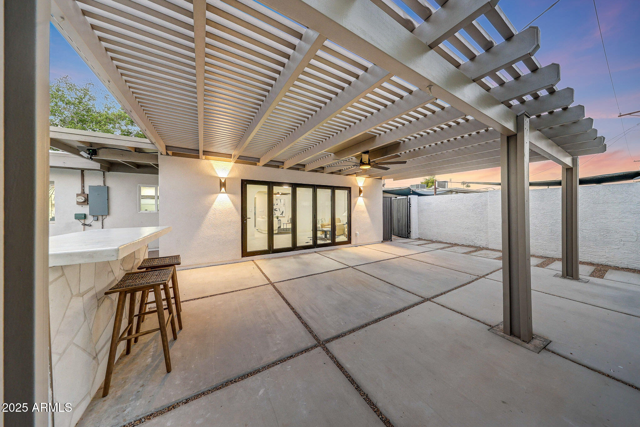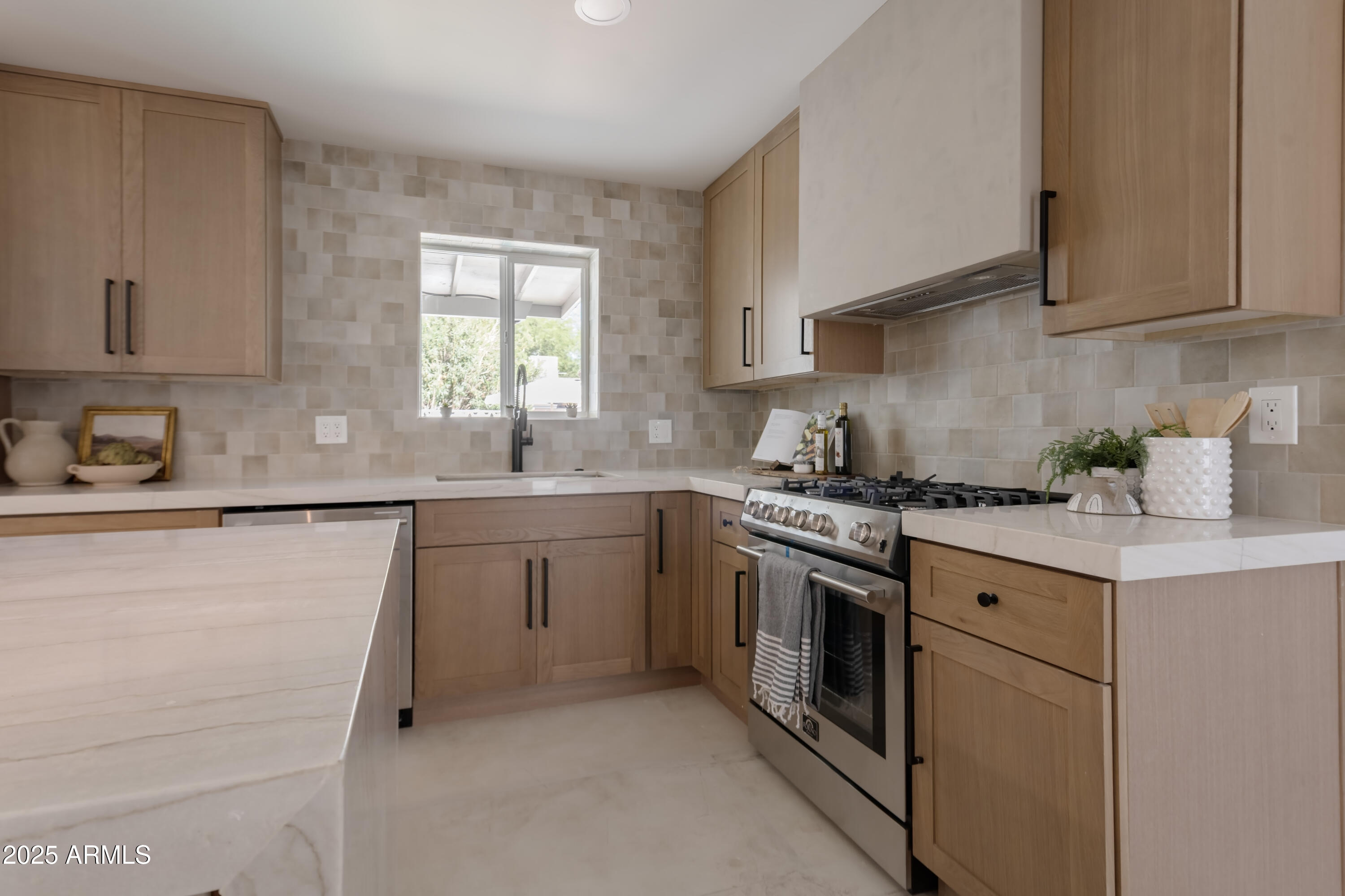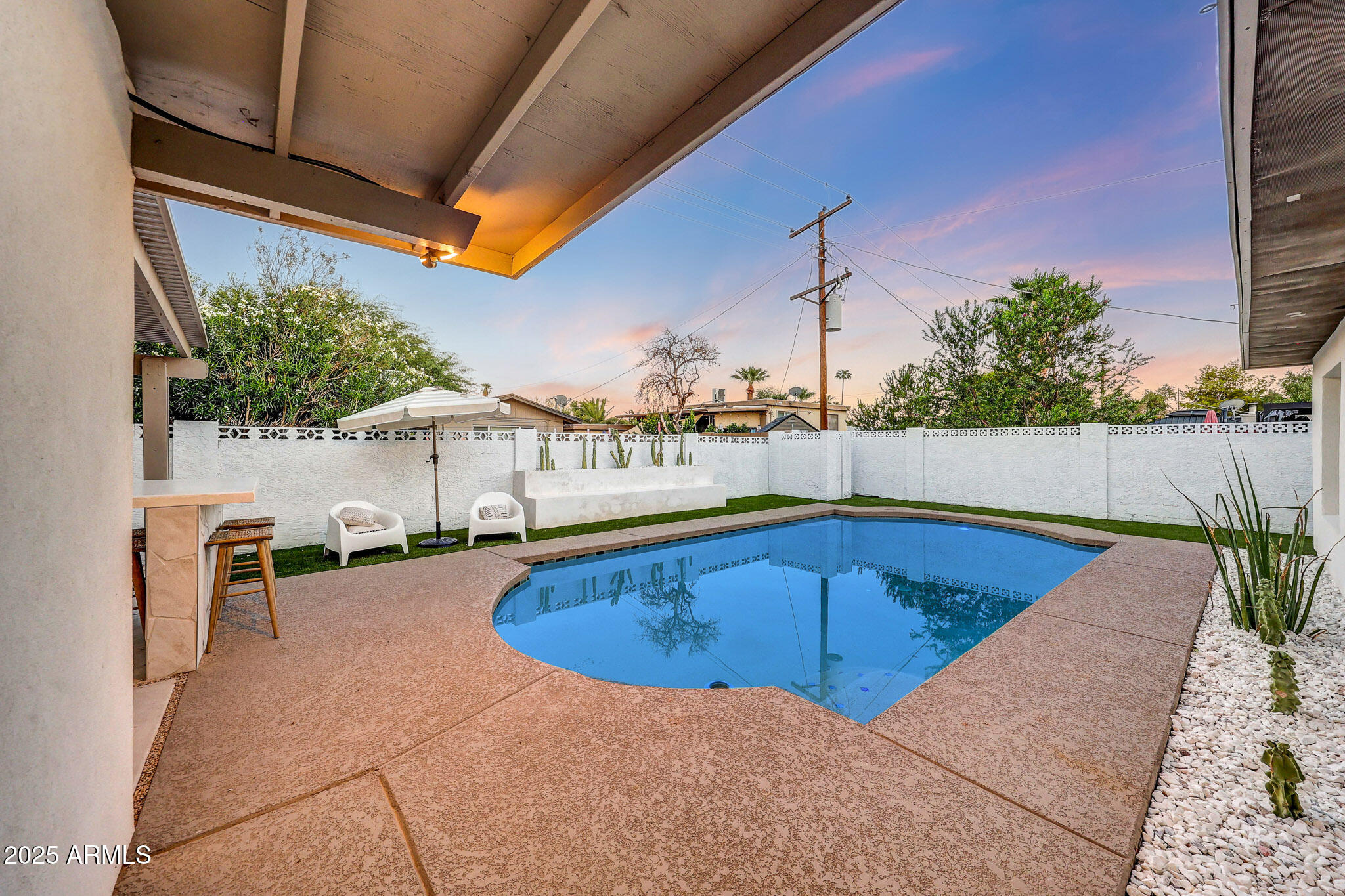 Welcome to your ultimate entertainer's paradise! This beautifully remodeled 4-bedroom, 3-bath home blends modern luxury with timeless comfort. Behind a custom iron front door, you're greeted by an open, light-filled floor plan designed for today's lifestyle. The gourmet kitchen is a true showpiece--featuring a gas range, all-new cabinetry, an 8-foot island with a quartz waterfall countertop, elegant counter-to-ceiling backsplash, and a custom plastered hood vent. The space flows seamlessly into the spacious living area, where a statement fireplace wrapped in luxury tile anchors the room. The primary suite is a true retreat with a spa-inspired bathroom featuring a seamless walk-in shower, freestanding soaking tub, and a generous walk-in closet. Three additional bedrooms include a private en-suite, ideal for guests, in-laws, or a home office. A 5-panel accordion door opens to the stunning backyard, creating the perfect indoor-outdoor experience. Enjoy dinner beneath the designer chandelier and custom floating shelves in the dining area, or step outside to your private Southwest oasiscomplete with low-maintenance synthetic turf, a micro-cement seating area and planter, an outdoor island, an expansive pergola for shade, a two-tone tiled pool, an Outdoor Shower, and even a putting green! Every detail has been thoughtfully updatednew smooth wall finishes throughout, new cabinetry, epoxy garage floors, exterior synthetic stucco, roof, HVAC, electrical, and garage door. Every element has been professionally designed for both style and function. Located in a highly desirable neighborhood within walking distance to Chaparral Park and just minutes from Old Town Scottsdale's top dining and shopping, this home offers the best of Arizona living. This turnkey entertainer's dream is ready for you to move in and enjoyevery detail perfected, inside and out. Owner/Agent.