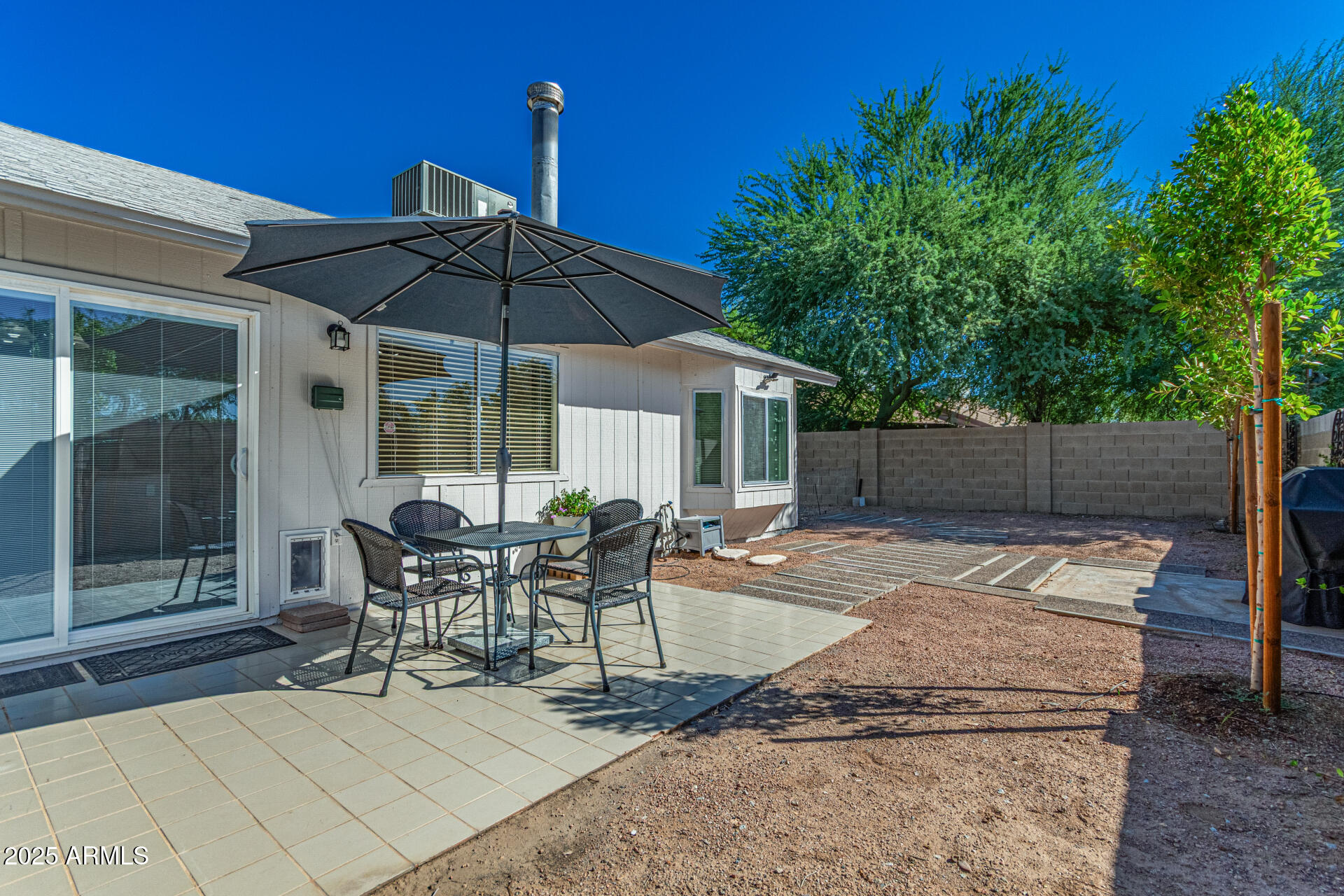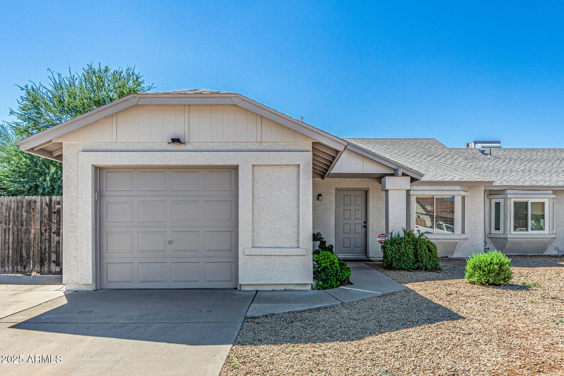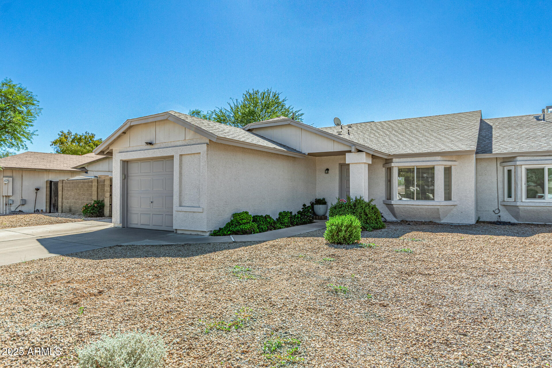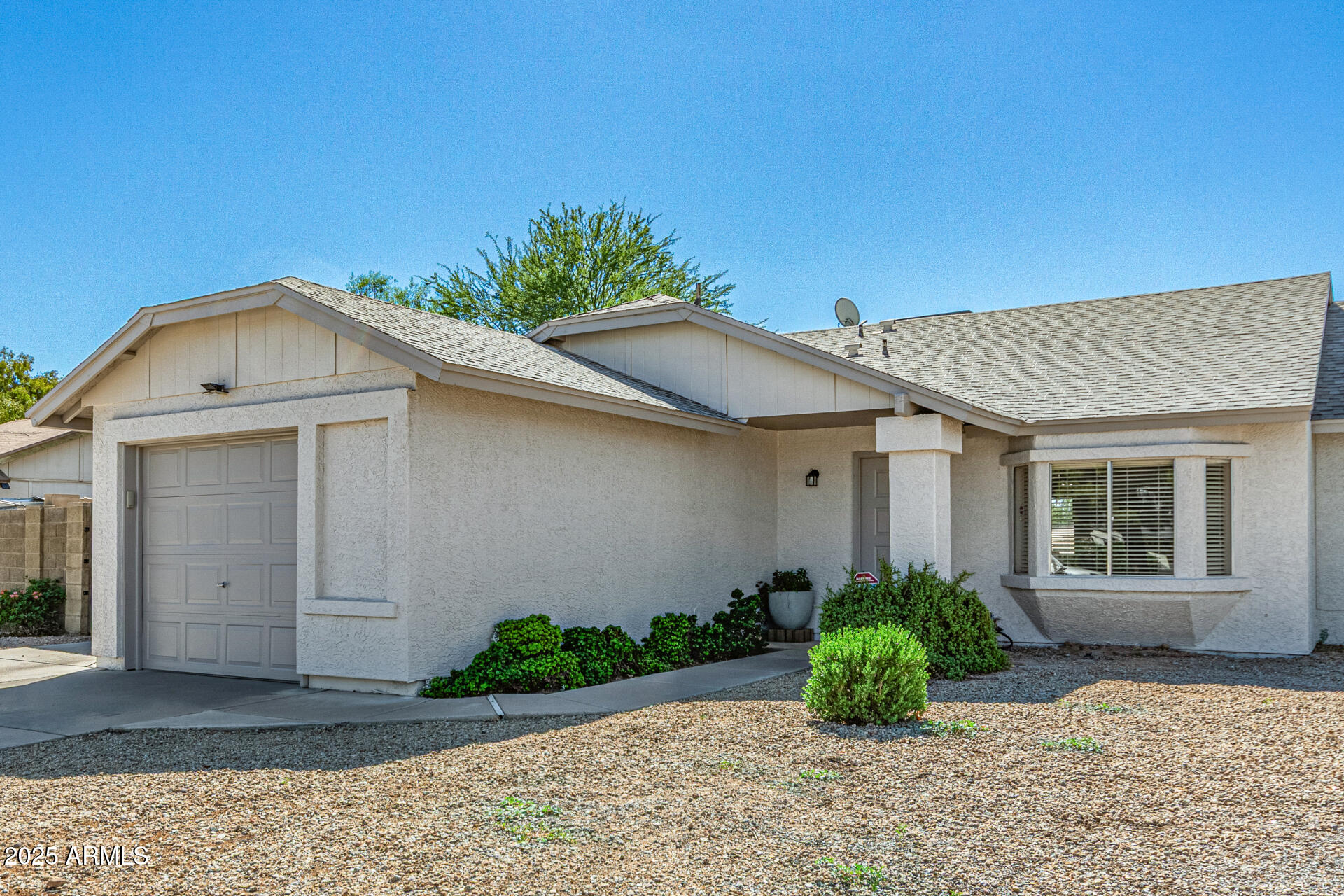 Location, location, location! Close to top restaurants, freeways, and premier shopping at Chandler Fashion Center. Welcome to this charming home in Suncrest Villas featuring 2 bedrooms, 2 baths, and a 1-car garage. Light and airy interior, tile in high traffic and wet area, low-vaulted ceilings. Flexible floor plan with a formal living room plus a great room highlighted by a freestanding fireplace and sliding doors to the backyard. The kitchen includes built-in appliances, granite counters, optimized cabinetry, and a peninsula with breakfast bar. Spacious primary suite with bay window, private bath, and walk-in closet...MORE tab Outside, enjoy a large backyard with an open patio, ideal for relaxing or entertaining, plus a side yard with double gate and an attached storage shed. Low HOA that includes front yard landscaping, and home exterior was freshly painted for great curb appeal. Welcome home!