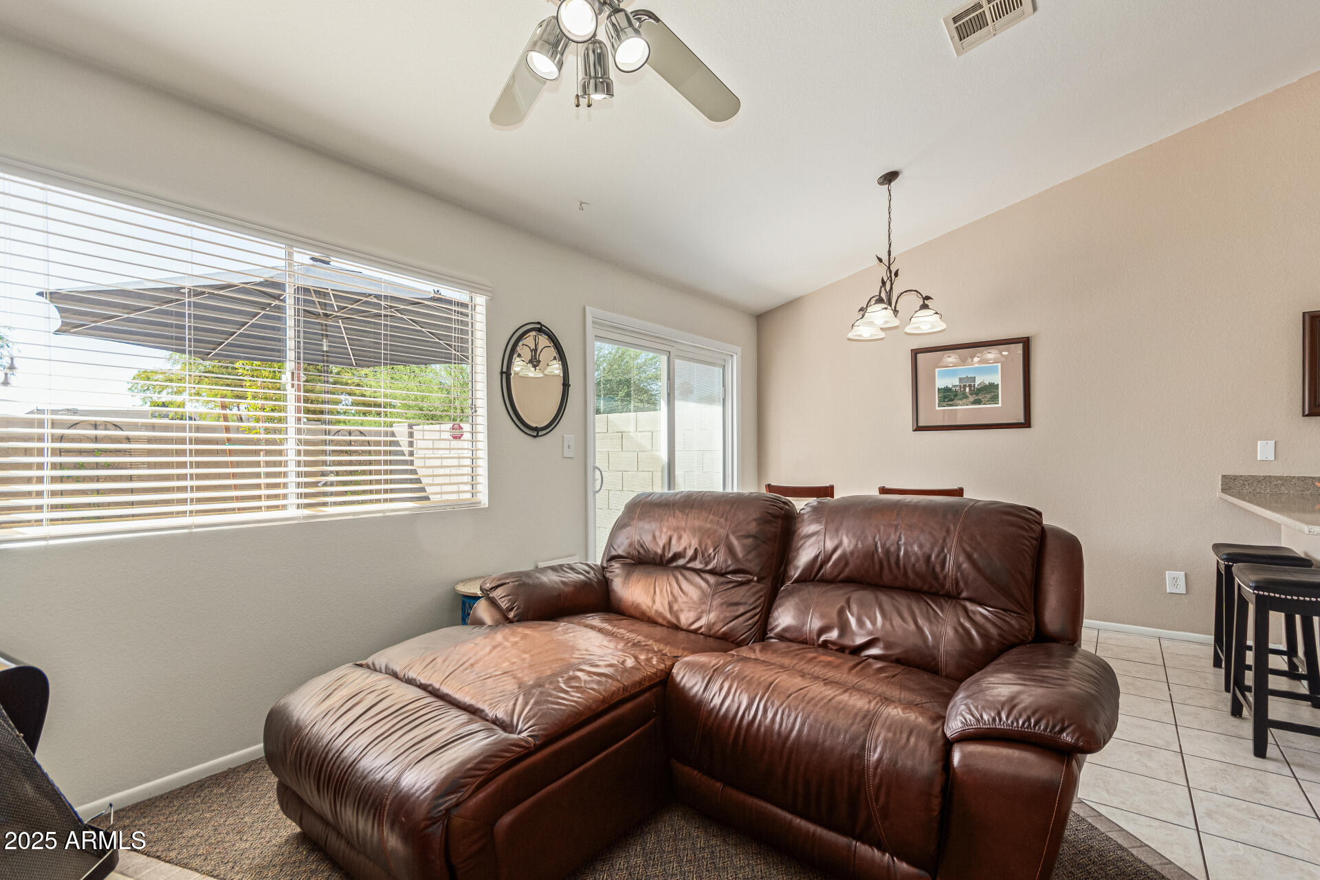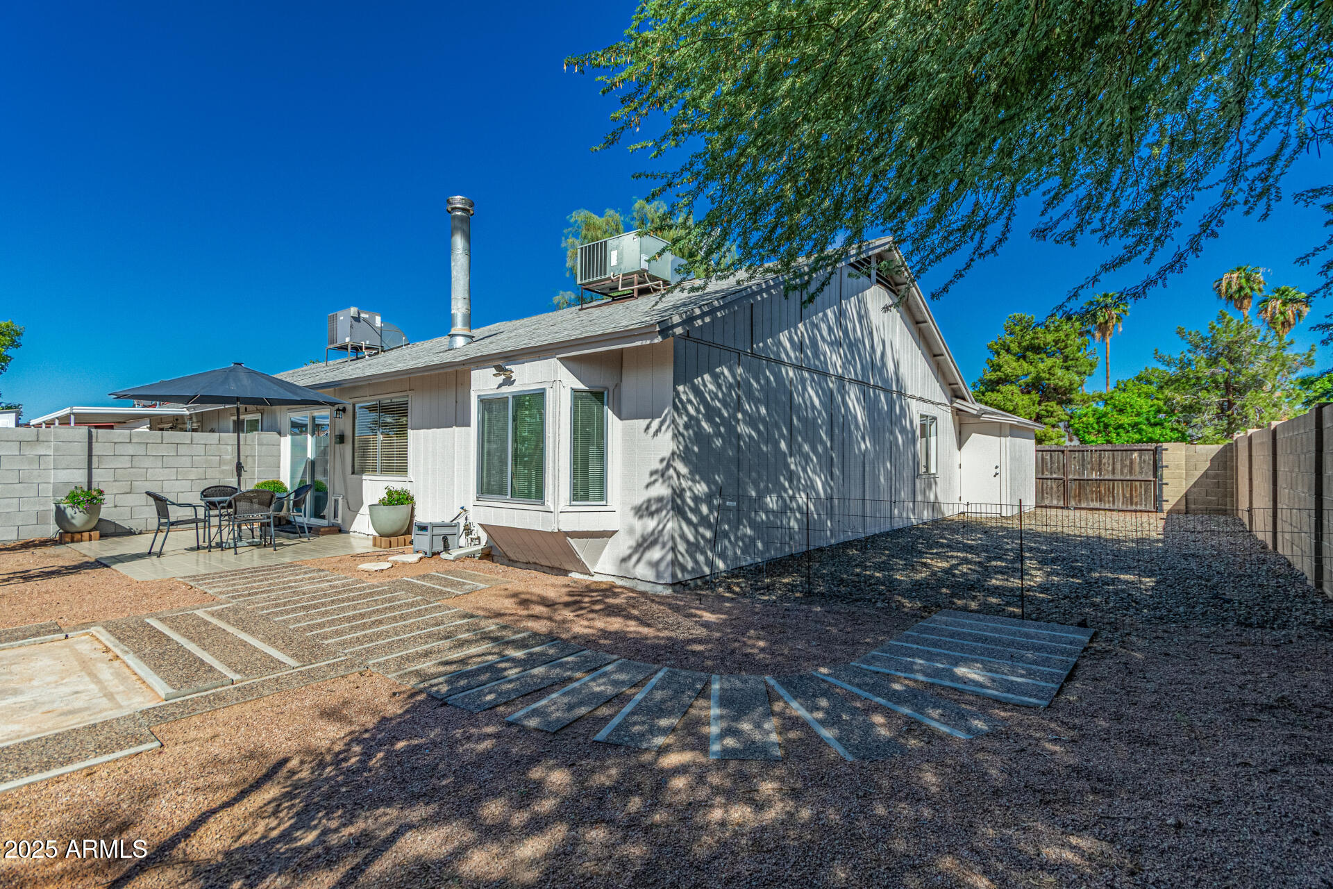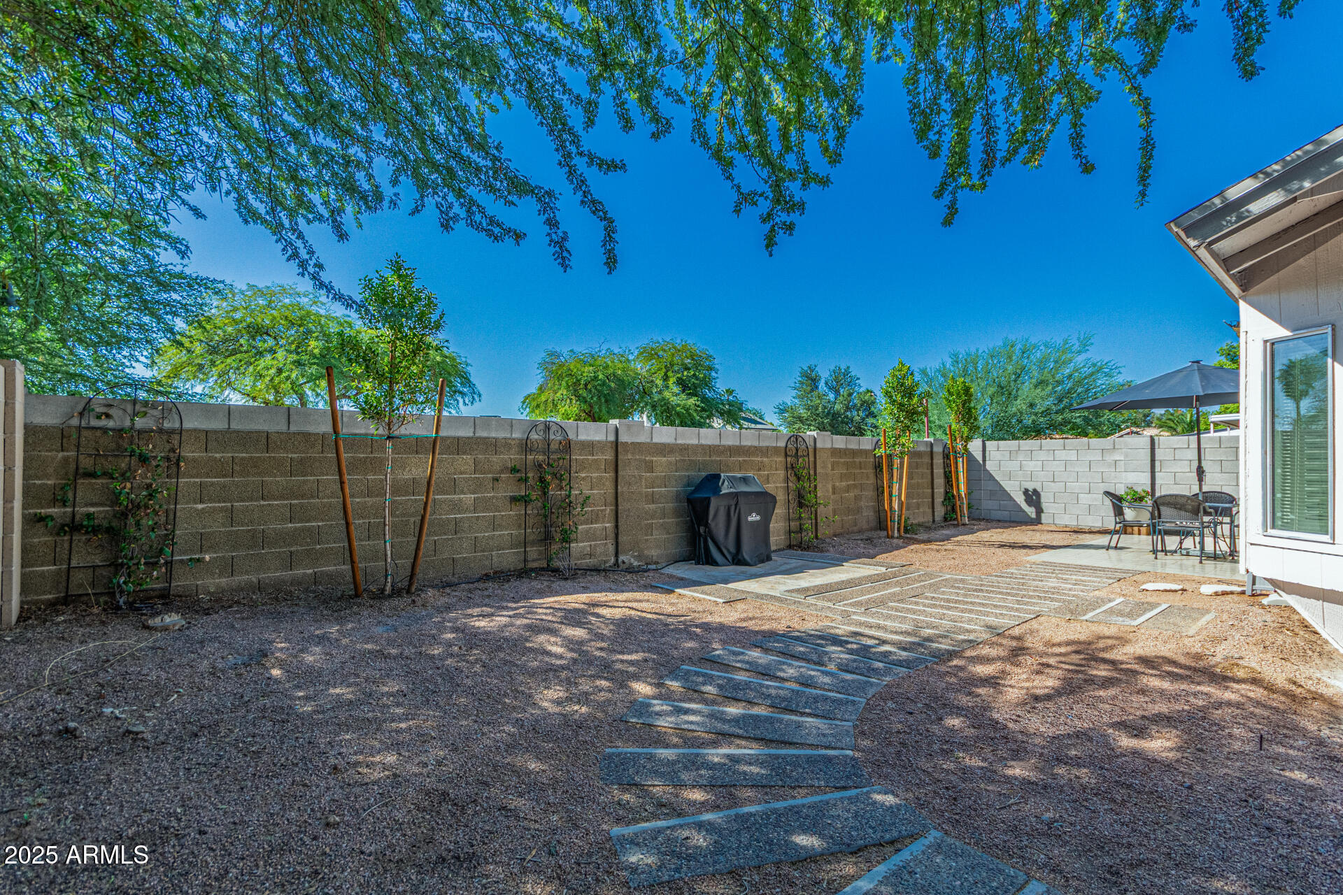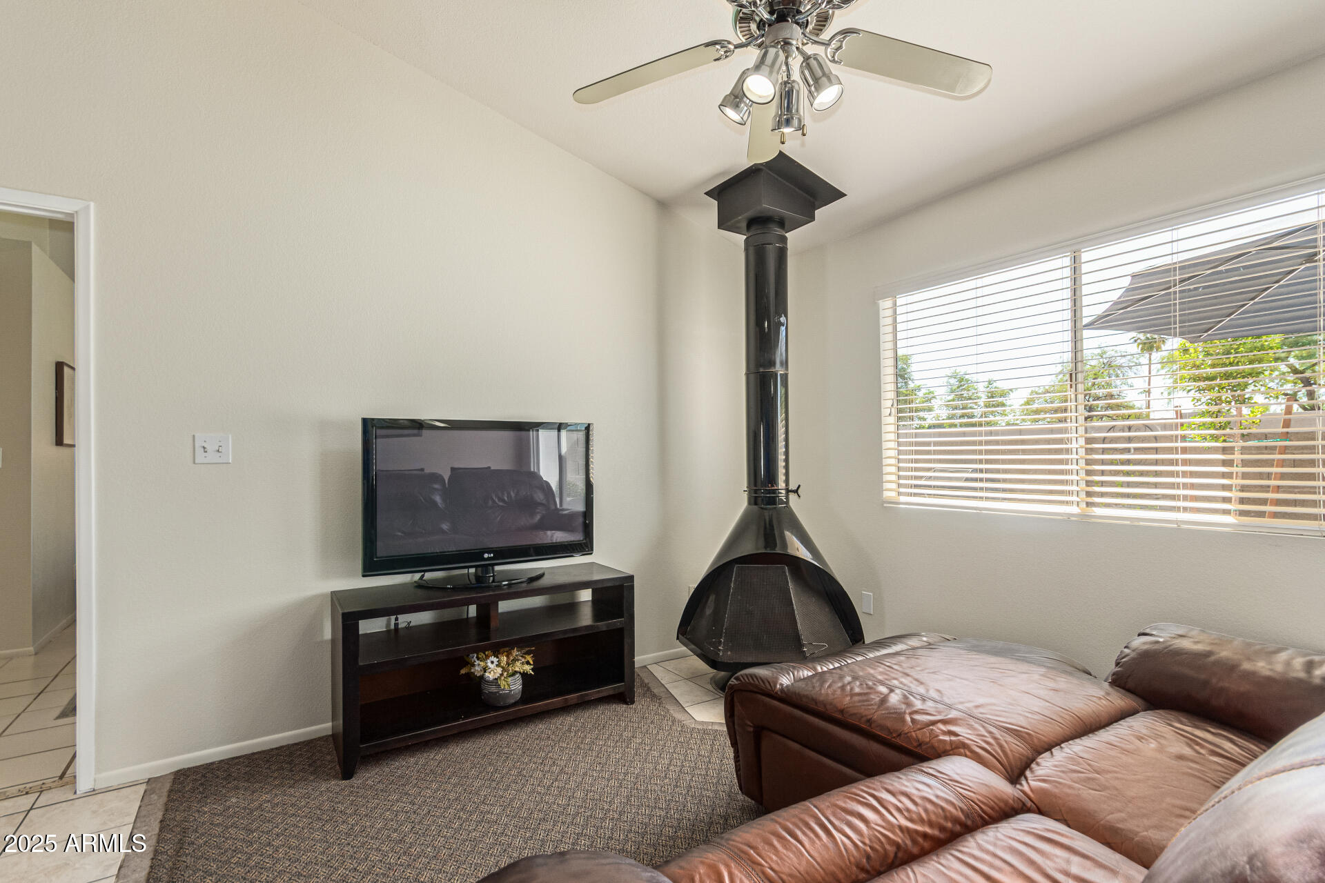 Location, location, location! Close to top restaurants, freeways, and premier shopping at Chandler Fashion Center. Welcome to this charming home in Suncrest Villas featuring 2 bedrooms, 2 baths, and a 1-car garage. Light and airy interior, tile in high traffic and wet area, low-vaulted ceilings. Flexible floor plan with a formal living room plus a great room highlighted by a freestanding fireplace and sliding doors to the backyard. The kitchen includes built-in appliances, granite counters, optimized cabinetry, and a peninsula with breakfast bar. Spacious primary suite with bay window, private bath, and walk-in closet...MORE tab Outside, enjoy a large backyard with an open patio, ideal for relaxing or entertaining, plus a side yard with double gate and an attached storage shed. Low HOA that includes front yard landscaping, and home exterior was freshly painted for great curb appeal. Welcome home!