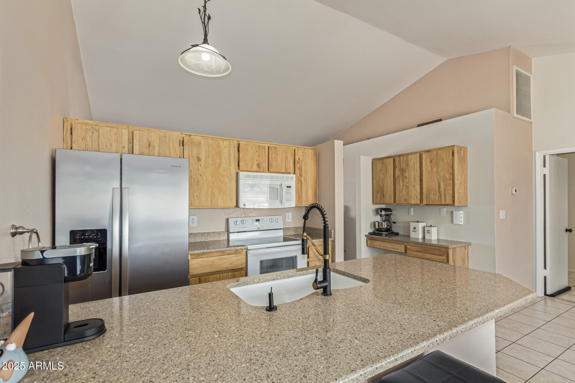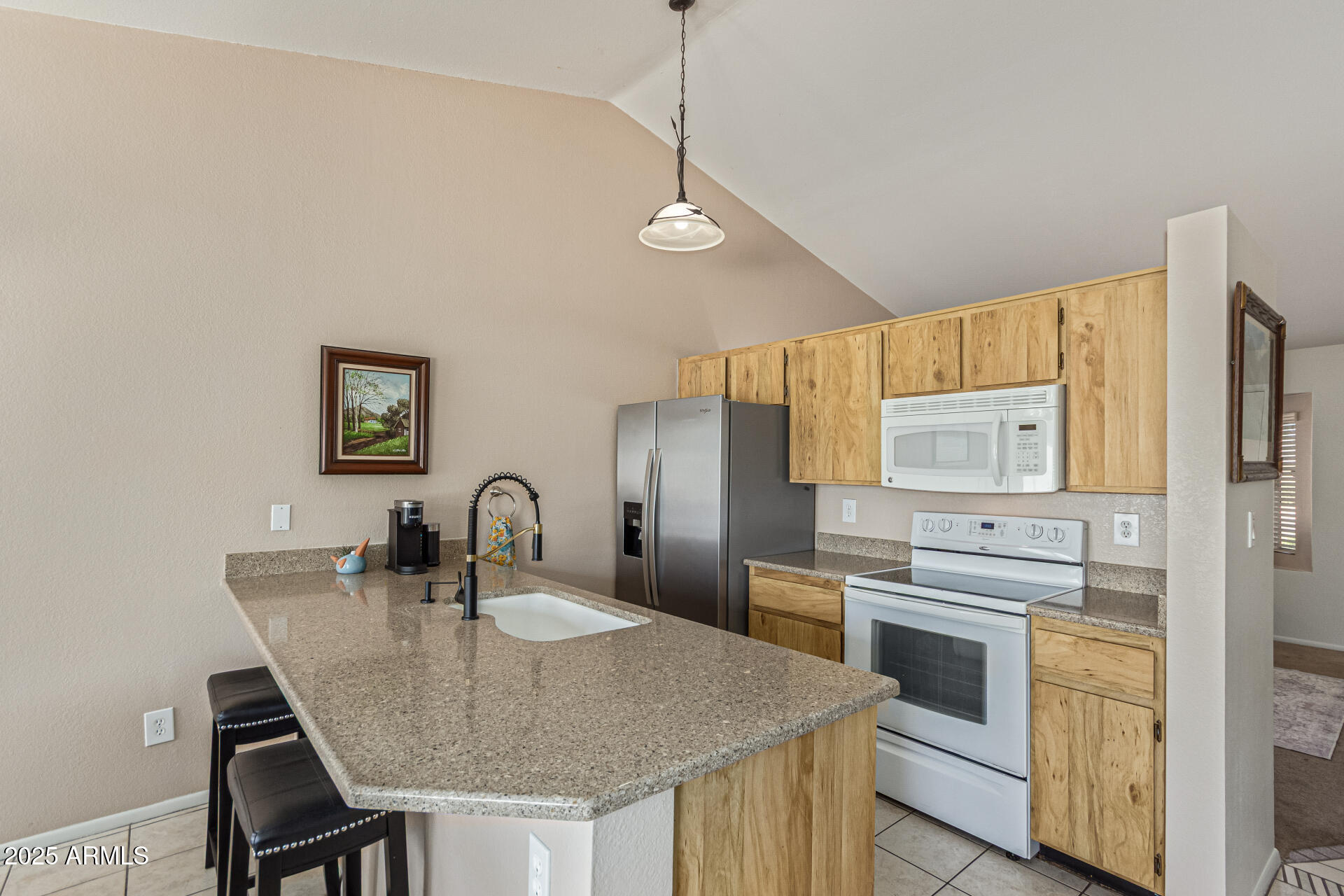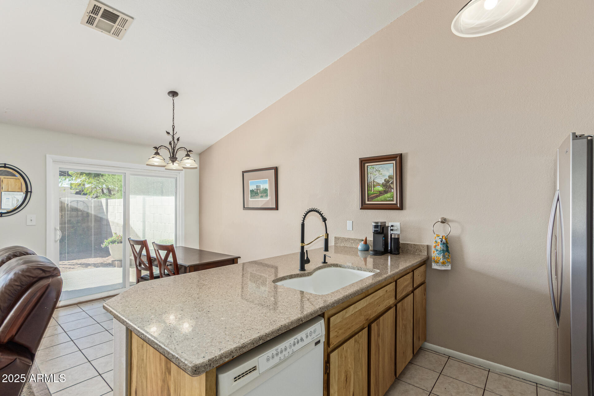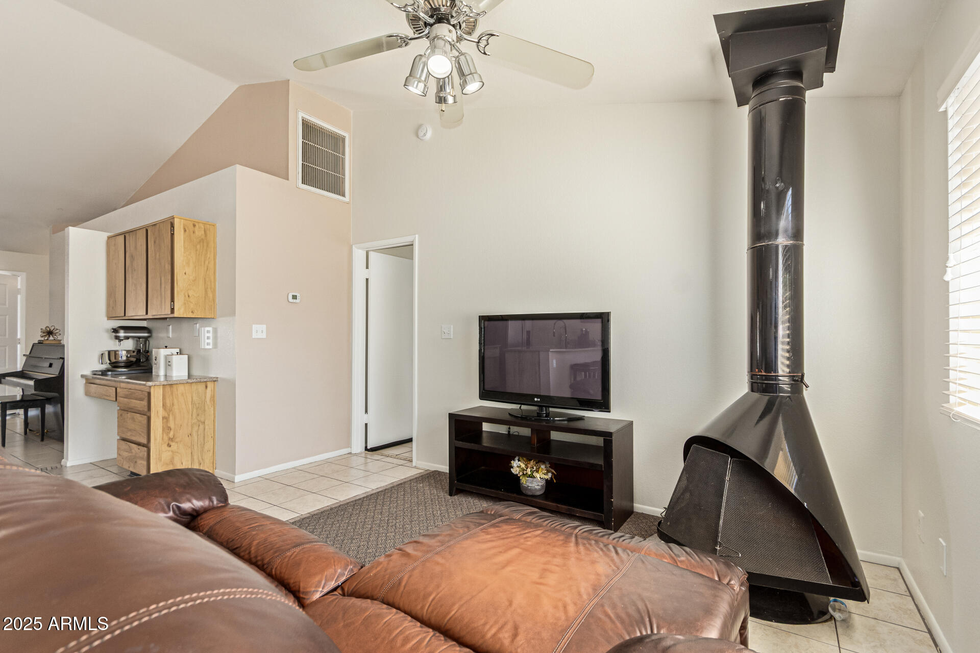 Location, location, location! Close to top restaurants, freeways, and premier shopping at Chandler Fashion Center. Welcome to this charming home in Suncrest Villas featuring 2 bedrooms, 2 baths, and a 1-car garage. Light and airy interior, tile in high traffic and wet area, low-vaulted ceilings. Flexible floor plan with a formal living room plus a great room highlighted by a freestanding fireplace and sliding doors to the backyard. The kitchen includes built-in appliances, granite counters, optimized cabinetry, and a peninsula with breakfast bar. Spacious primary suite with bay window, private bath, and walk-in closet...MORE tab Outside, enjoy a large backyard with an open patio, ideal for relaxing or entertaining, plus a side yard with double gate and an attached storage shed. Low HOA that includes front yard landscaping, and home exterior was freshly painted for great curb appeal. Welcome home!