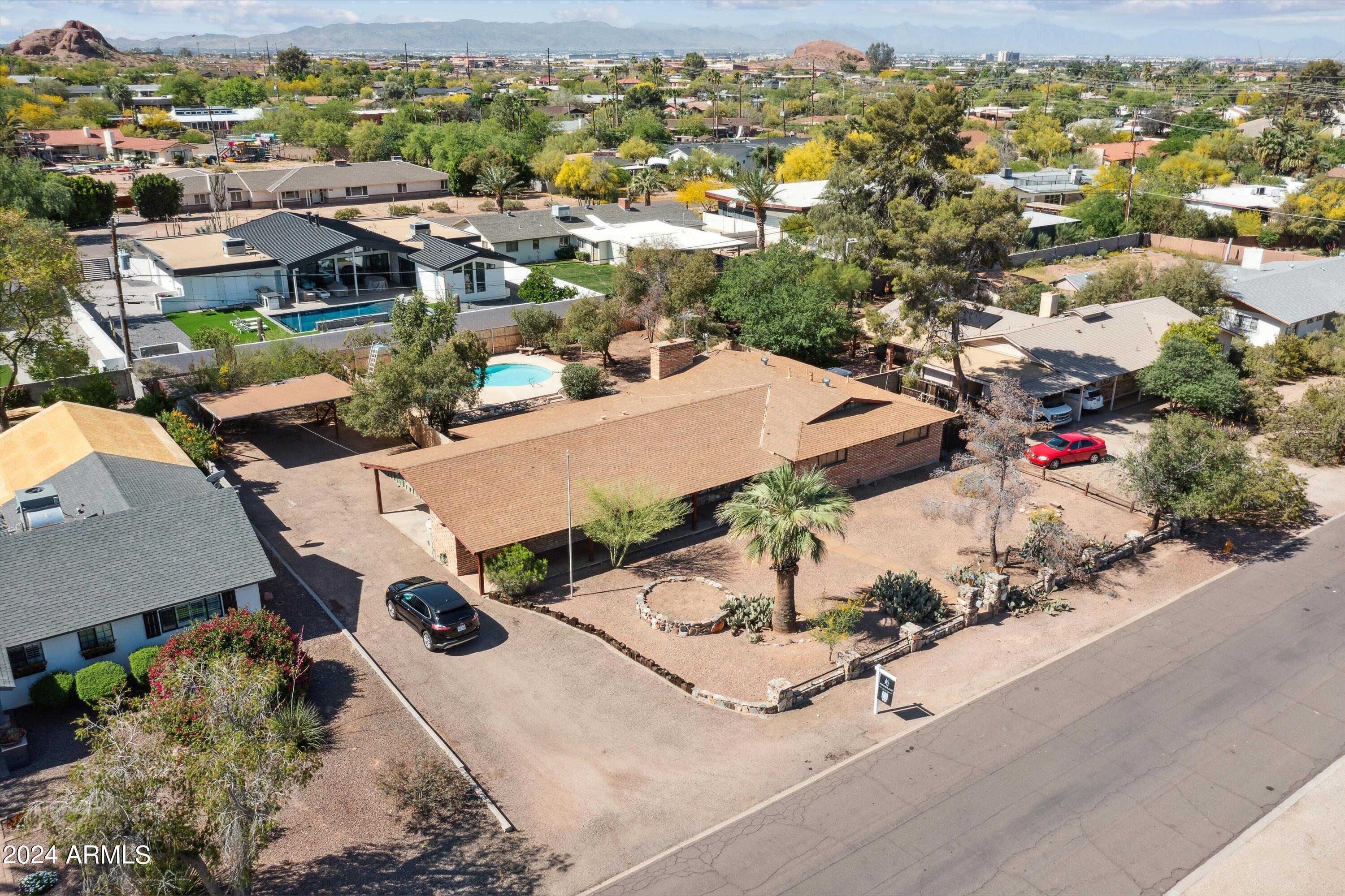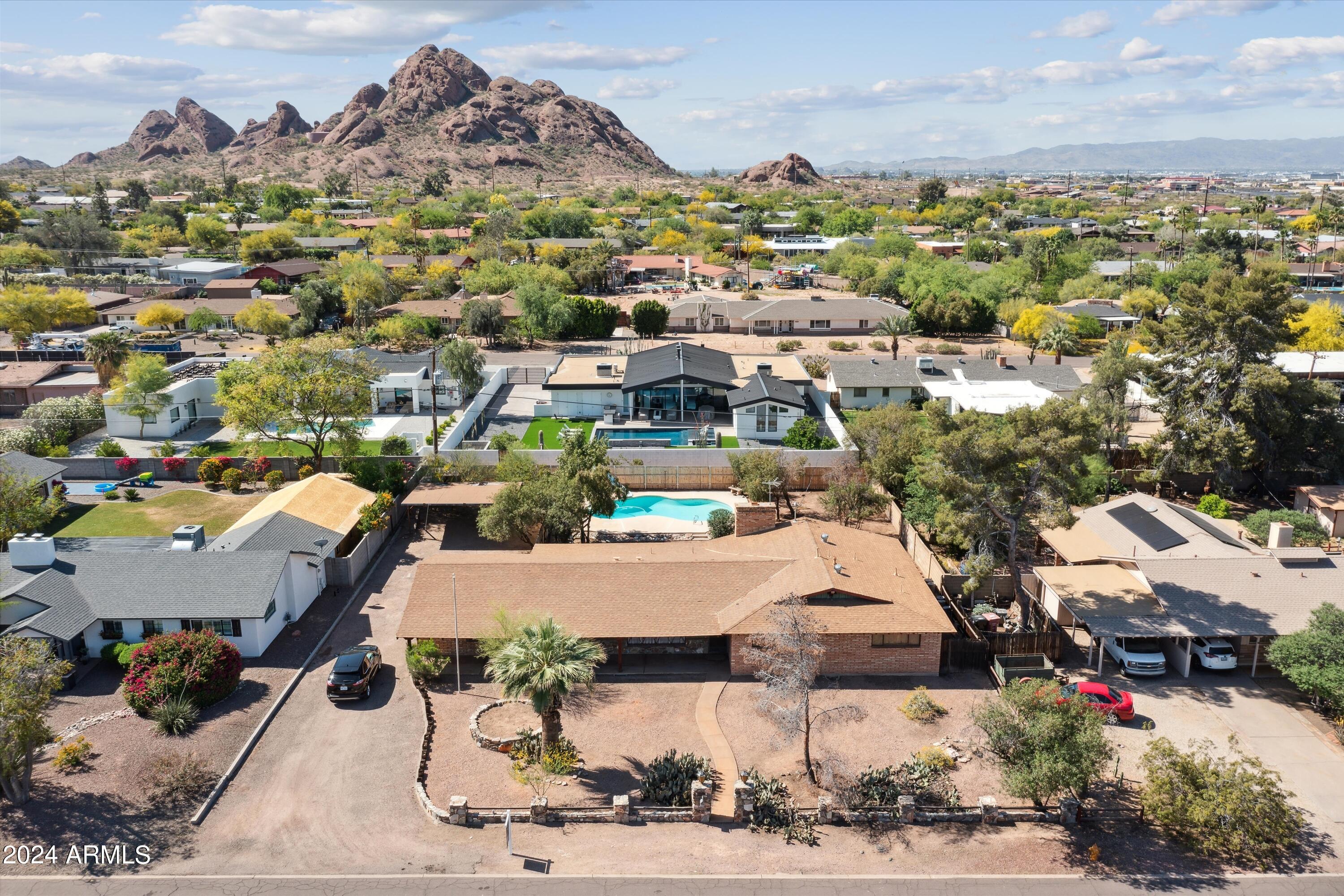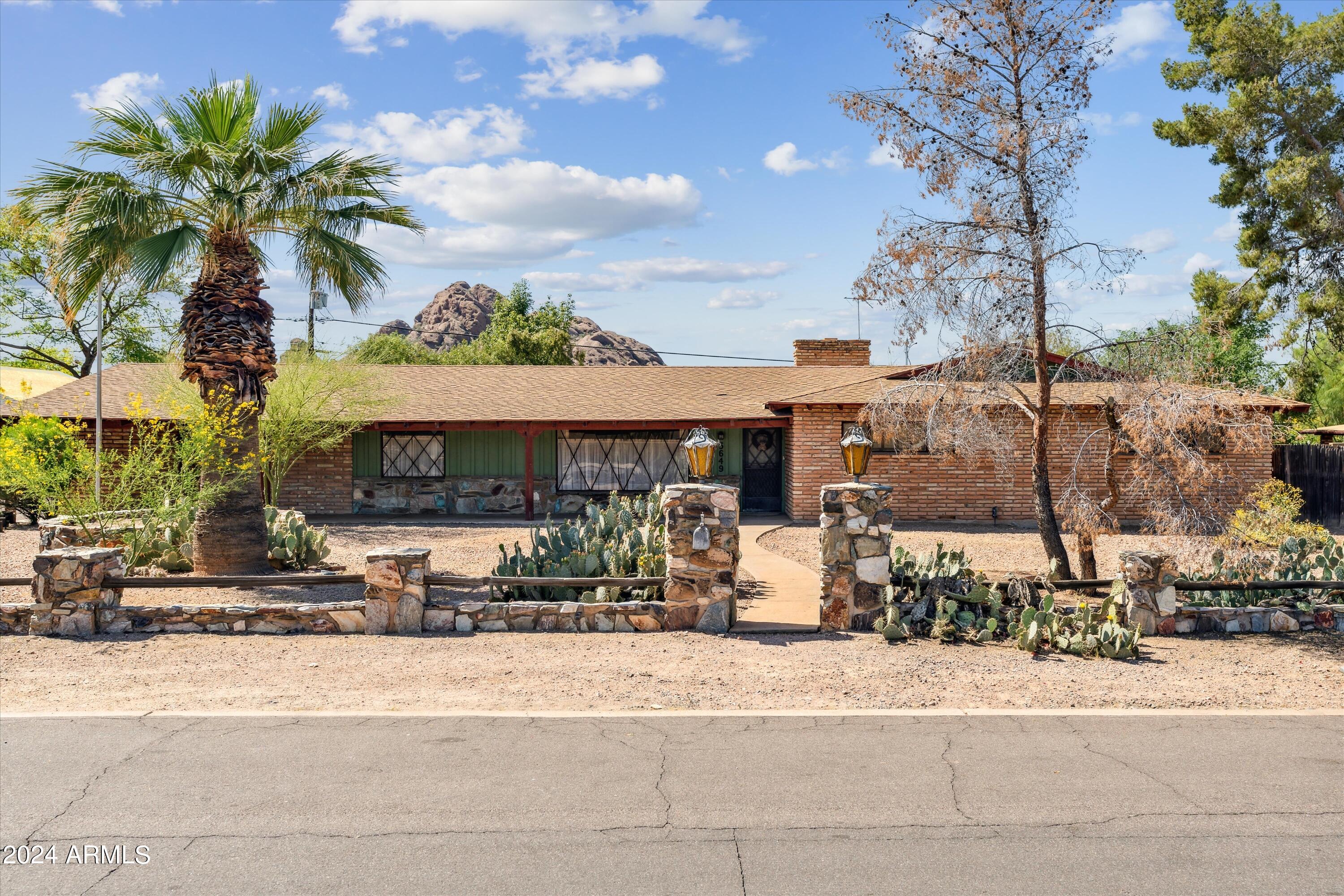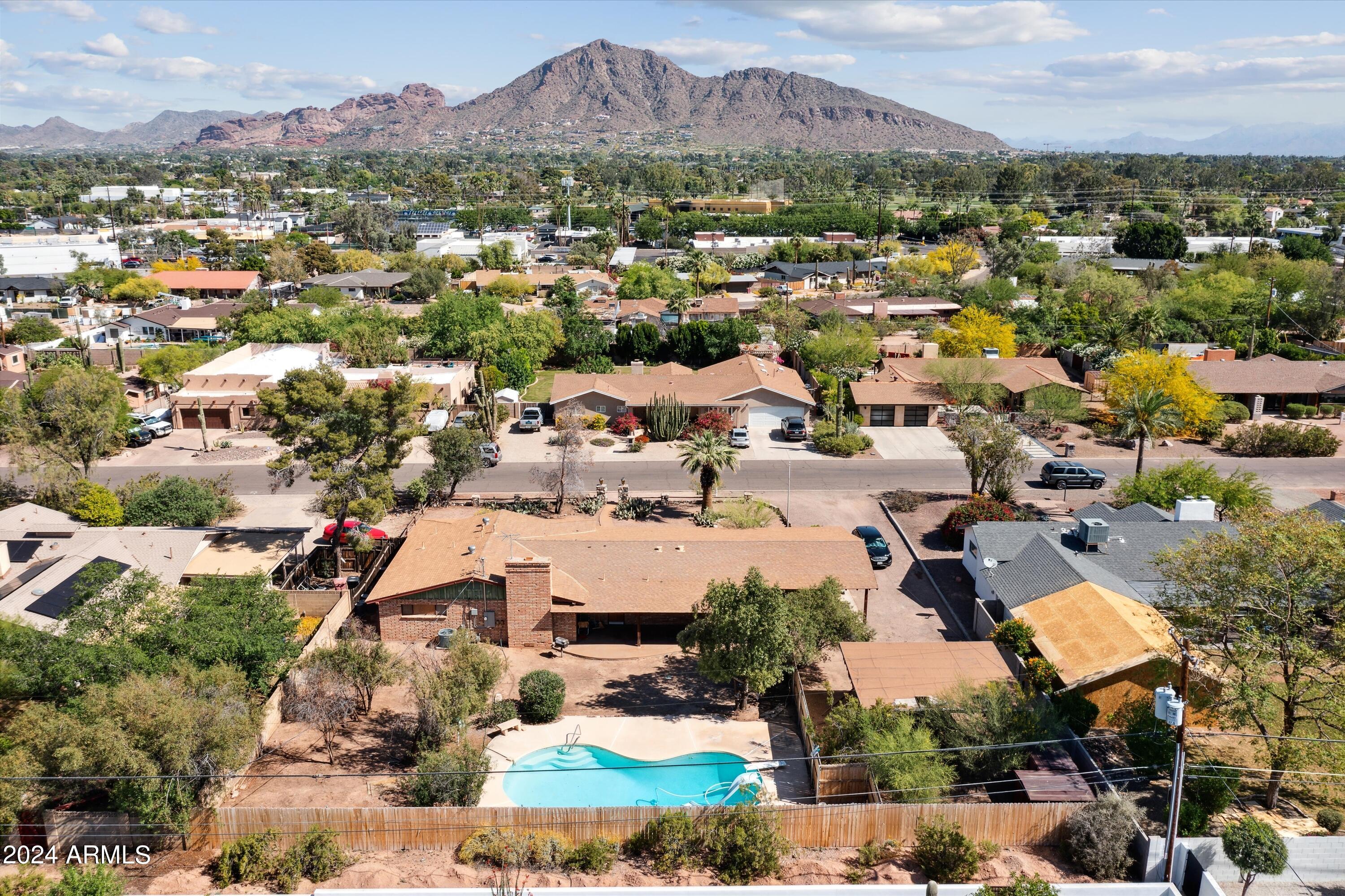Rare opportunity awaits to remodel, renovate or rebuild your dream home with this single level home located within an established Scottsdale neighborhood known for its large homesites, NO HOA & views of Camelback Mountain & Papago Peak Enjoy easy access to Old Town Scottsdale, Arcadia's finest dining & Biltmore Fashion Park. Minutes from Sky Harbor Airport, the 202, Phoenix Zoo, Botanical Gardens, ASU, the Arizona Country Club & more. This 3 bed 2 bath home features a formal living & dining room + separate family room with fireplace wall & wet bar area. Home features an almost 17,000 sq. ft oversized, north/south homesite with a pool offering space for expansion. Original ''As Is'' condition, make it your own!