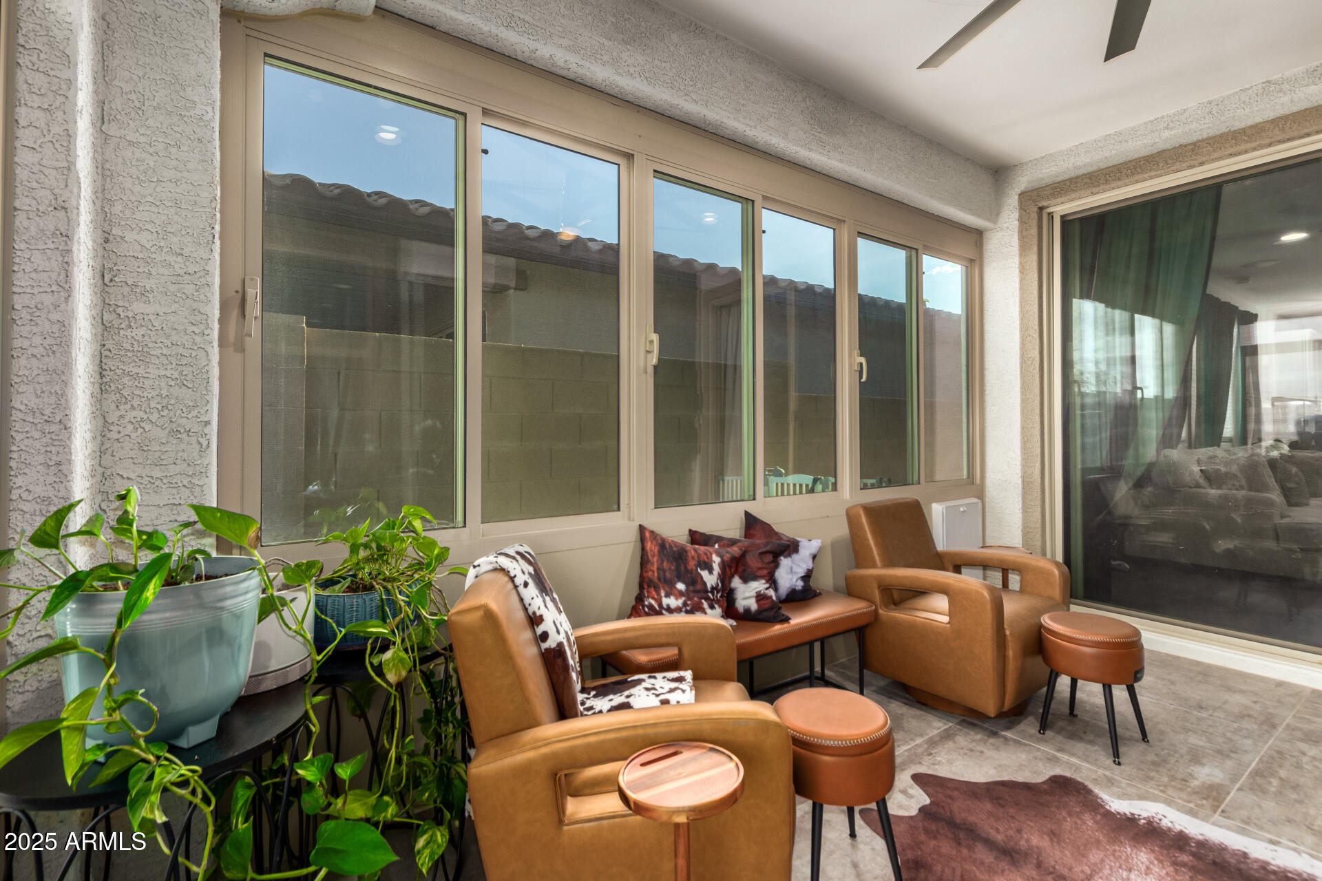 Additional features include a built-in shelving unit, an enclosed patio with a lifetime warranty, ceiling fan, and privacy screens. Enjoy climate control with a mini-split AC unit in the sunroom, while energy-saving sun reduction window screens provide added comfort in the main house.