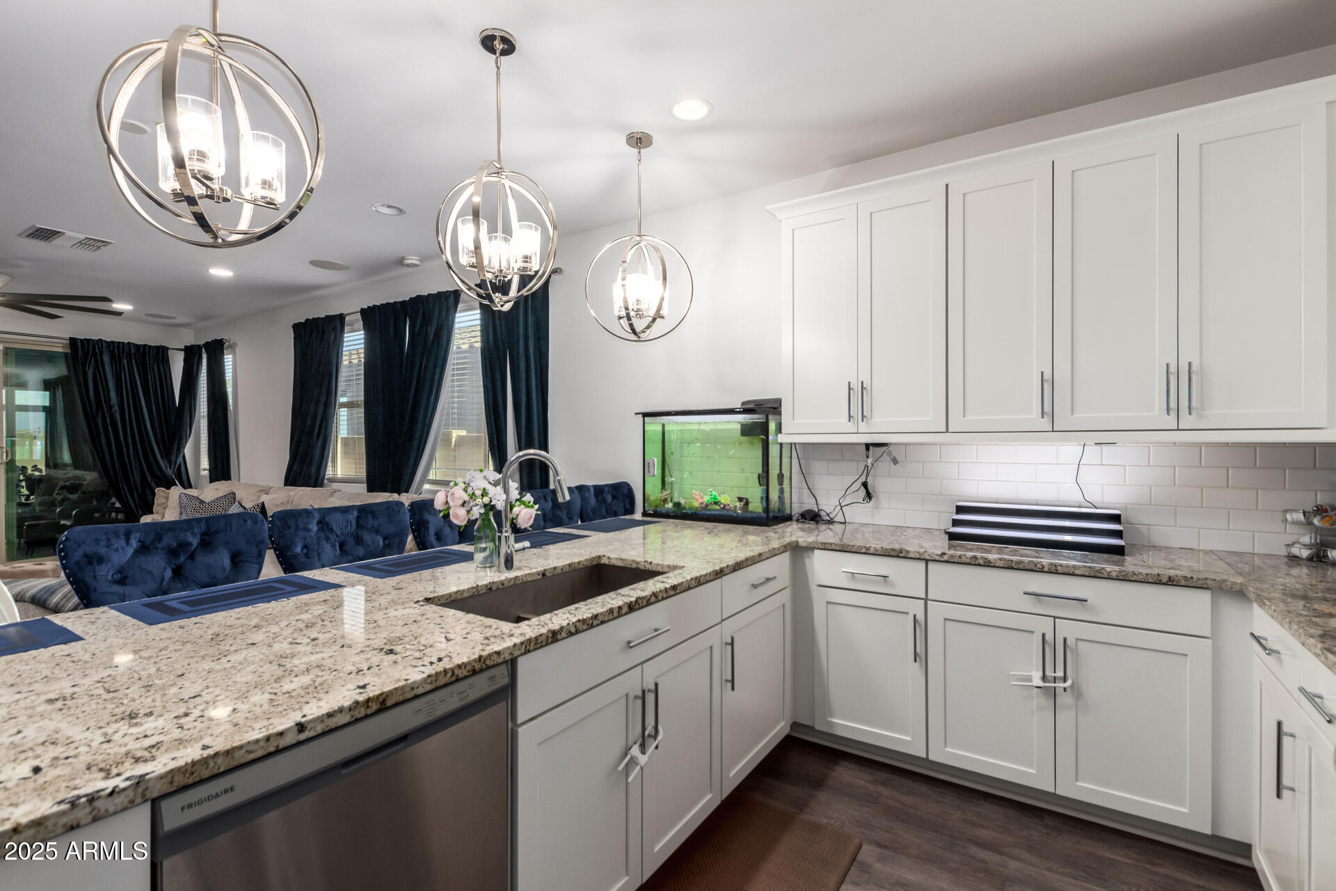 Experience exceptional sound quality with Pioneer ceiling surround speakers, and appreciate the thoughtfully designed paver walkway, complete with a dedicated garbage can landing. Pendant lighting in the kitchen area adds a touch of elegance to this remarkable home.