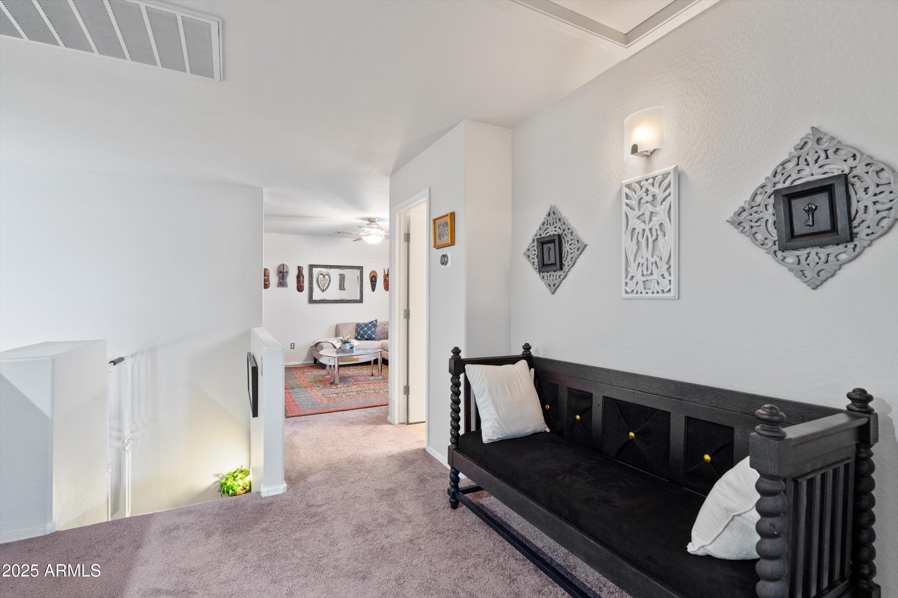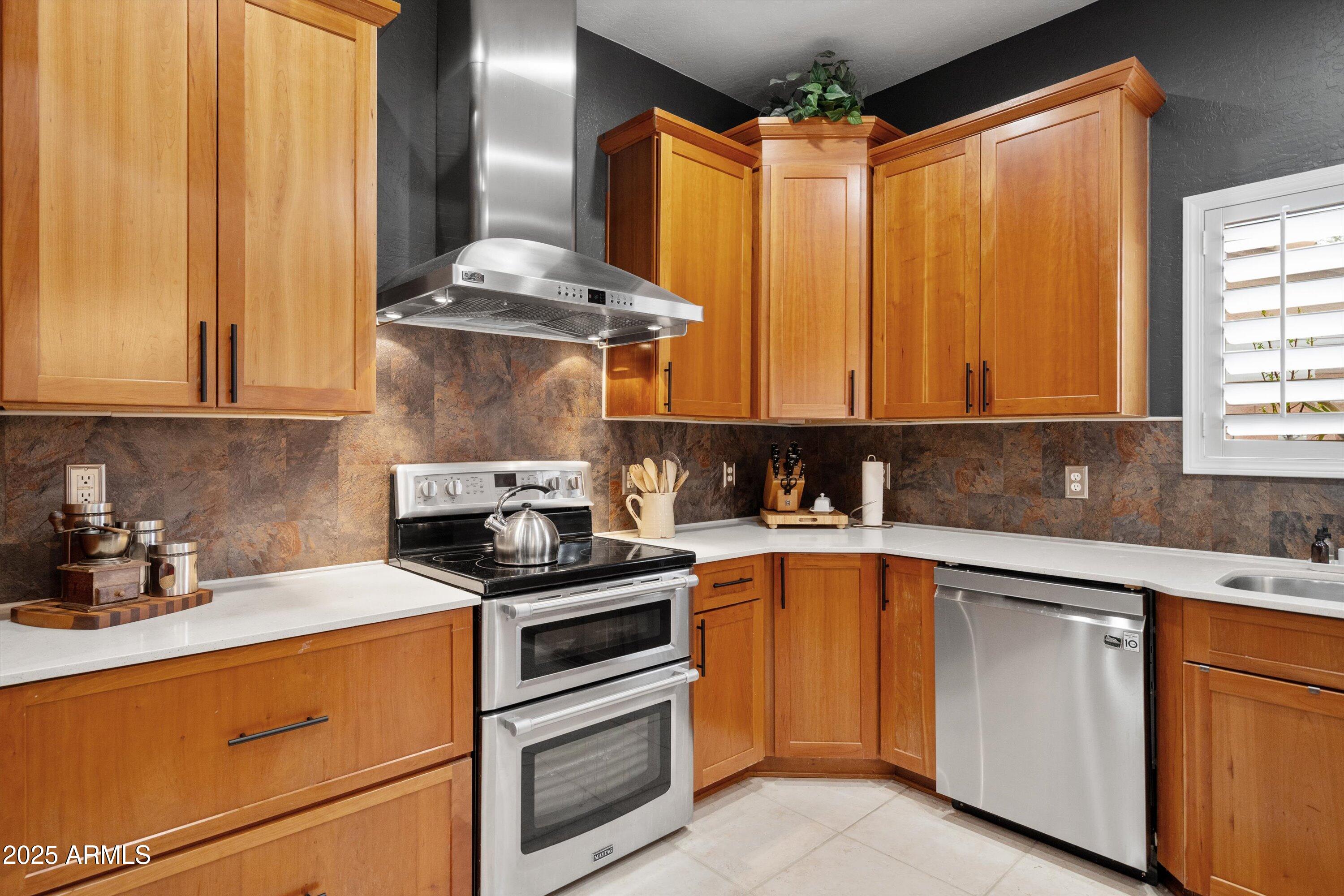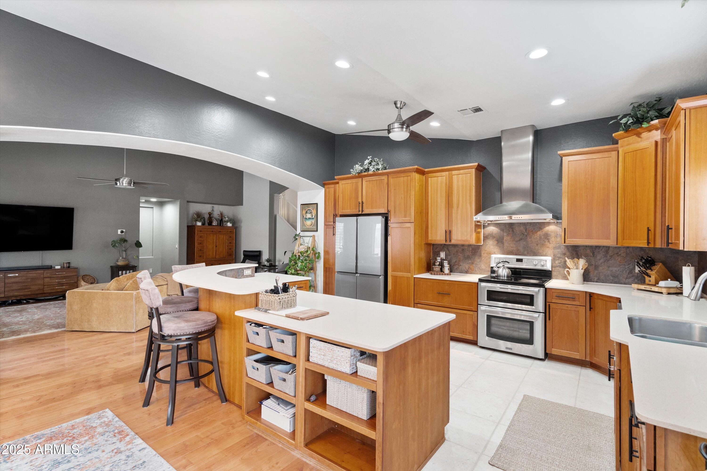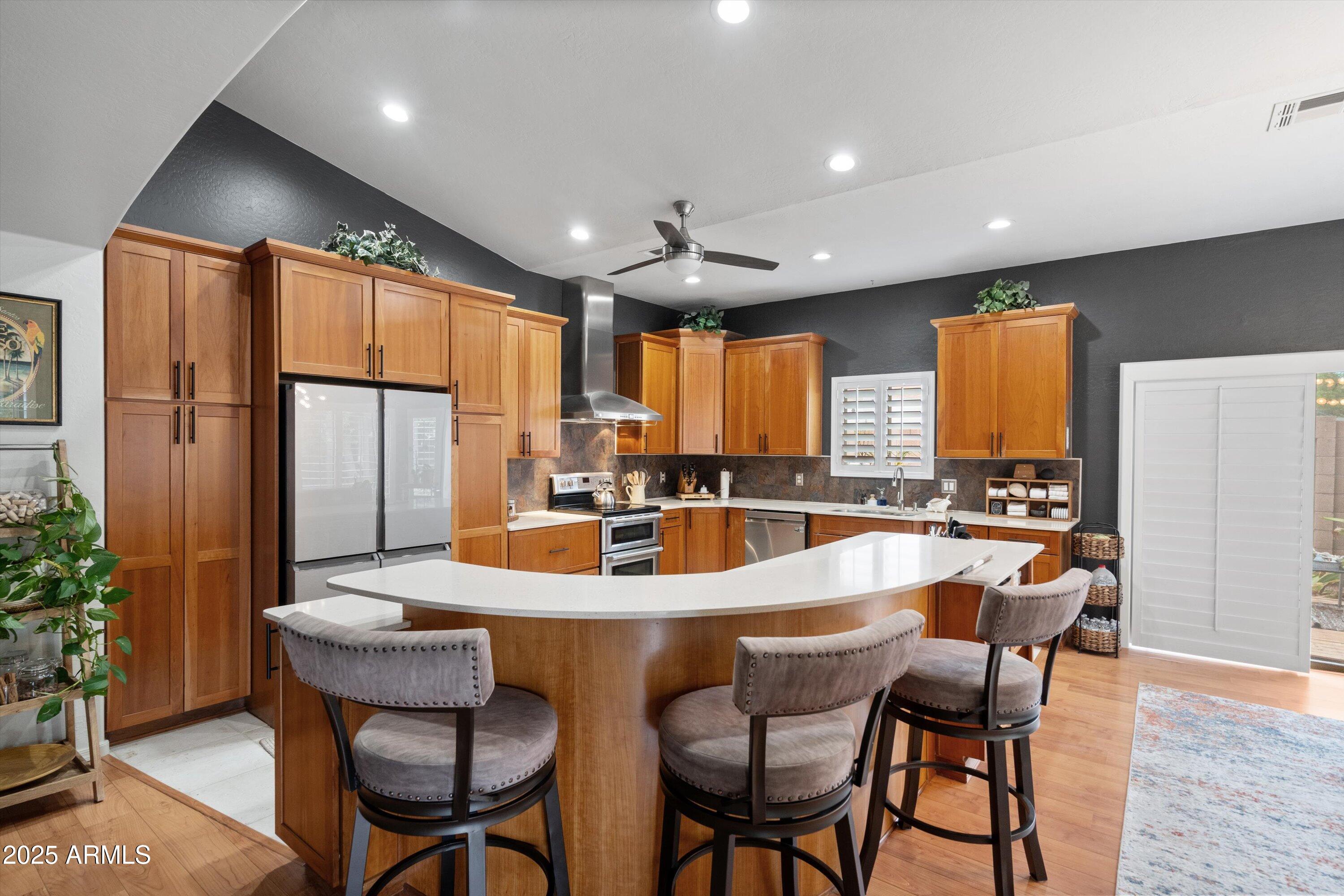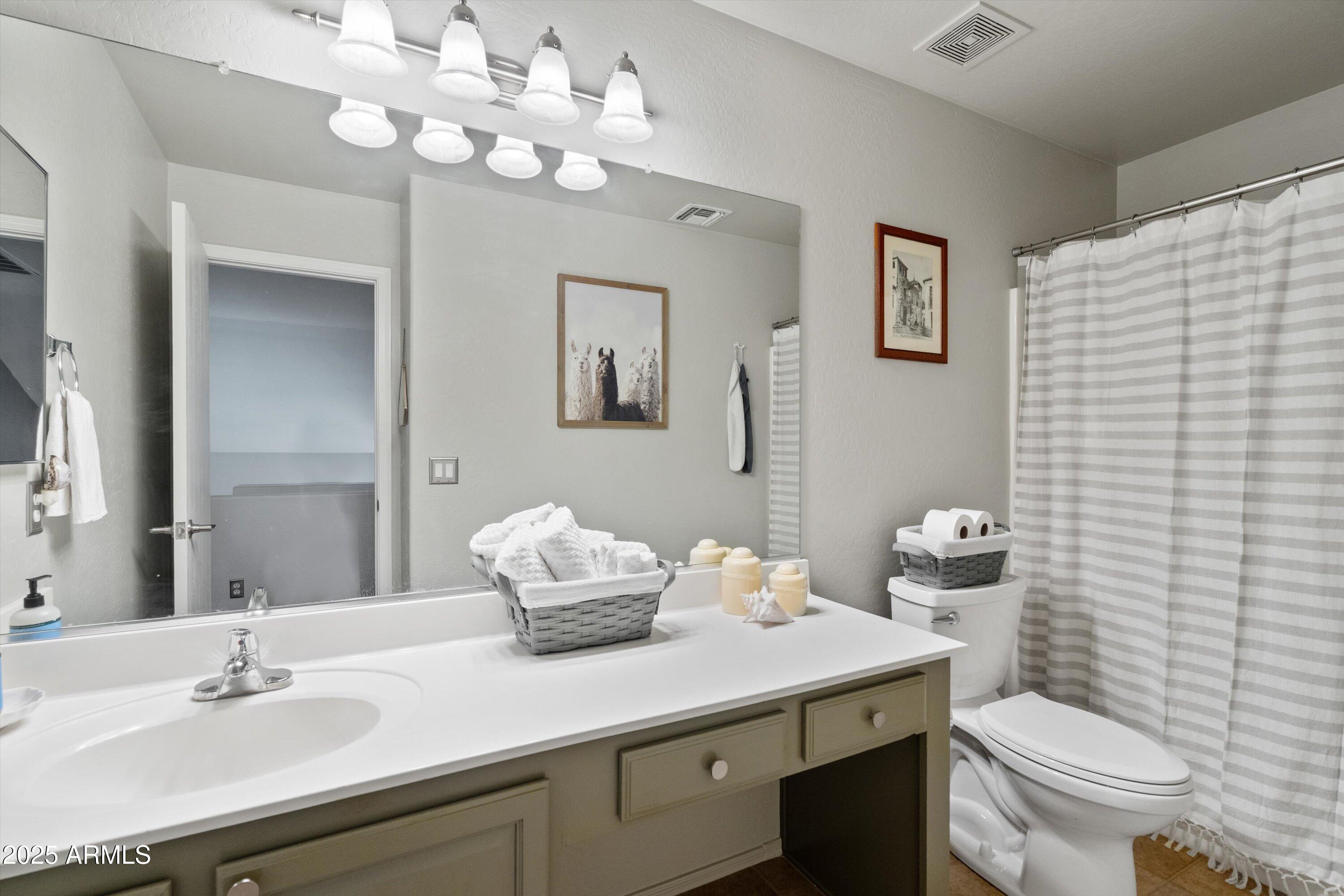 This 4-bedroom beauty boasts 2 master suites downstairs and 3.5 baths, with upgrades everywhere you look! Gorgeous tile and laminate flooring flow through the main living areas, accented by vaulted ceilings and wood shutters for a bright, open feel. The stunning kitchen features Silestone counters, stainless steel appliances, ample cabinetry, and a large breakfast bar. Step outside to your private oasis--an oversized backyard with a sparkling pool, multi-colored lighting, and a shaded retreat beneath a weeping willow tree and herb garden. Extras include a solar system (2 years left on lease), water softener, attic air purifier, and garage storage. Prime location near the I-10, 101, 303, and Luke AFB!