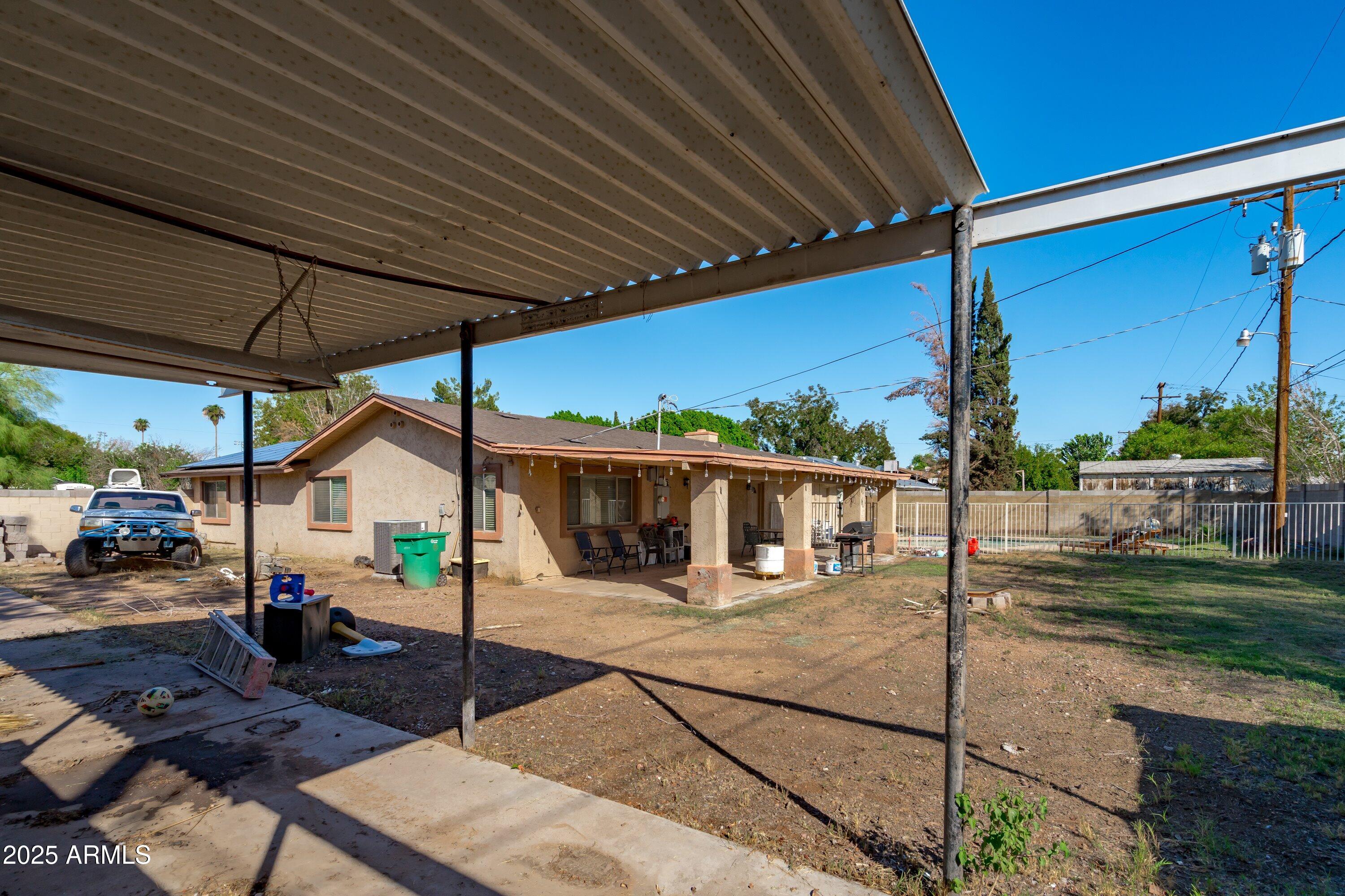 Welcome to this beautifully updated Mesa home on a spacious irrigated lot with no HOA. Major updates include a new roof (2021), 14 SEER A/C (2022), and a 200 amp electrical panel upgrade. Energy efficiency shines with dual pane windows at the rear, Energy Star windows at the front, and owned solar (paid off at closing). The remodeled kitchen features granite countertops, a breakfast bar, and ample cabinet space, opening to the living area for comfortable gatherings. Step outside to enjoy a PebbleTec pool (refinished 2018), covered patio, and a large backyard with RV gate and RV parking. Conveniently located near Downtown Mesa, Riverview Park, Sloan Park (Chicago Cubs spring training), Mesa Riverview shopping, Tempe Marketplace, and the light rail.