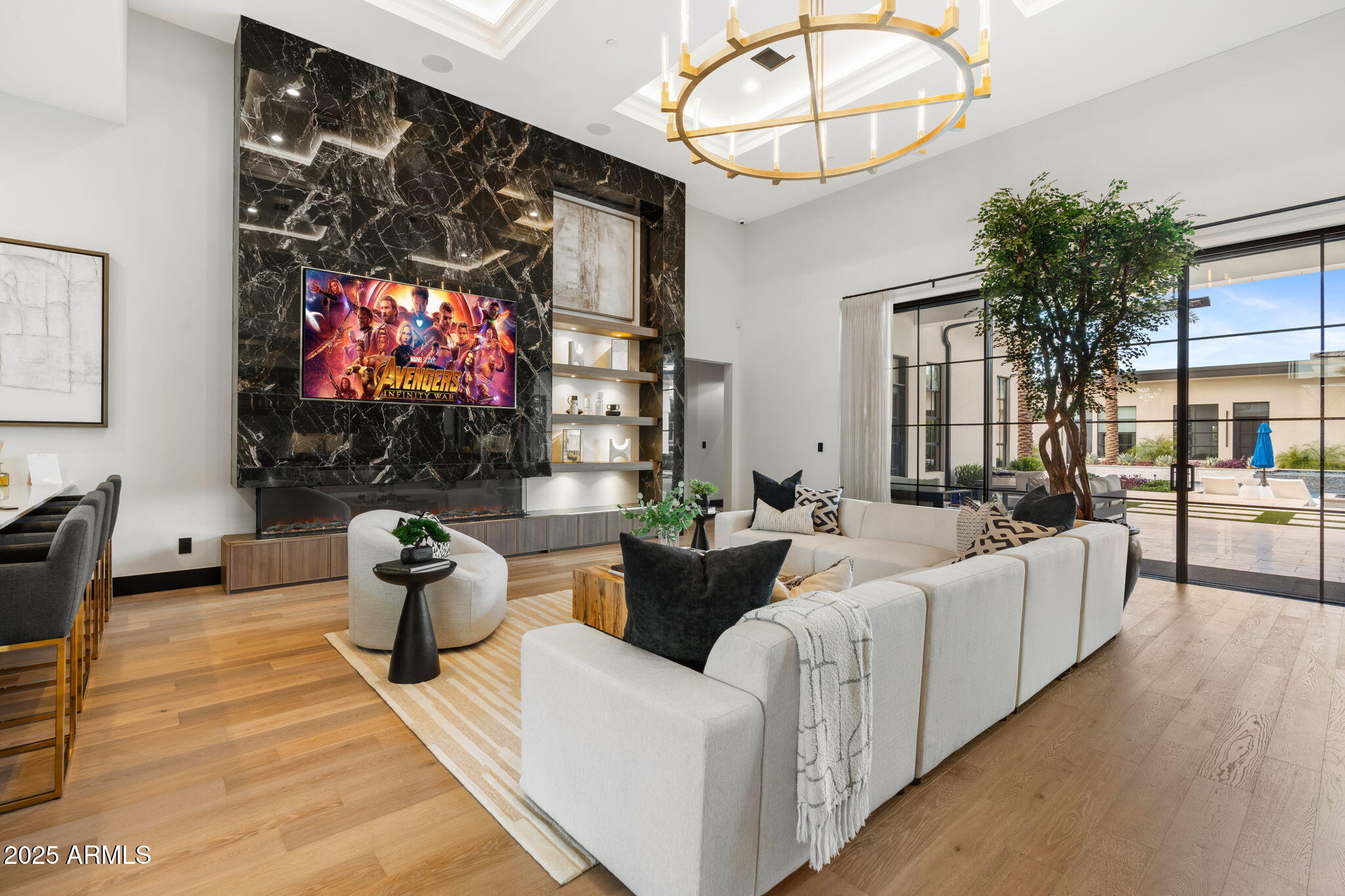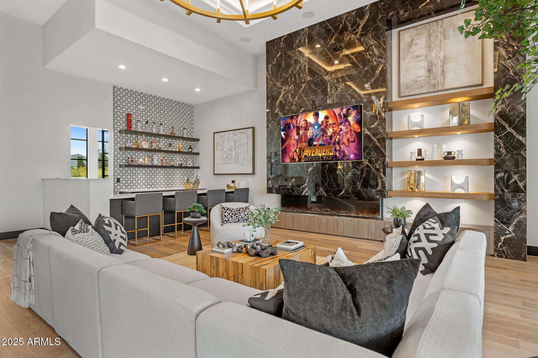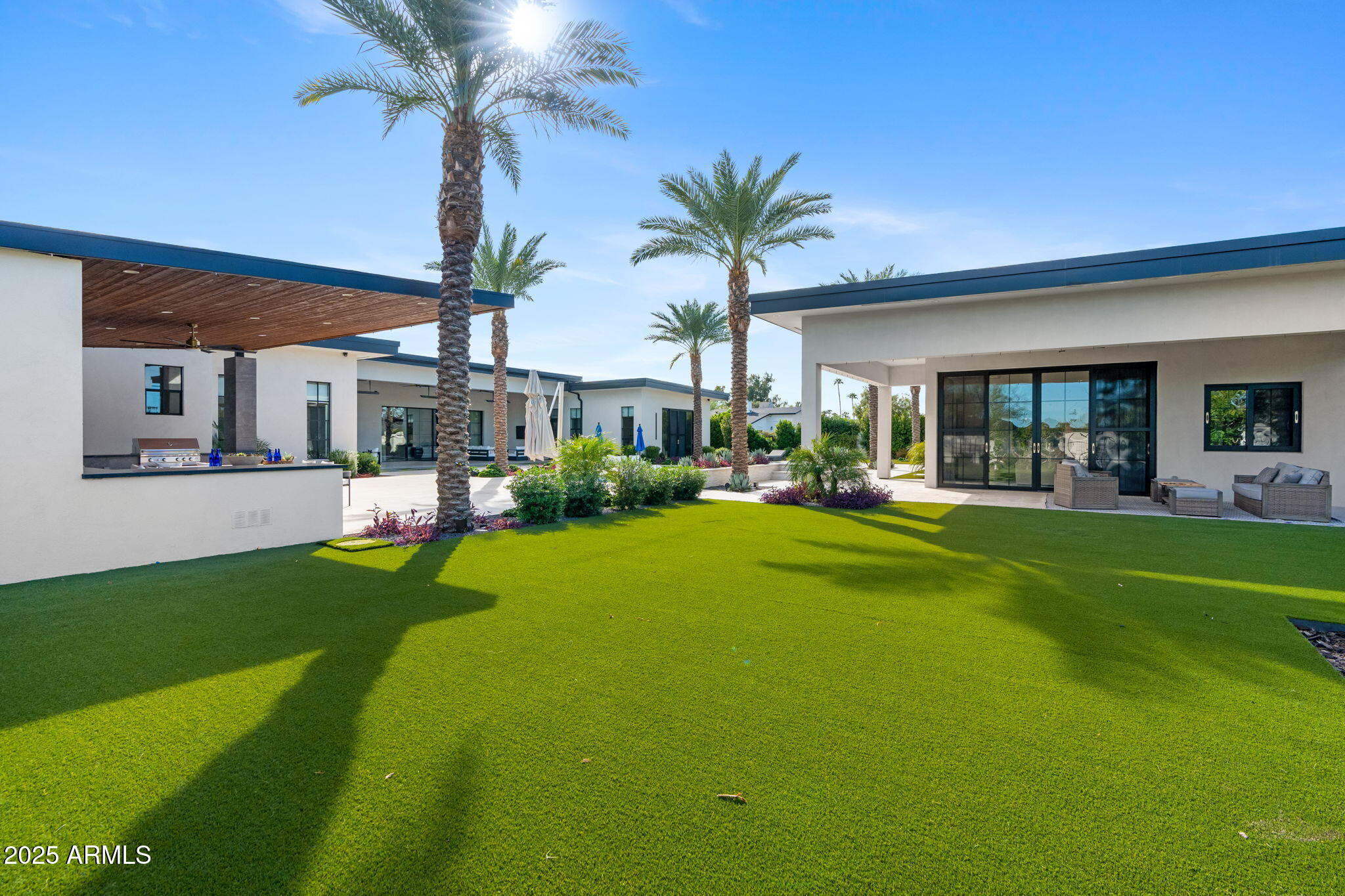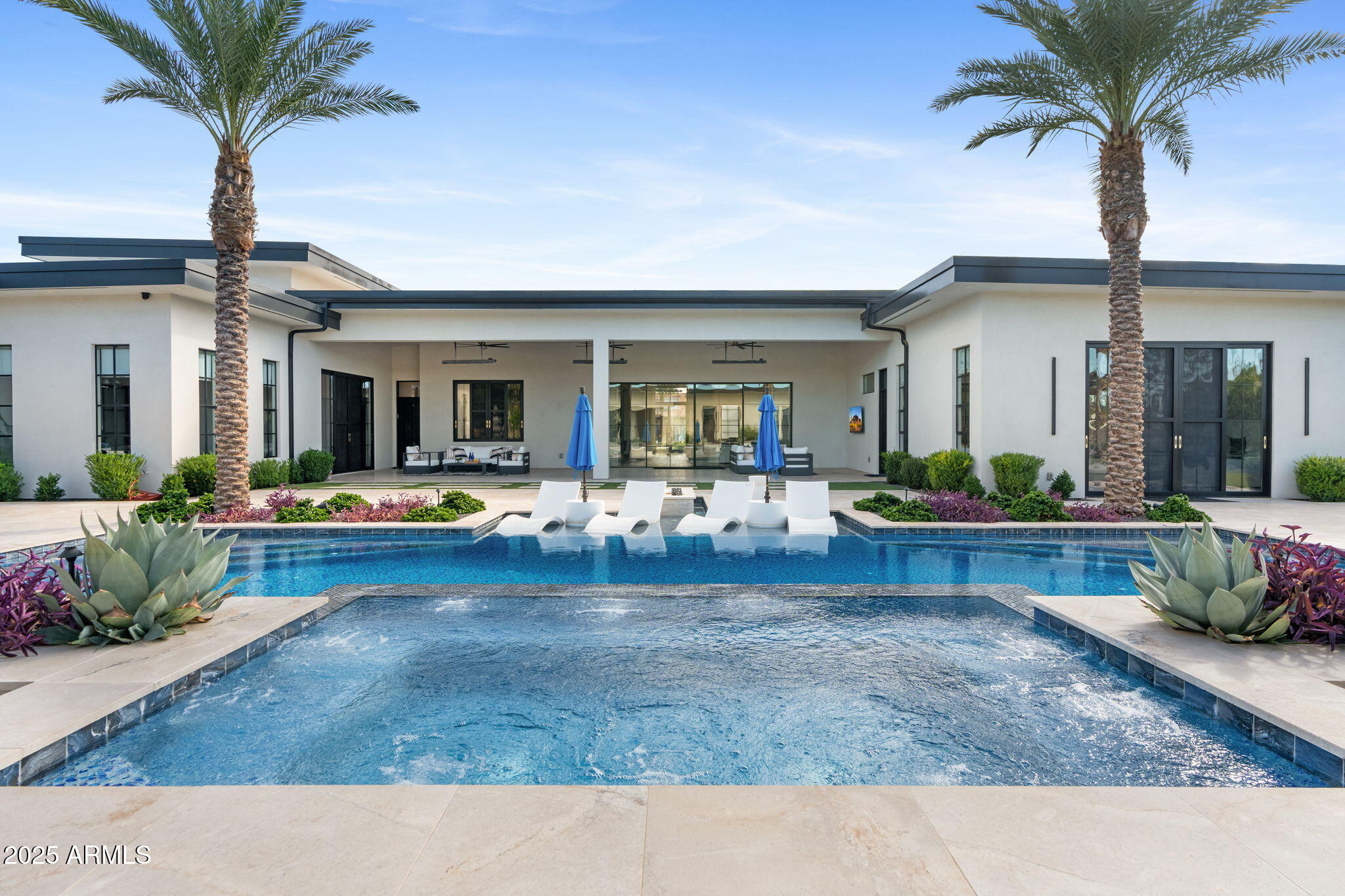 Discover unparalleled luxury in this 2022 custom built estate nestled in the heart of Paradise Valley, meticulously designed for family entertaining. The expansive kitchen is a culinary haven, boasting an oversized island, Sub Zero fridge and freezer, dual Cove dishwashers, never used Wolf steam oven, Transform home entertaining in the expansive game room. The bar is equipped with beverage fridges and an ice maker. The family room, adorned with 16' ceilings, seamlessly connects indoor and outdoor entertainment area spaces through an expansive 22- ft retractable pocket door flooding natural light framing breathtaking views. Indulge in casual dinners or elegant affairs in the formal dining room. Featuring 40 custom designed iron doors this residence showcases modern elegance in every detail The primary suite is a true retreat, centered around a fireplace encased in gold inlaid white marble tile and a resort style bath with a steam shower, soaking tub, beverage bar, separate laundry area, dual walk in closets. The kids' wing offers three additional ensuite bedrooms with walk-in closets off of a central flex/game room. Enjoy working from home in the office with custom ceiling details, French Doors to the side courtyard and a private half bath. Elevate your living experience with a Smart Home, controlled by a state-of-the-art Control 4 Home Automation System managing lighting, thermostats, cameras, security, and audio. The four-car garage boasts insulated doors and epoxy floors. Step into a resort-style backyard with expansive limestone pavered patios overlooking a custom basketball court and a stunning heated pool with baja step, cascading water features, fire features and spa. Relax by the gas fire pit poolside or temp your tastebuds at the 42" built-in grill with a never used pizza oven. Guests will feel right at home in the detached casita with one bedroom, 1.5 bath, gym room and a separate living room with kitchenette and laundry area. Captivating finishes include European Oak floors, synthetic stucco, exterior limestone accents, custom iron gates, stone, marble, and granite finishes, LED lights throughout, and wood-clad Low-E windows. Additional features include two gas tankless hot water heaters, upgraded foam insulation, a high-pressure misting system and much more in this extraordinary home!