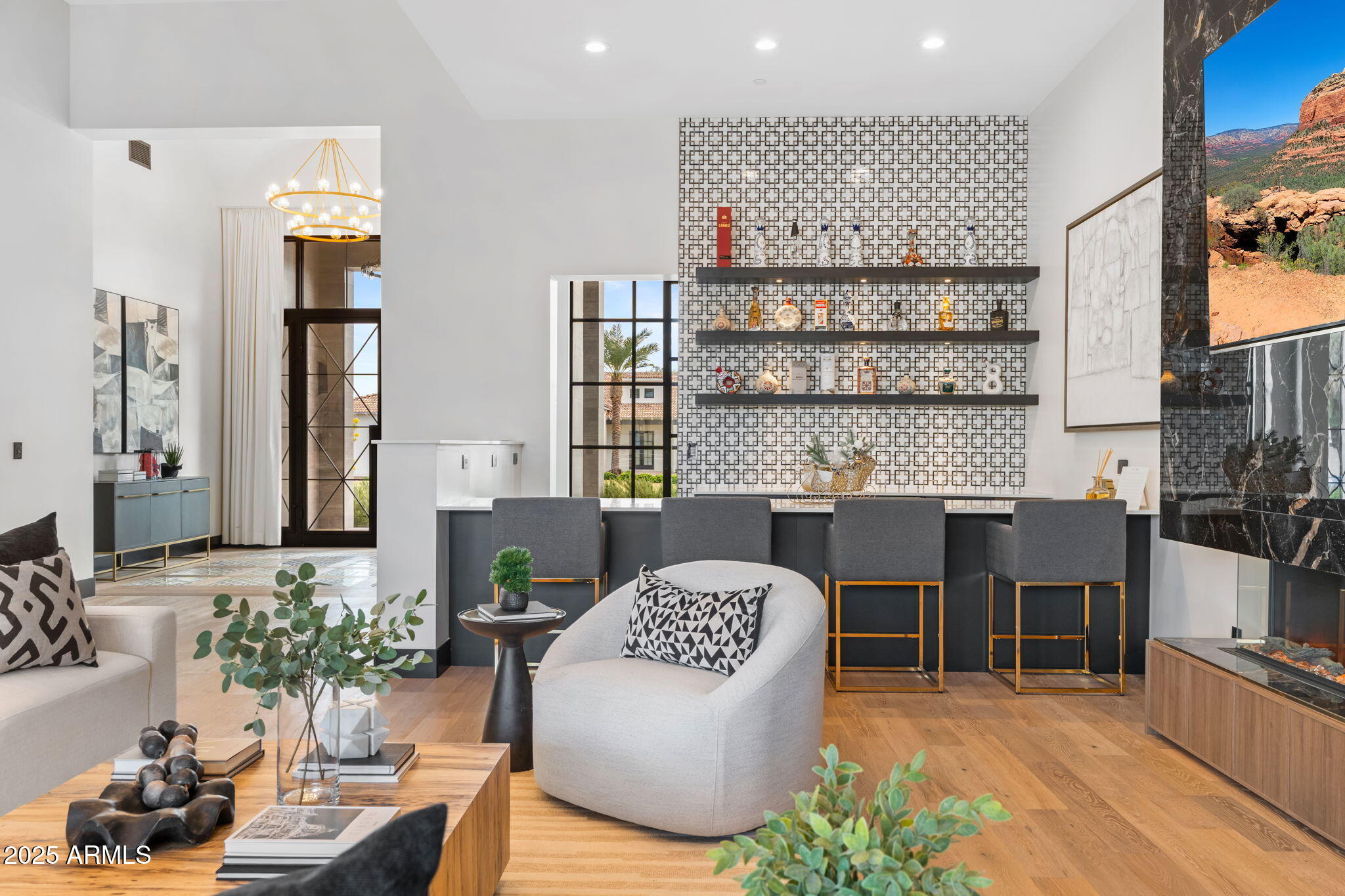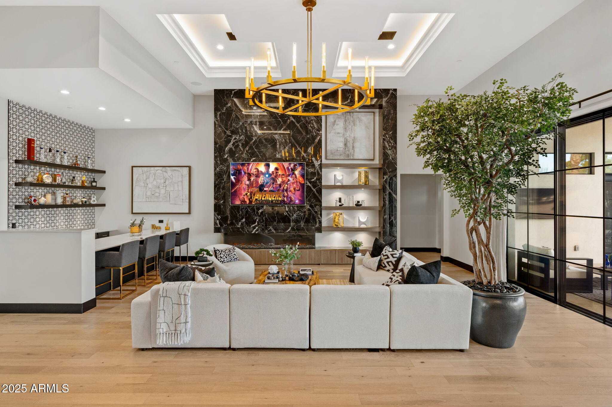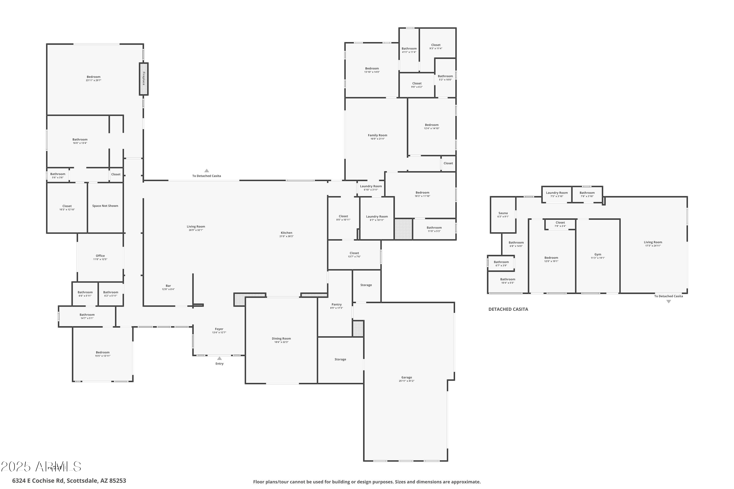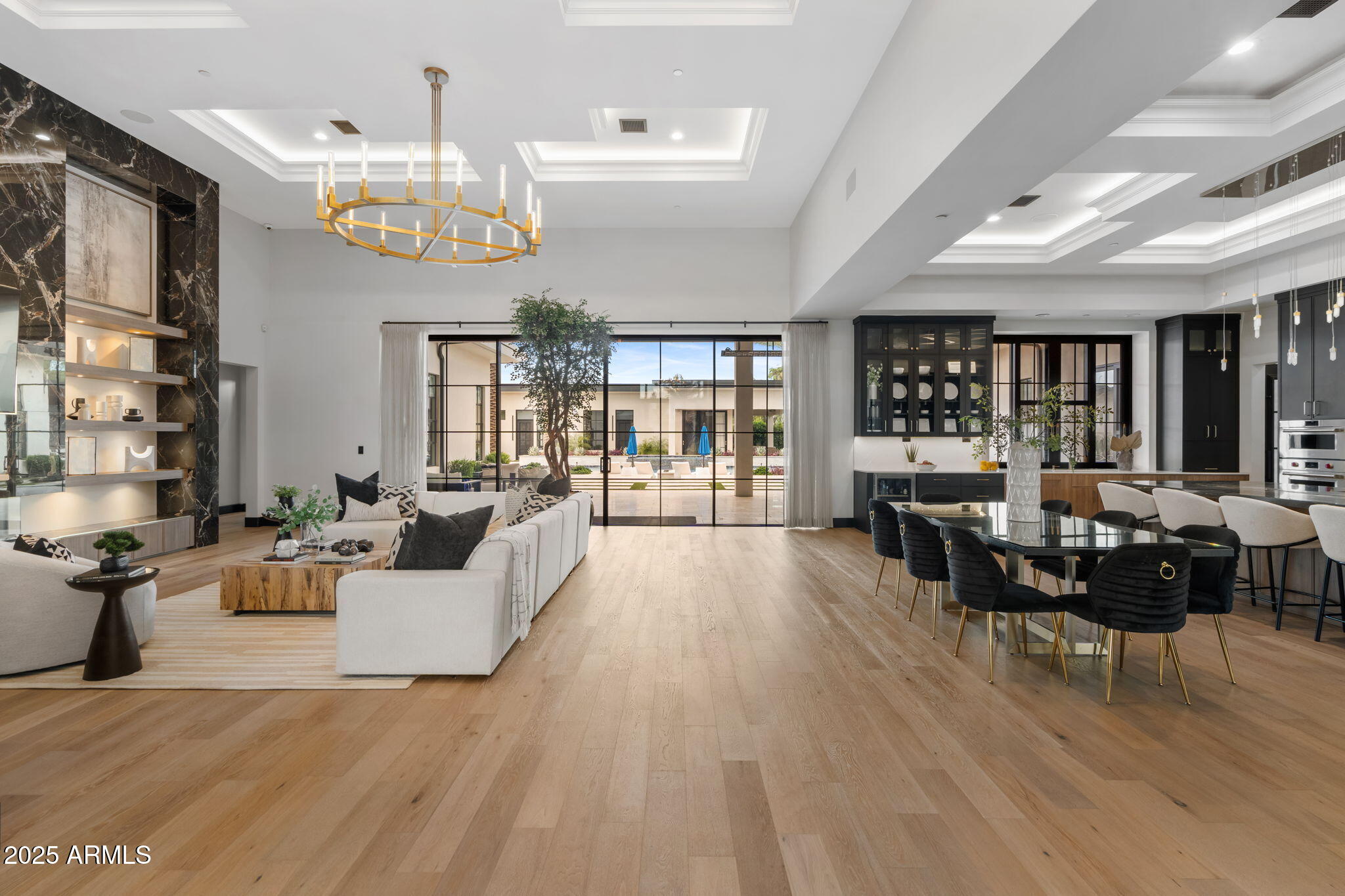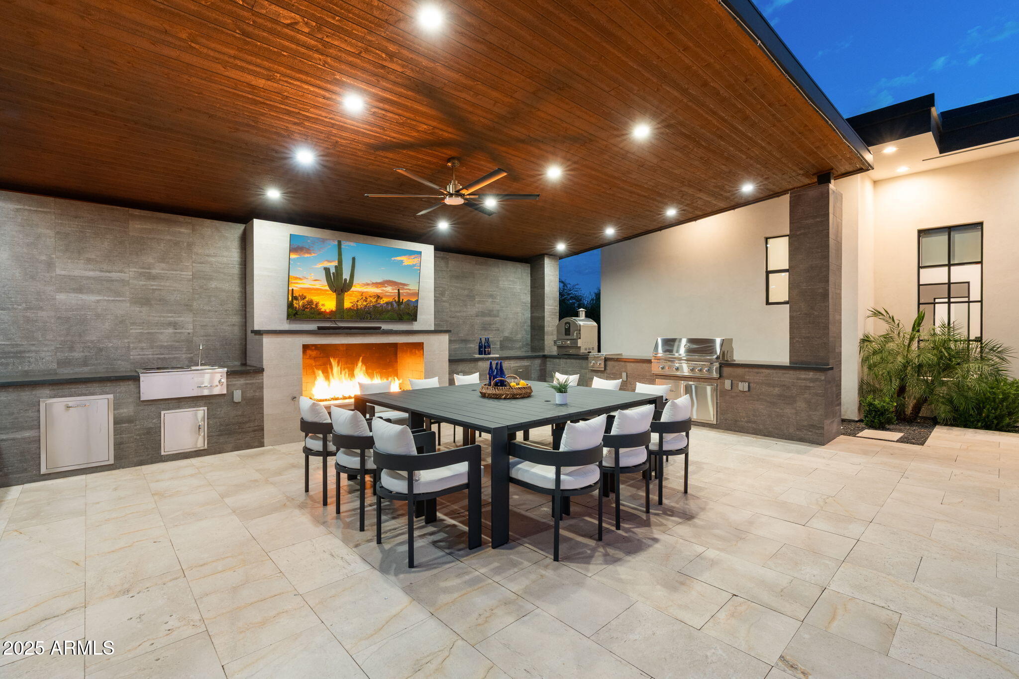 Discover unparalleled luxury in this 2022 custom built estate nestled in the heart of Paradise Valley, meticulously designed for family entertaining. The expansive kitchen is a culinary haven, boasting an oversized island, Sub Zero fridge and freezer, dual Cove dishwashers, never used Wolf steam oven, Transform home entertaining in the expansive game room. The bar is equipped with beverage fridges and an ice maker. The family room, adorned with 16' ceilings, seamlessly connects indoor and outdoor entertainment area spaces through an expansive 22- ft retractable pocket door flooding natural light framing breathtaking views. Indulge in casual dinners or elegant affairs in the formal dining room. Featuring 40 custom designed iron doors this residence showcases modern elegance in every detail The primary suite is a true retreat, centered around a fireplace encased in gold inlaid white marble tile and a resort style bath with a steam shower, soaking tub, beverage bar, separate laundry area, dual walk in closets. The kids' wing offers three additional ensuite bedrooms with walk-in closets off of a central flex/game room. Enjoy working from home in the office with custom ceiling details, French Doors to the side courtyard and a private half bath. Elevate your living experience with a Smart Home, controlled by a state-of-the-art Control 4 Home Automation System managing lighting, thermostats, cameras, security, and audio. The four-car garage boasts insulated doors and epoxy floors. Step into a resort-style backyard with expansive limestone pavered patios overlooking a custom basketball court and a stunning heated pool with baja step, cascading water features, fire features and spa. Relax by the gas fire pit poolside or temp your tastebuds at the 42" built-in grill with a never used pizza oven. Guests will feel right at home in the detached casita with one bedroom, 1.5 bath, gym room and a separate living room with kitchenette and laundry area. Captivating finishes include European Oak floors, synthetic stucco, exterior limestone accents, custom iron gates, stone, marble, and granite finishes, LED lights throughout, and wood-clad Low-E windows. Additional features include two gas tankless hot water heaters, upgraded foam insulation, a high-pressure misting system and much more in this extraordinary home!