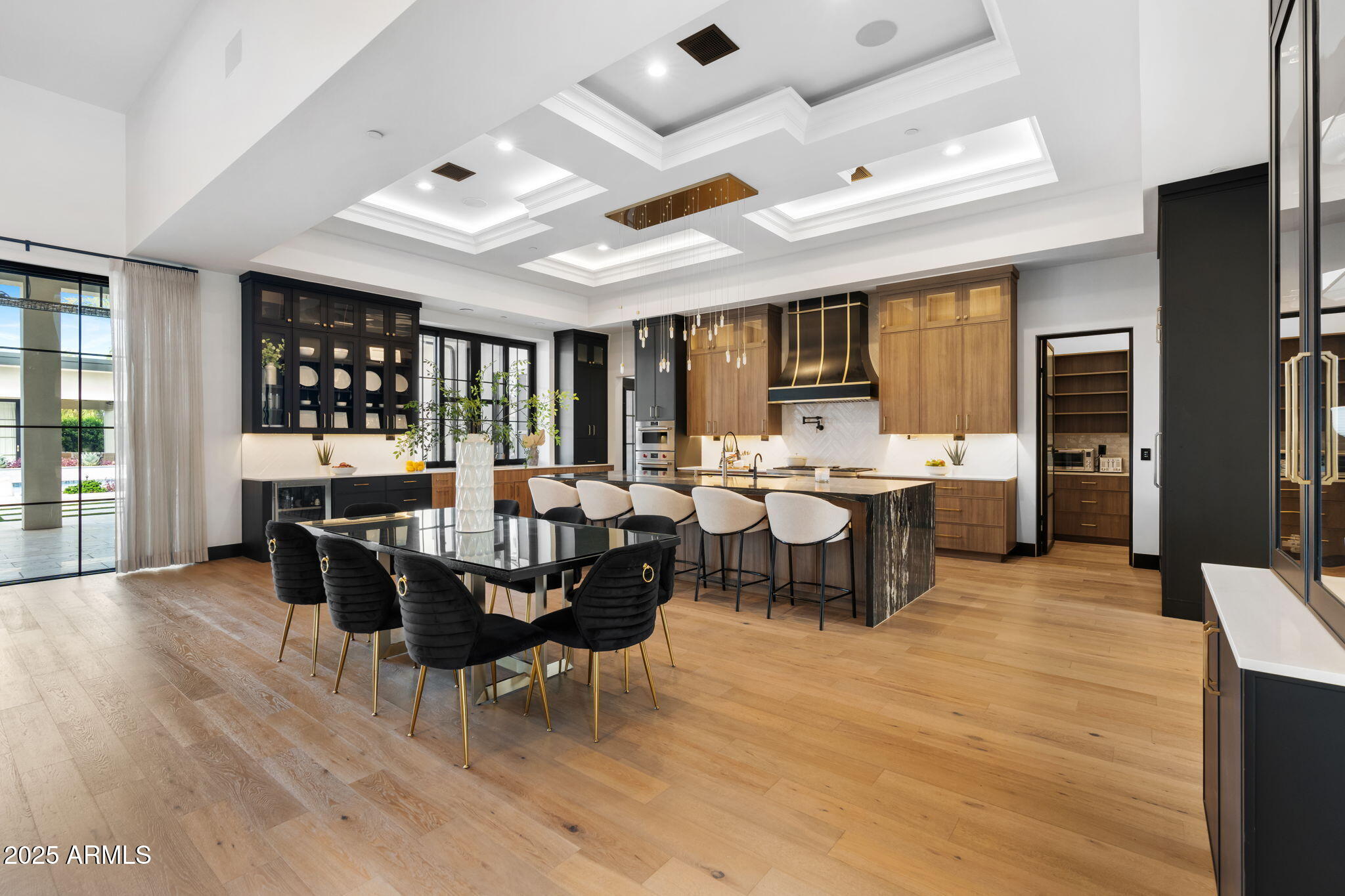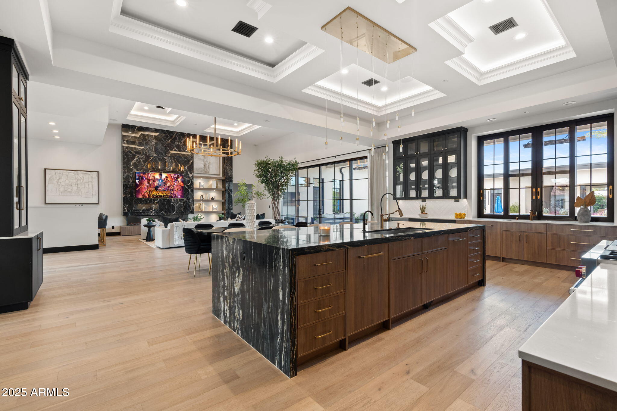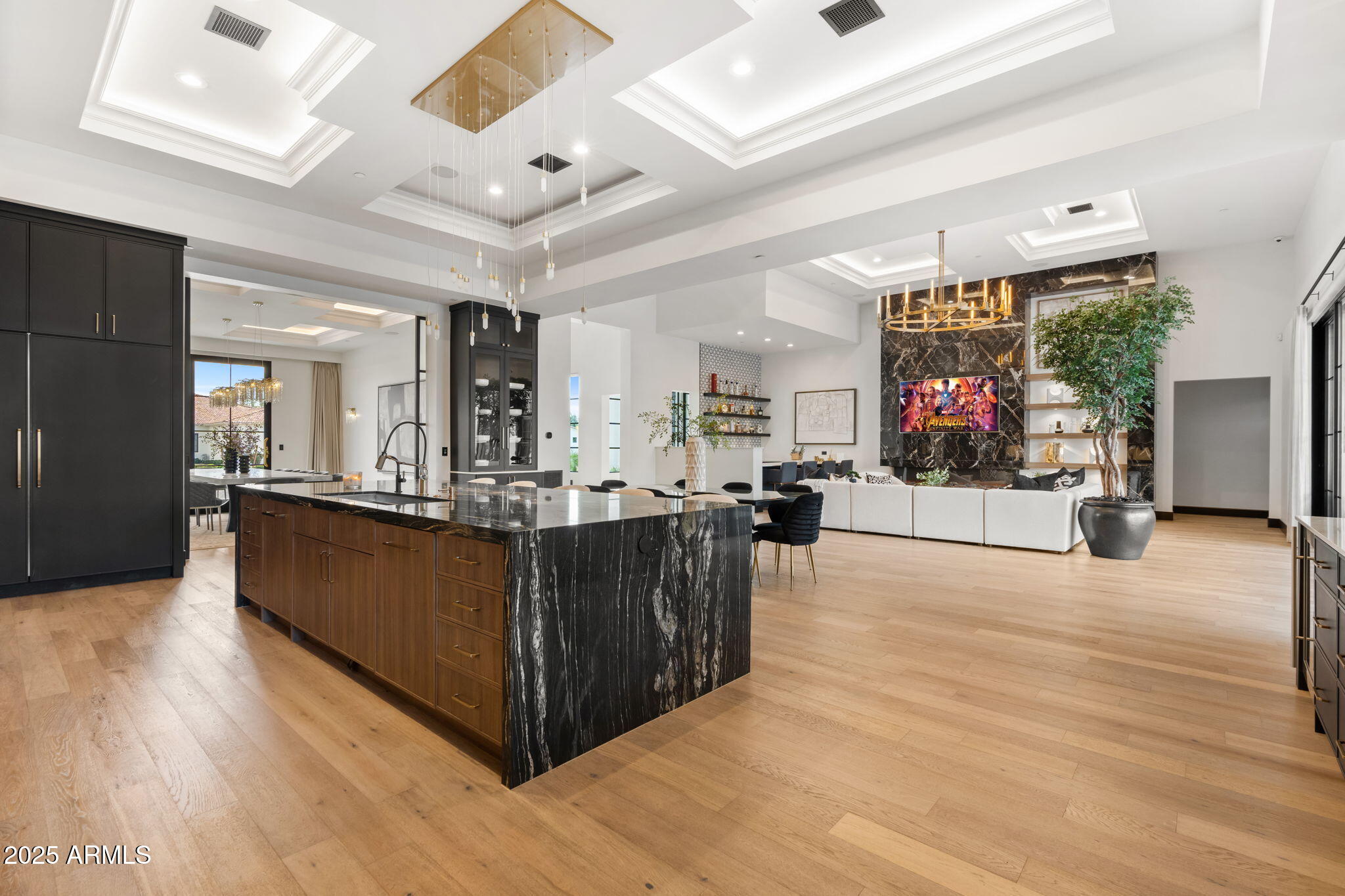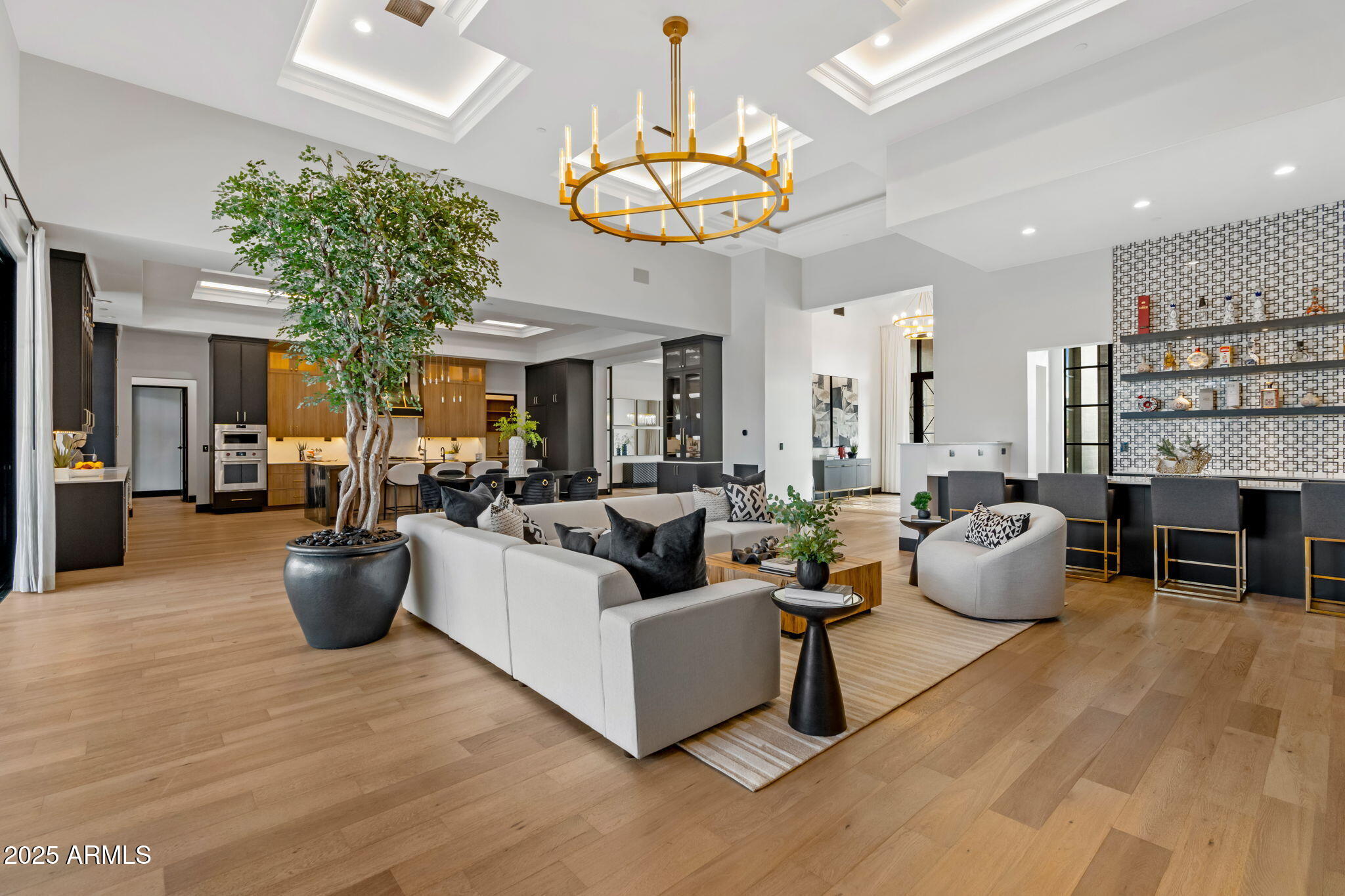 Discover unparalleled luxury in this 2022 custom built estate nestled in the heart of Paradise Valley, meticulously designed for family entertaining. The expansive kitchen is a culinary haven, boasting an oversized island, Sub Zero fridge and freezer, dual Cove dishwashers, never used Wolf steam oven, Transform home entertaining in the expansive game room. The bar is equipped with beverage fridges and an ice maker. The family room, adorned with 16' ceilings, seamlessly connects indoor and outdoor entertainment area spaces through an expansive 22- ft retractable pocket door flooding natural light framing breathtaking views. Indulge in casual dinners or elegant affairs in the formal dining room. Featuring 40 custom designed iron doors this residence showcases modern elegance in every detail The primary suite is a true retreat, centered around a fireplace encased in gold inlaid white marble tile and a resort style bath with a steam shower, soaking tub, beverage bar, separate laundry area, dual walk in closets. The kids' wing offers three additional ensuite bedrooms with walk-in closets off of a central flex/game room. Enjoy working from home in the office with custom ceiling details, French Doors to the side courtyard and a private half bath. Elevate your living experience with a Smart Home, controlled by a state-of-the-art Control 4 Home Automation System managing lighting, thermostats, cameras, security, and audio. The four-car garage boasts insulated doors and epoxy floors. Step into a resort-style backyard with expansive limestone pavered patios overlooking a custom basketball court and a stunning heated pool with baja step, cascading water features, fire features and spa. Relax by the gas fire pit poolside or temp your tastebuds at the 42" built-in grill with a never used pizza oven. Guests will feel right at home in the detached casita with one bedroom, 1.5 bath, gym room and a separate living room with kitchenette and laundry area. Captivating finishes include European Oak floors, synthetic stucco, exterior limestone accents, custom iron gates, stone, marble, and granite finishes, LED lights throughout, and wood-clad Low-E windows. Additional features include two gas tankless hot water heaters, upgraded foam insulation, a high-pressure misting system and much more in this extraordinary home!