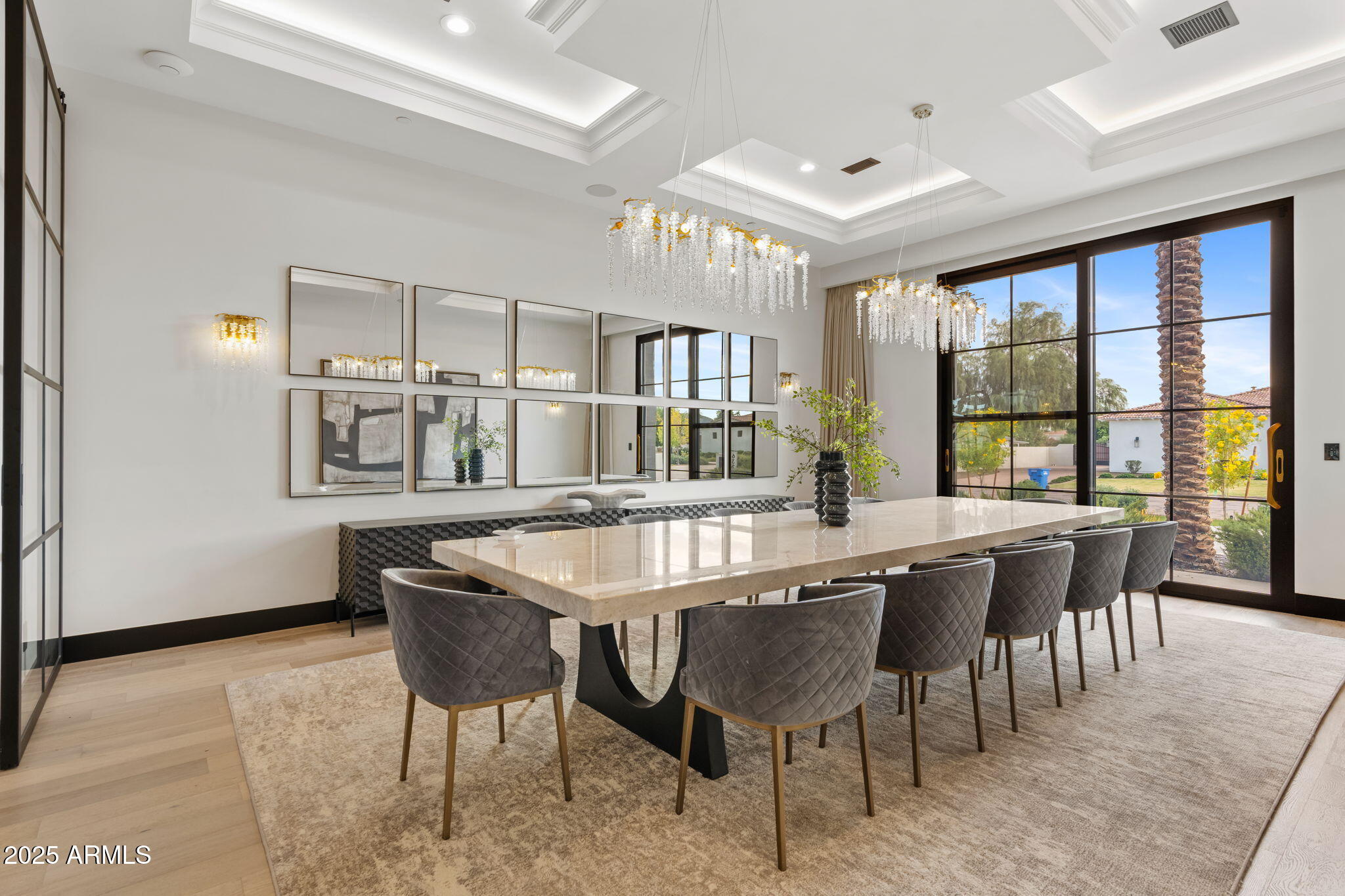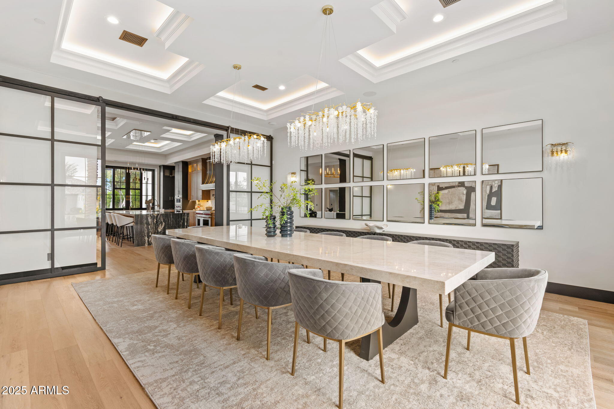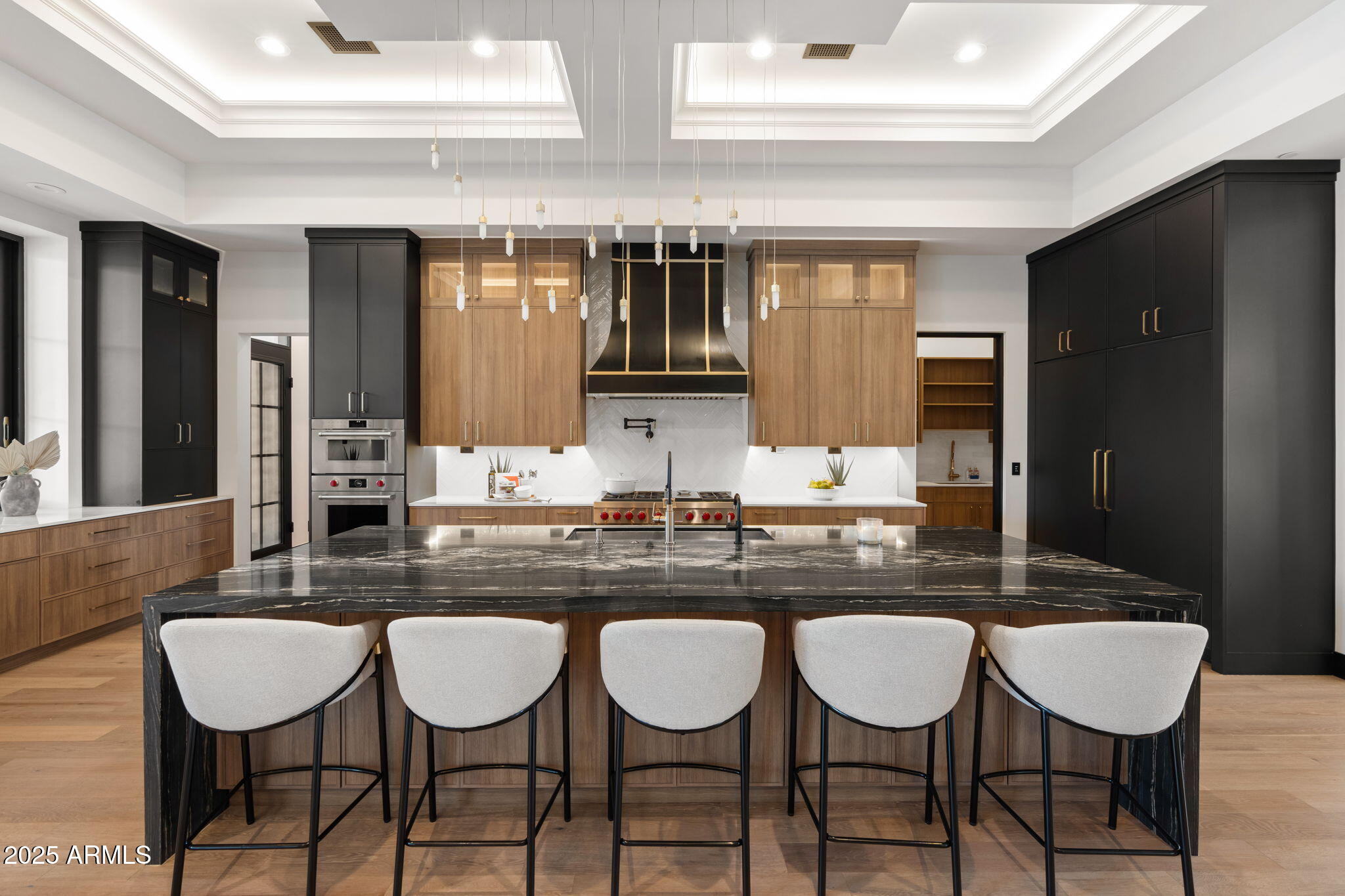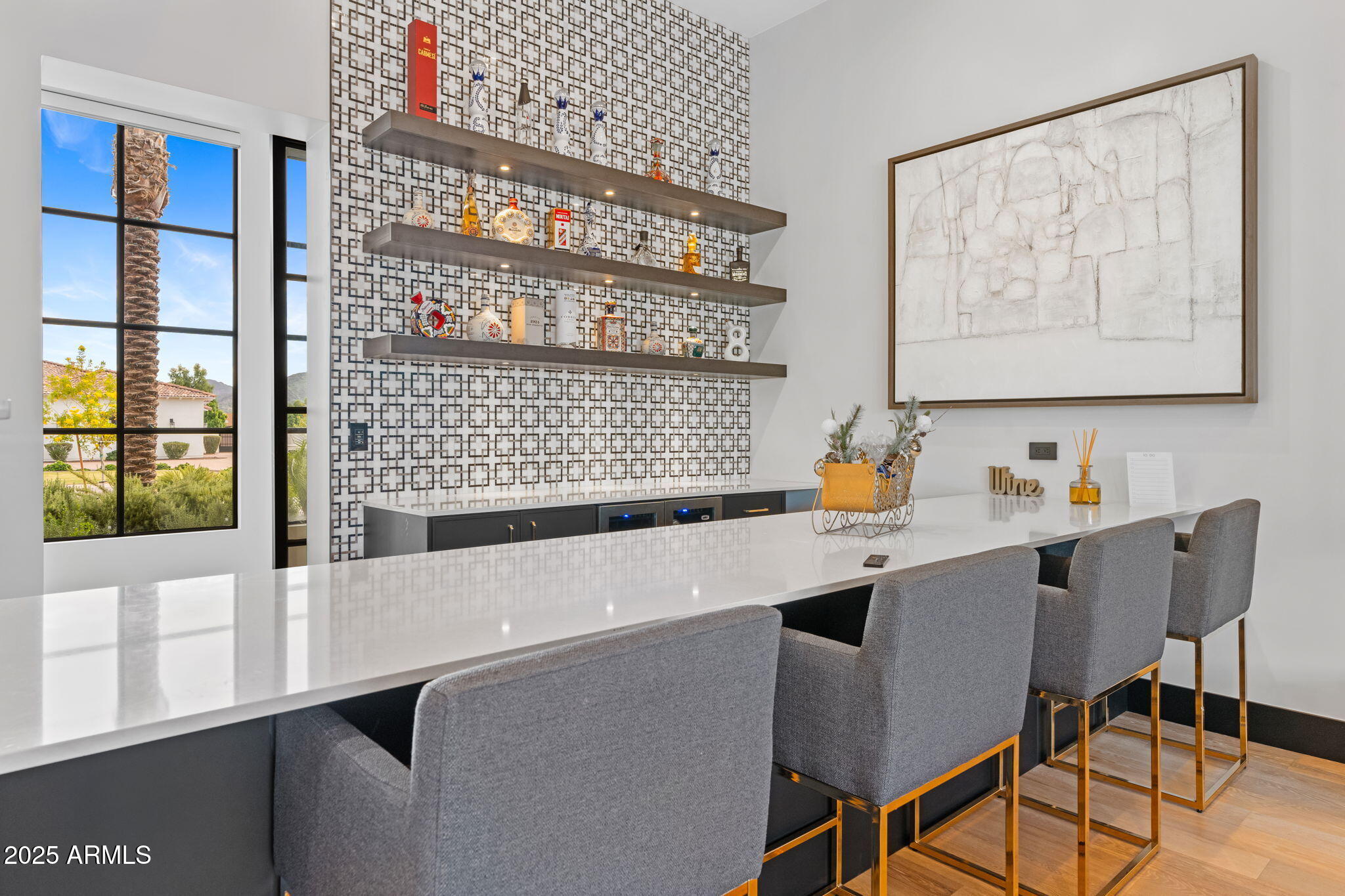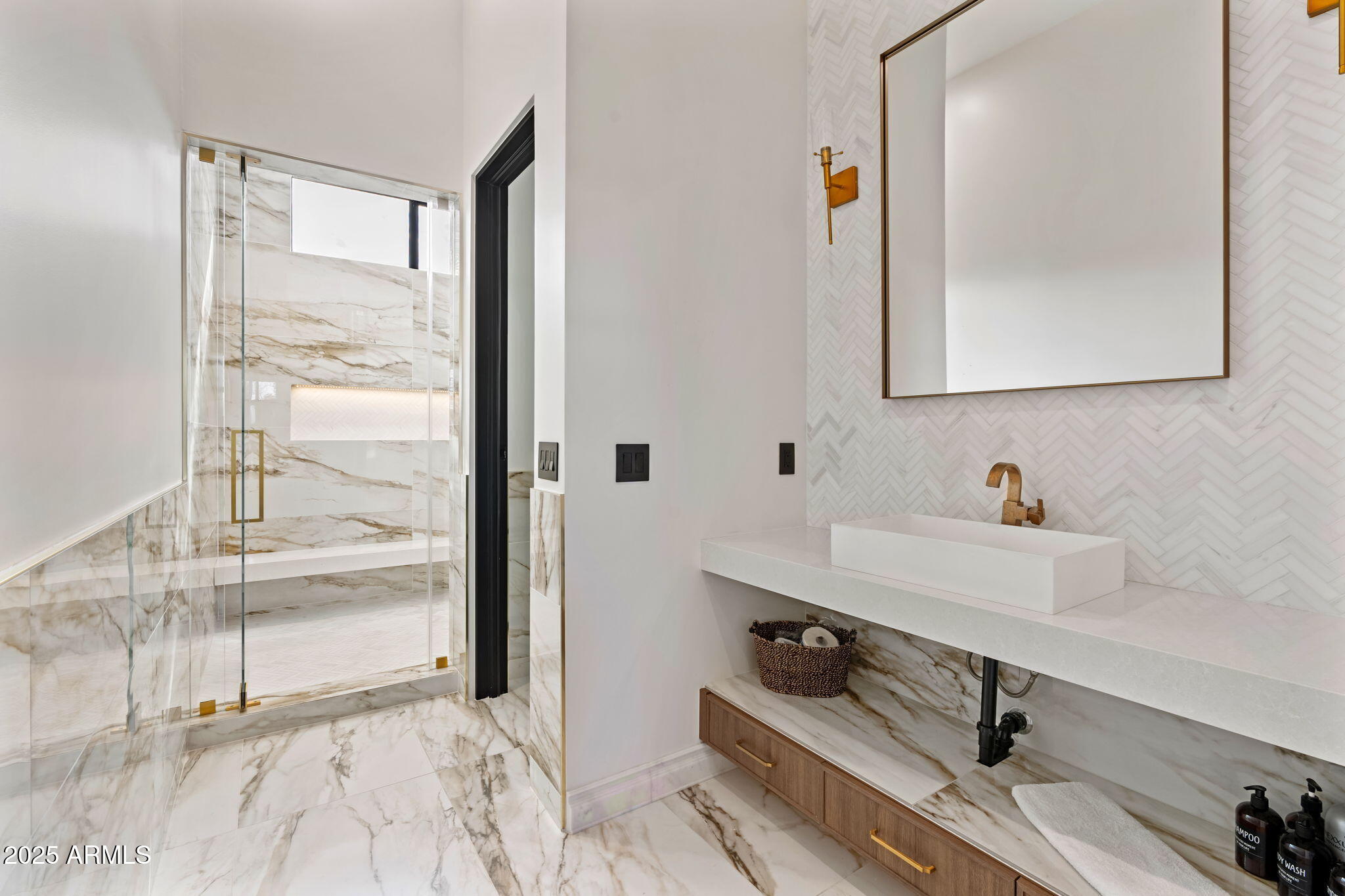Discover unparalleled luxury in this 2022 custom built estate nestled in the heart of Paradise Valley, meticulously designed for family entertaining. The expansive kitchen is a culinary haven, boasting an oversized island, Sub Zero fridge and freezer, dual Cove dishwashers, never used Wolf steam oven, Transform home entertaining in the expansive game room. The bar is equipped with beverage fridges and an ice maker. The family room, adorned with 16' ceilings, seamlessly connects indoor and outdoor entertainment area spaces through an expansive 22- ft retractable pocket door flooding natural light framing breathtaking views. Indulge in casual dinners or elegant affairs in the formal dining room. Featuring 40 custom designed iron doors this residence showcases modern elegance in every detail The primary suite is a true retreat, centered around a fireplace encased in gold inlaid white marble tile and a resort style bath with a steam shower, soaking tub, beverage bar, separate laundry area, dual walk in closets. The kids' wing offers three additional ensuite bedrooms with walk-in closets off of a central flex/game room. Enjoy working from home in the office with custom ceiling details, French Doors to the side courtyard and a private half bath. Elevate your living experience with a Smart Home, controlled by a state-of-the-art Control 4 Home Automation System managing lighting, thermostats, cameras, security, and audio. The four-car garage boasts insulated doors and epoxy floors. Step into a resort-style backyard with expansive limestone pavered patios overlooking a custom basketball court and a stunning heated pool with baja step, cascading water features, fire features and spa. Relax by the gas fire pit poolside or temp your tastebuds at the 42" built-in grill with a never used pizza oven. Guests will feel right at home in the detached casita with one bedroom, 1.5 bath, gym room and a separate living room with kitchenette and laundry area. Captivating finishes include European Oak floors, synthetic stucco, exterior limestone accents, custom iron gates, stone, marble, and granite finishes, LED lights throughout, and wood-clad Low-E windows. Additional features include two gas tankless hot water heaters, upgraded foam insulation, a high-pressure misting system and much more in this extraordinary home!
