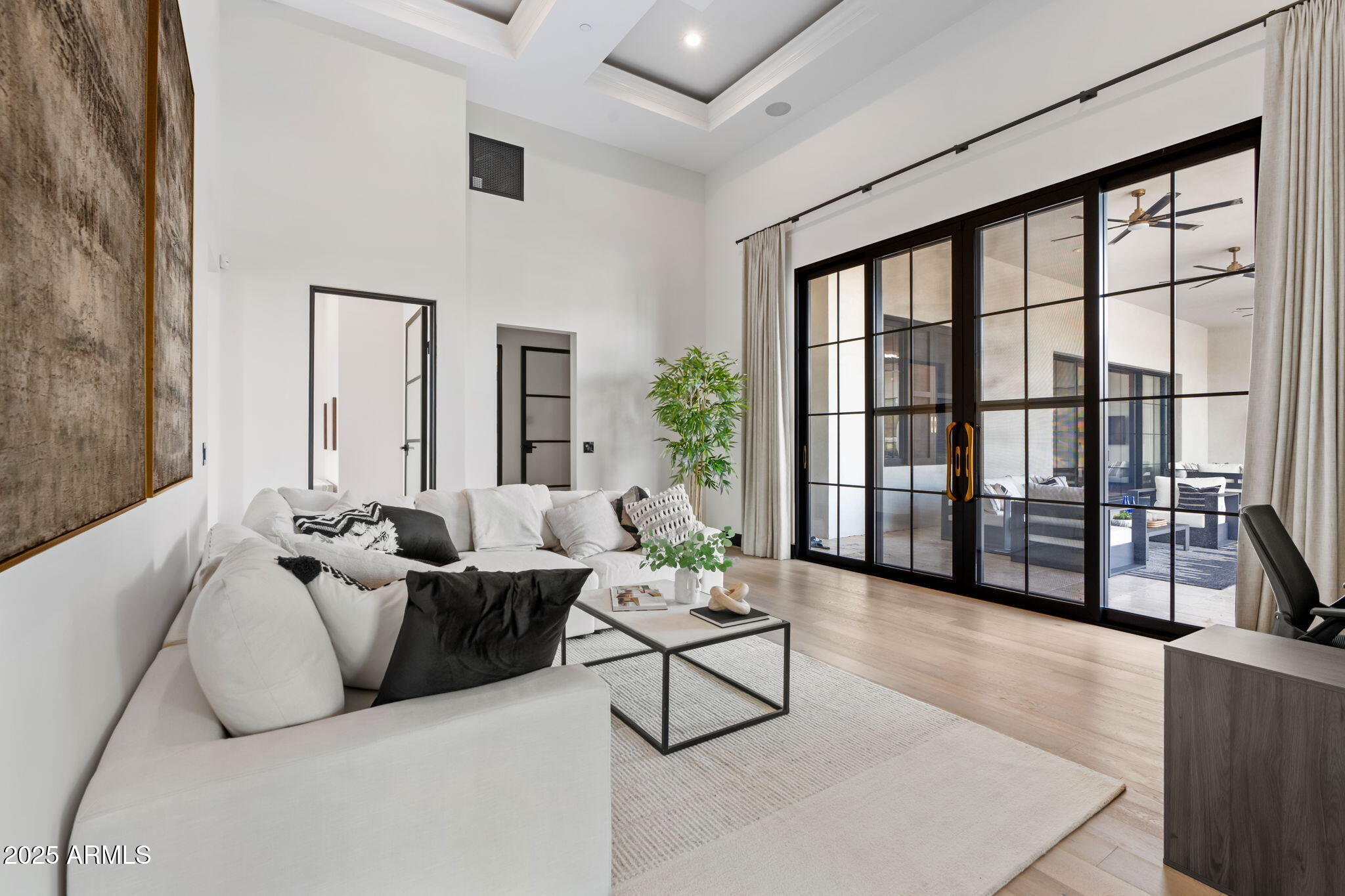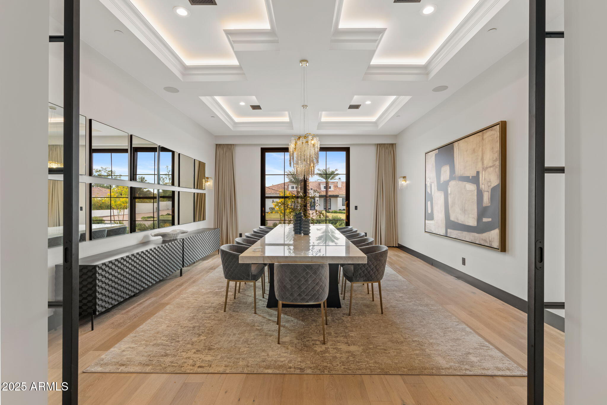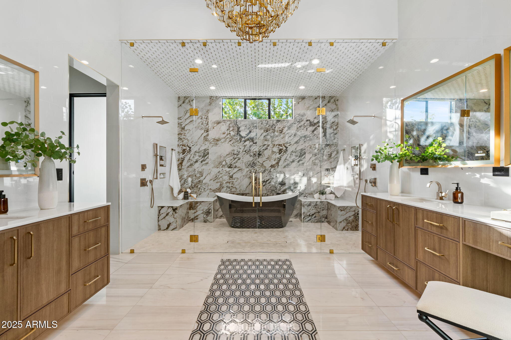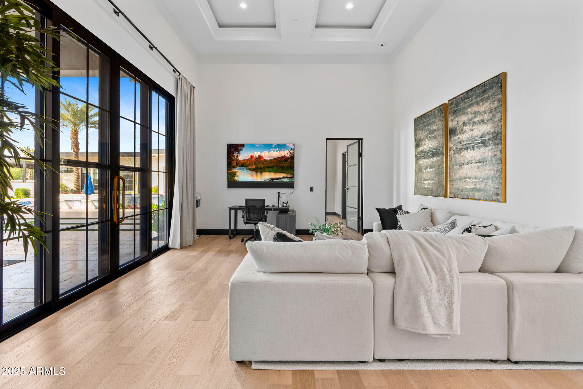 Discover unparalleled luxury in this 2022 custom built estate nestled in the heart of Paradise Valley, meticulously designed for family entertaining. The expansive kitchen is a culinary haven, boasting an oversized island, Sub Zero fridge and freezer, dual Cove dishwashers, never used Wolf steam oven, Transform home entertaining in the expansive game room. The bar is equipped with beverage fridges and an ice maker. The family room, adorned with 16' ceilings, seamlessly connects indoor and outdoor entertainment area spaces through an expansive 22- ft retractable pocket door flooding natural light framing breathtaking views. Indulge in casual dinners or elegant affairs in the formal dining room. Featuring 40 custom designed iron doors this residence showcases modern elegance in every detail The primary suite is a true retreat, centered around a fireplace encased in gold inlaid white marble tile and a resort style bath with a steam shower, soaking tub, beverage bar, separate laundry area, dual walk in closets. The kids' wing offers three additional ensuite bedrooms with walk-in closets off of a central flex/game room. Enjoy working from home in the office with custom ceiling details, French Doors to the side courtyard and a private half bath. Elevate your living experience with a Smart Home, controlled by a state-of-the-art Control 4 Home Automation System managing lighting, thermostats, cameras, security, and audio. The four-car garage boasts insulated doors and epoxy floors. Step into a resort-style backyard with expansive limestone pavered patios overlooking a custom basketball court and a stunning heated pool with baja step, cascading water features, fire features and spa. Relax by the gas fire pit poolside or temp your tastebuds at the 42" built-in grill with a never used pizza oven. Guests will feel right at home in the detached casita with one bedroom, 1.5 bath, gym room and a separate living room with kitchenette and laundry area. Captivating finishes include European Oak floors, synthetic stucco, exterior limestone accents, custom iron gates, stone, marble, and granite finishes, LED lights throughout, and wood-clad Low-E windows. Additional features include two gas tankless hot water heaters, upgraded foam insulation, a high-pressure misting system and much more in this extraordinary home!
