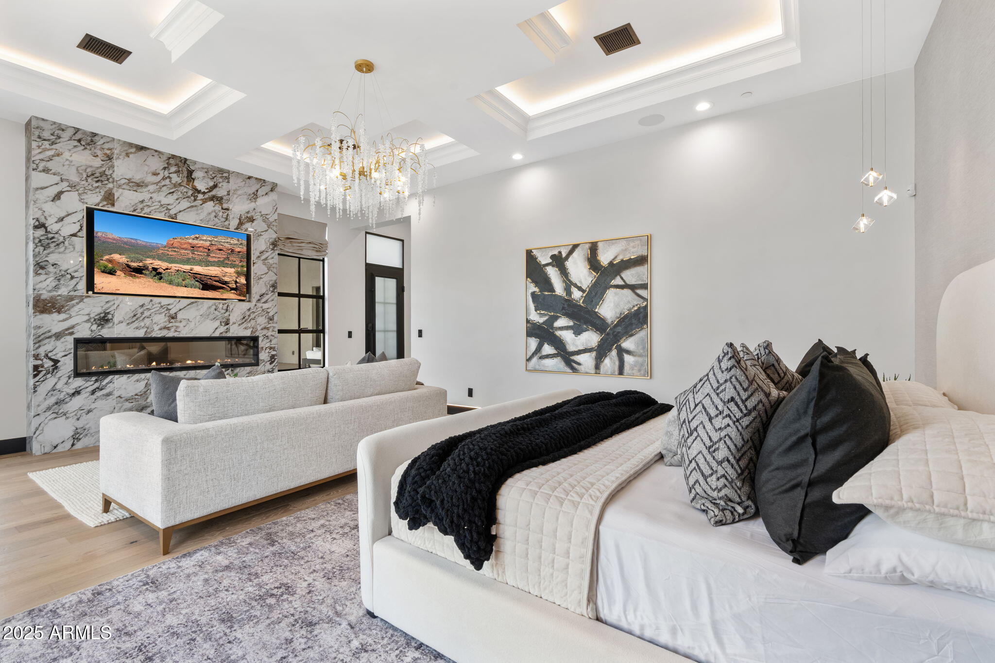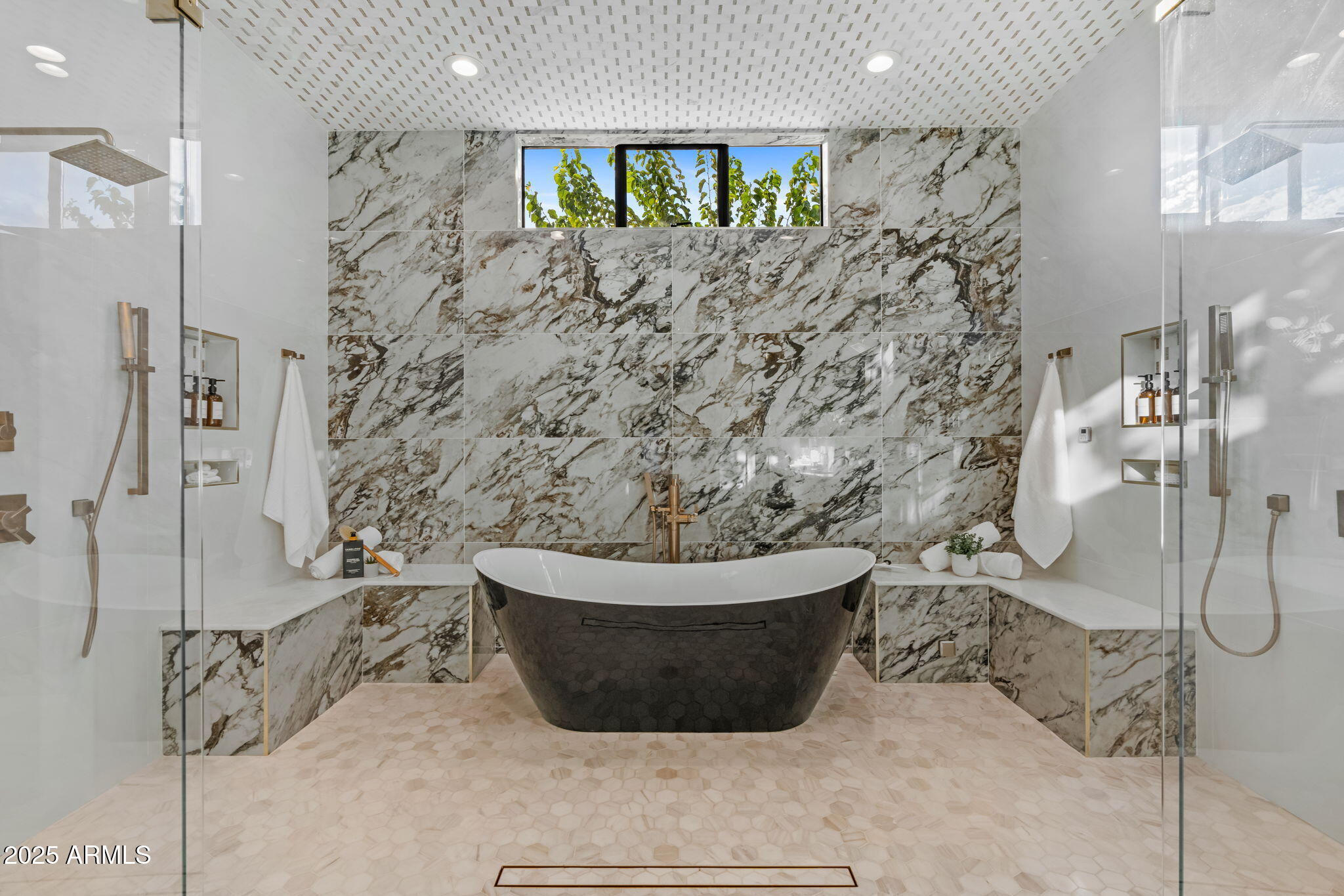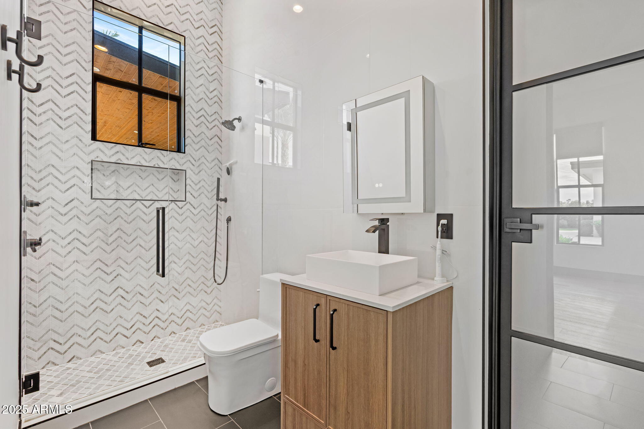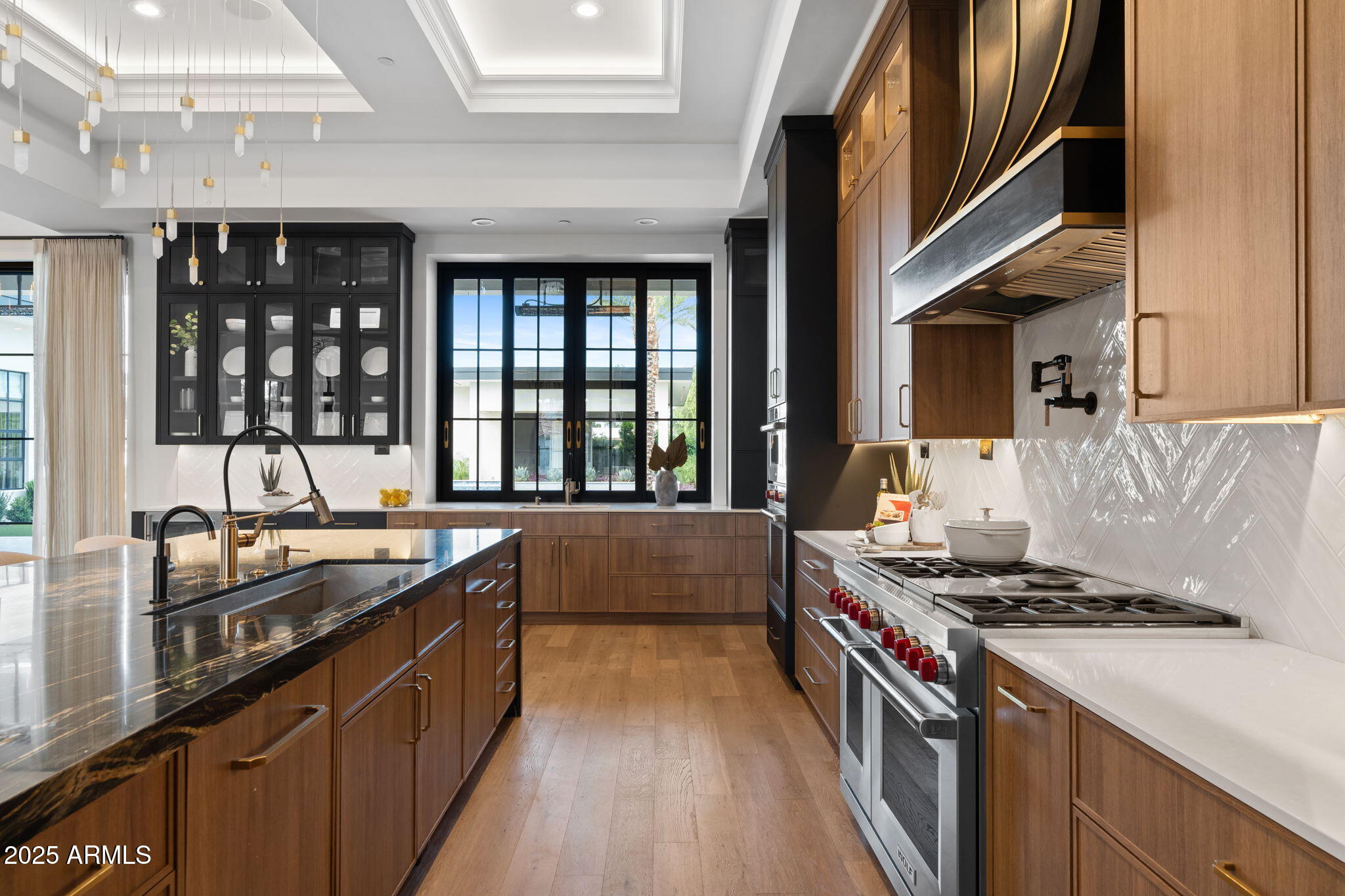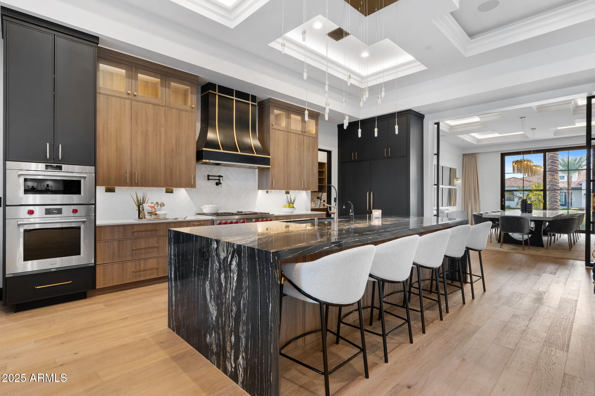 Discover unparalleled luxury in this 2022 custom built estate nestled in the heart of Paradise Valley, meticulously designed for family entertaining. The expansive kitchen is a culinary haven, boasting an oversized island, Sub Zero fridge and freezer, dual Cove dishwashers, never used Wolf steam oven, Transform home entertaining in the expansive game room. The bar is equipped with beverage fridges and an ice maker. The family room, adorned with 16' ceilings, seamlessly connects indoor and outdoor entertainment area spaces through an expansive 22- ft retractable pocket door flooding natural light framing breathtaking views. Indulge in casual dinners or elegant affairs in the formal dining room. Featuring 40 custom designed iron doors this residence showcases modern elegance in every detail The primary suite is a true retreat, centered around a fireplace encased in gold inlaid white marble tile and a resort style bath with a steam shower, soaking tub, beverage bar, separate laundry area, dual walk in closets. The kids' wing offers three additional ensuite bedrooms with walk-in closets off of a central flex/game room. Enjoy working from home in the office with custom ceiling details, French Doors to the side courtyard and a private half bath. Elevate your living experience with a Smart Home, controlled by a state-of-the-art Control 4 Home Automation System managing lighting, thermostats, cameras, security, and audio. The four-car garage boasts insulated doors and epoxy floors. Step into a resort-style backyard with expansive limestone pavered patios overlooking a custom basketball court and a stunning heated pool with baja step, cascading water features, fire features and spa. Relax by the gas fire pit poolside or temp your tastebuds at the 42" built-in grill with a never used pizza oven. Guests will feel right at home in the detached casita with one bedroom, 1.5 bath, gym room and a separate living room with kitchenette and laundry area. Captivating finishes include European Oak floors, synthetic stucco, exterior limestone accents, custom iron gates, stone, marble, and granite finishes, LED lights throughout, and wood-clad Low-E windows. Additional features include two gas tankless hot water heaters, upgraded foam insulation, a high-pressure misting system and much more in this extraordinary home!