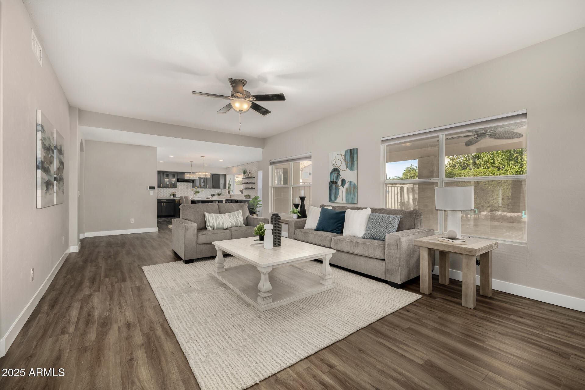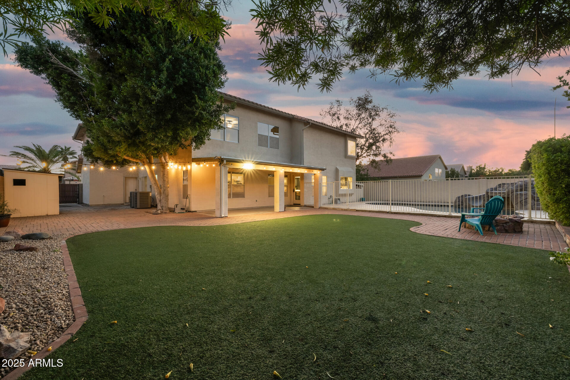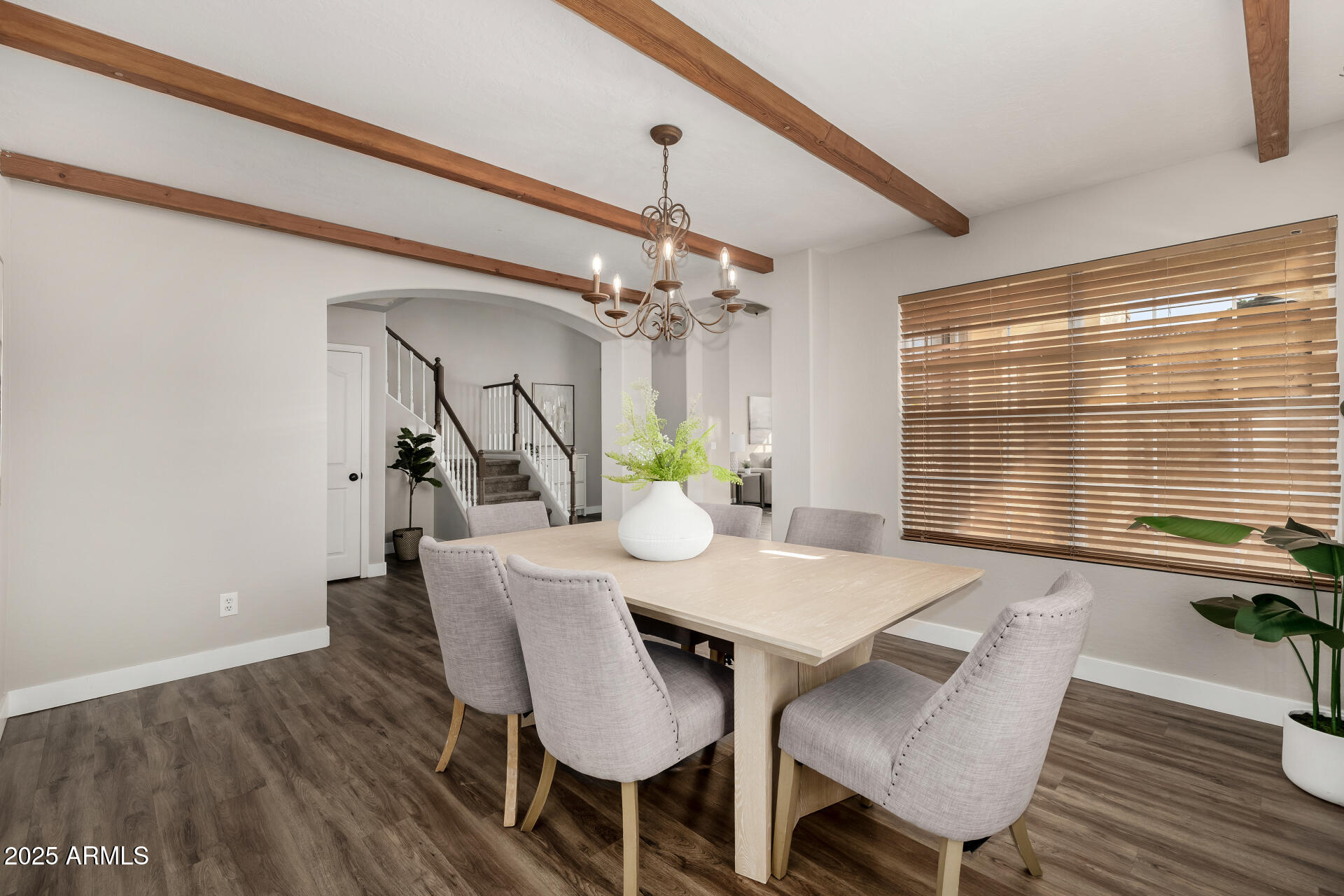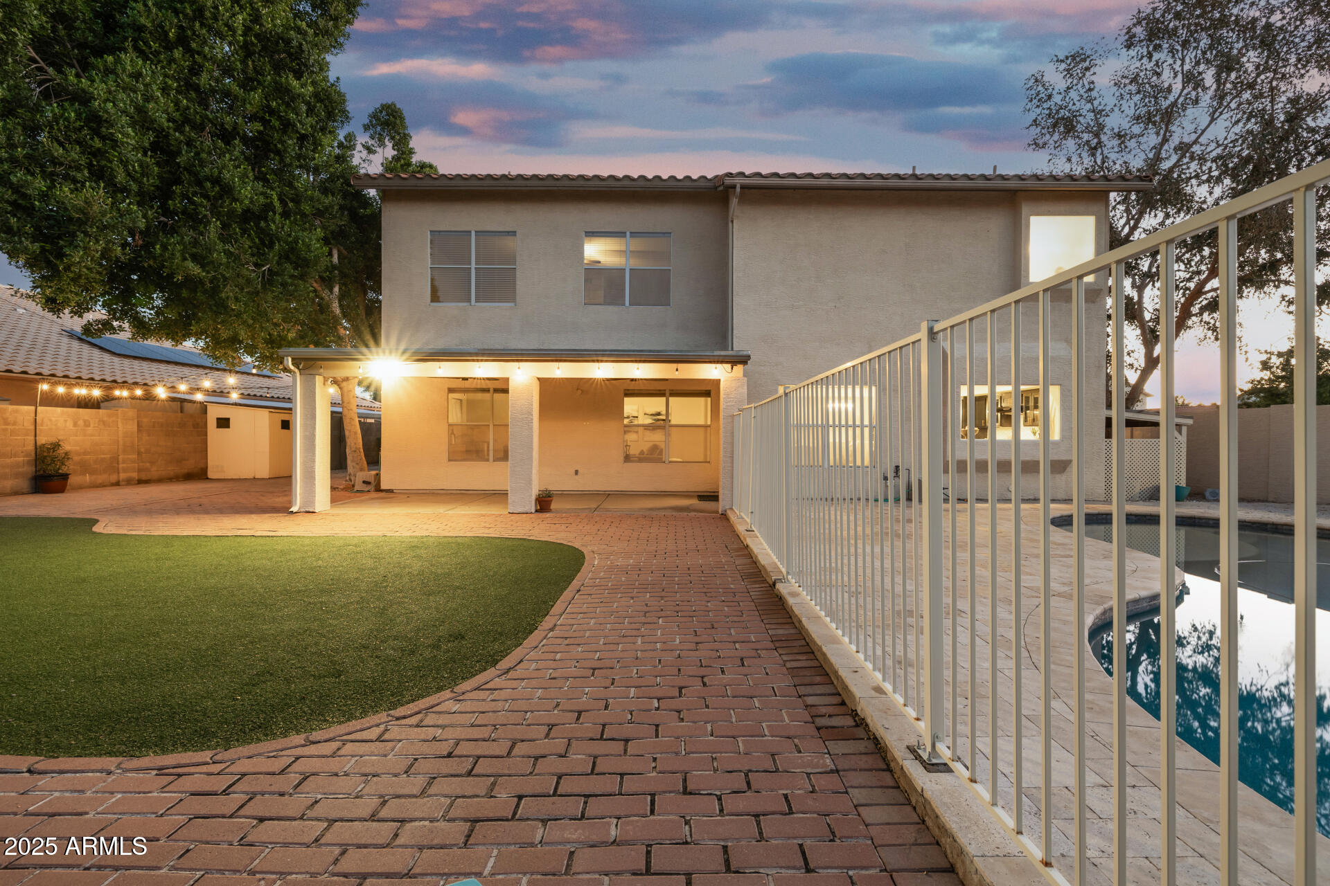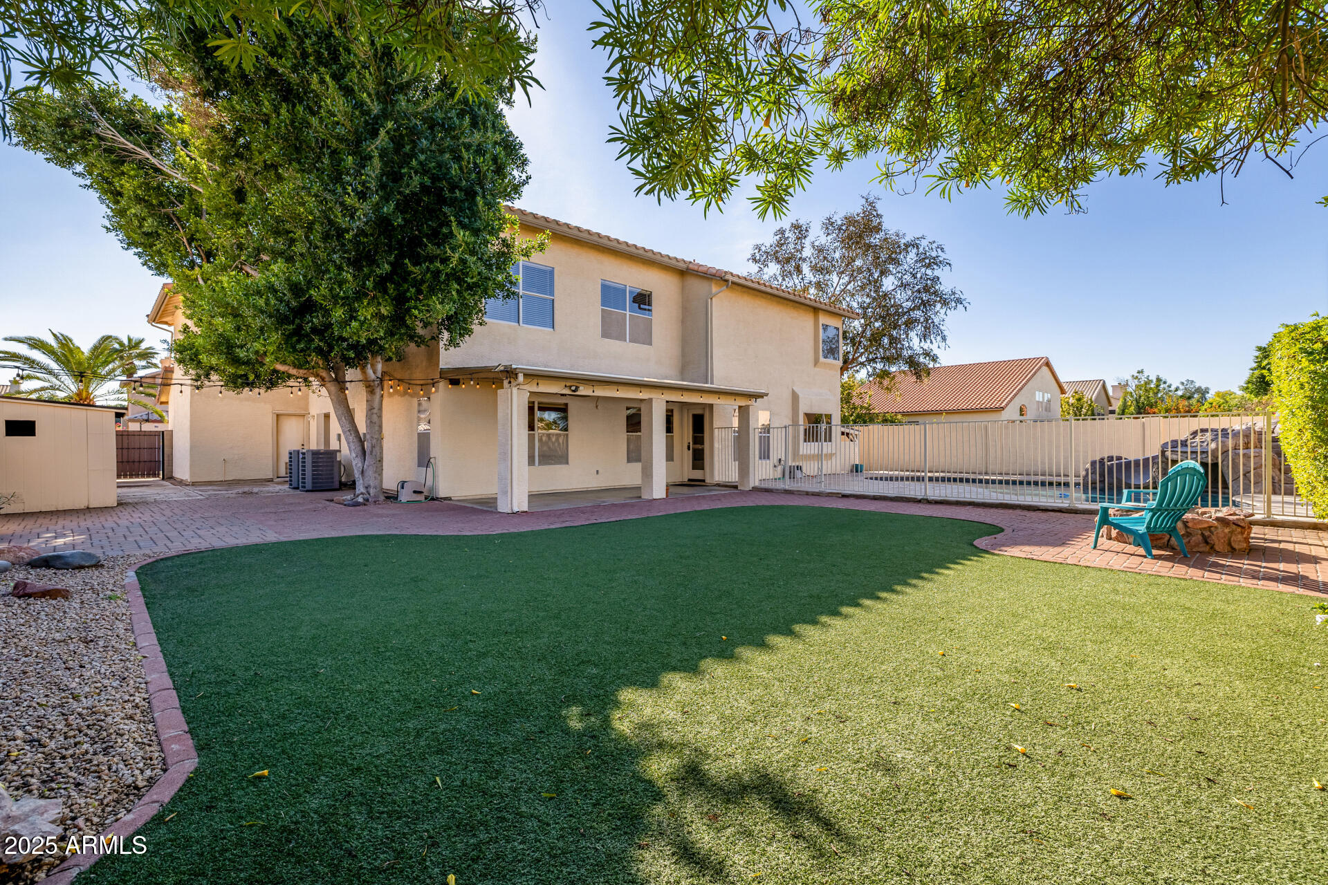 Beautifully updated 5 bed / 3 bath home in the highly desired Rancho Del Mar community--NO HOA and fully upgraded inside and out. This spacious two-story layout features a remodeled kitchen with quartz counters, stainless appliances, large island, updated lighting, and modern finishes throughout. Bright open living spaces include formal living/dining plus a separate family room with soaring ceilings and new flooring. One bedroom and full bath are located downstairs, perfect for guests or multi-gen living. Upstairs offers a large primary suite with remodeled bathroom, double sinks, separate tub/shower, and walk-in closet, along with 3 additional bedrooms and an updated hall bath. Recent improvements include newer AC units, shutters, flooring, and updated bathrooms. The backyard is a private oasis with a PebbleTec pool, covered patio, low-maintenance turf, pavers, and mature landscapingideal for outdoor living. 3-car garage, quiet interior lot, and an unbeatable Mesa location close to the US-60, Loop 101, shopping, dining, and schools. Move-in ready and rarely available in this coveted neighborhood.
