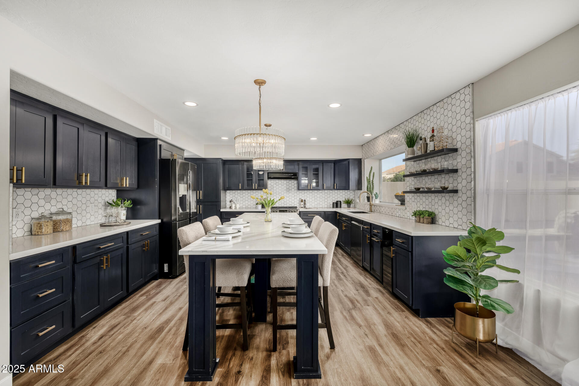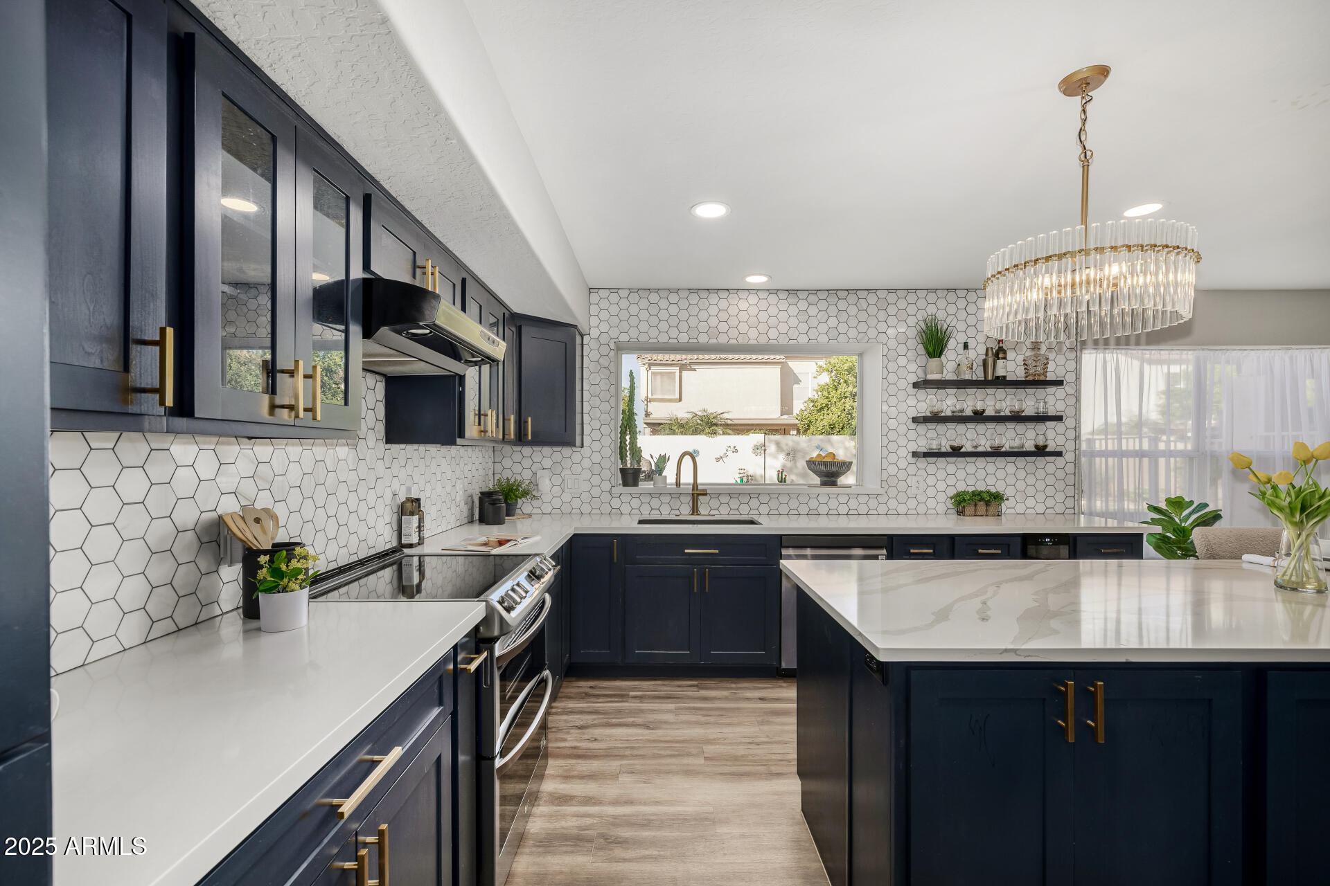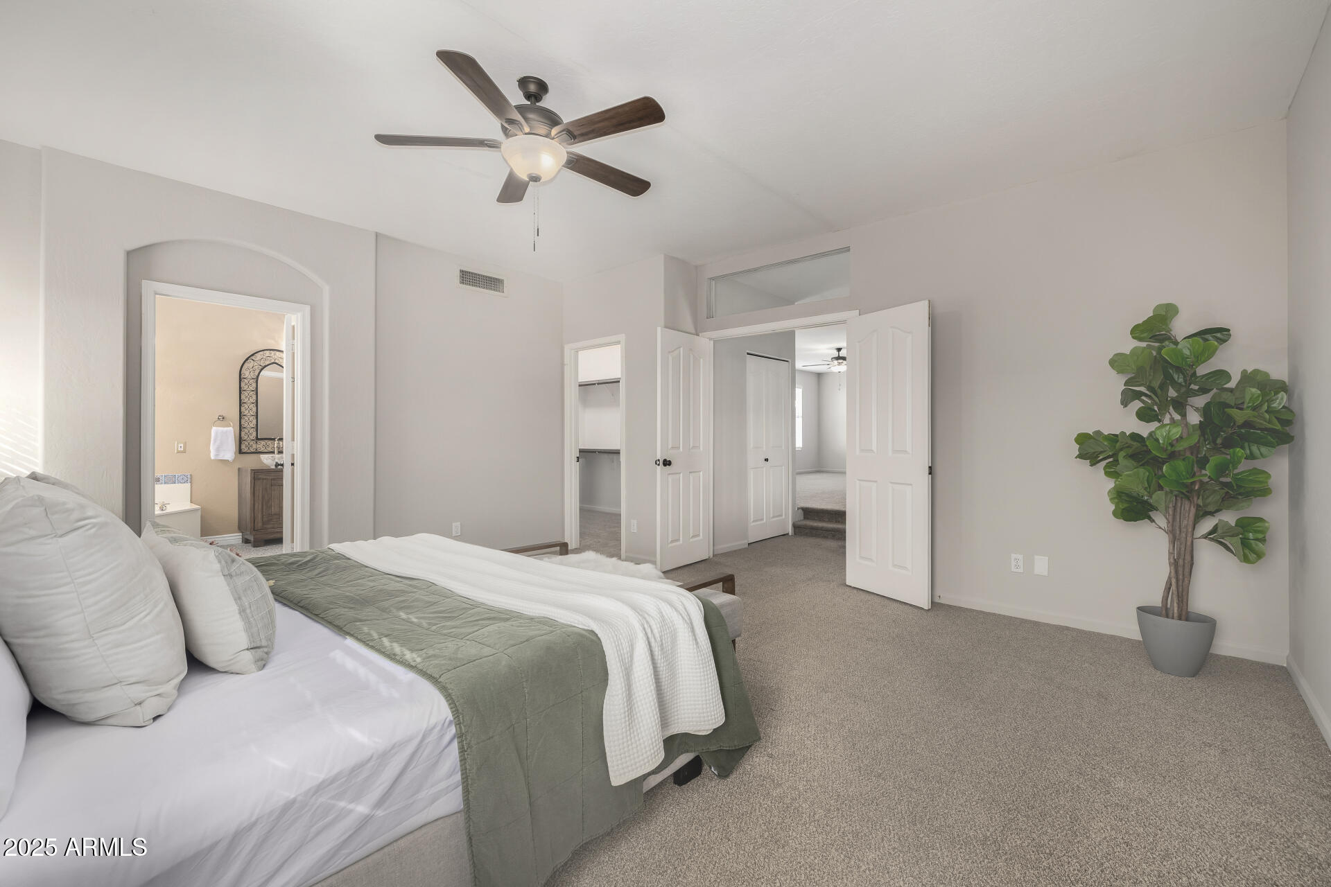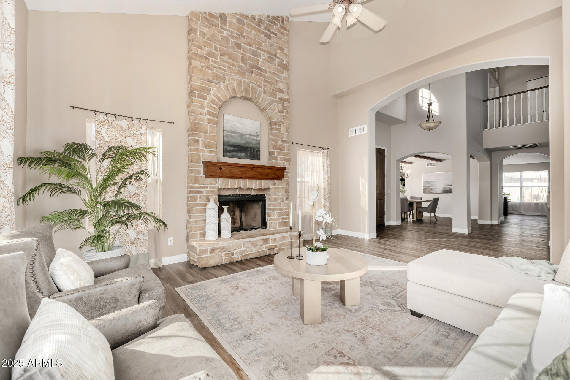 Beautifully updated 5 bed / 3 bath home in the highly desired Rancho Del Mar community--NO HOA and fully upgraded inside and out. This spacious two-story layout features a remodeled kitchen with quartz counters, stainless appliances, large island, updated lighting, and modern finishes throughout. Bright open living spaces include formal living/dining plus a separate family room with soaring ceilings and new flooring. One bedroom and full bath are located downstairs, perfect for guests or multi-gen living. Upstairs offers a large primary suite with remodeled bathroom, double sinks, separate tub/shower, and walk-in closet, along with 3 additional bedrooms and an updated hall bath. Recent improvements include newer AC units, shutters, flooring, and updated bathrooms. The backyard is a private oasis with a PebbleTec pool, covered patio, low-maintenance turf, pavers, and mature landscapingideal for outdoor living. 3-car garage, quiet interior lot, and an unbeatable Mesa location close to the US-60, Loop 101, shopping, dining, and schools. Move-in ready and rarely available in this coveted neighborhood.