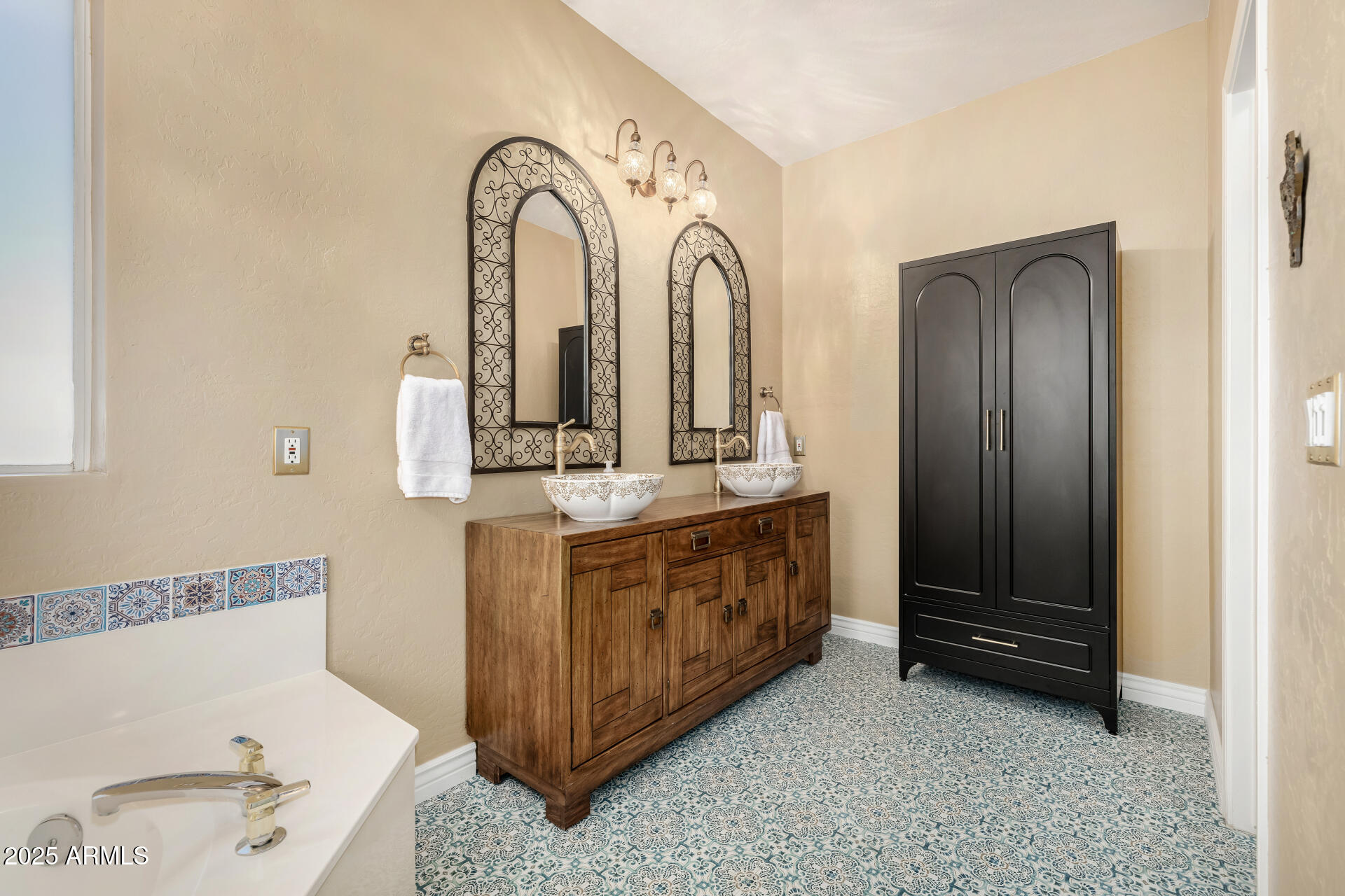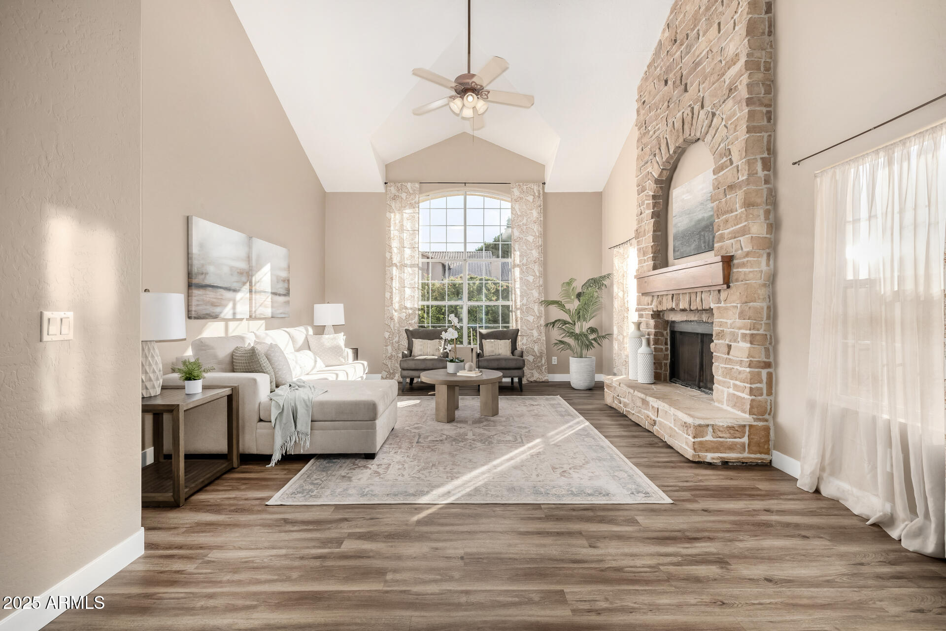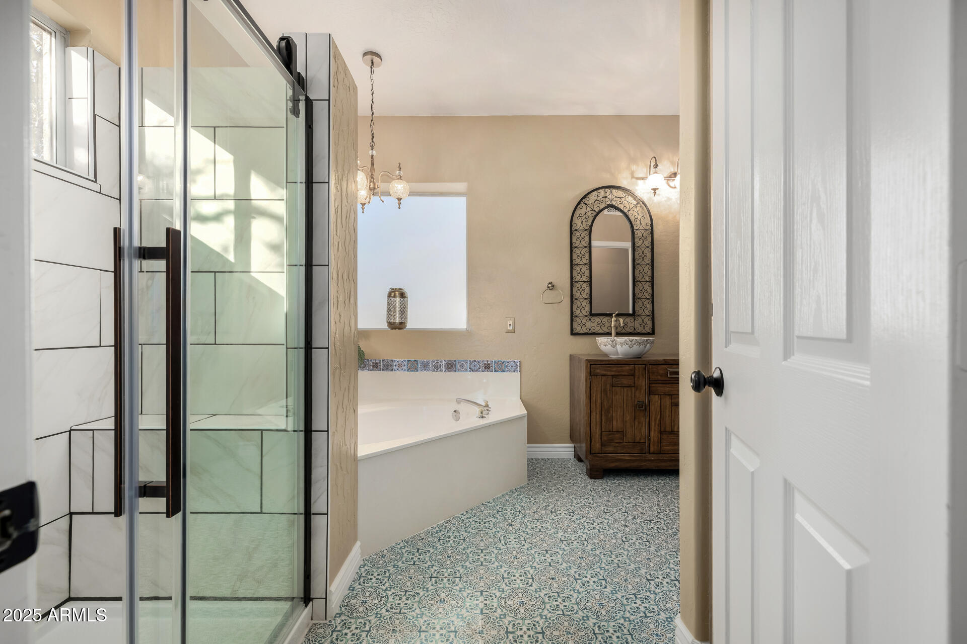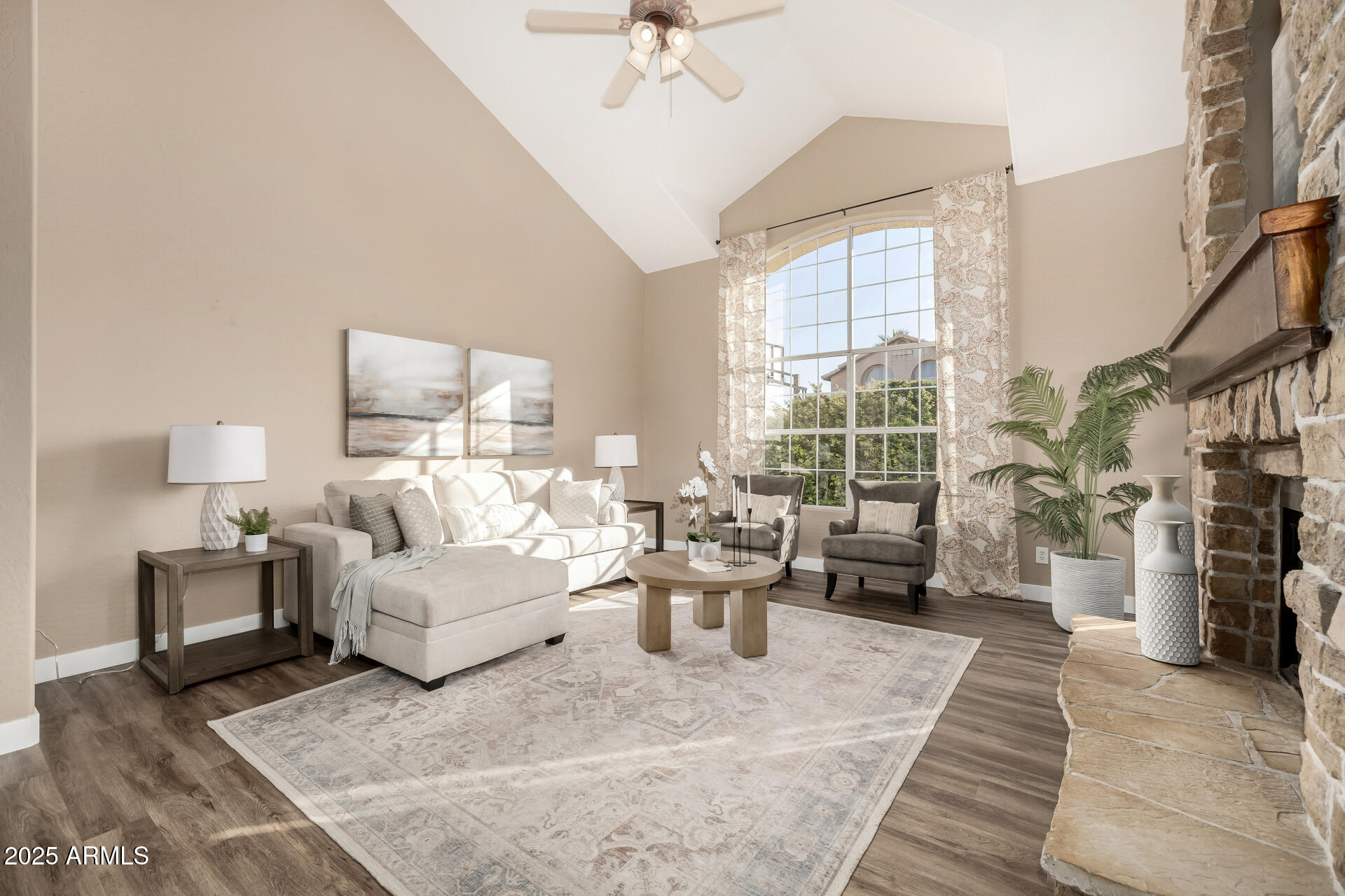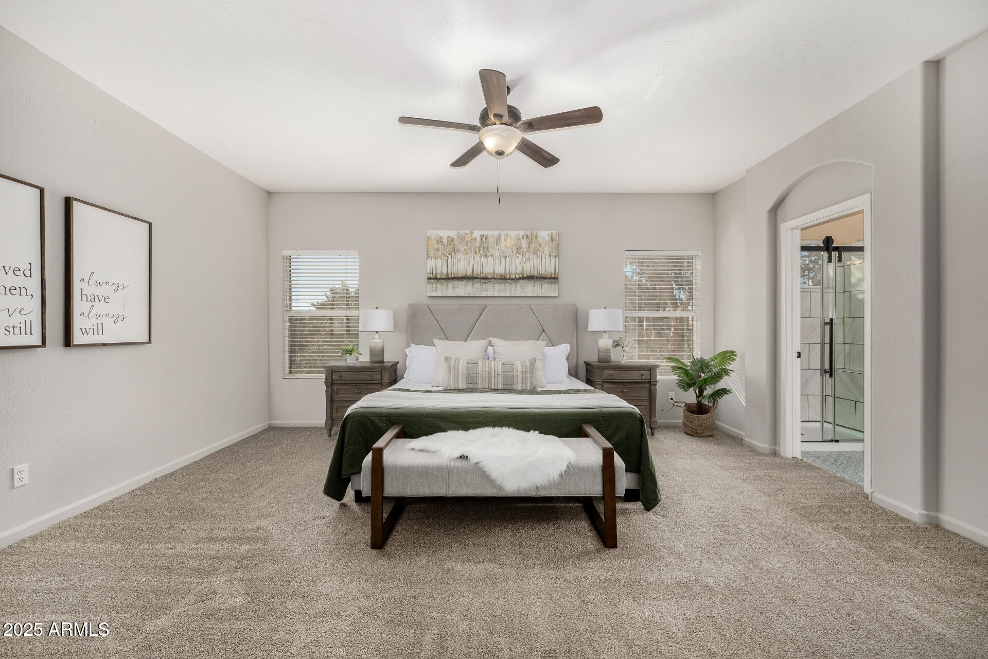Beautifully updated 5 bed / 3 bath home in the highly desired Rancho Del Mar community--NO HOA and fully upgraded inside and out. This spacious two-story layout features a remodeled kitchen with quartz counters, stainless appliances, large island, updated lighting, and modern finishes throughout. Bright open living spaces include formal living/dining plus a separate family room with soaring ceilings and new flooring. One bedroom and full bath are located downstairs, perfect for guests or multi-gen living. Upstairs offers a large primary suite with remodeled bathroom, double sinks, separate tub/shower, and walk-in closet, along with 3 additional bedrooms and an updated hall bath. Recent improvements include newer AC units, shutters, flooring, and updated bathrooms. The backyard is a private oasis with a PebbleTec pool, covered patio, low-maintenance turf, pavers, and mature landscapingideal for outdoor living. 3-car garage, quiet interior lot, and an unbeatable Mesa location close to the US-60, Loop 101, shopping, dining, and schools. Move-in ready and rarely available in this coveted neighborhood.