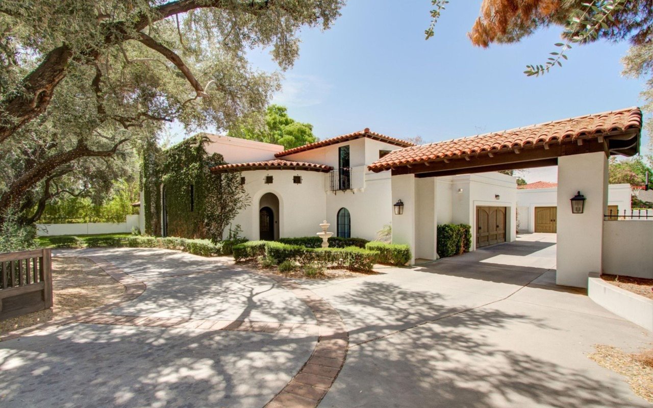 Welcome Home to this remarkable Santa Barbara style North Central estate! Luxurious surroundings distinguish this comfortable & stately residence. Hardwood floors & wood beams bring natural earth elements to complement the modern fixtures & finishes. Stunning Iron entry door, stair rail & wine chamber create a memorable first impression. Private, lush back yard w/ expansive covered patio & pool. Airy master suite w/ dual closets, walk-in shower & spa like soaking tub. Private study w/ french doors overlooking the grounds. 2 guest suites w/ separate exits to the back yard (one up & down) plus a 3rd upstairs bedroom. A detached 2-car garage complements the 2-car garage adjacent to the house creating a courtyard space aside from the circular drive. Amazing home along the bridal trail!