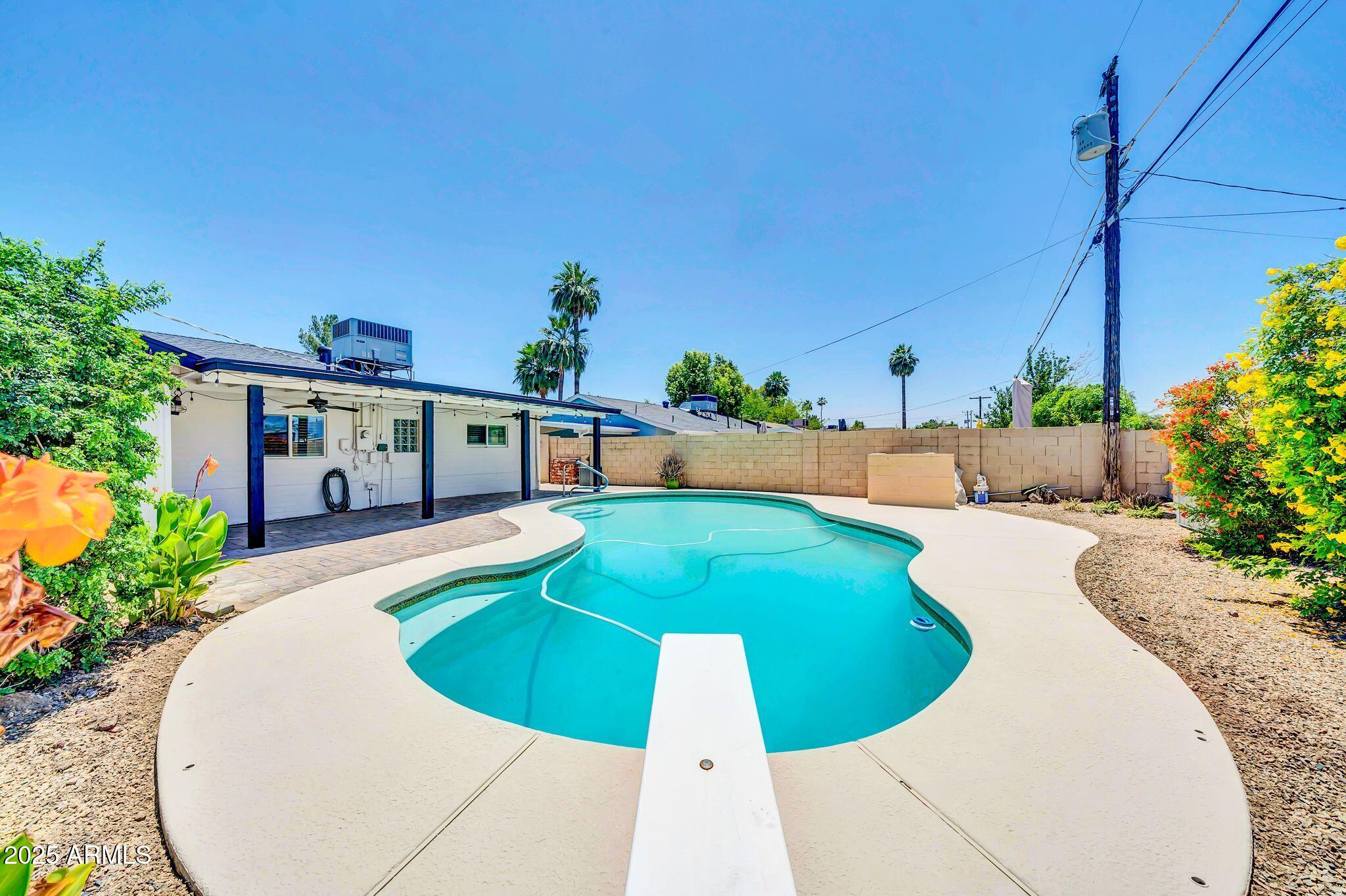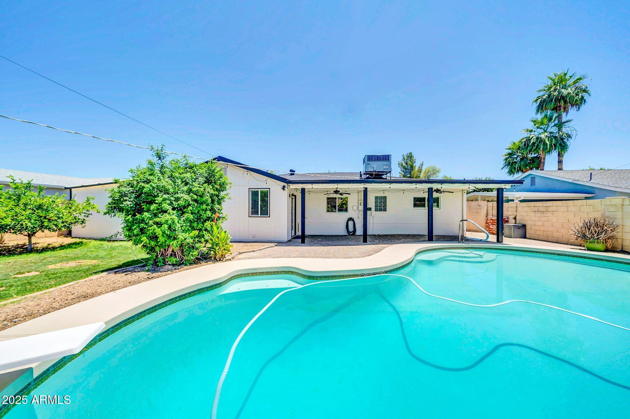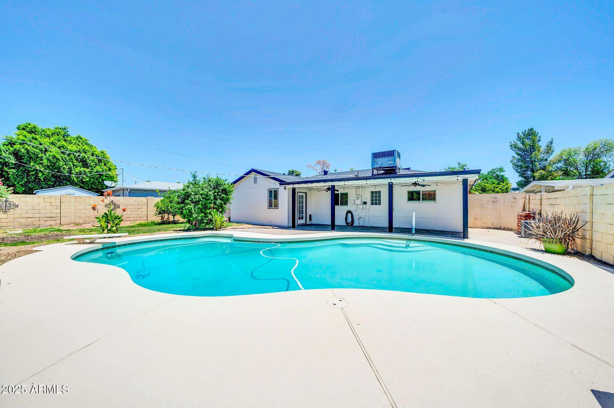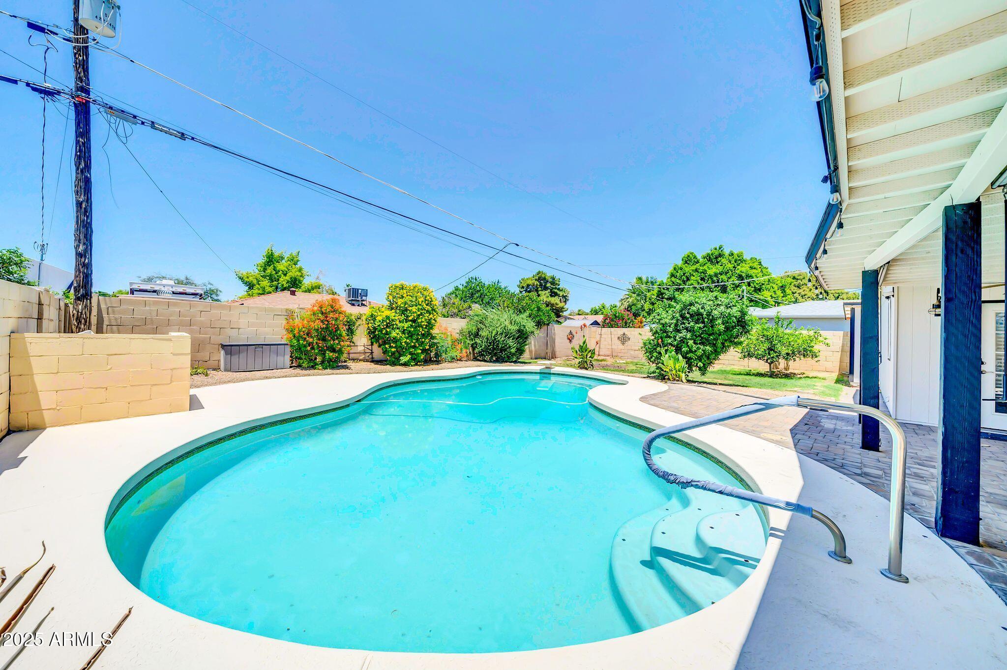 ACCPTING BACKUP OFFERS THROUGH 8/19 Beautifully updated 4 bed, 2 bath home in the desirable North Central Phoenix area. This home features a spacious open floor plan with fresh interior and exterior paint, crown moulding, and new carpet. Enjoy a split floor plan layout for added privacy, plus a large primary suite with walk-in closet and remodeled bath. The kitchen boasts granite countertops, a large breakfast bar, and stainless steel appliances. Step outside to your private pool with newly painted cool deck, updated pool equipment, and a covered patio. The lush backyard includes mature fruit trees and sits on a flood irrigated lot, offering natural beauty and cost-efficient landscaping. Additional highlights include a detached storage unit and a newer A/C unit and new roof in 2021. Located in the Madison School District near top dining, shopping, and trails. Move-in ready and full of upgrades!
