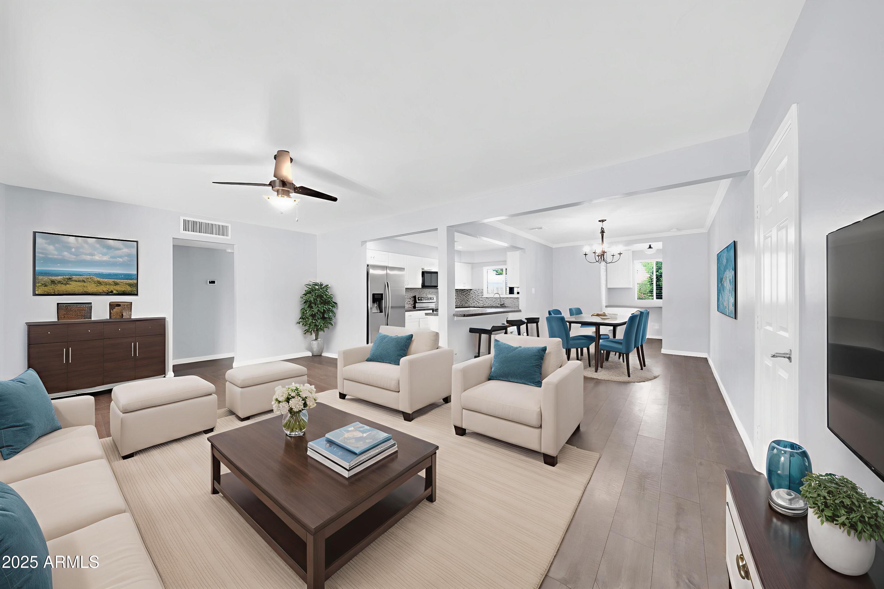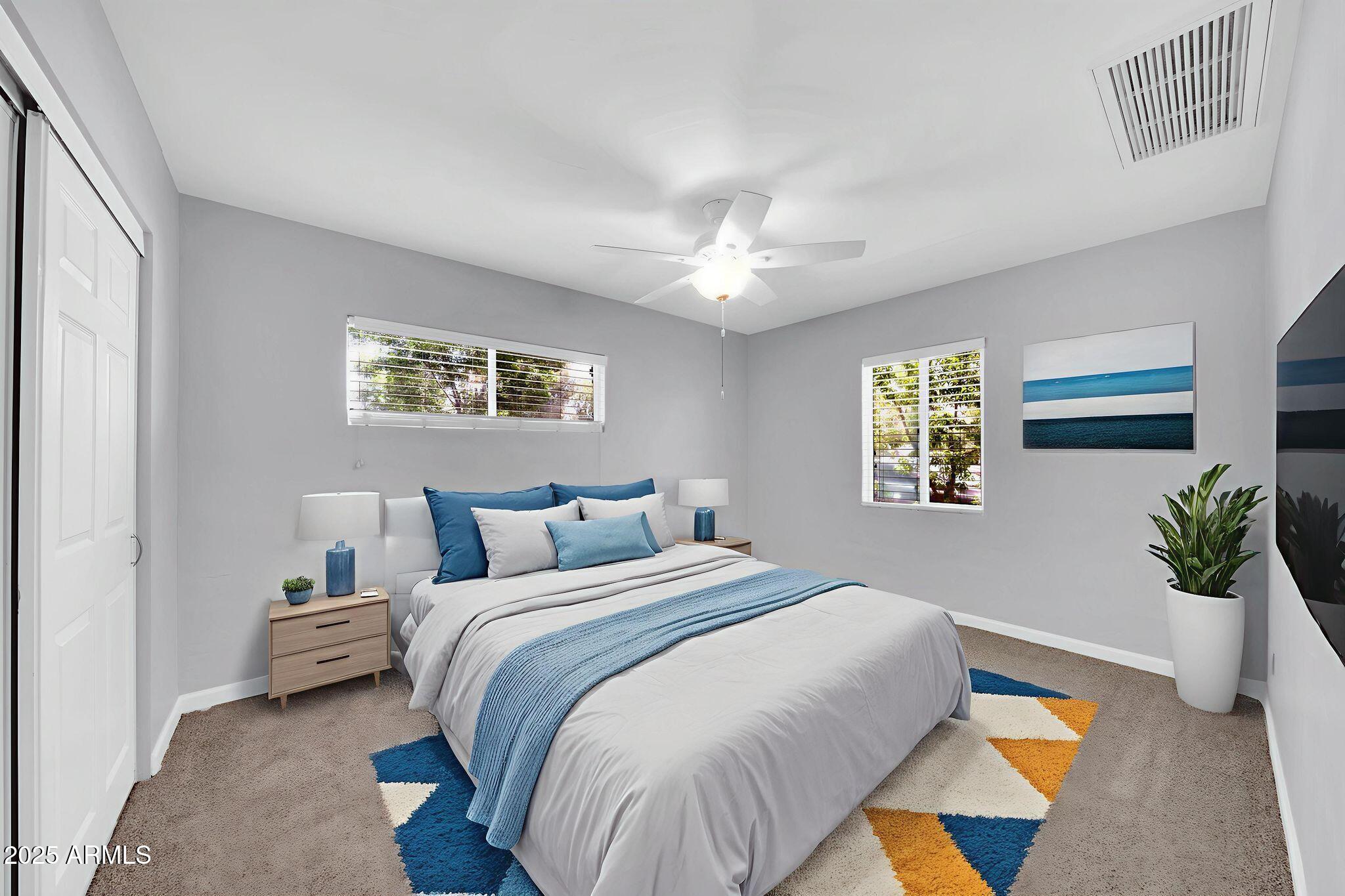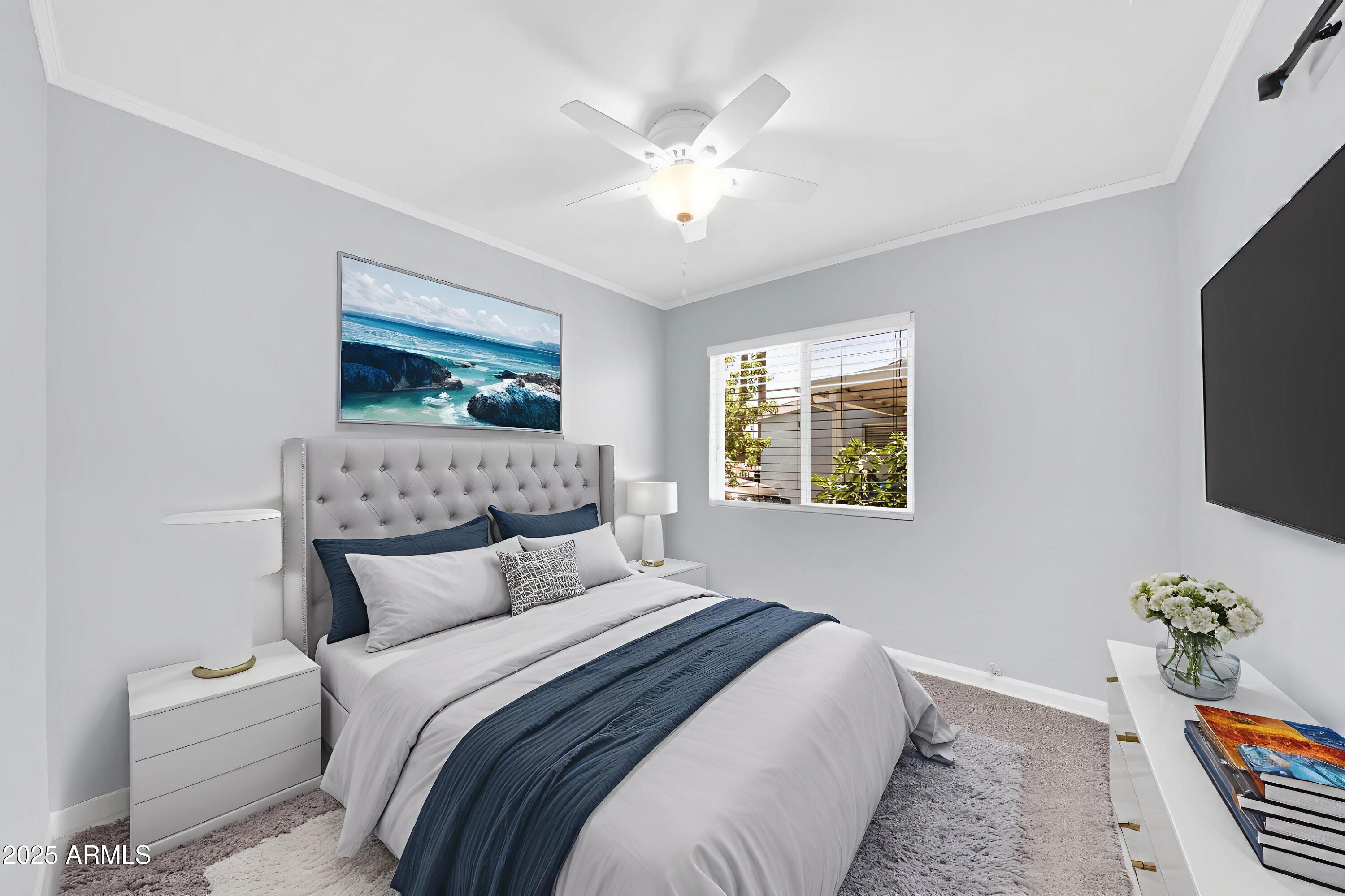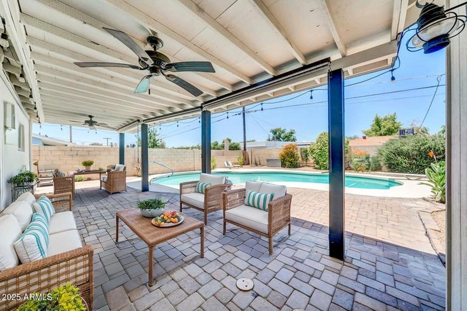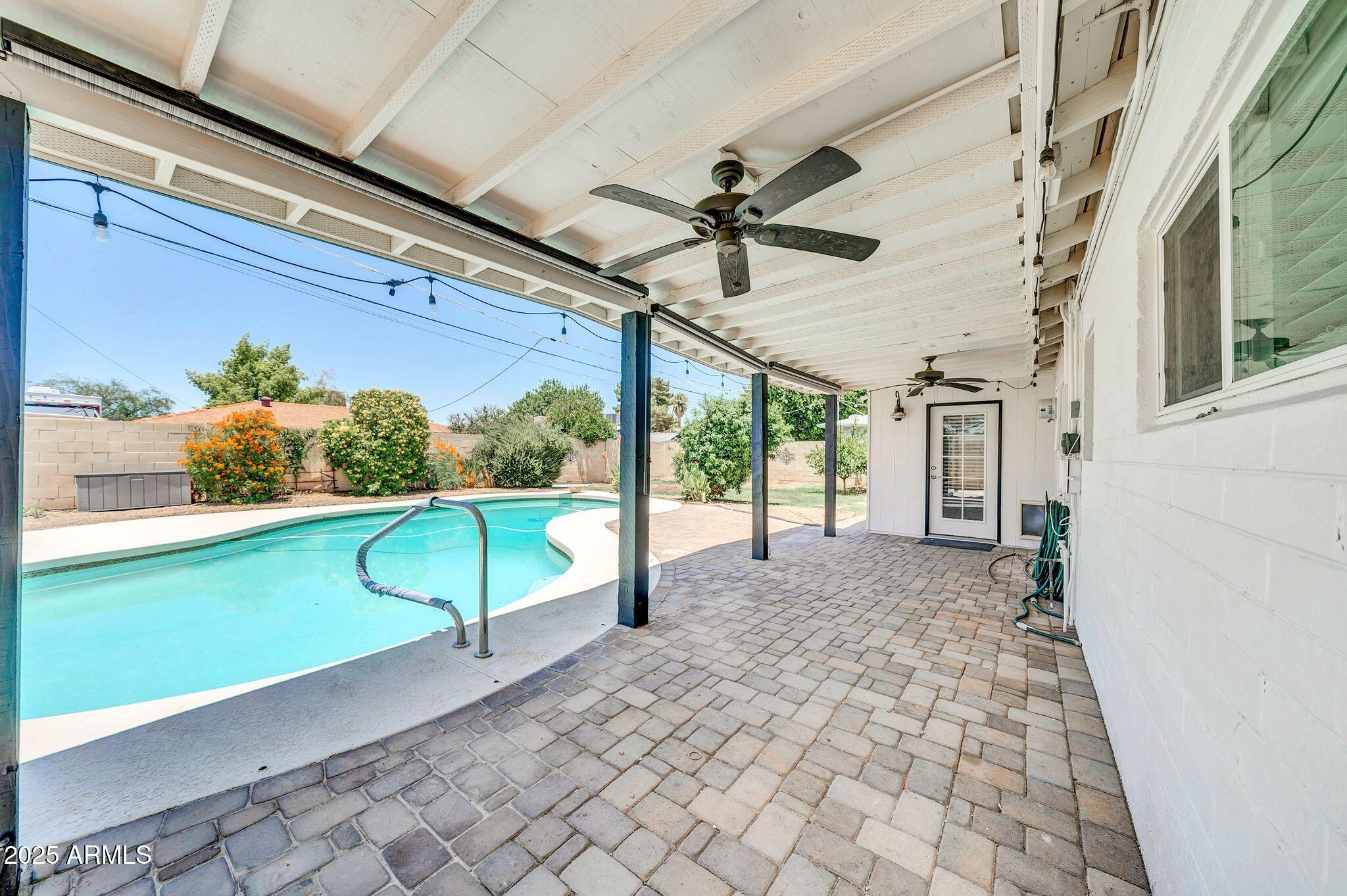 ACCPTING BACKUP OFFERS THROUGH 8/19 Beautifully updated 4 bed, 2 bath home in the desirable North Central Phoenix area. This home features a spacious open floor plan with fresh interior and exterior paint, crown moulding, and new carpet. Enjoy a split floor plan layout for added privacy, plus a large primary suite with walk-in closet and remodeled bath. The kitchen boasts granite countertops, a large breakfast bar, and stainless steel appliances. Step outside to your private pool with newly painted cool deck, updated pool equipment, and a covered patio. The lush backyard includes mature fruit trees and sits on a flood irrigated lot, offering natural beauty and cost-efficient landscaping. Additional highlights include a detached storage unit and a newer A/C unit and new roof in 2021. Located in the Madison School District near top dining, shopping, and trails. Move-in ready and full of upgrades!