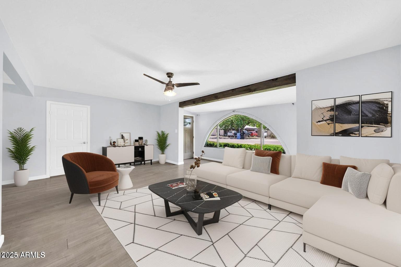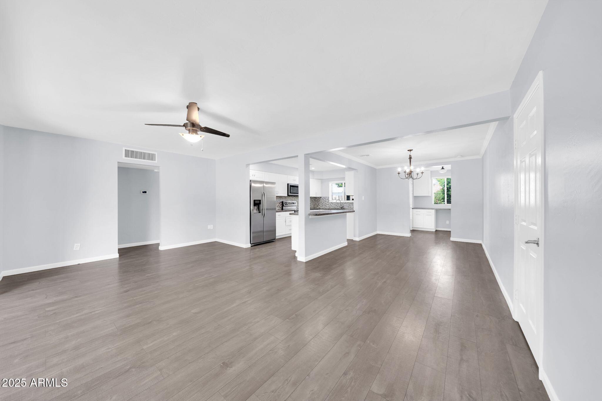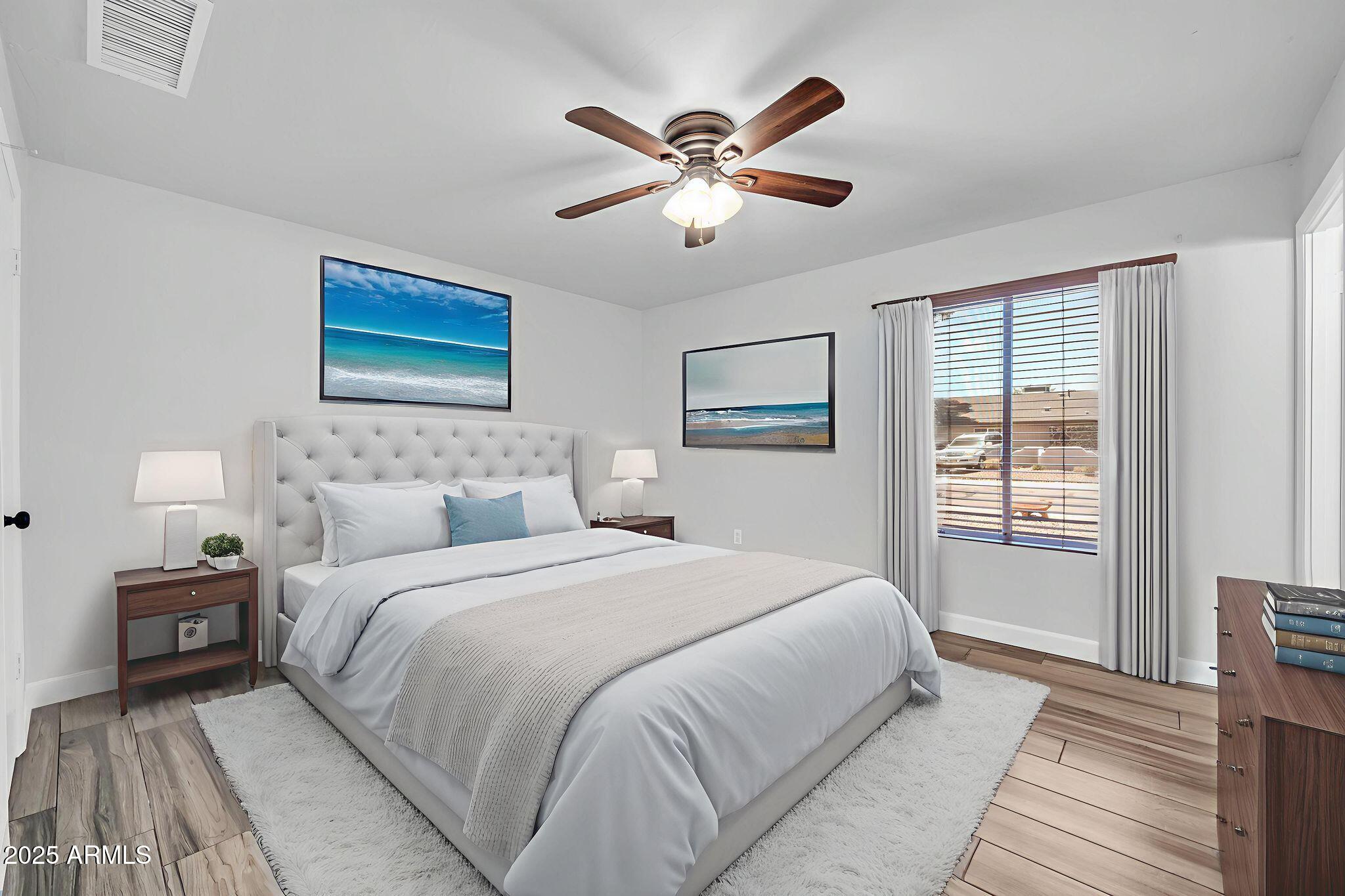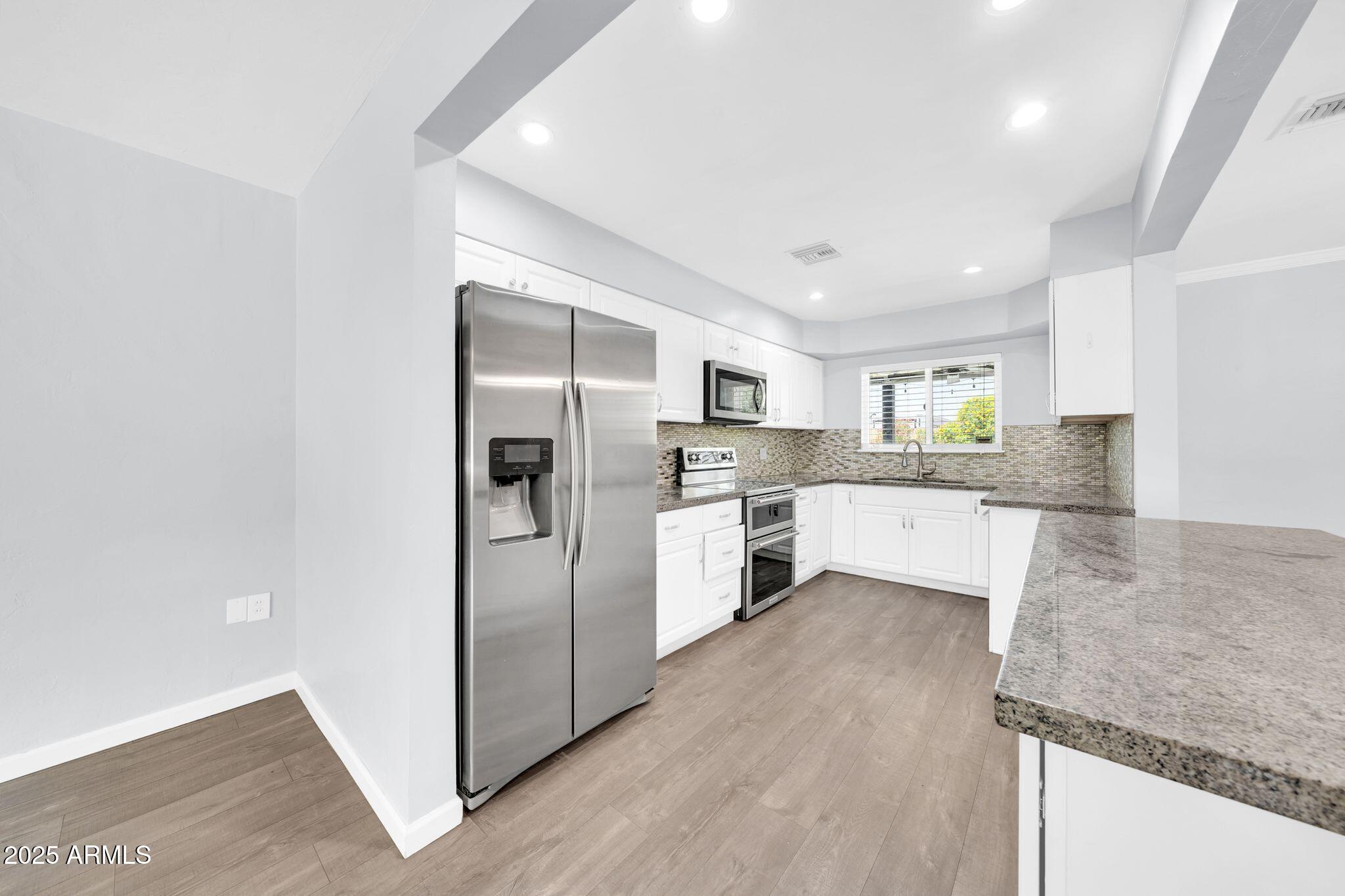 ACCPTING BACKUP OFFERS THROUGH 8/19 Beautifully updated 4 bed, 2 bath home in the desirable North Central Phoenix area. This home features a spacious open floor plan with fresh interior and exterior paint, crown moulding, and new carpet. Enjoy a split floor plan layout for added privacy, plus a large primary suite with walk-in closet and remodeled bath. The kitchen boasts granite countertops, a large breakfast bar, and stainless steel appliances. Step outside to your private pool with newly painted cool deck, updated pool equipment, and a covered patio. The lush backyard includes mature fruit trees and sits on a flood irrigated lot, offering natural beauty and cost-efficient landscaping. Additional highlights include a detached storage unit and a newer A/C unit and new roof in 2021. Located in the Madison School District near top dining, shopping, and trails. Move-in ready and full of upgrades!
