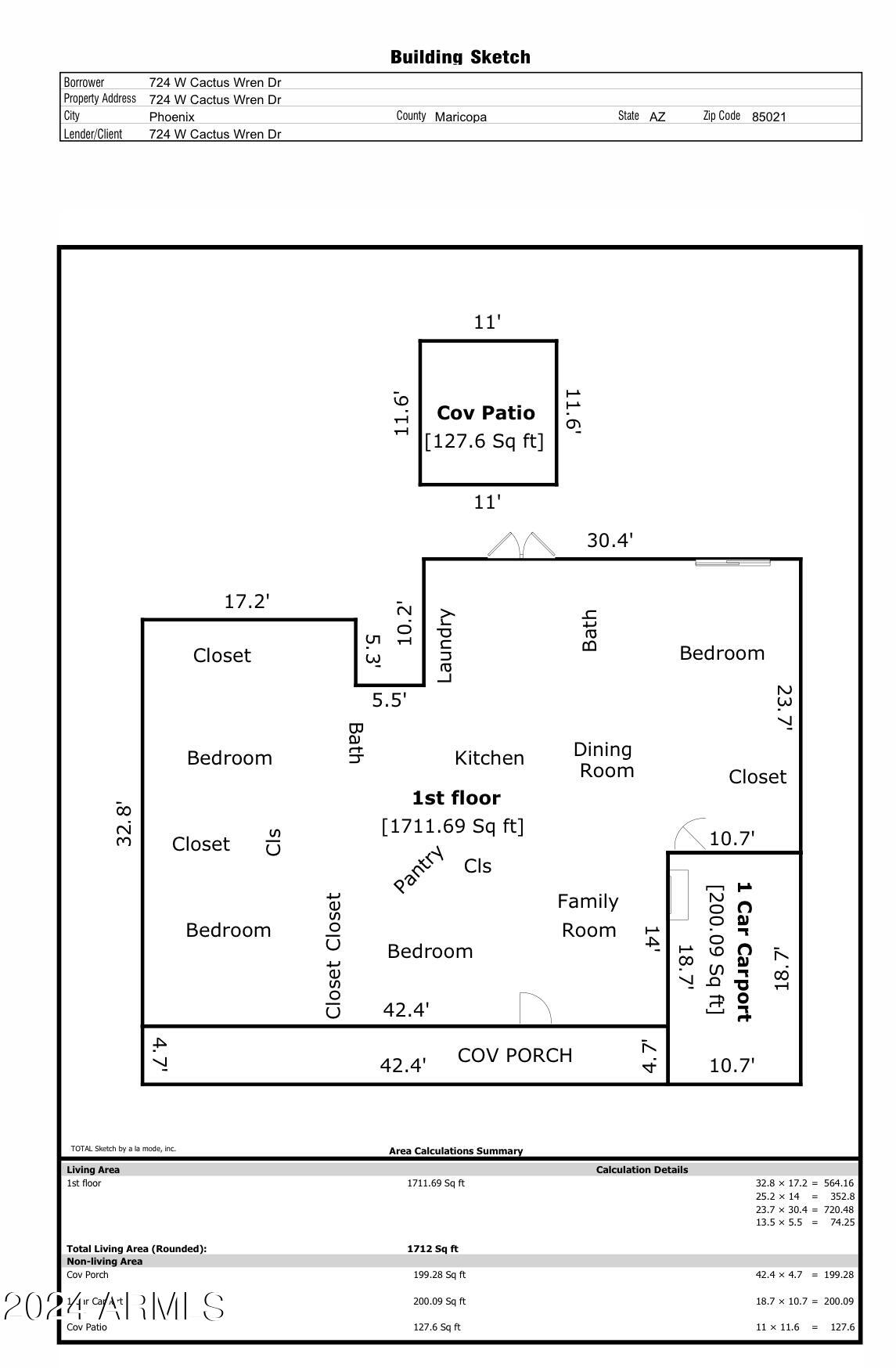 | LIVING SPACE | 1,711 Sq.Ft. |