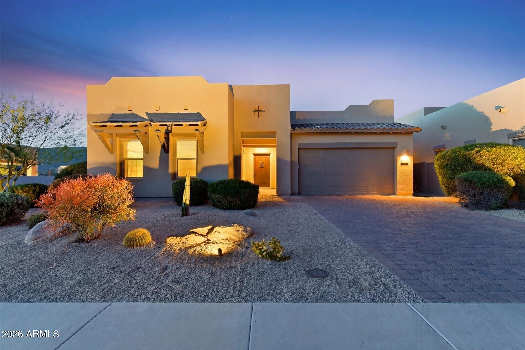Step outside to a covered patio and beautifully designed backyard showcasing multiple seating areas, fire features, and sweeping sunset views--perfect for relaxing or hosting gatherings. With its combination of scenic surroundings, functional layout, and refined finishes, this home offers the best of desert living.