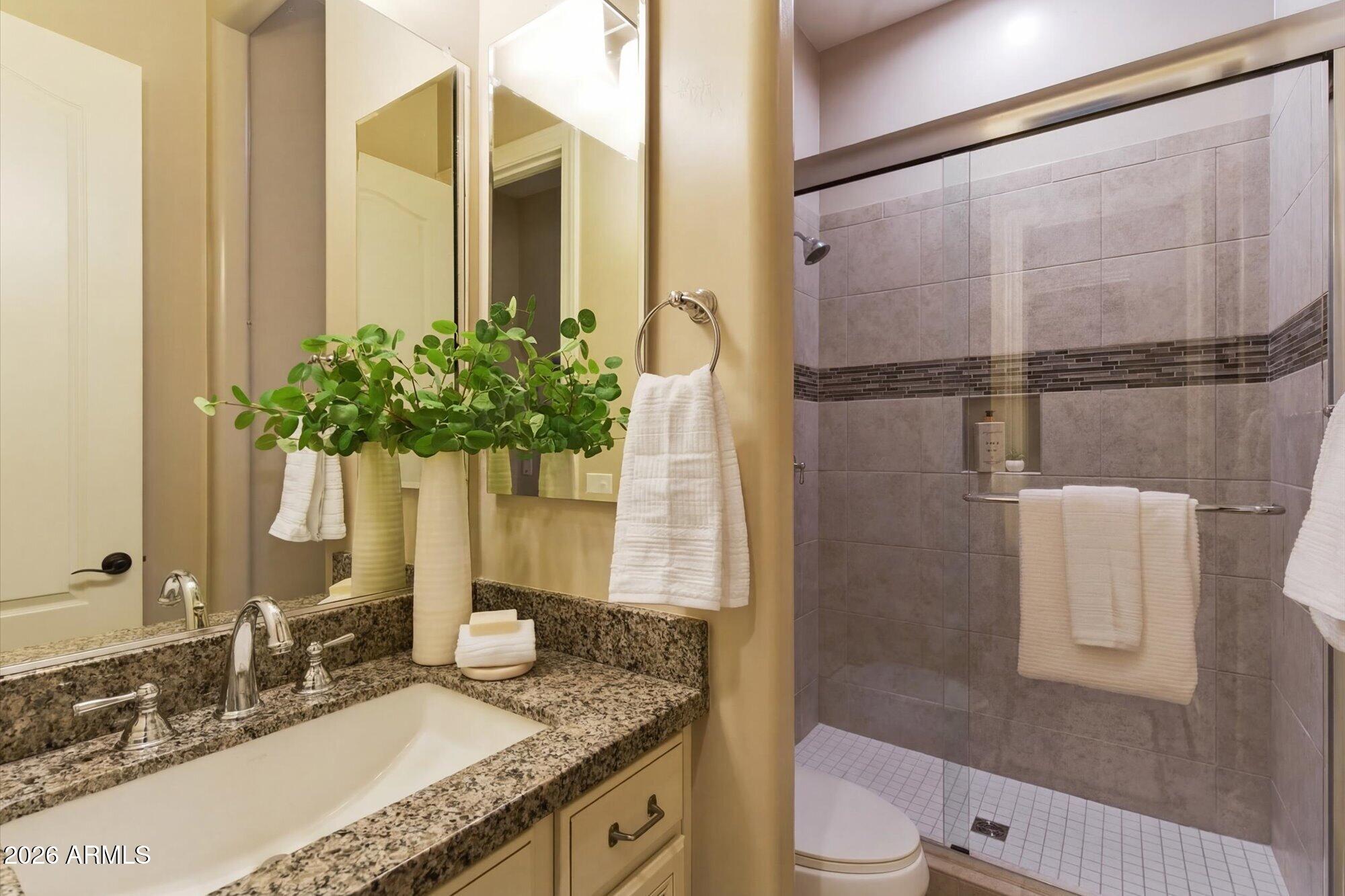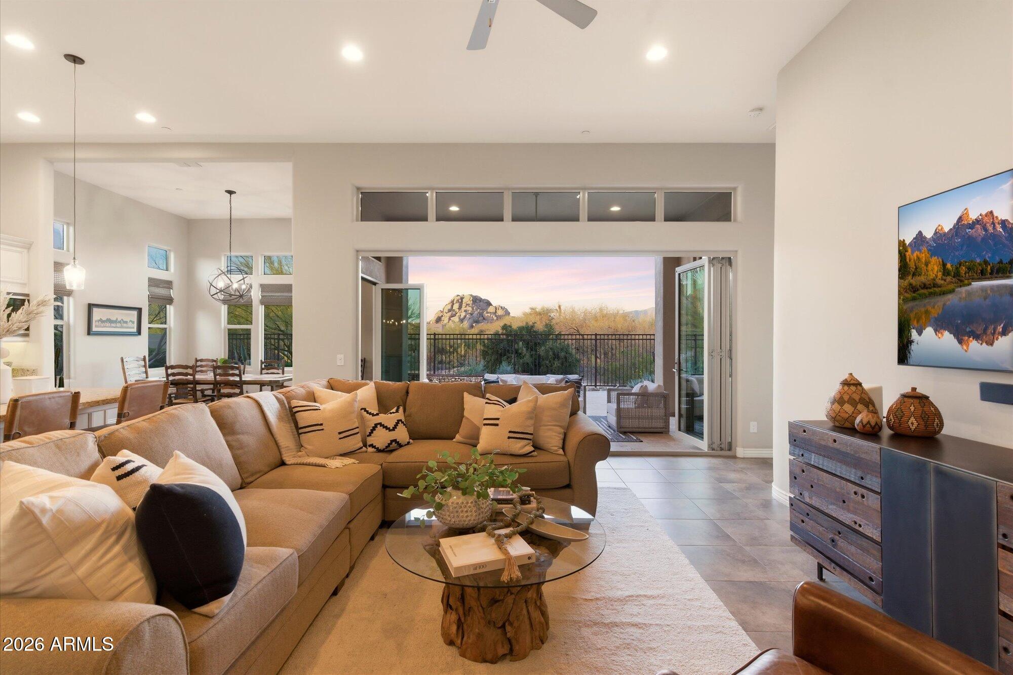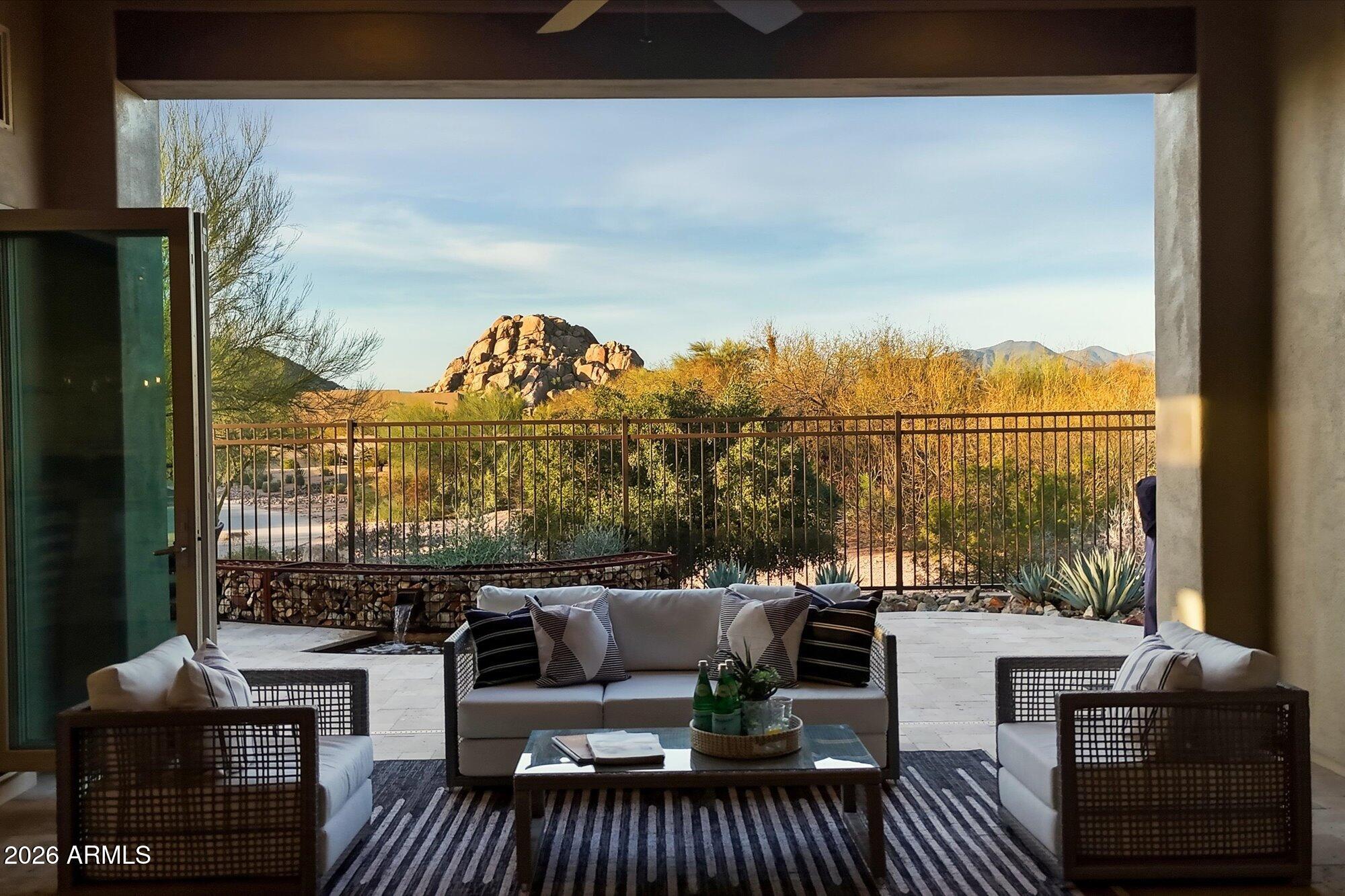Nestled on a PREMIUM lot within a gated North Scottsdale enclave near The Boulders, this striking three-bedroom, three-bath residence showcases sweeping desert and mountain views in an iconic Sonoran setting. Expansive accordion glass doors create seamless indoor-outdoor living, opening the great room to a sleek, resort-style entertaining space designed for sunset gatherings. The chef's gourmet kitchen features SubZero appliances and anchors the open-concept layout, while a thoughtfully designed split floor plan offers elevated guest privacy. Sophisticated, modern, and curated for a true golf-inspired desert lifestyle. This is the epitome of elevated Scottsdale living. Majestic sunrises and sunsets with jaw-dropping views...this is a MUST SEE! Secondary bedrooms are comfortably sized, and an additional full bath provides convenience for guests.