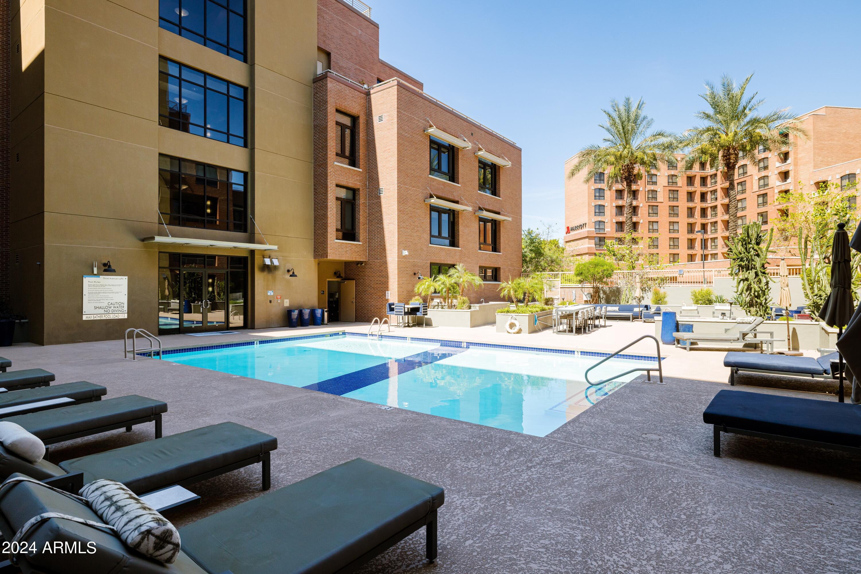 Back on Market because Buyers' financing fell through before Closing! And preferred lender is offering FREE 1 year interest rate buy-down! Modern poolside ground floor unit in the gorgeous 3rd Ave Lofts community! This modern, open floor plan is one of the few units that has a patio door that allows direct pool access. Updated and modern with warm touches and a great layout! Full walk-in closet in the Primary bedroom. Large windows provide an abundance of natural light and the roller shades provide privacy. The community offers underground gated parking, shared heated pool/spa, courtyard with BBQ and fireplace, impressive fitness center and on-site concierge services. Located in the heart of Old Town Scottsdale, shops (steps from Fashion Square Mall), restaurants and nightlife are within walking distance. Come experience the best that Old Town has to offer!