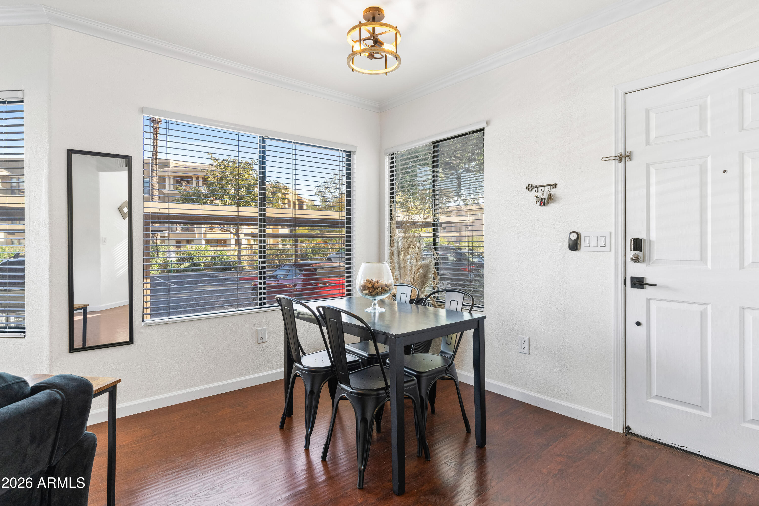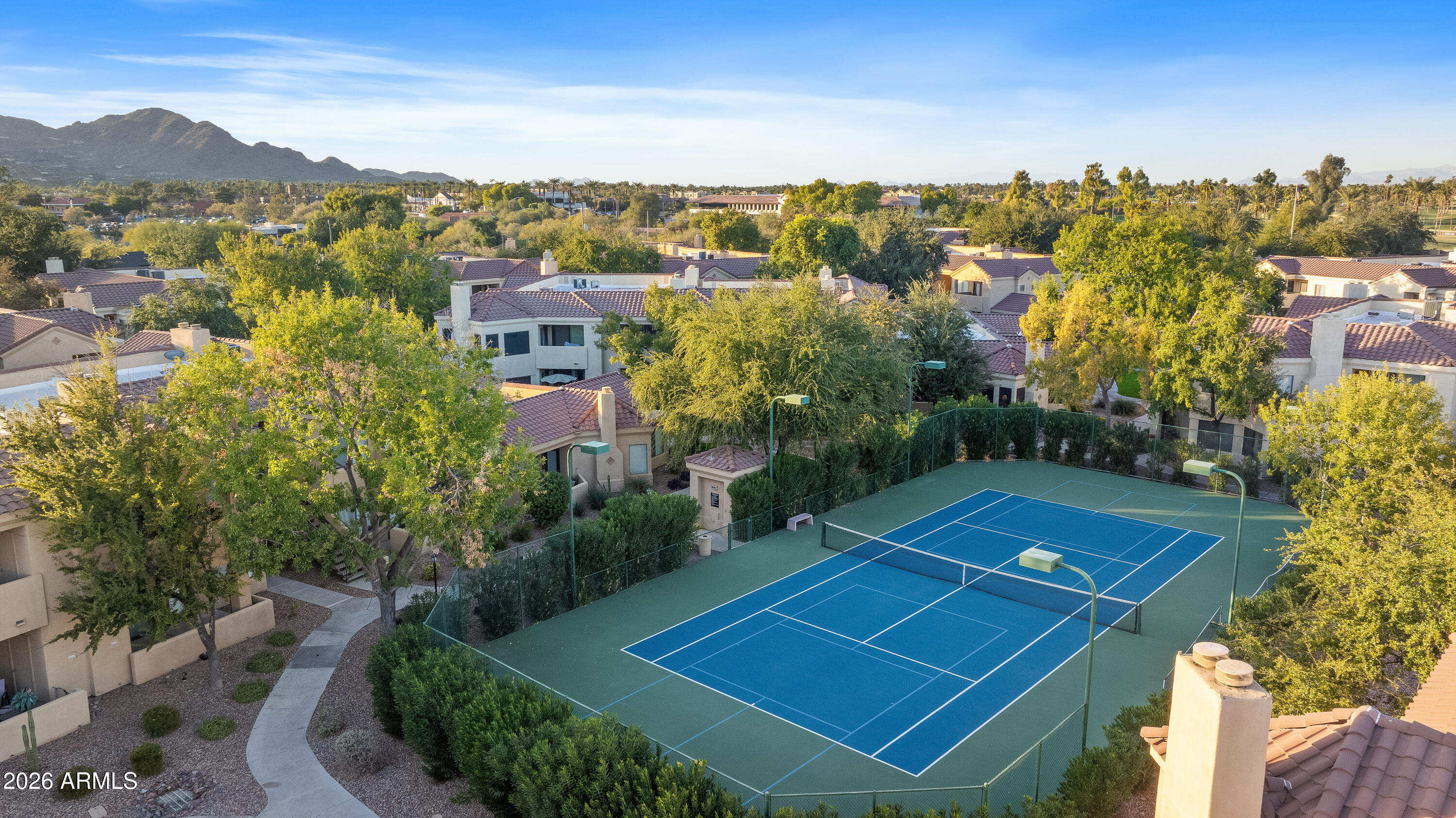 This ground-floor condo within a gated community in the heart of Central Scottsdale offers easy, lock-and-leave living with no interior steps and convenient access to nearby parking. The home features 3 bedrooms and 2 full bathrooms, including a spacious primary suite with a walk-in closet and private exit to the patio. Recent improvements include a new HVAC system in 2023 and brand-new carpeting in all bedrooms, complemented by hardwood flooring in the main living areas. Sienna residents enjoy a clubhouse, workout facility, pool, spa, tennis and pickleball courts, plus direct access to the greenbelt. Located near Silverado Golf Course, McCormick Ranch Golf Club, shopping, dining, and commuter routes, this move-in-ready condo offers comfort and convenience.