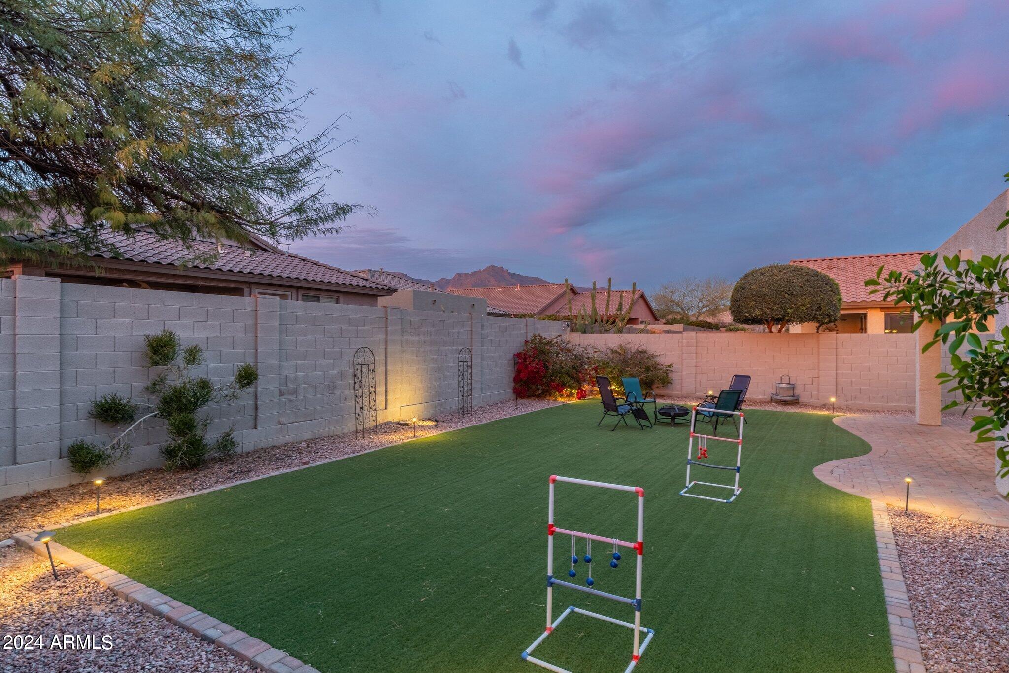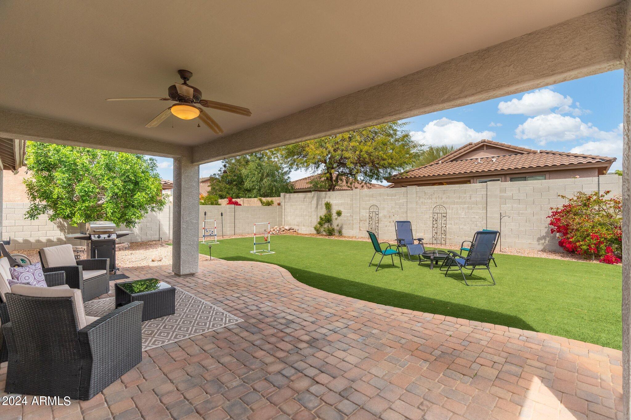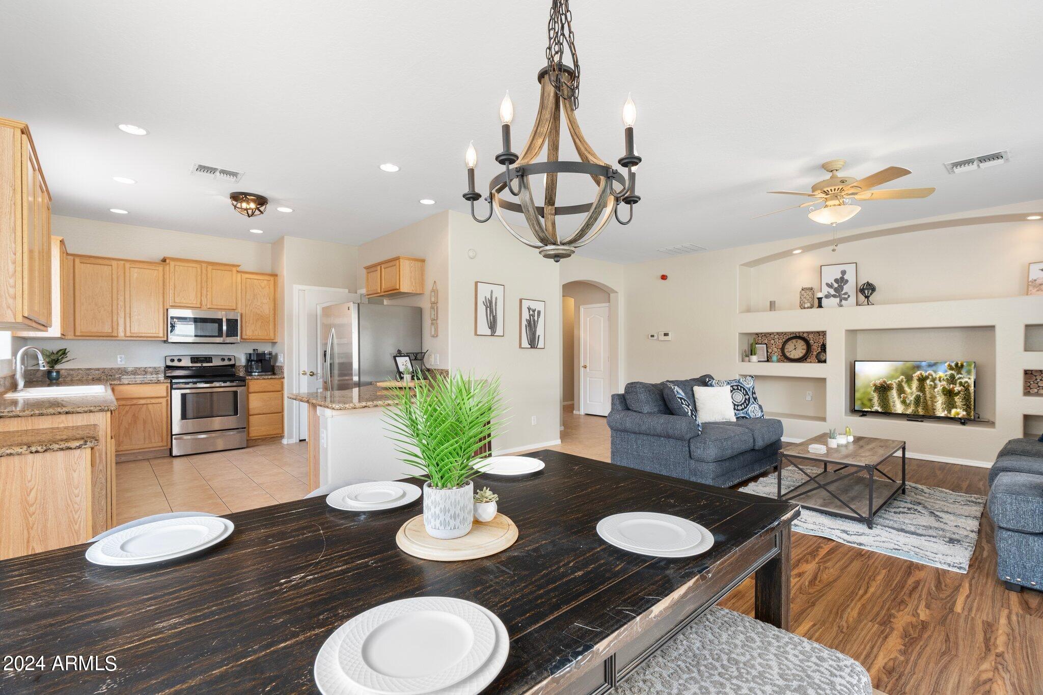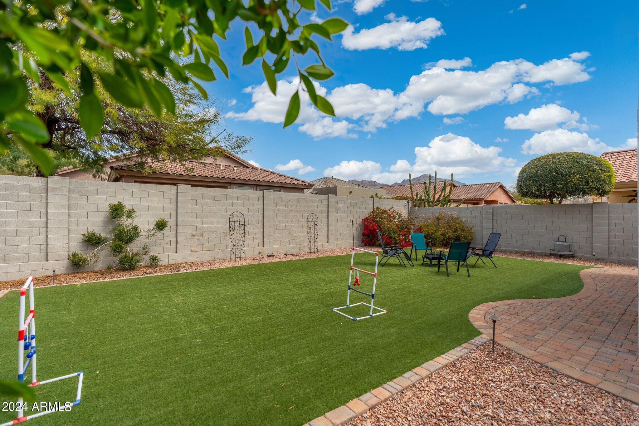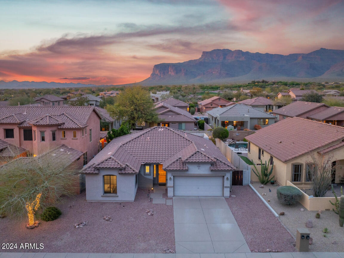 LOCATION! Gold Canyon Golf Resort and Spa, Supersition Mountain trails, championship golf courses and 52 biking and trails! This ONE STORY, low maintenance well laid out home offers generous 9 FT CEILINGS, an expansive open floor plan of living room, dining and kitchen and PEAK VIEWS of SUPERSTION MOUNTAIN and FLAT IRON. Spacious gourmet kitchen w/ stainless steel Kenmore appliances (ALL INCLUDED), 42'' upgraded cabinets, recessed lighting, & granite counters with barstool seating plus PANTRY storage! WASHER AND DRYER INCLUDED as well! Admire the custom, DESERT DESIGN painted in 2023 perfect for primary home or vacation home. 5-piece primary suite boasts a walk in closet, plenty of counter space, dual sink vanity, soaking tub, walk in shower & enclosed toilet room. Step outside & enjoy low maintenance landscape w/ lush TURF, CUSTOM PAVERS, water feature & a covered patio complete w/ ceiling fan perfect for bbq's & entertaining. FURNITURE, DECOR AND ALL HOUSEHOLD ITEMS INCLUDED! Walk to the COMMUNITY POOL and SPA that stays HEATED YEAR ROUND. All this and LOW HOA DUES! This home is fully turn key and move in ready. You will love this active community! What are you waiting for!? Come tour today!