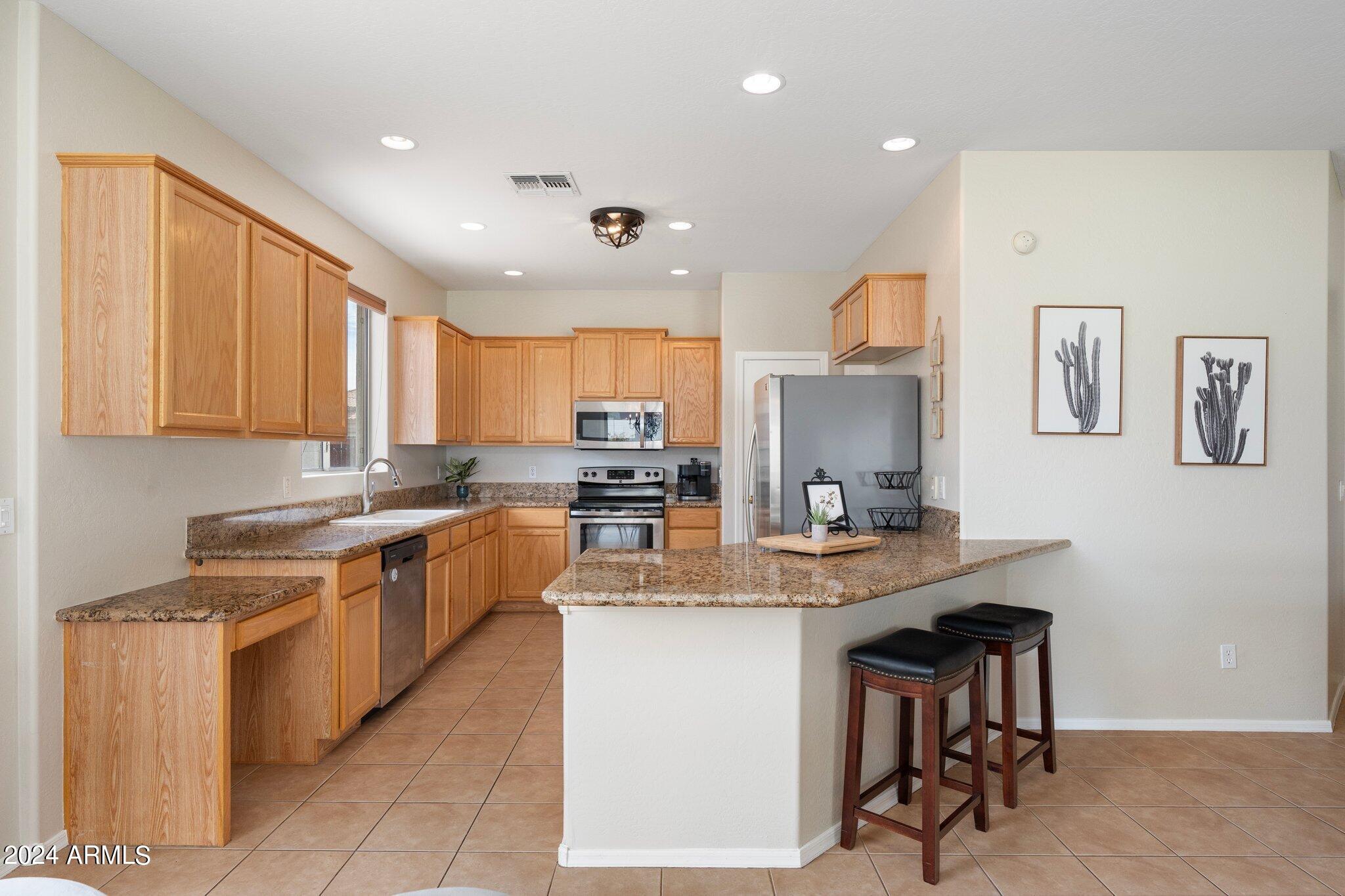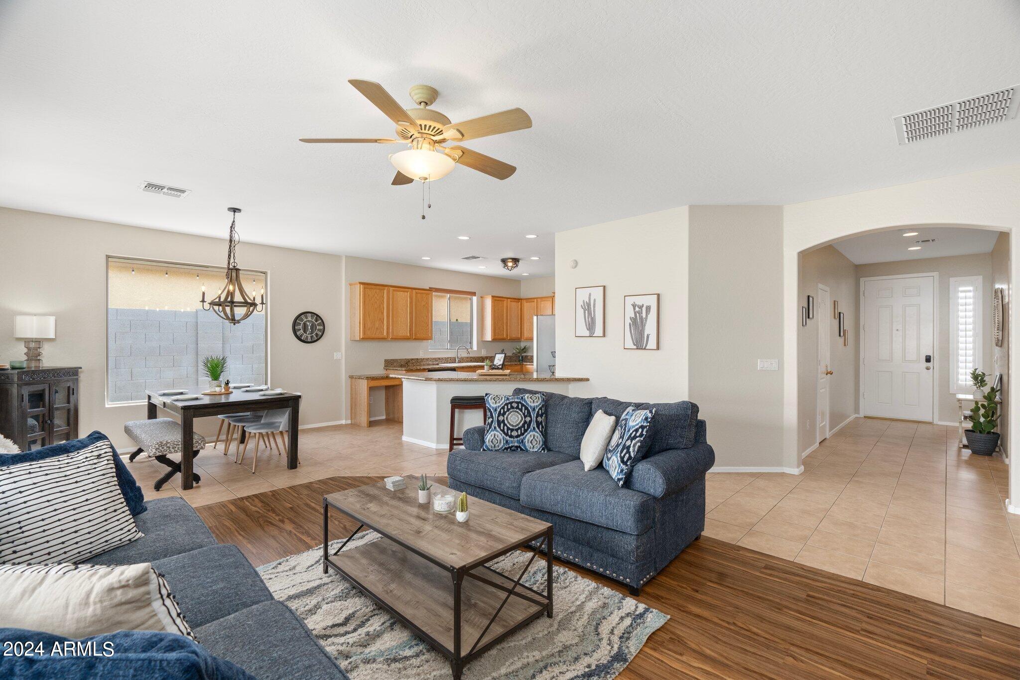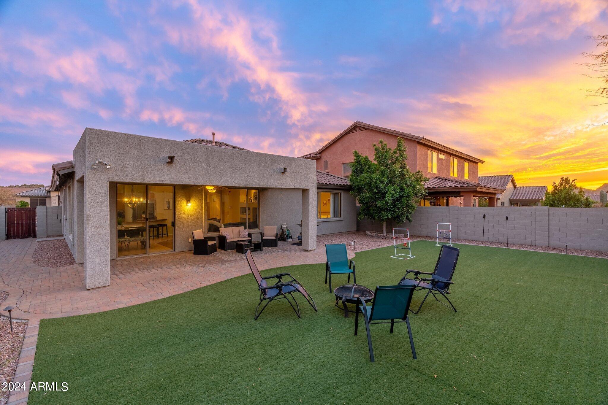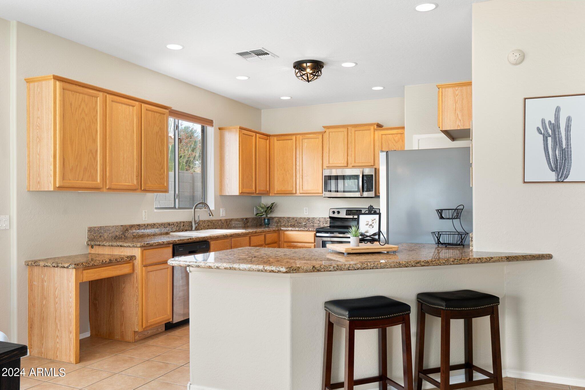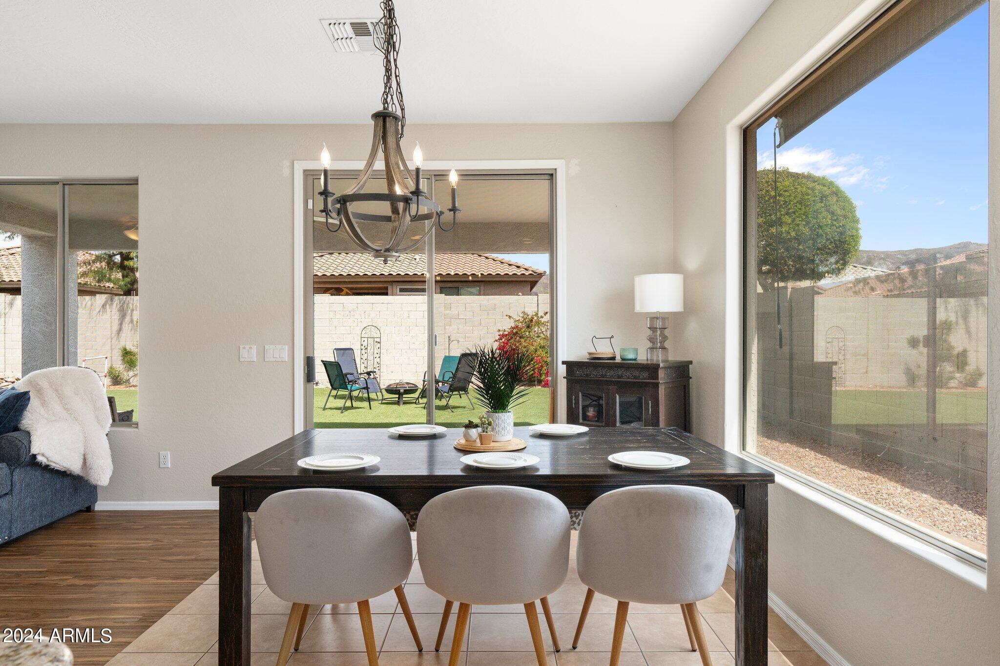 LOCATION! Gold Canyon Golf Resort and Spa, Supersition Mountain trails, championship golf courses and 52 biking and trails! This ONE STORY, low maintenance well laid out home offers generous 9 FT CEILINGS, an expansive open floor plan of living room, dining and kitchen and PEAK VIEWS of SUPERSTION MOUNTAIN and FLAT IRON. Spacious gourmet kitchen w/ stainless steel Kenmore appliances (ALL INCLUDED), 42'' upgraded cabinets, recessed lighting, & granite counters with barstool seating plus PANTRY storage! WASHER AND DRYER INCLUDED as well! Admire the custom, DESERT DESIGN painted in 2023 perfect for primary home or vacation home. 5-piece primary suite boasts a walk in closet, plenty of counter space, dual sink vanity, soaking tub, walk in shower & enclosed toilet room. Step outside & enjoy low maintenance landscape w/ lush TURF, CUSTOM PAVERS, water feature & a covered patio complete w/ ceiling fan perfect for bbq's & entertaining. FURNITURE, DECOR AND ALL HOUSEHOLD ITEMS INCLUDED! Walk to the COMMUNITY POOL and SPA that stays HEATED YEAR ROUND. All this and LOW HOA DUES! This home is fully turn key and move in ready. You will love this active community! What are you waiting for!? Come tour today!